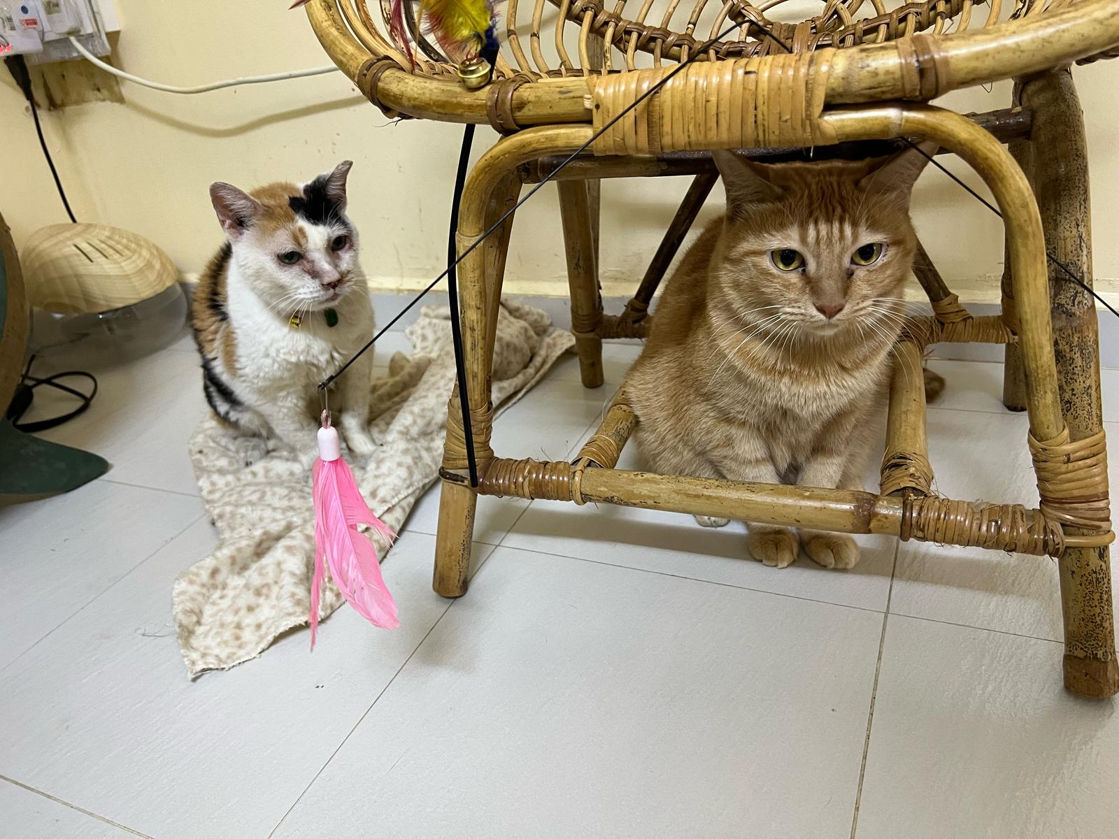 Morning: Tmr major cleaning day, today let them have fun w catnips … even char also play w the butterfly toy …. New toy so won’t throw so soon