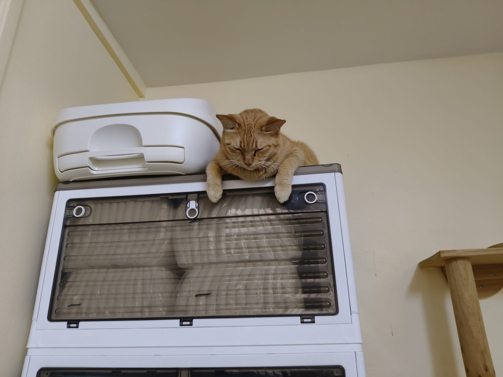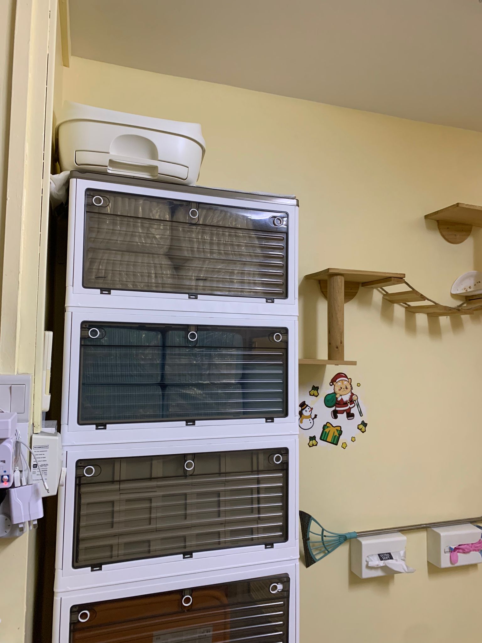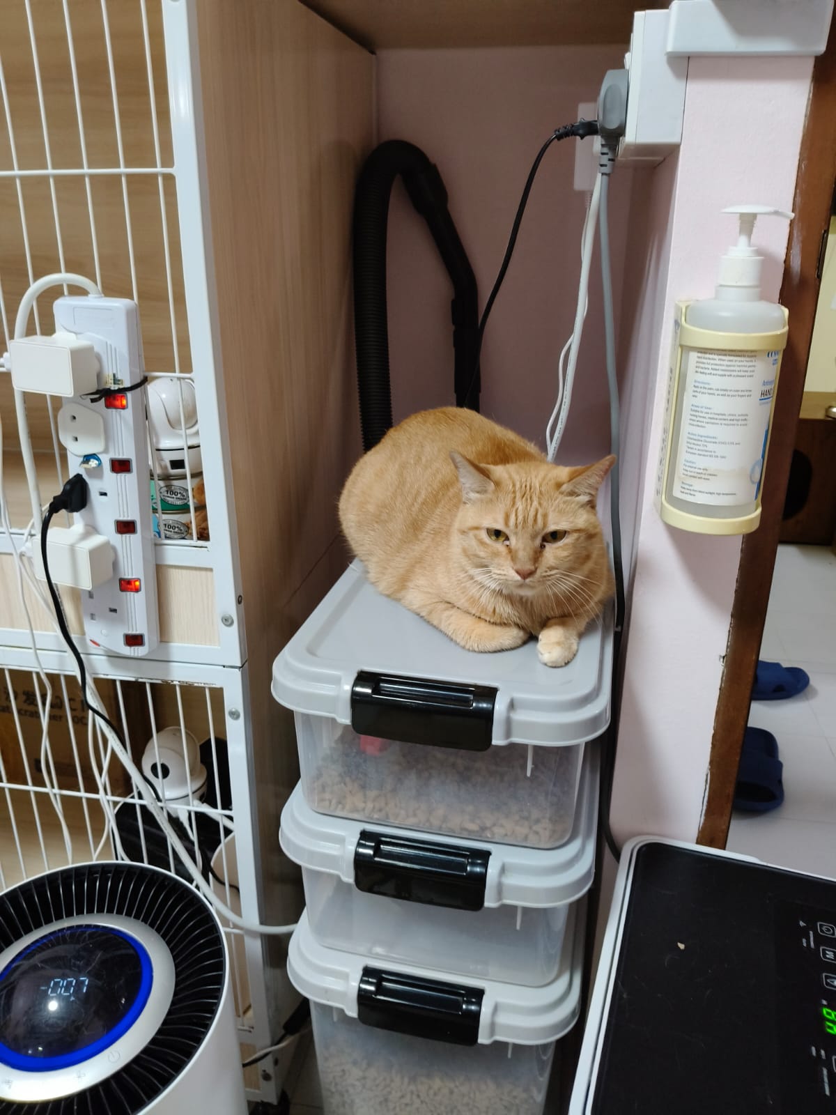 11.44am: can safely say char migrate herself to food room, cos ah boy mainly at tv room cos new sections. Wash the bin that I reserve for her. I can pack that cabinet these few days