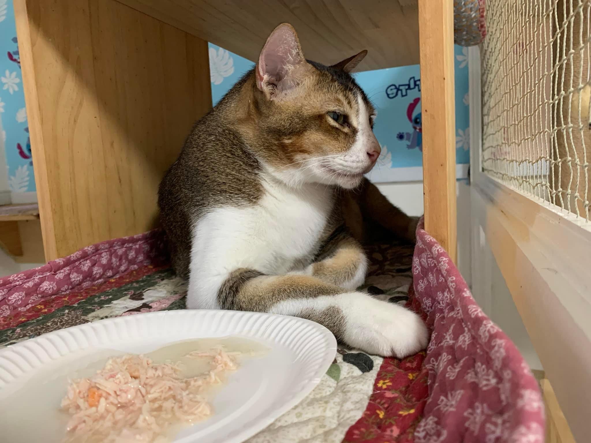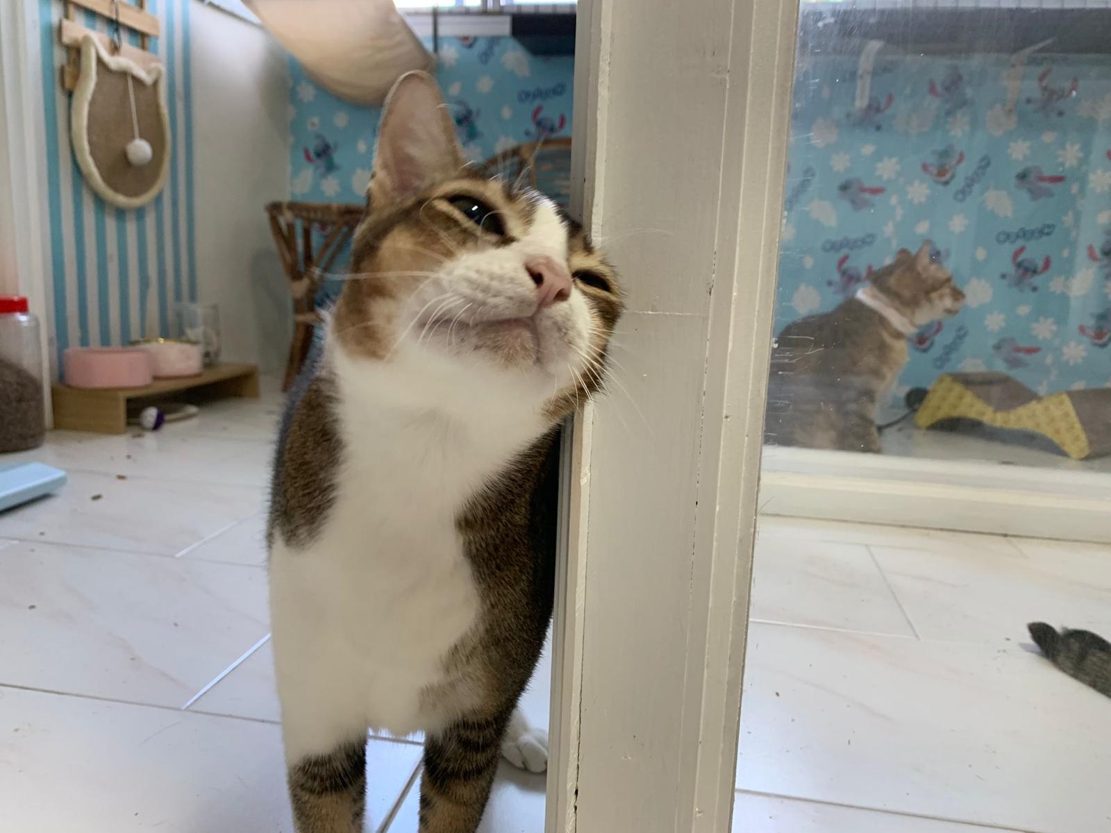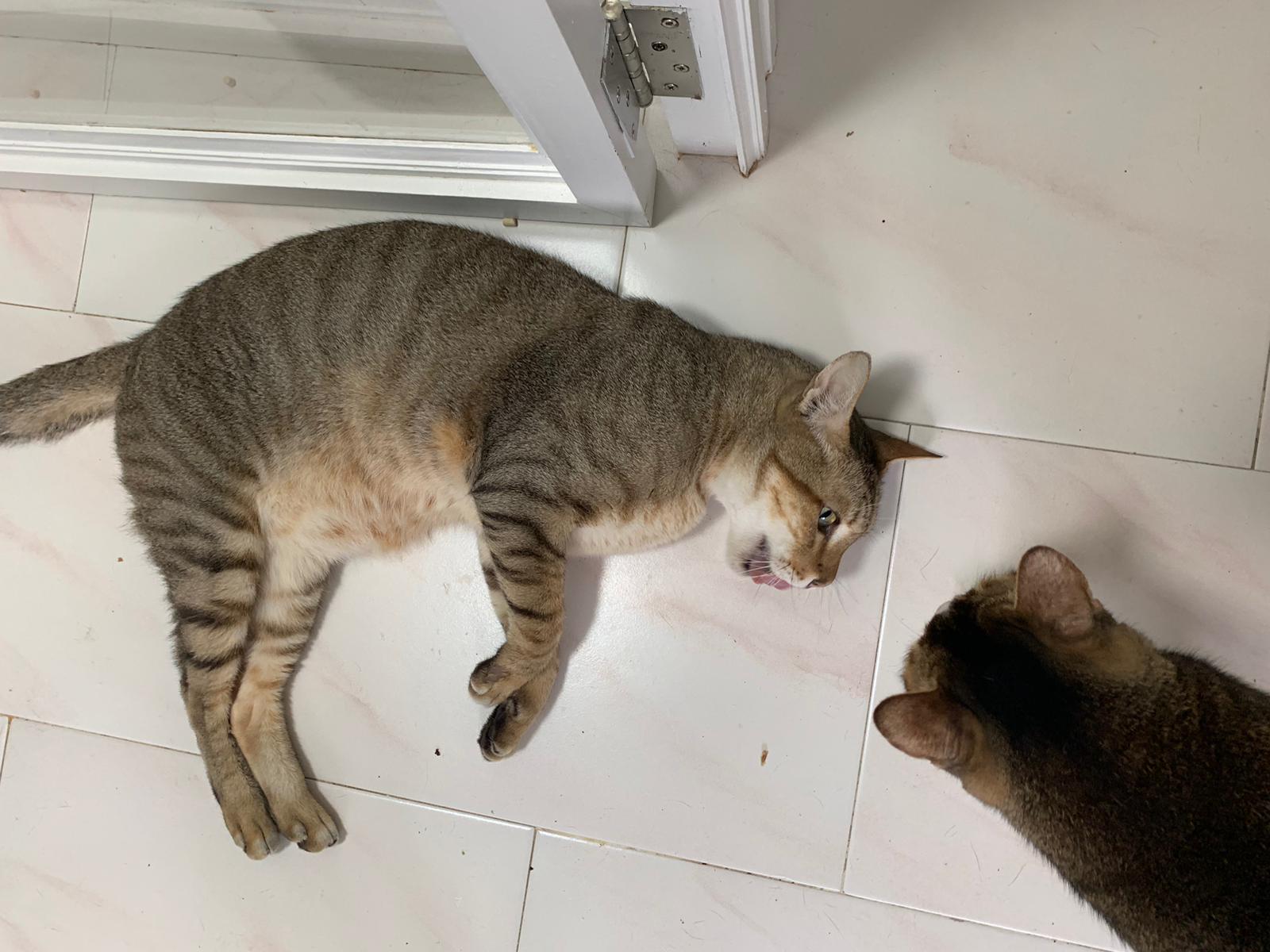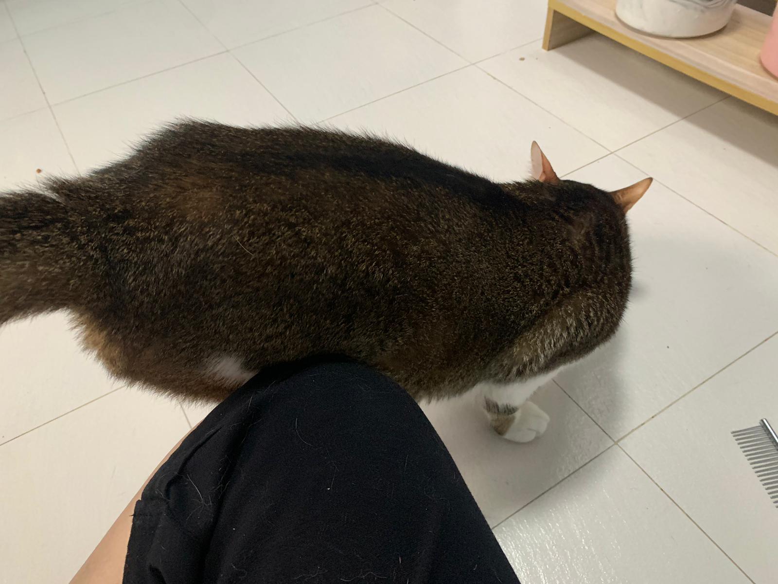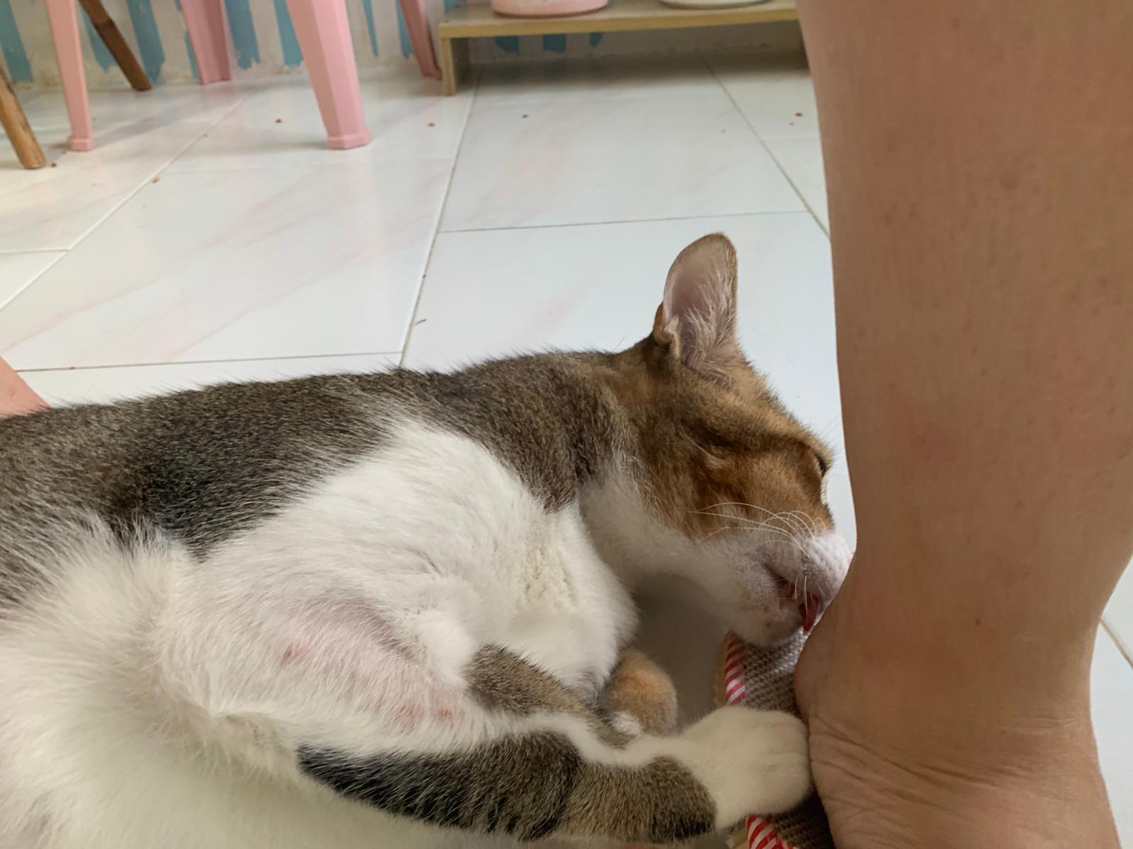 Loving boy, love to lick my toe, other cats will find him for sayang – he will help to groom other cats. He got a tendency to vomit cos he love to lick plastic also! He likes bistro chicken and a/d. To be adopted with his brother Alley.