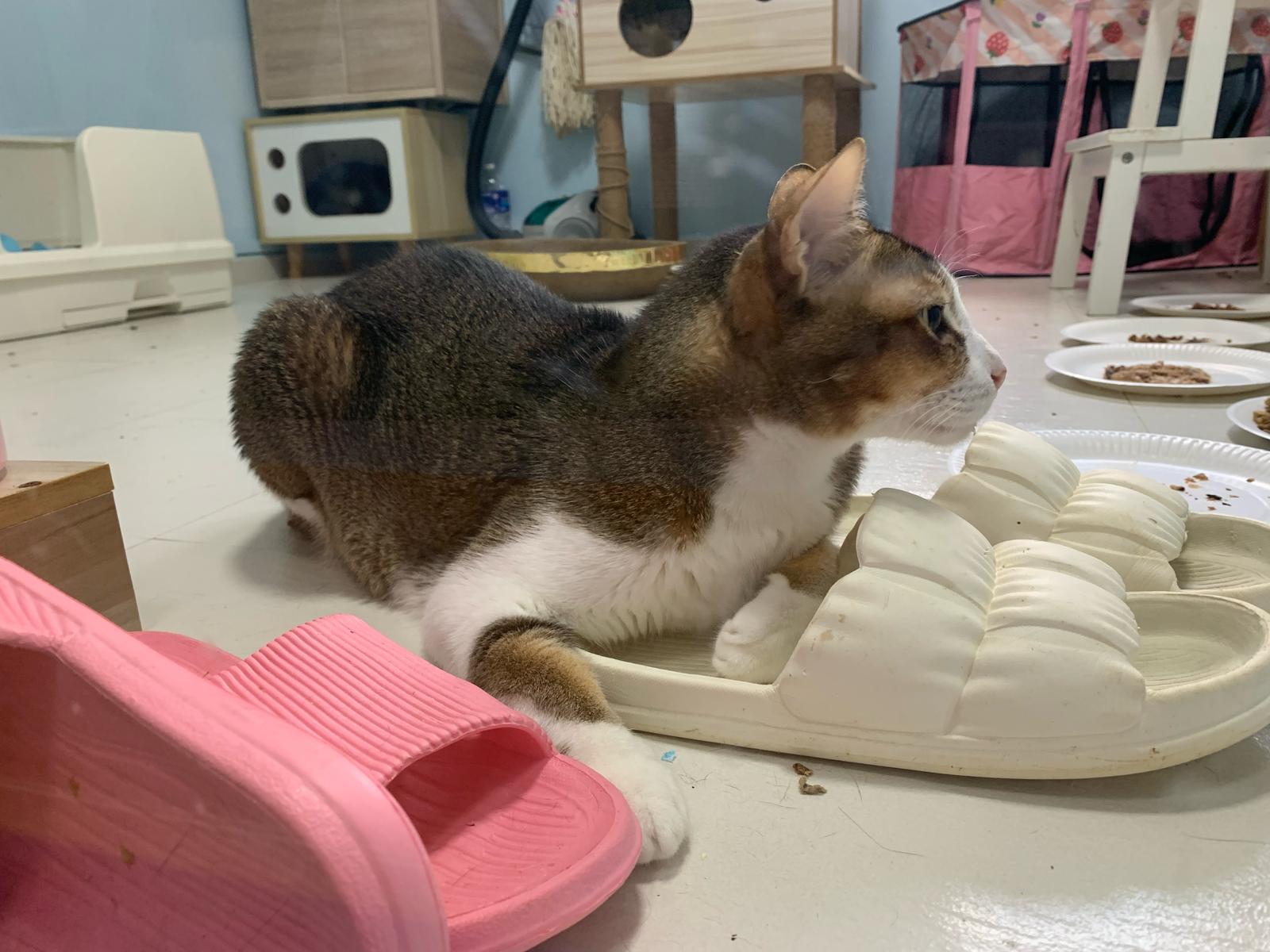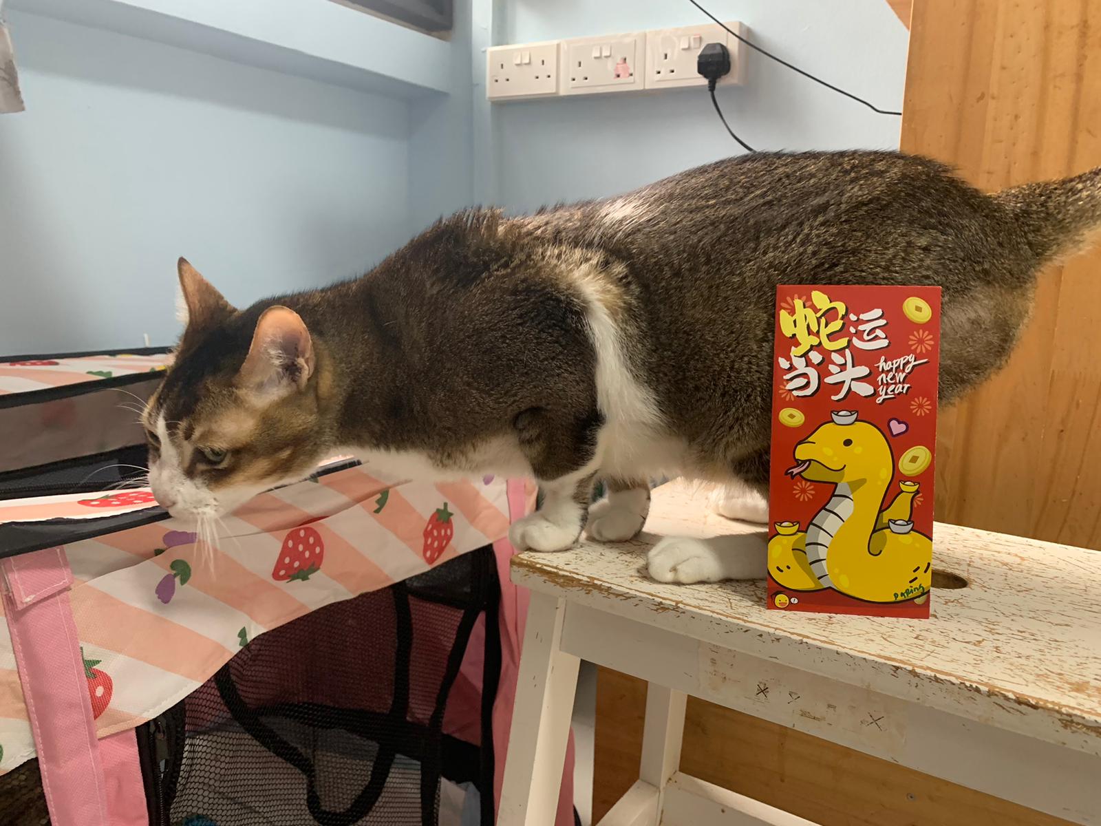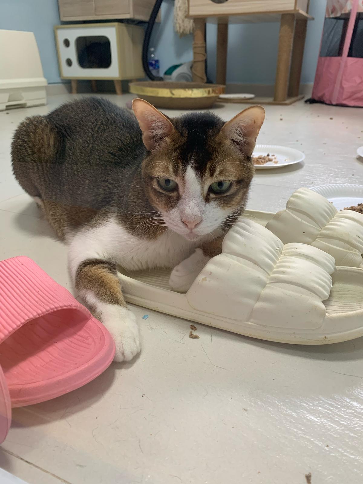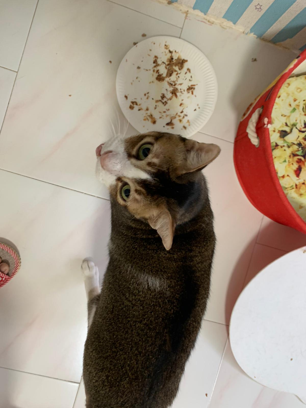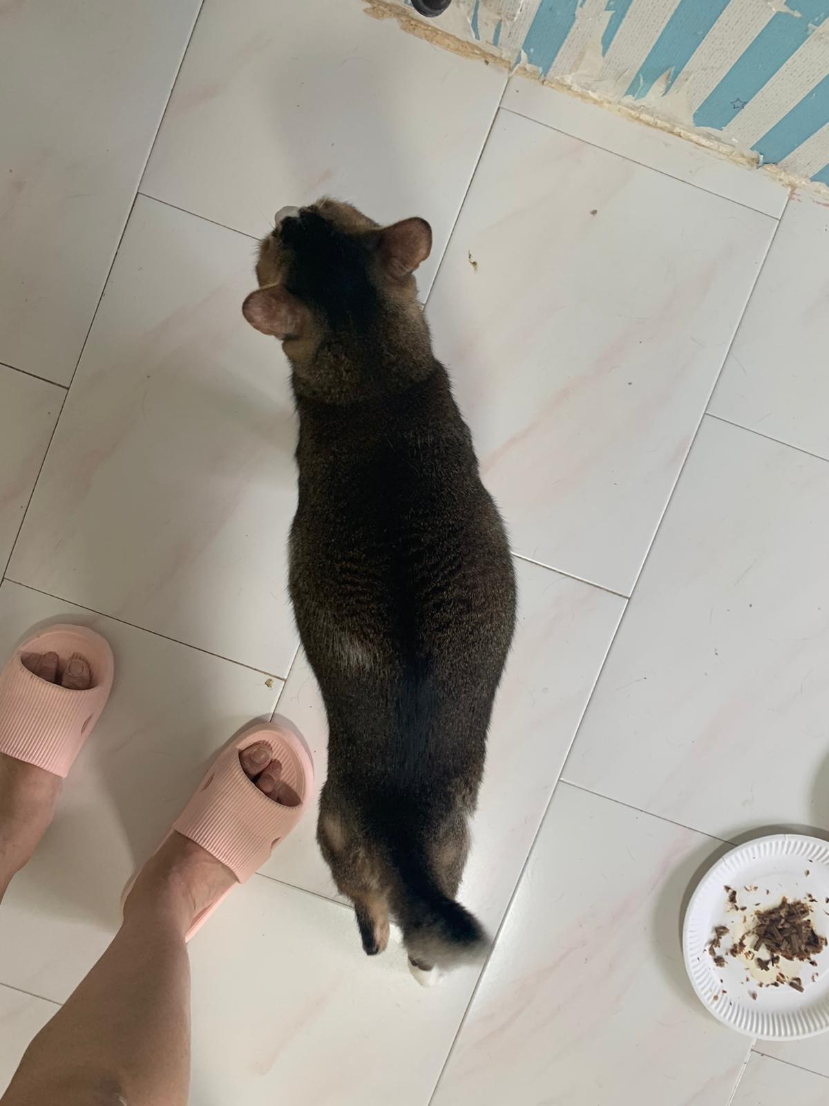 Loving boy, love to lick my toe, other cats will find him for sayang – he will help to groom other cats. He got a tendency to vomit cos he love to lick plastic also! He likes bistro chicken and a/d. To be adopted with his brother Alley.