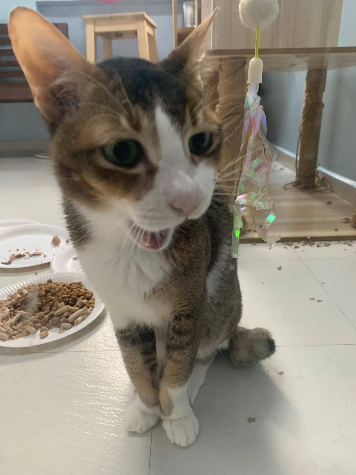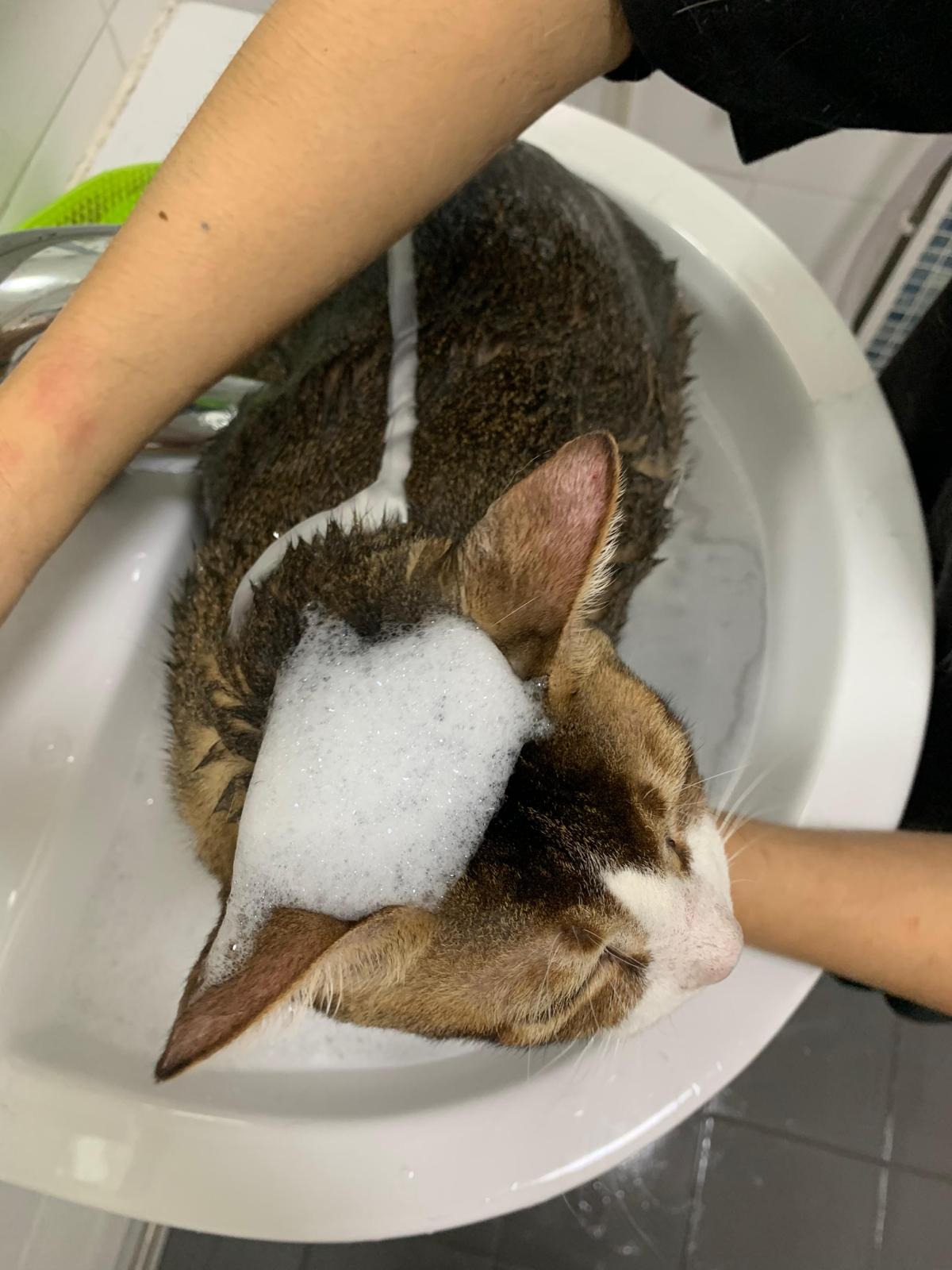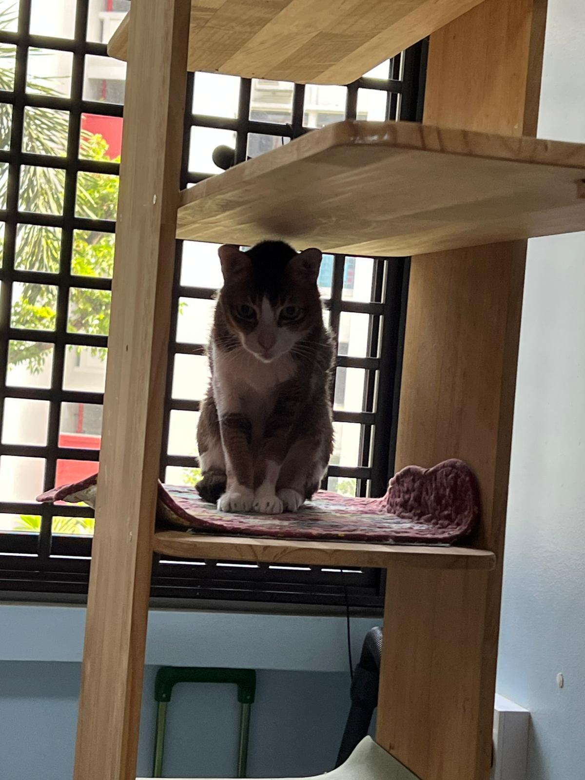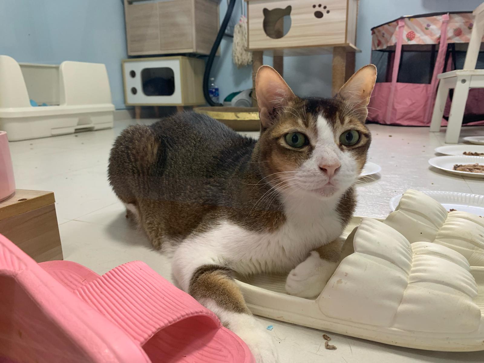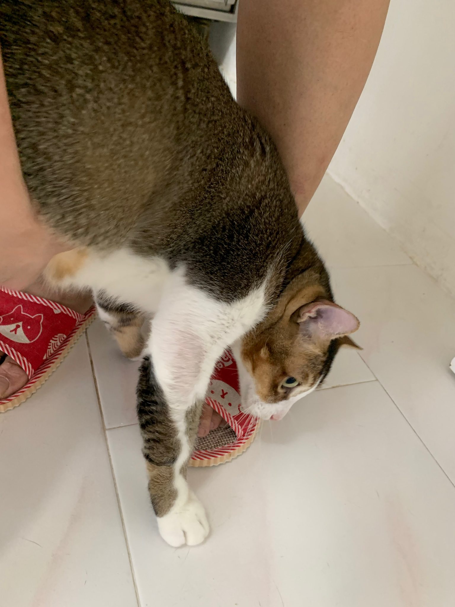 Loving boy, love to lick my toe, other cats will find him for sayang – he will help to groom other cats. He got a tendency to vomit cos he love to lick plastic also! He likes bistro chicken and a/d. To be adopted with his brother Alley.
