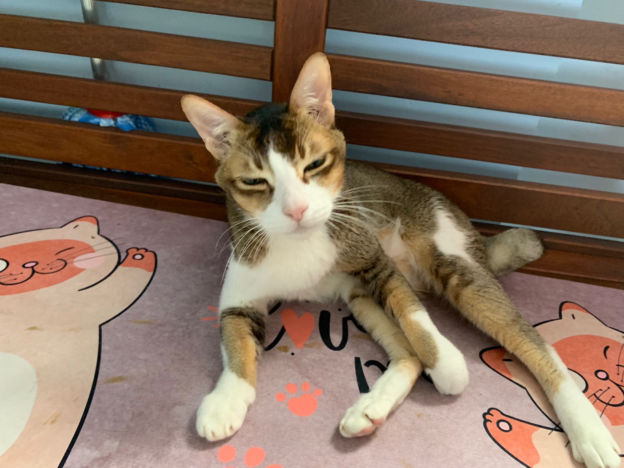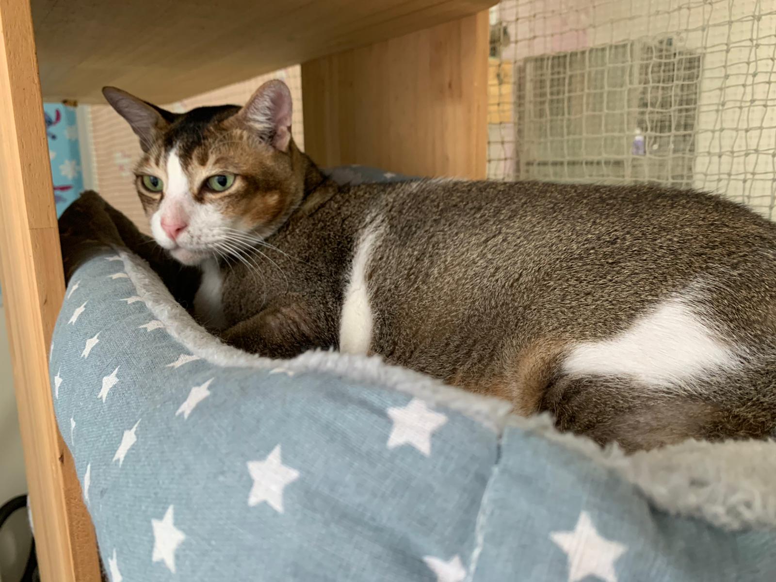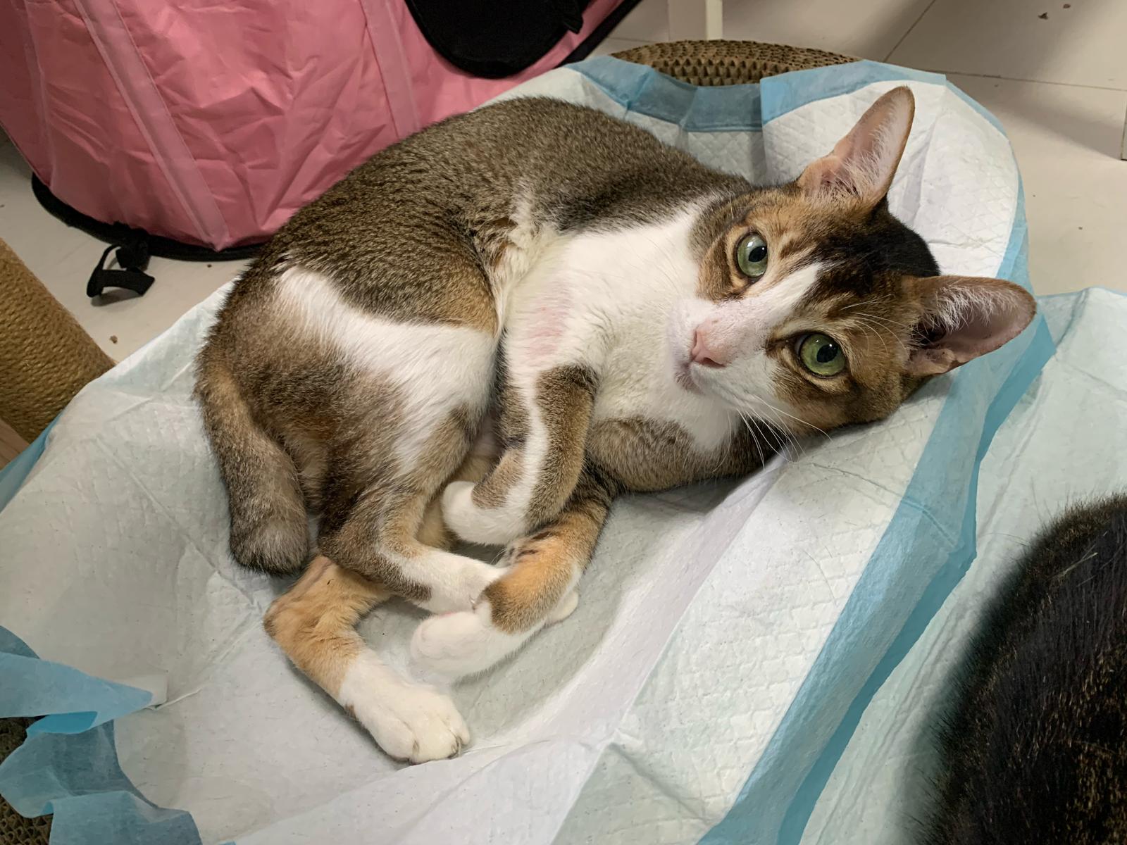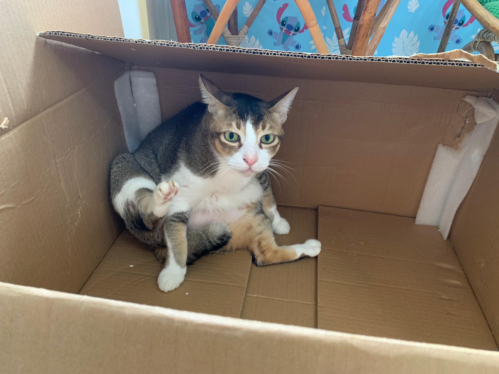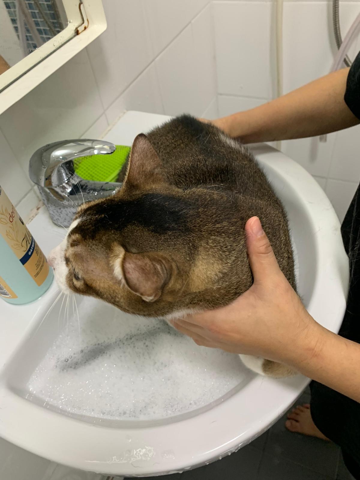 Loving boy, love to lick my toe, other cats will find him for sayang – he will help to groom other cats. He got a tendency to vomit cos he love to lick plastic also! He likes bistro chicken and a/d. To be adopted with his brother Alley.