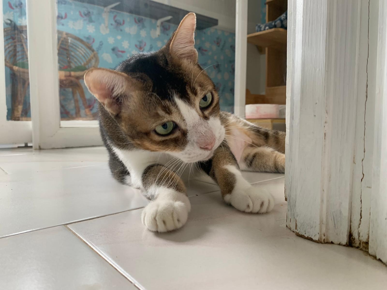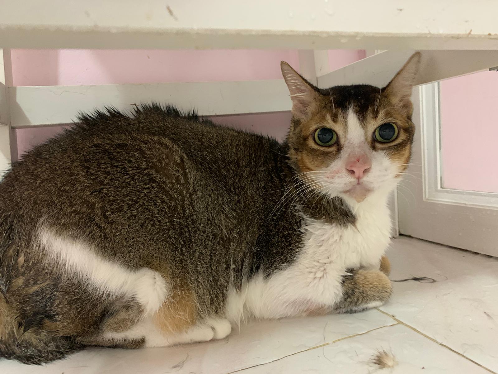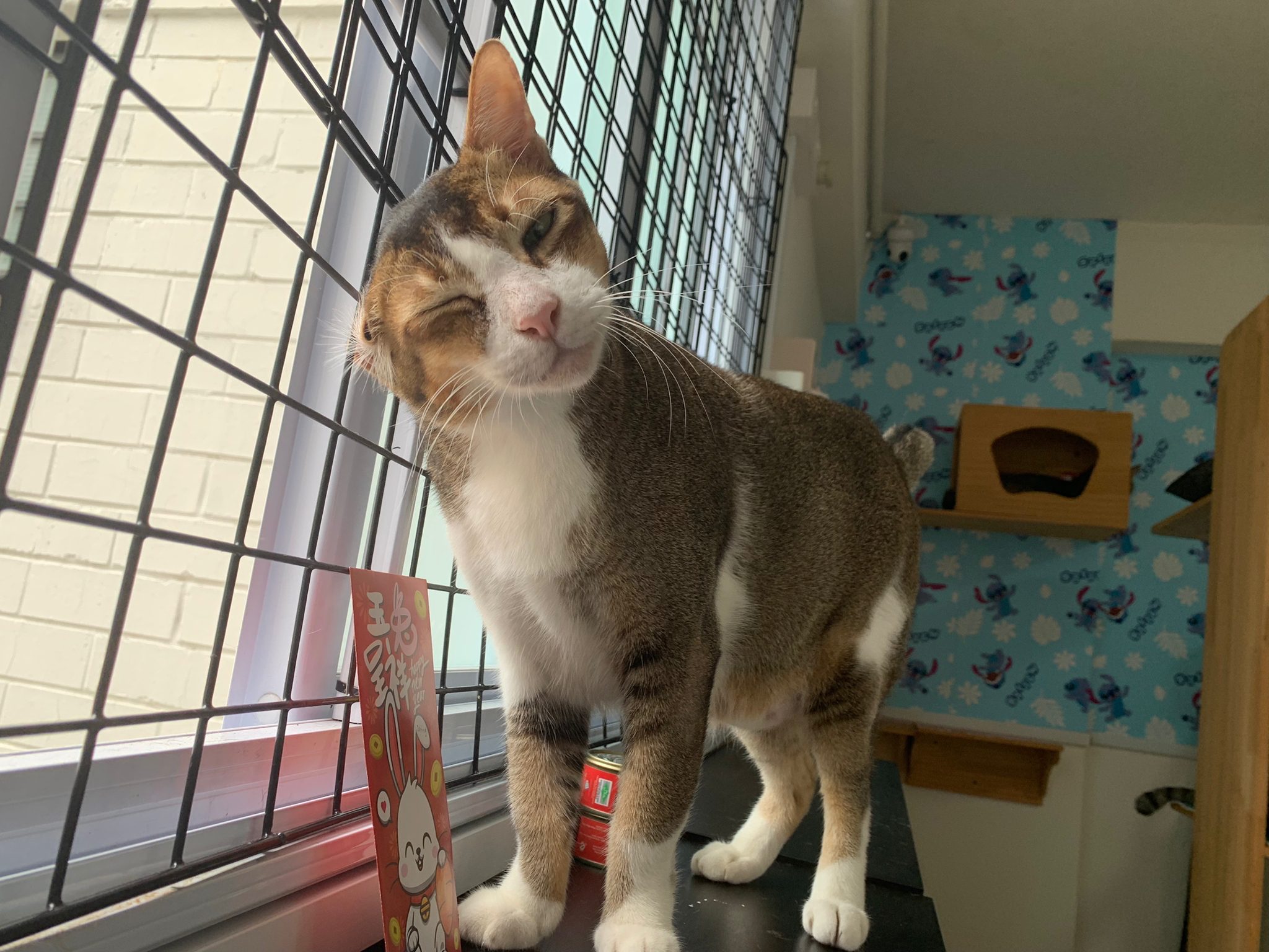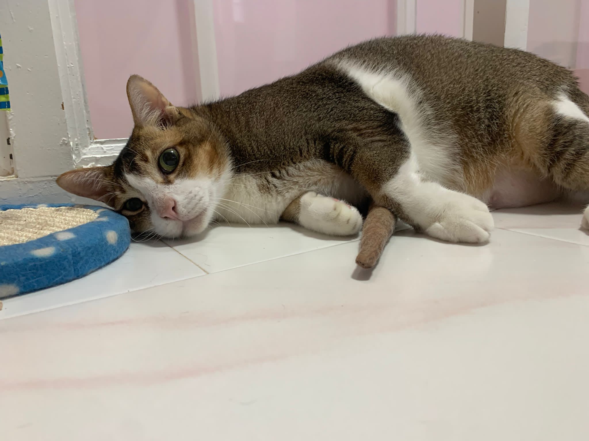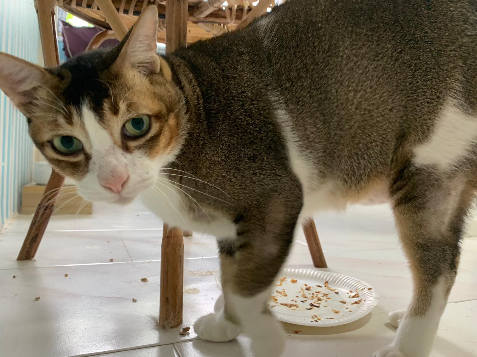Loving boy, love to lick my toe, other cats will find him for sayang – he will help to groom other cats. He got a tendency to vomit cos he love to lick plastic also! He likes bistro chicken and a/d. To be adopted with his brother Alley.