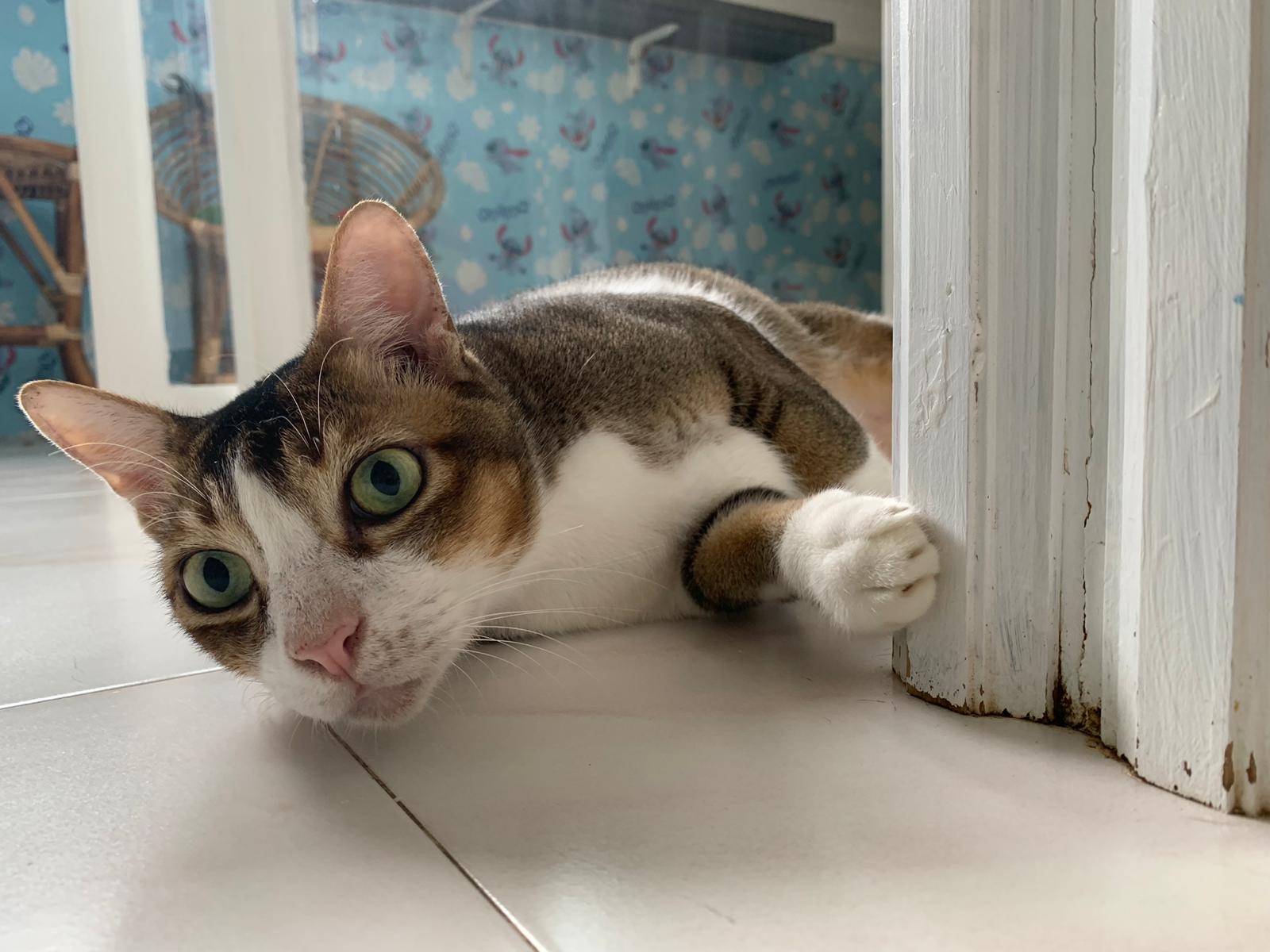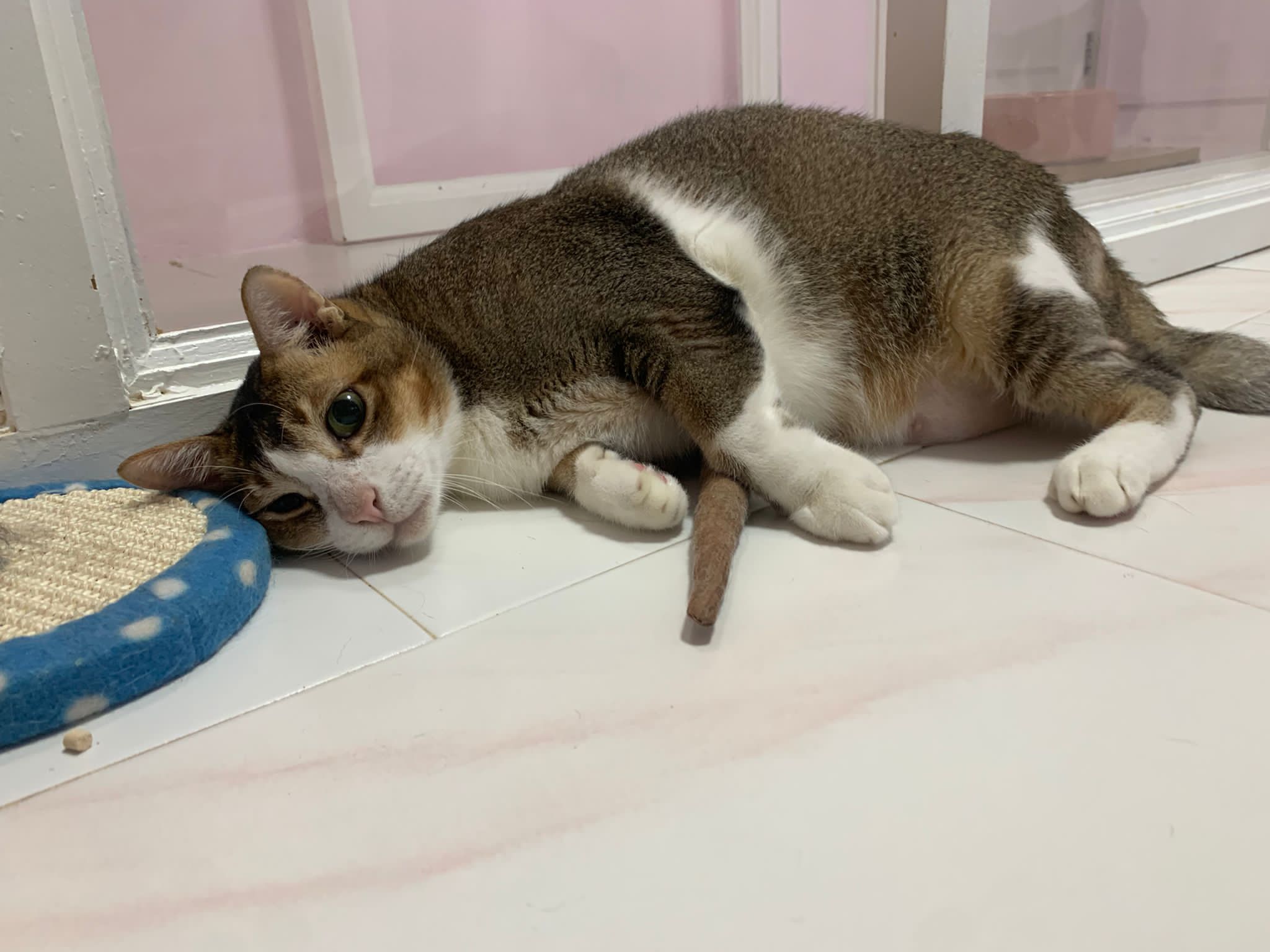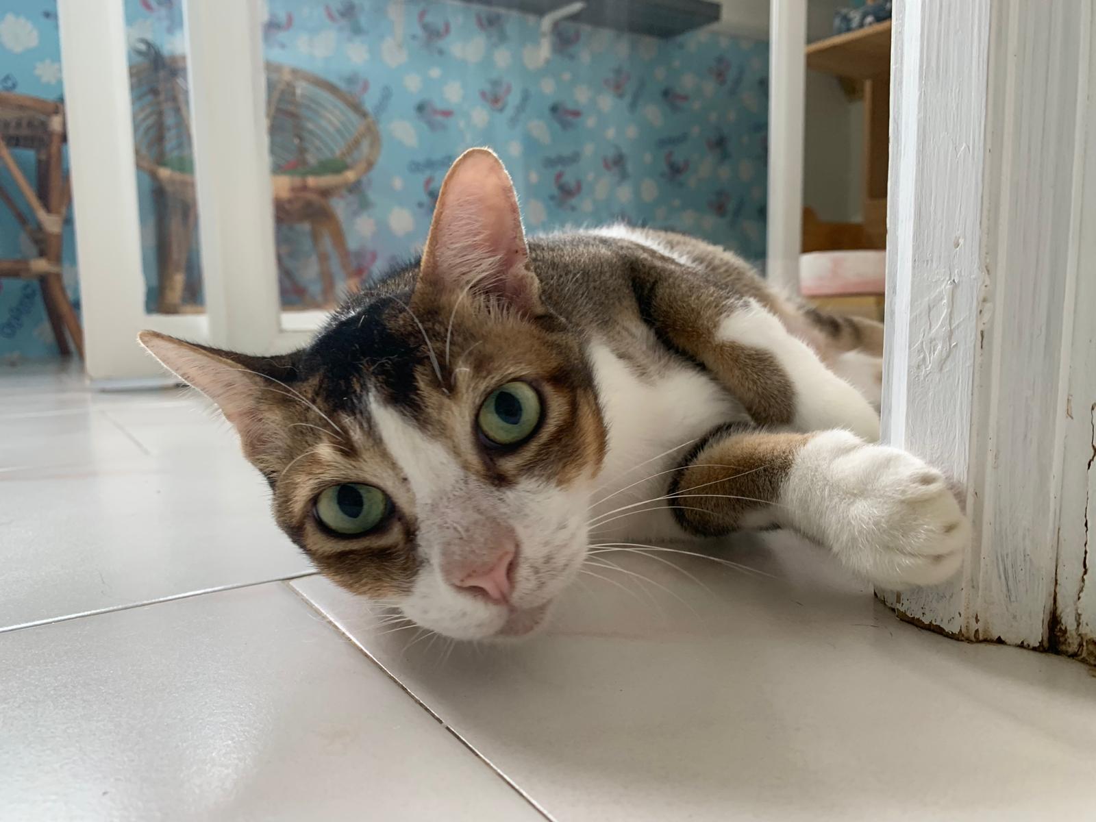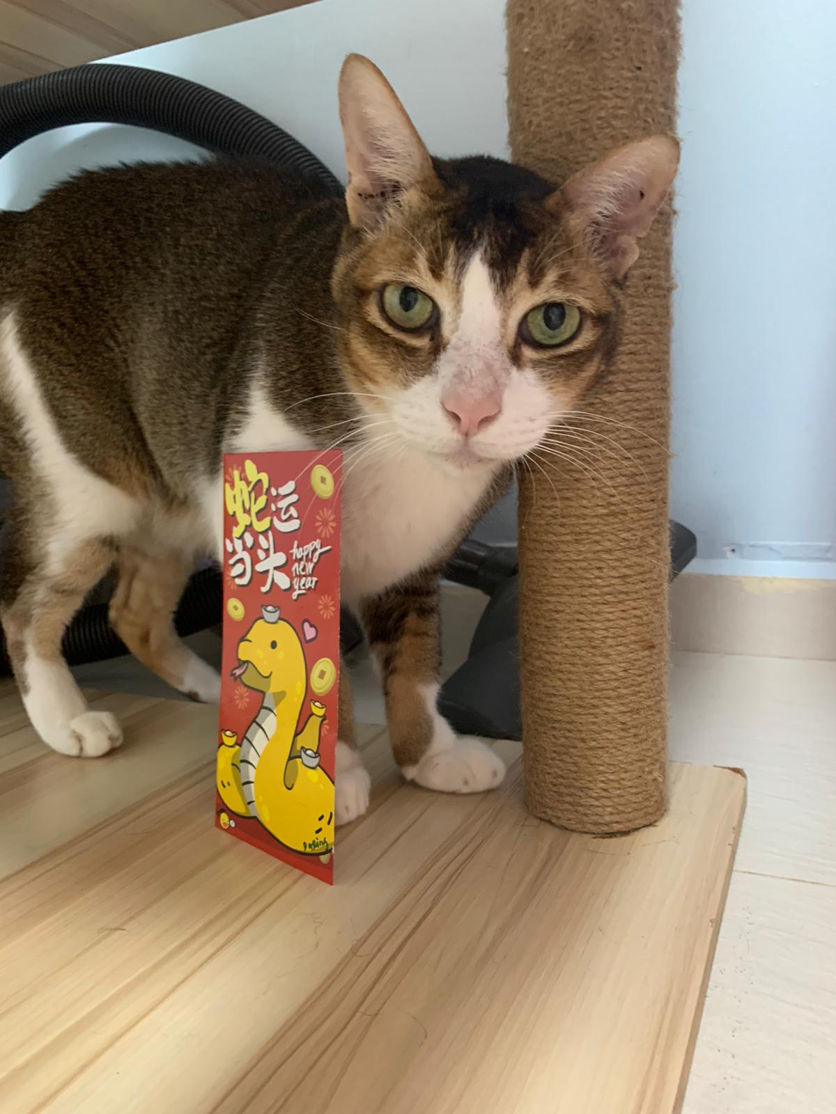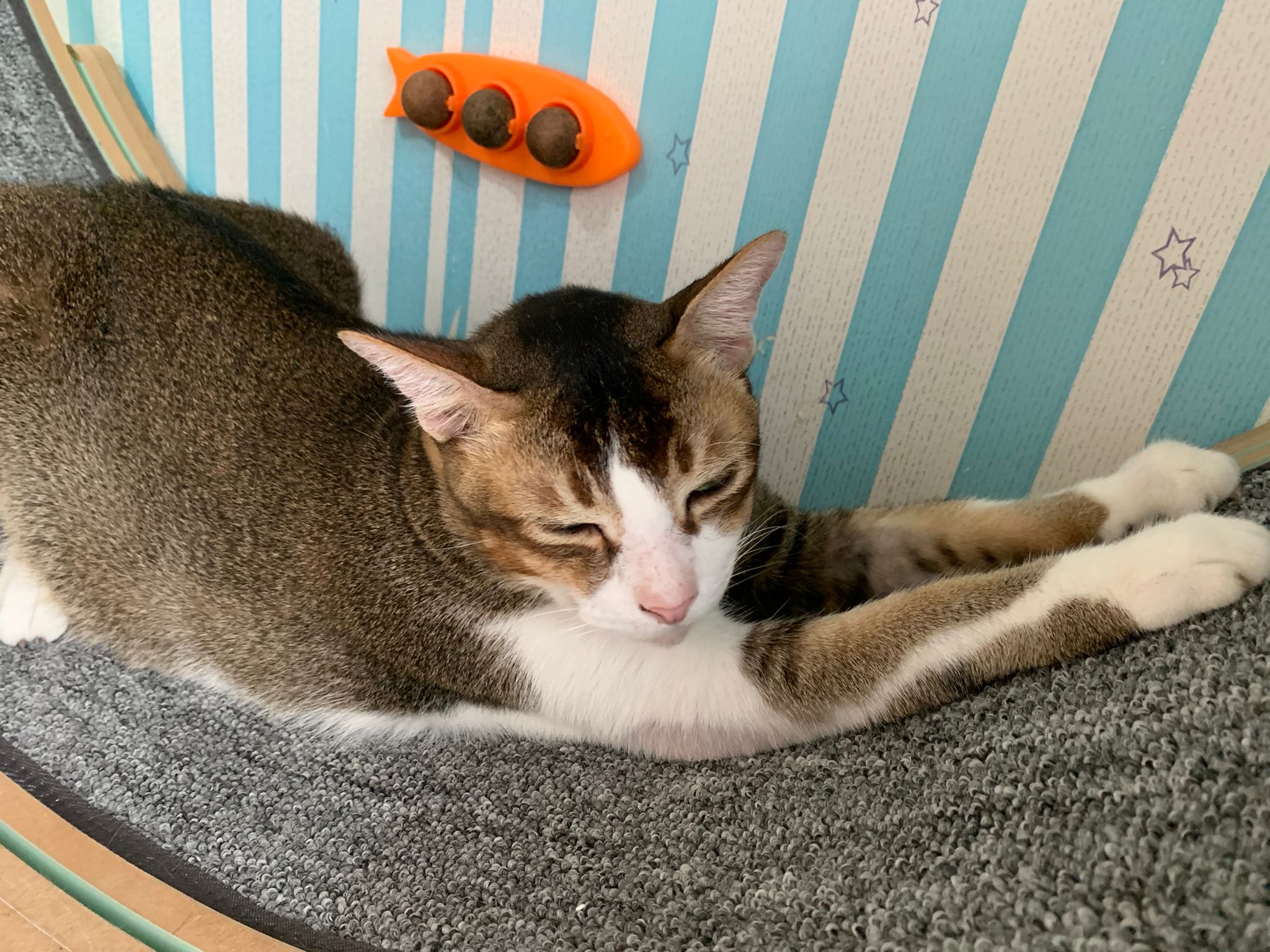 Loving boy, love to lick my toe, other cats will find him for sayang – he will help to groom other cats. He got a tendency to vomit cos he love to lick plastic also! He likes bistro chicken and a/d. To be adopted with his brother Alley.