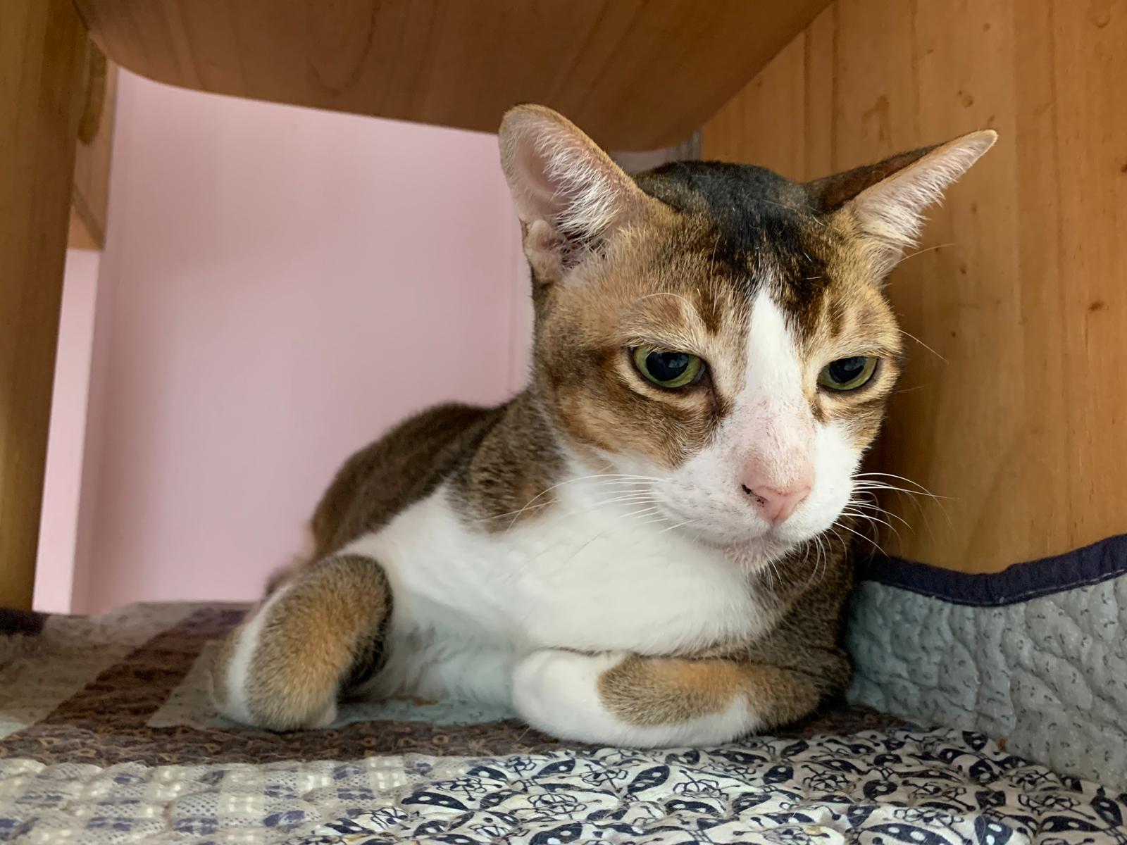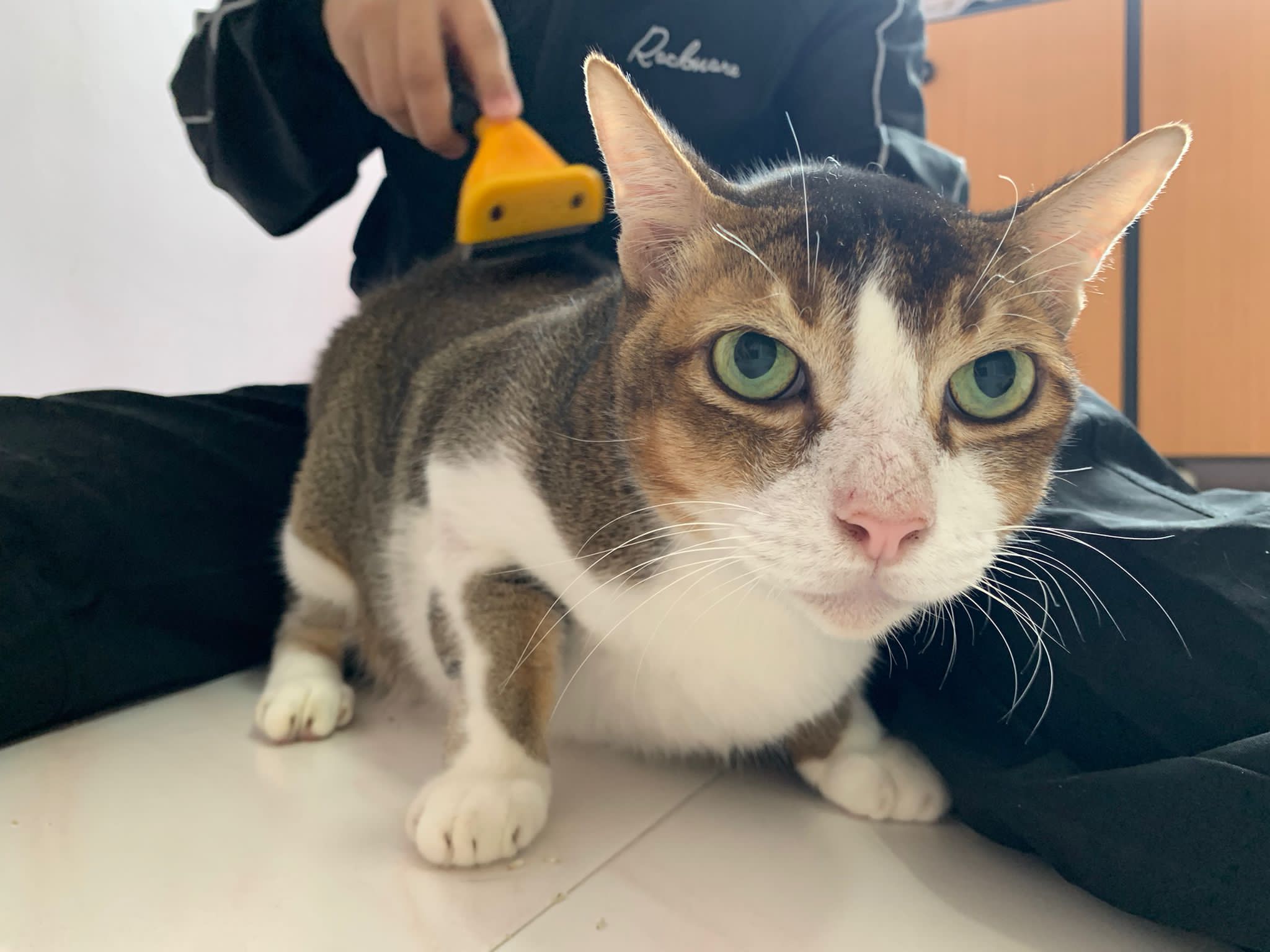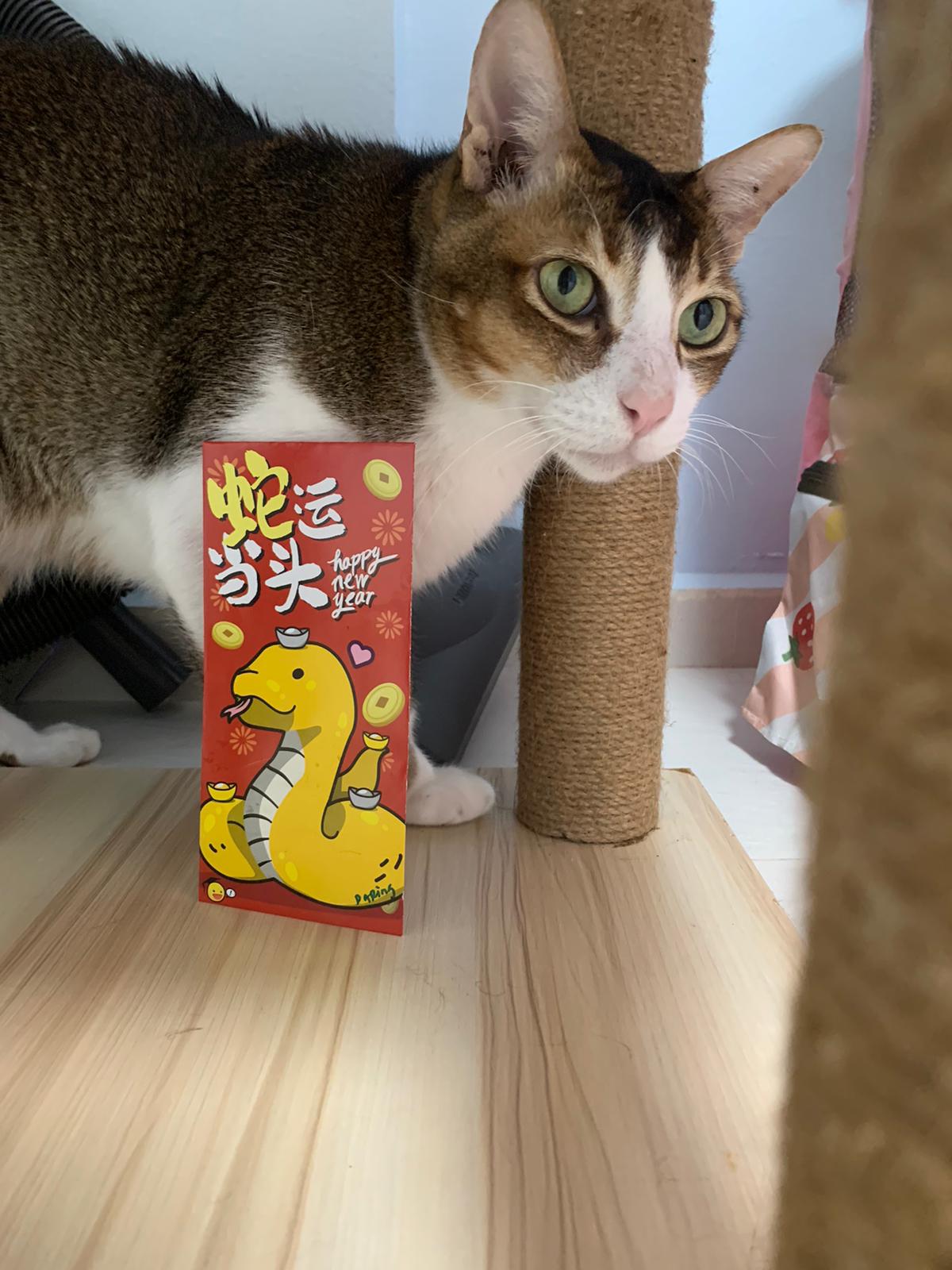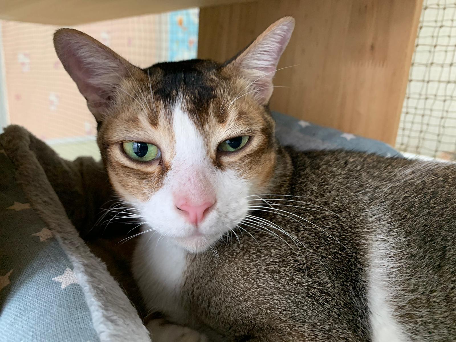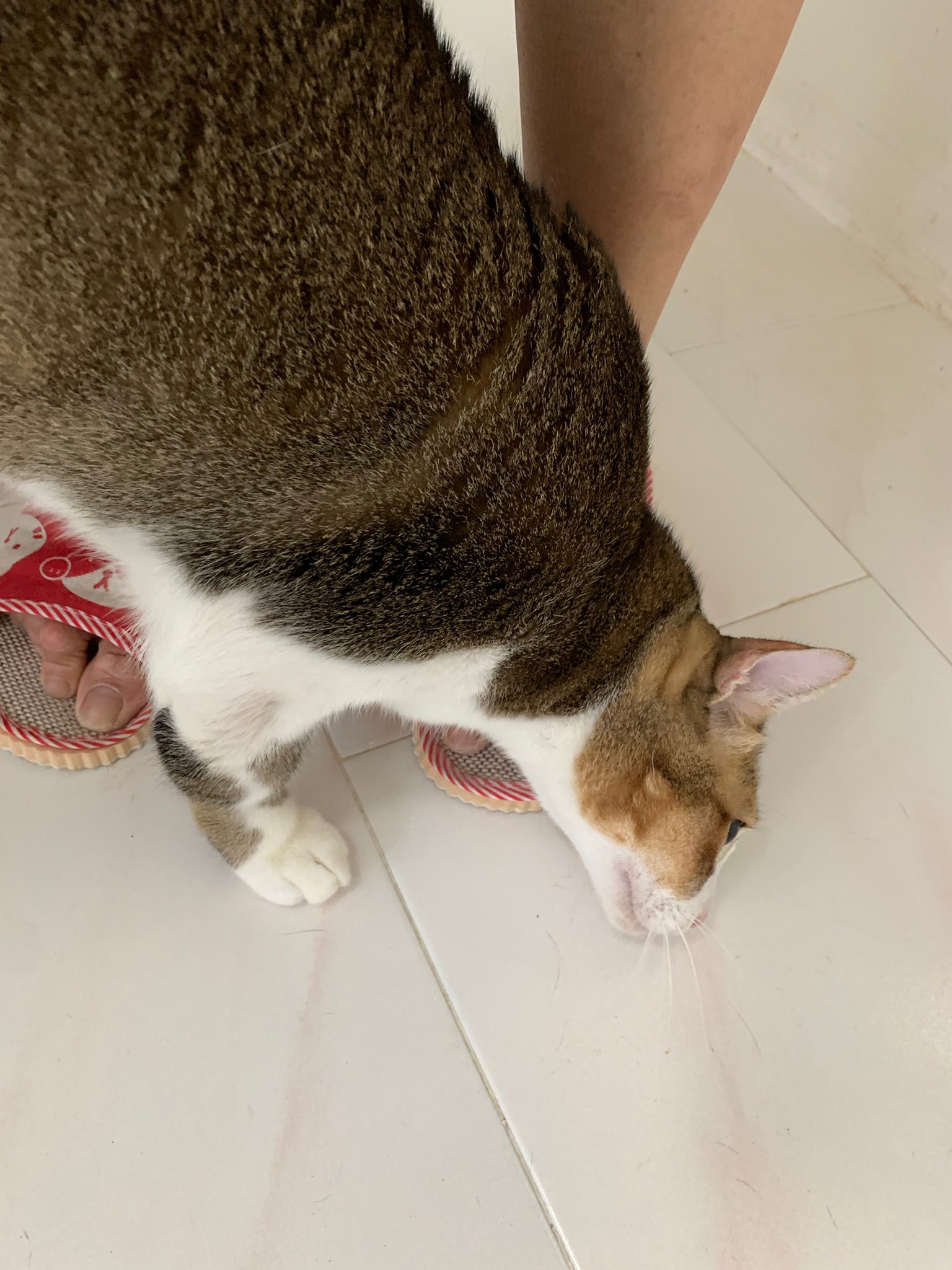 Loving boy, love to lick my toe, other cats will find him for sayang – he will help to groom other cats. He got a tendency to vomit cos he love to lick plastic also! He likes bistro chicken and a/d. To be adopted with his brother Alley.