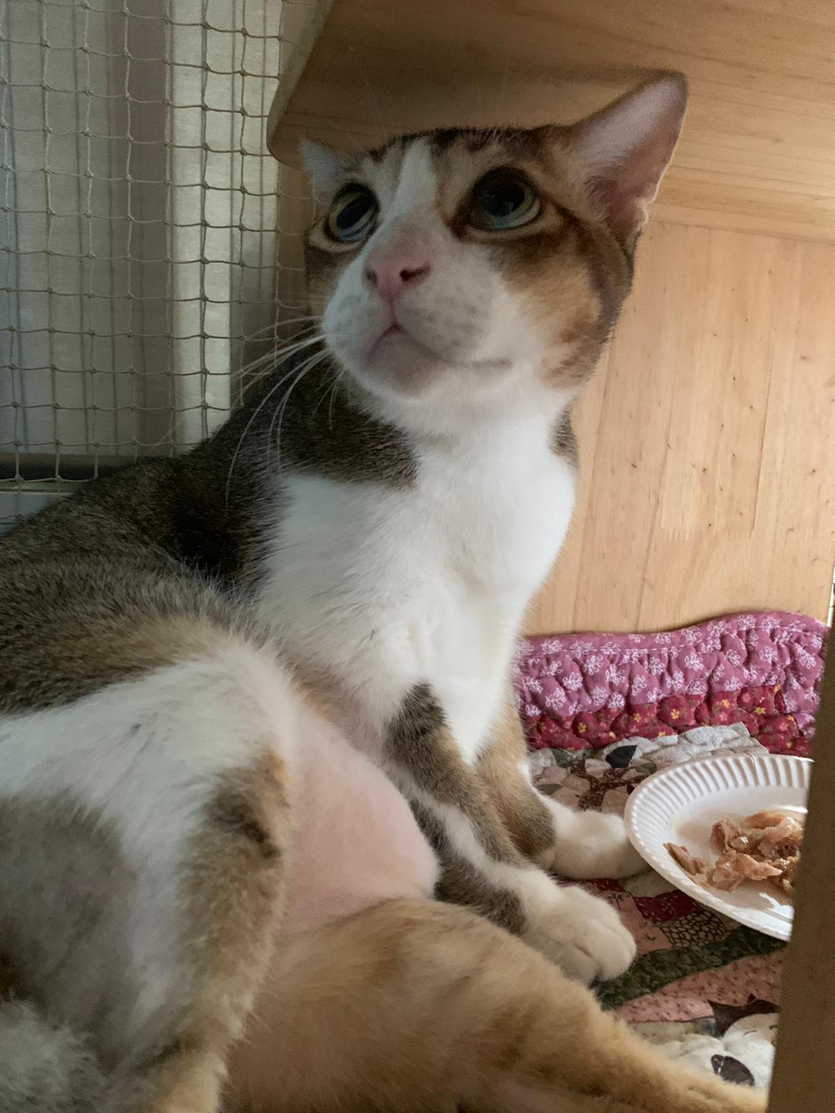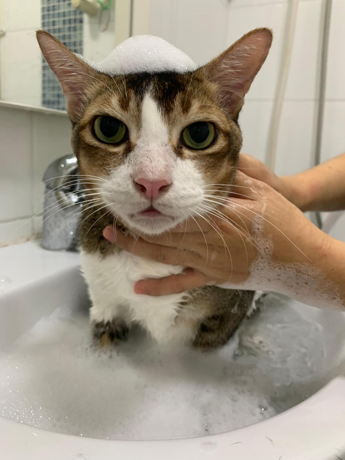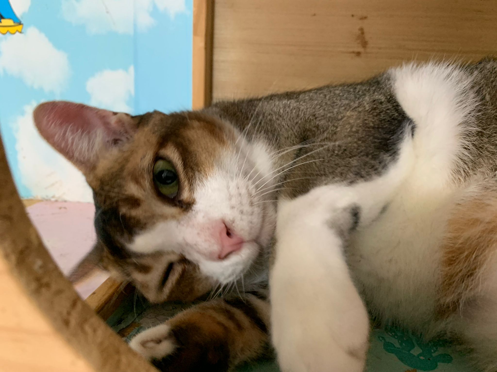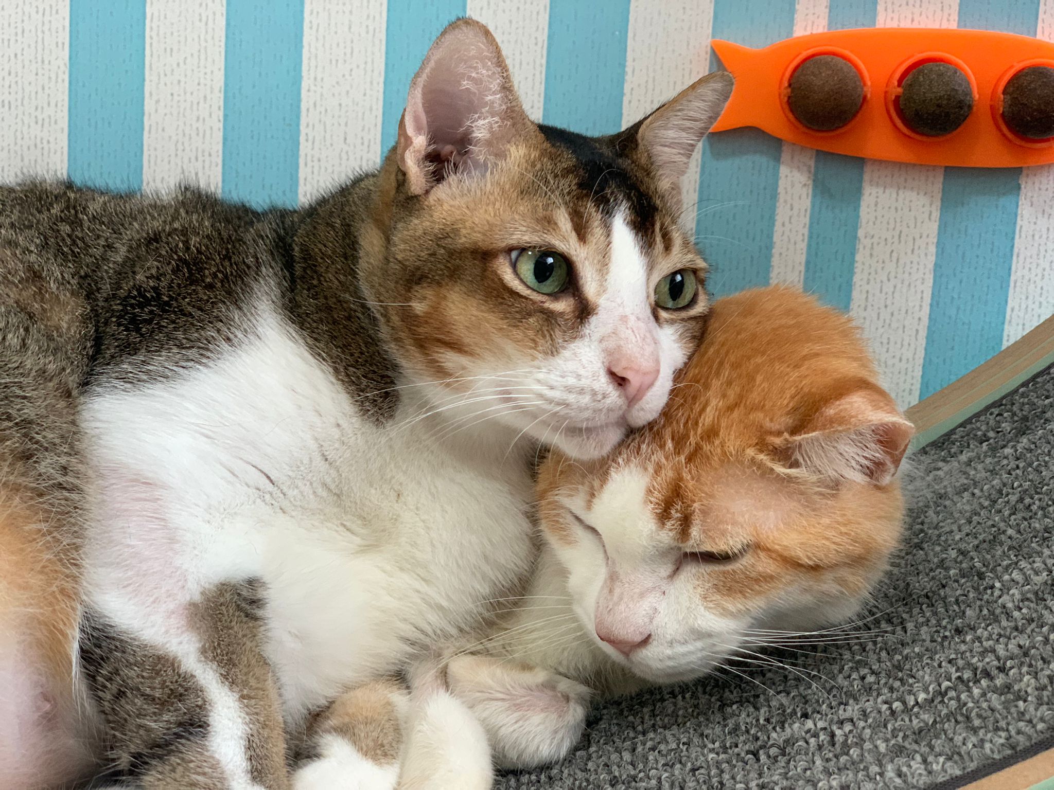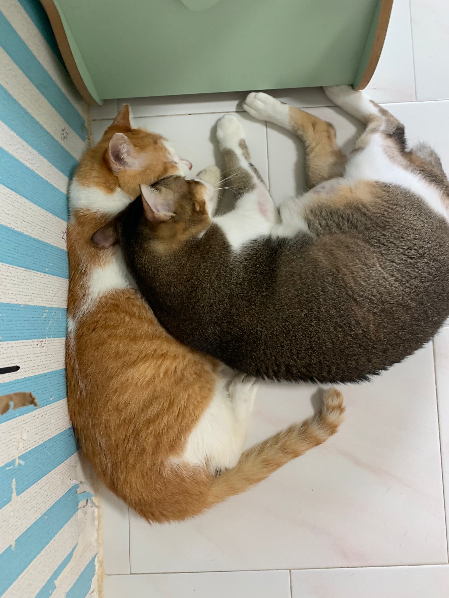 Loving boy, love to lick my toe, other cats will find him for sayang – he will help to groom other cats. He got a tendency to vomit cos he love to lick plastic also! He likes bistro chicken and a/d. To be adopted with his brother Alley.