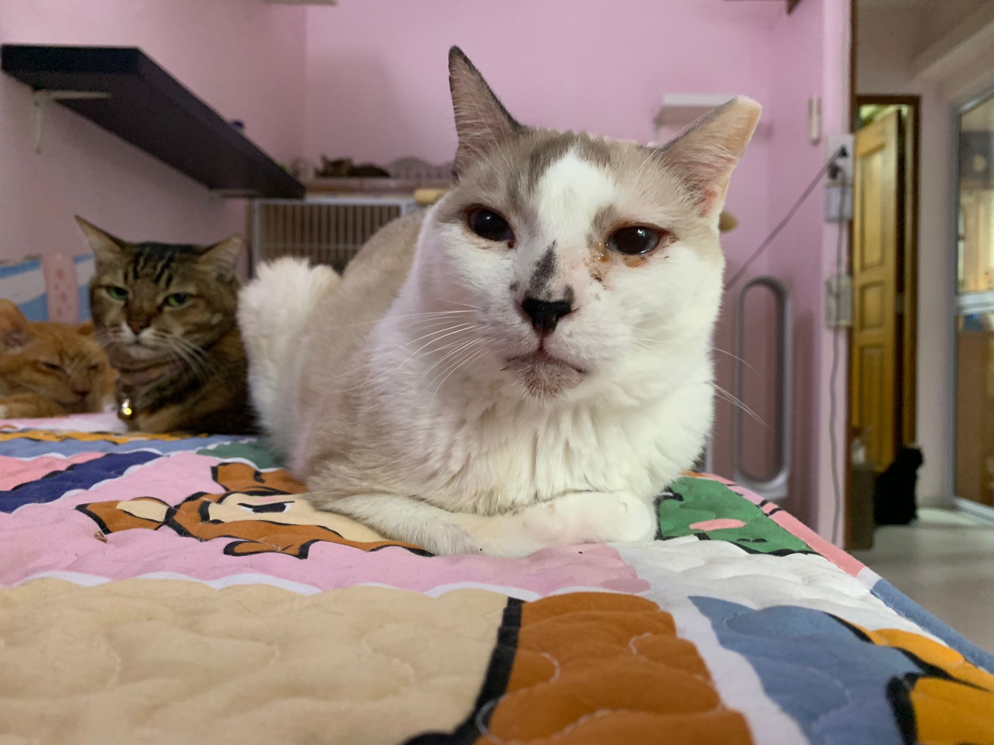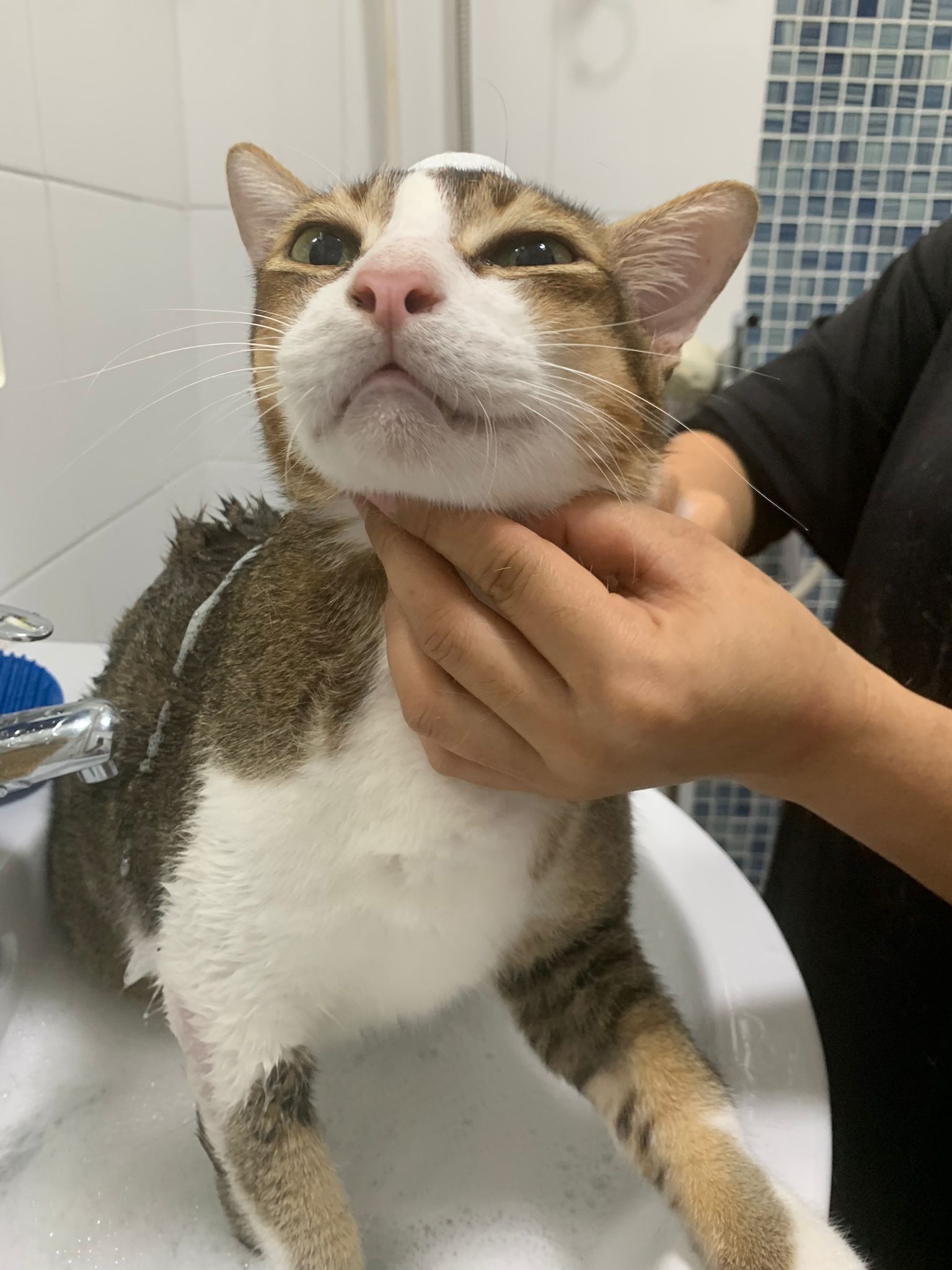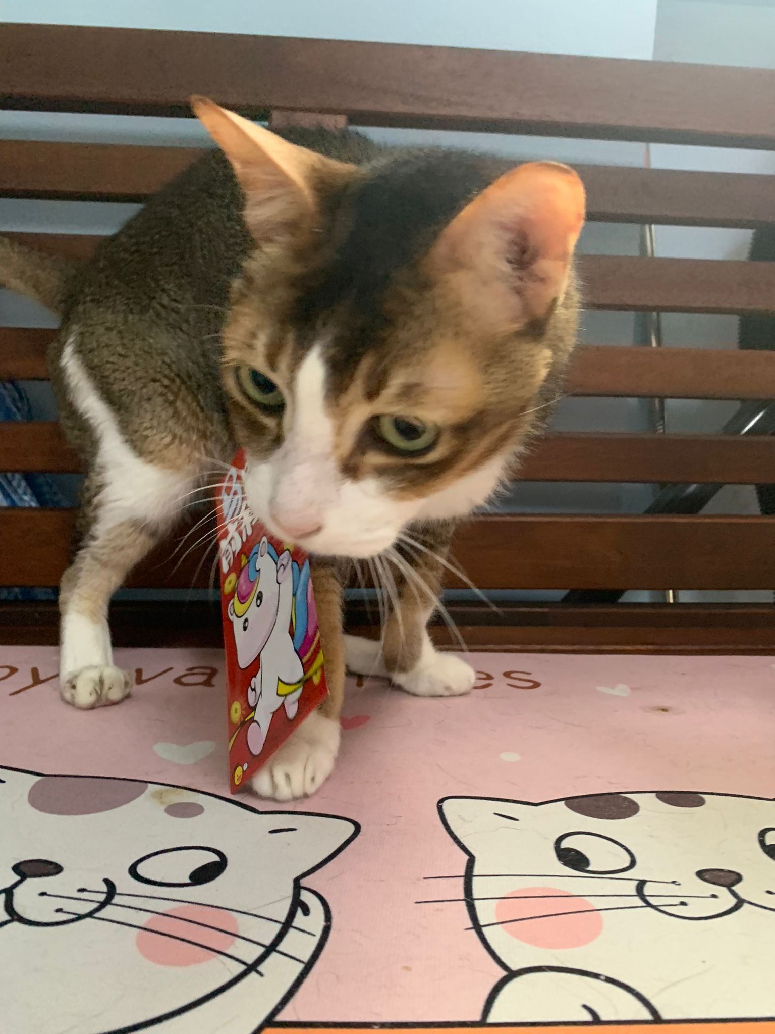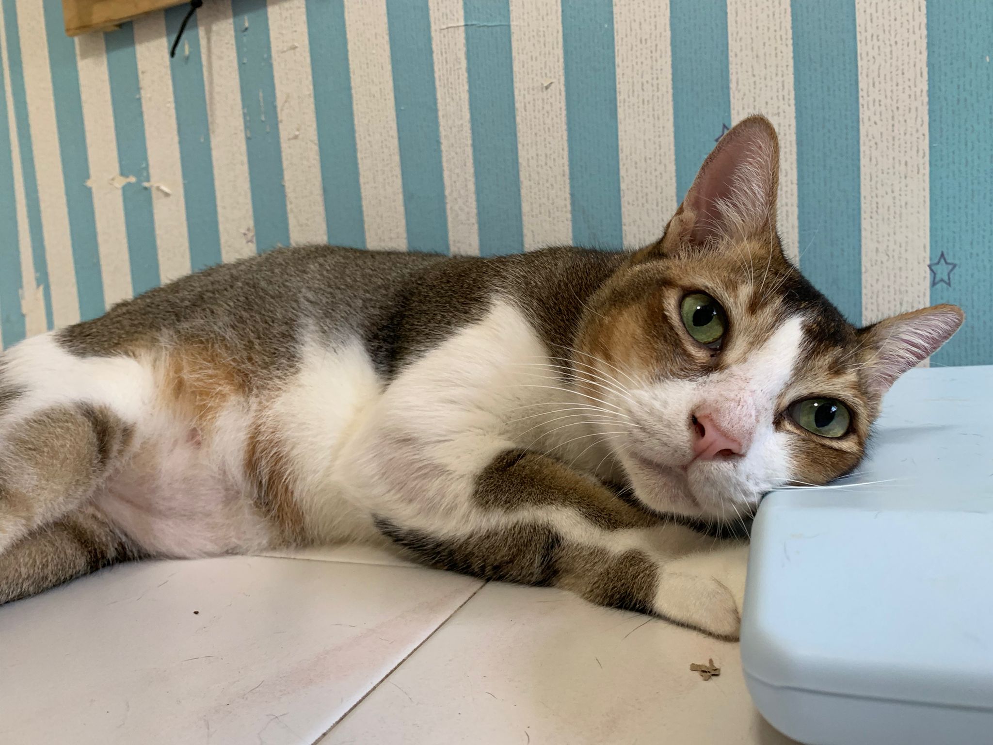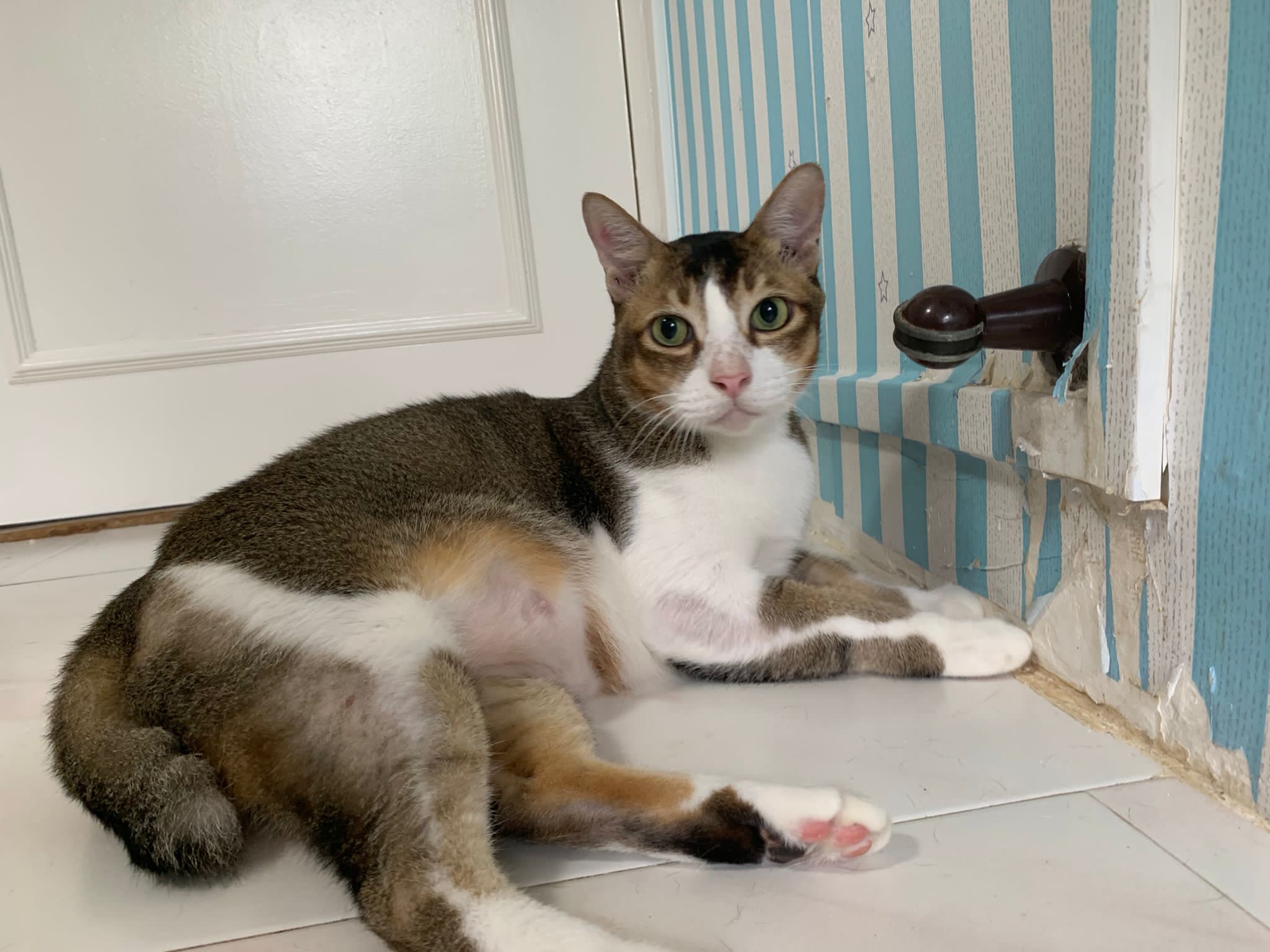 Loving boy, love to lick my toe, other cats will find him for sayang – he will help to groom other cats. He got a tendency to vomit cos he love to lick plastic also! He likes bistro chicken and a/d. To be adopted with his brother Alley.