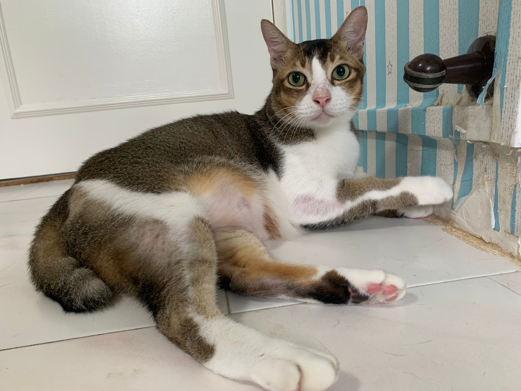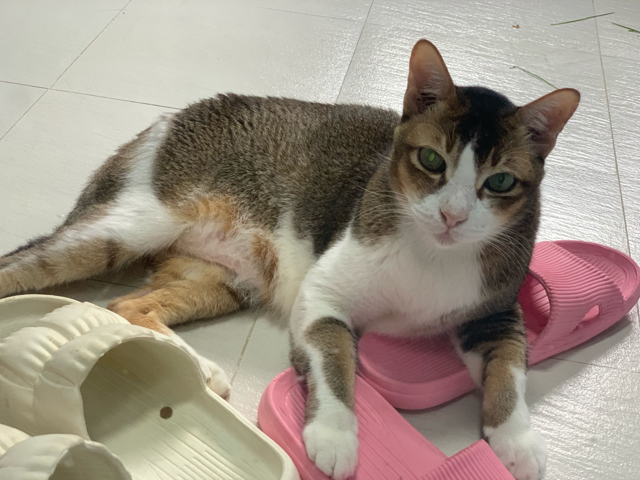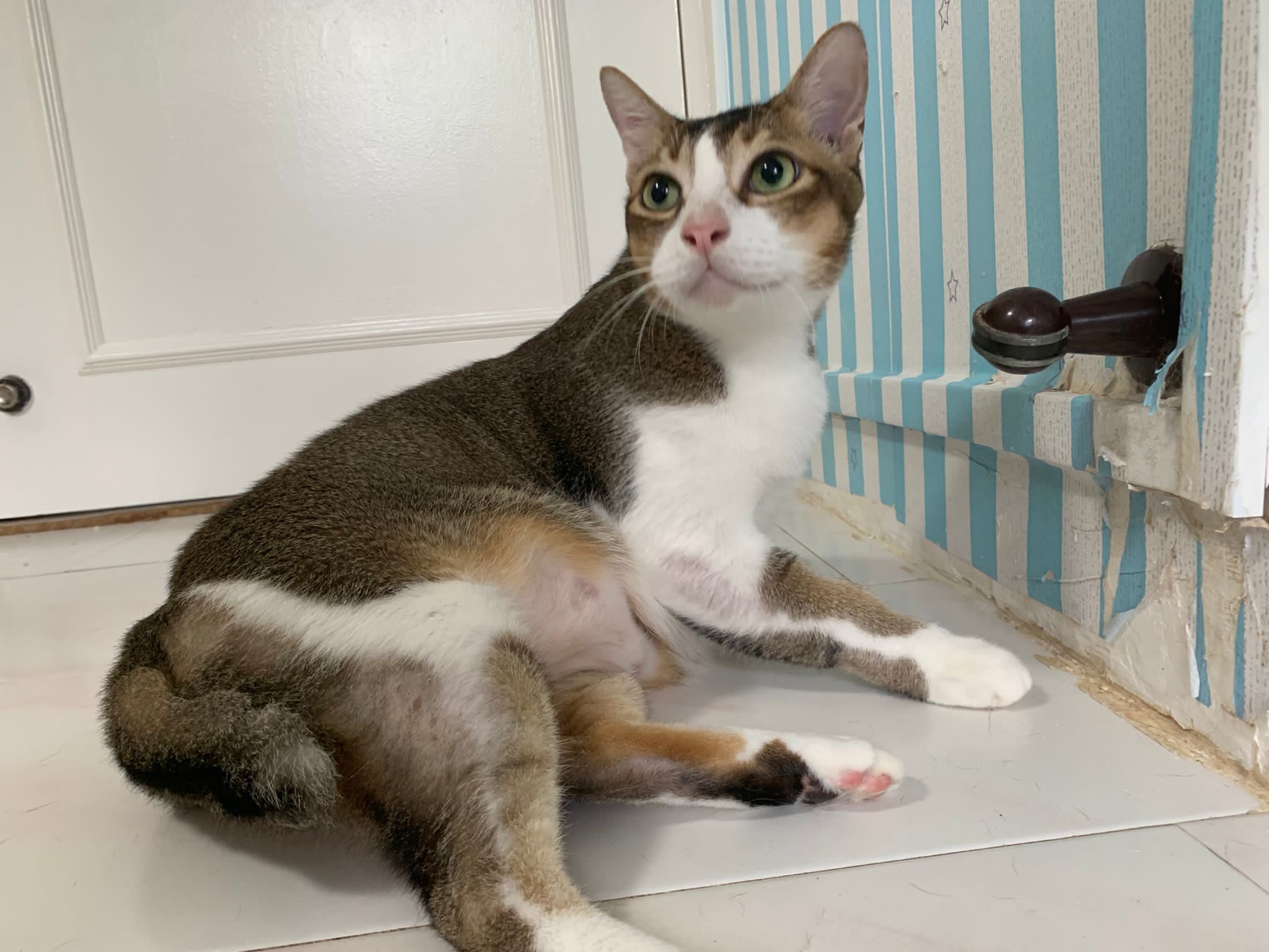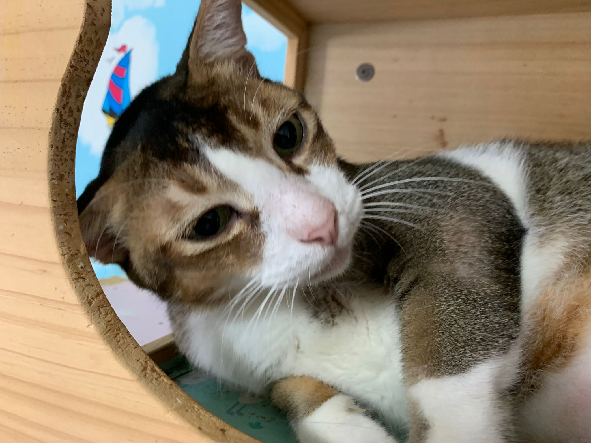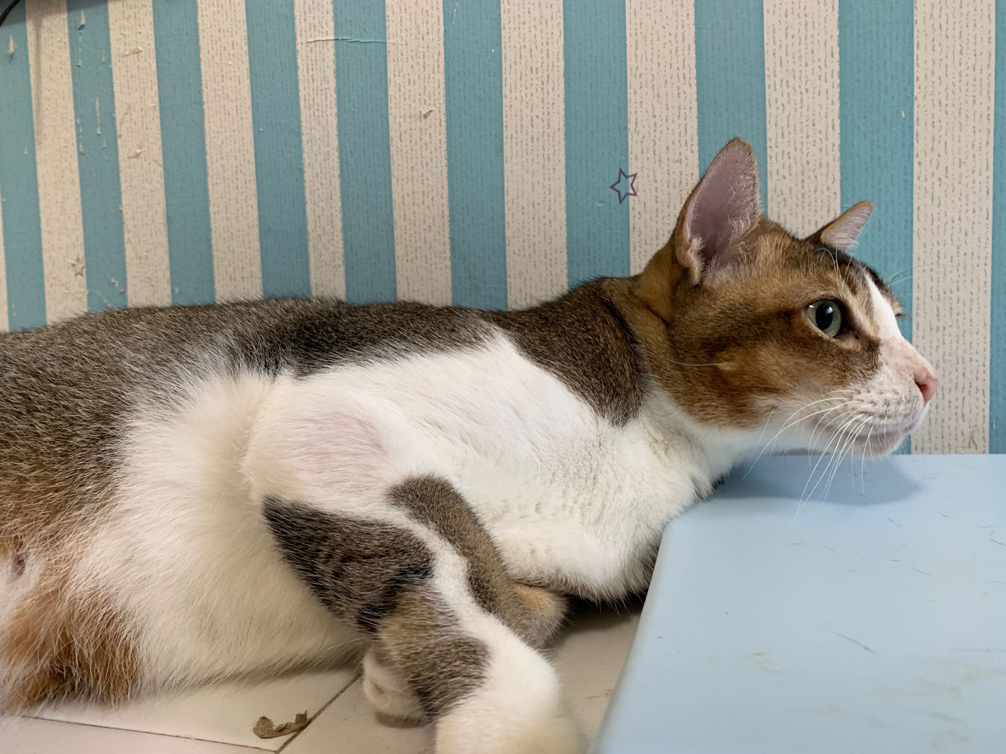 Loving boy, love to lick my toe, other cats will find him for sayang – he will help to groom other cats. He got a tendency to vomit cos he love to lick plastic also! He likes bistro chicken and a/d. To be adopted with his brother Alley.