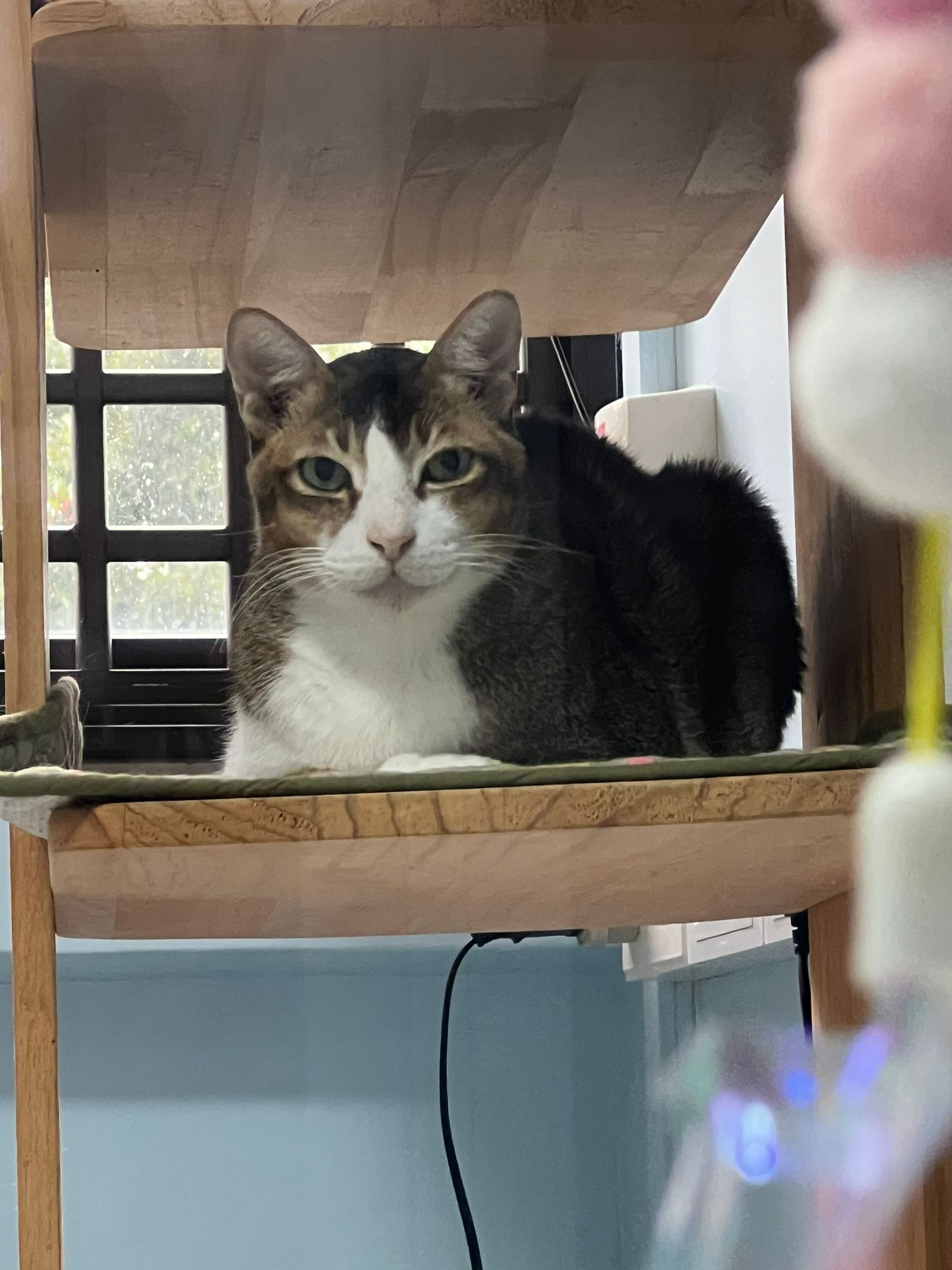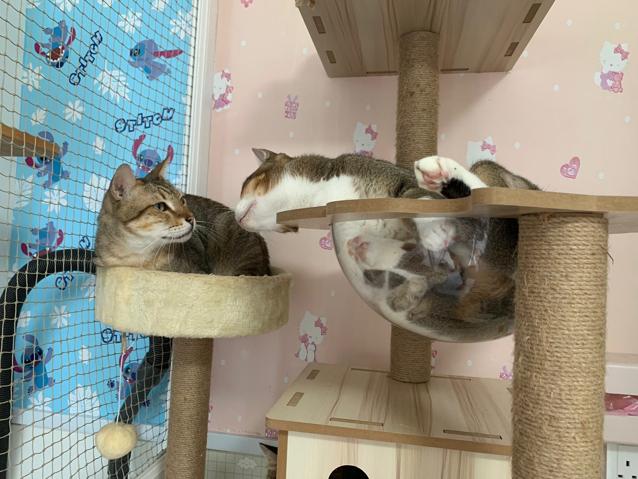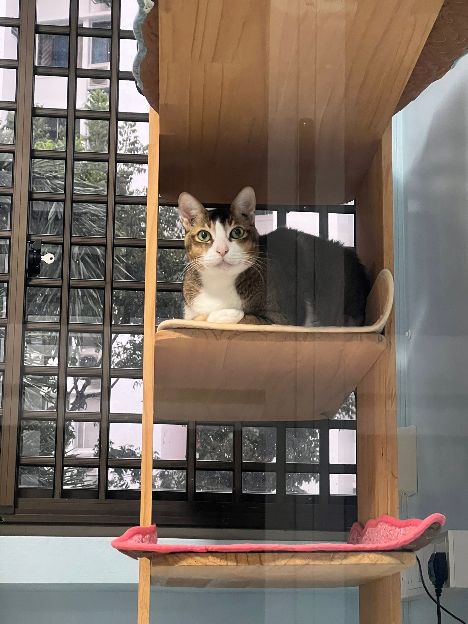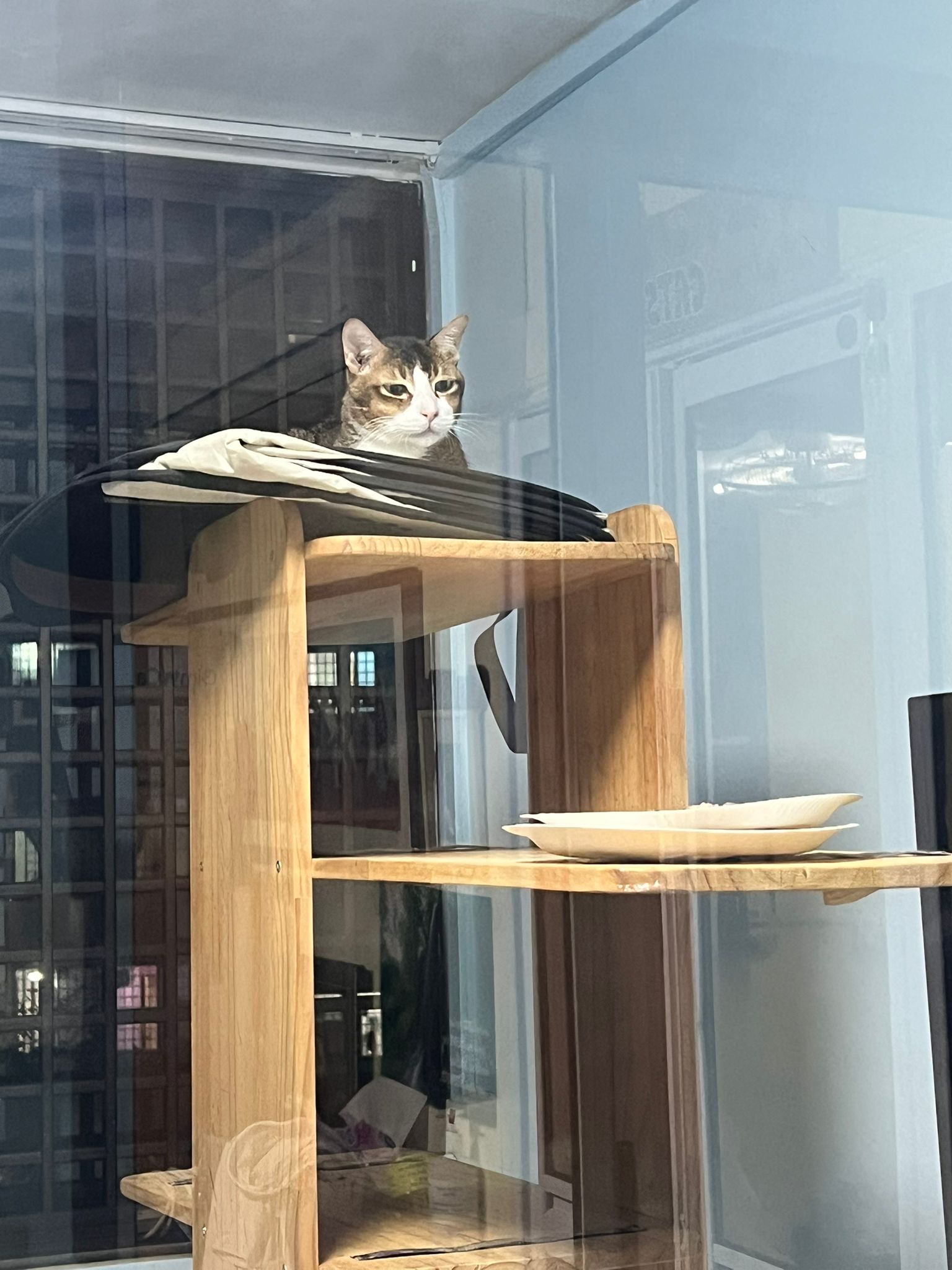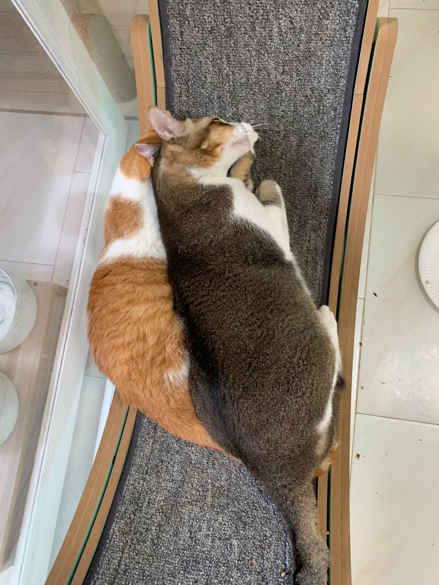 1pm+: I Waited so long their bench delivery not here yet. Today throw half their cat tree away. Rearrange a little. Tmr then give them the bench 🙂