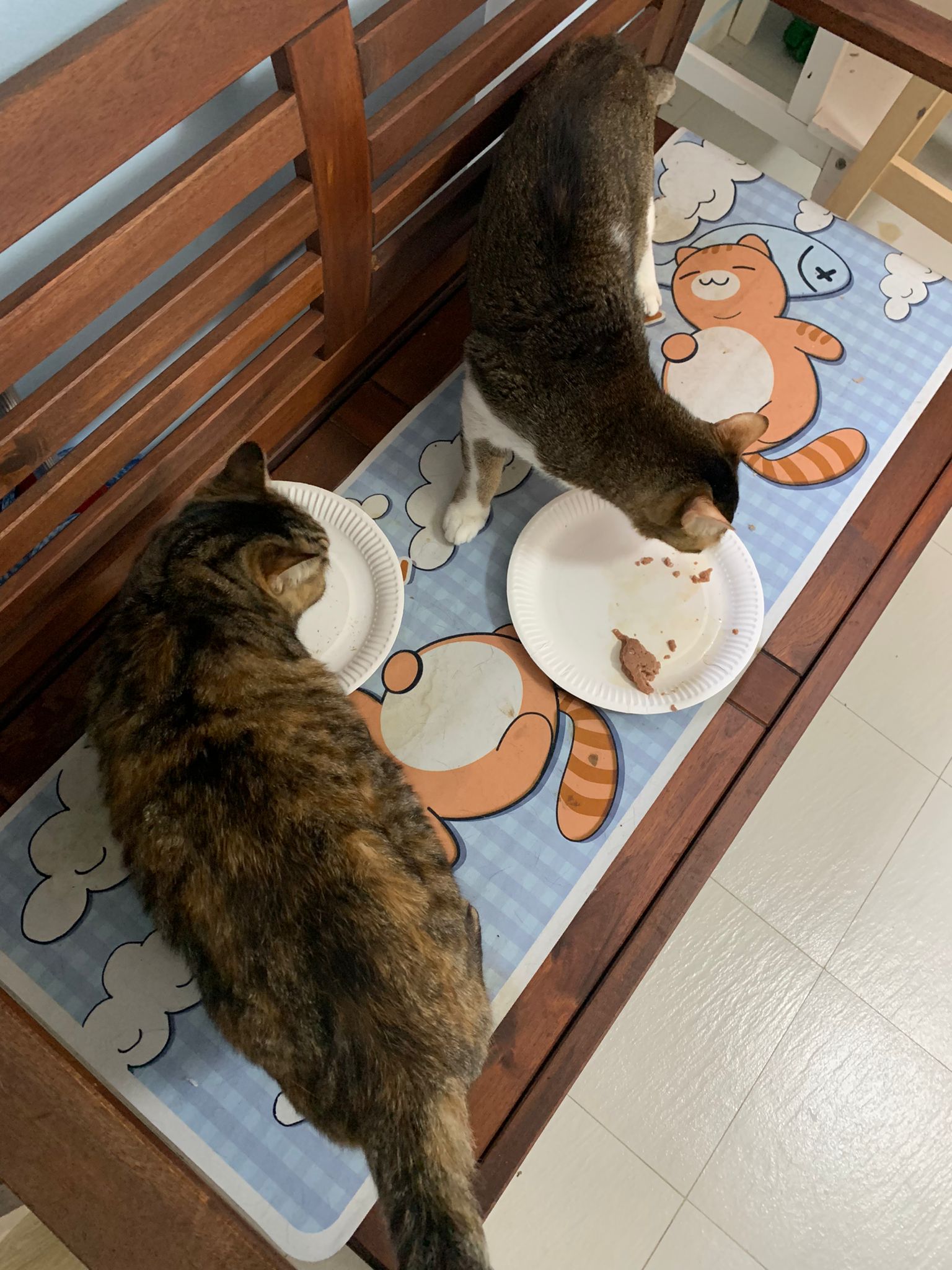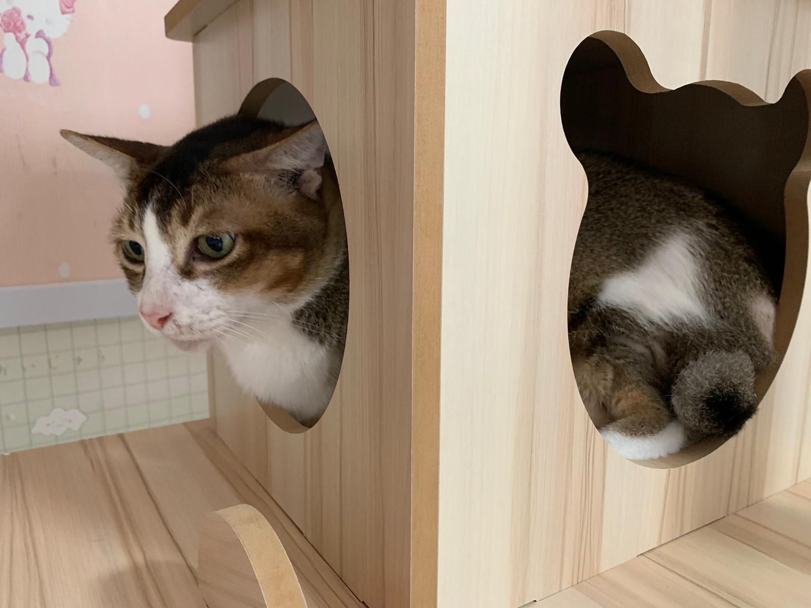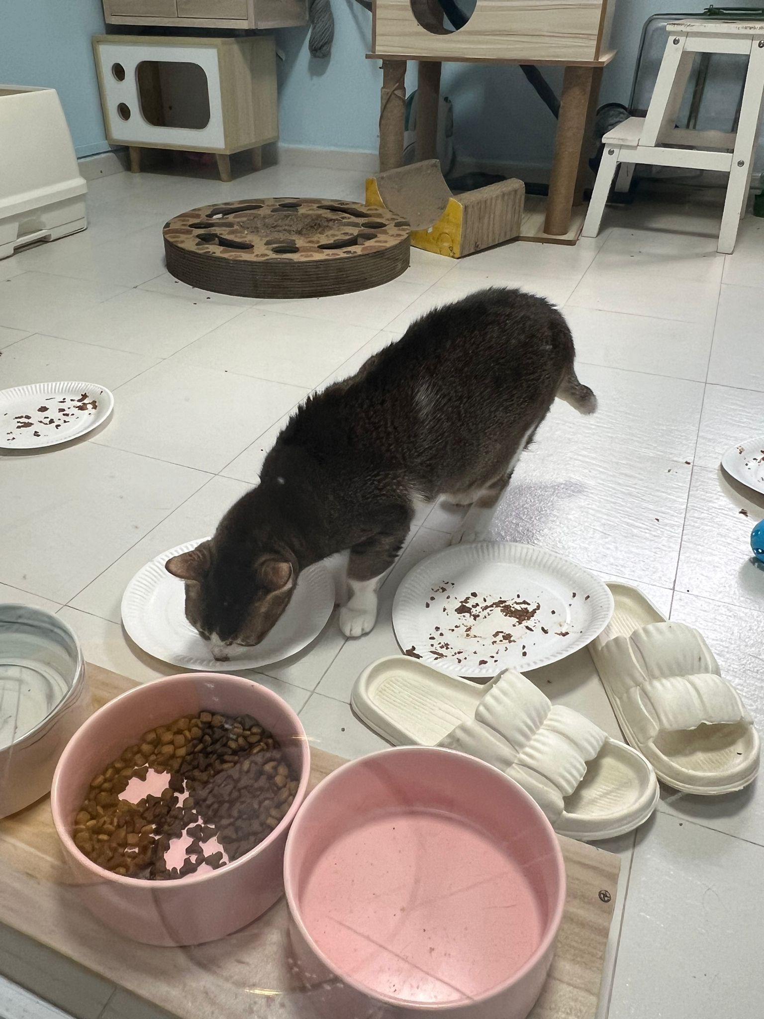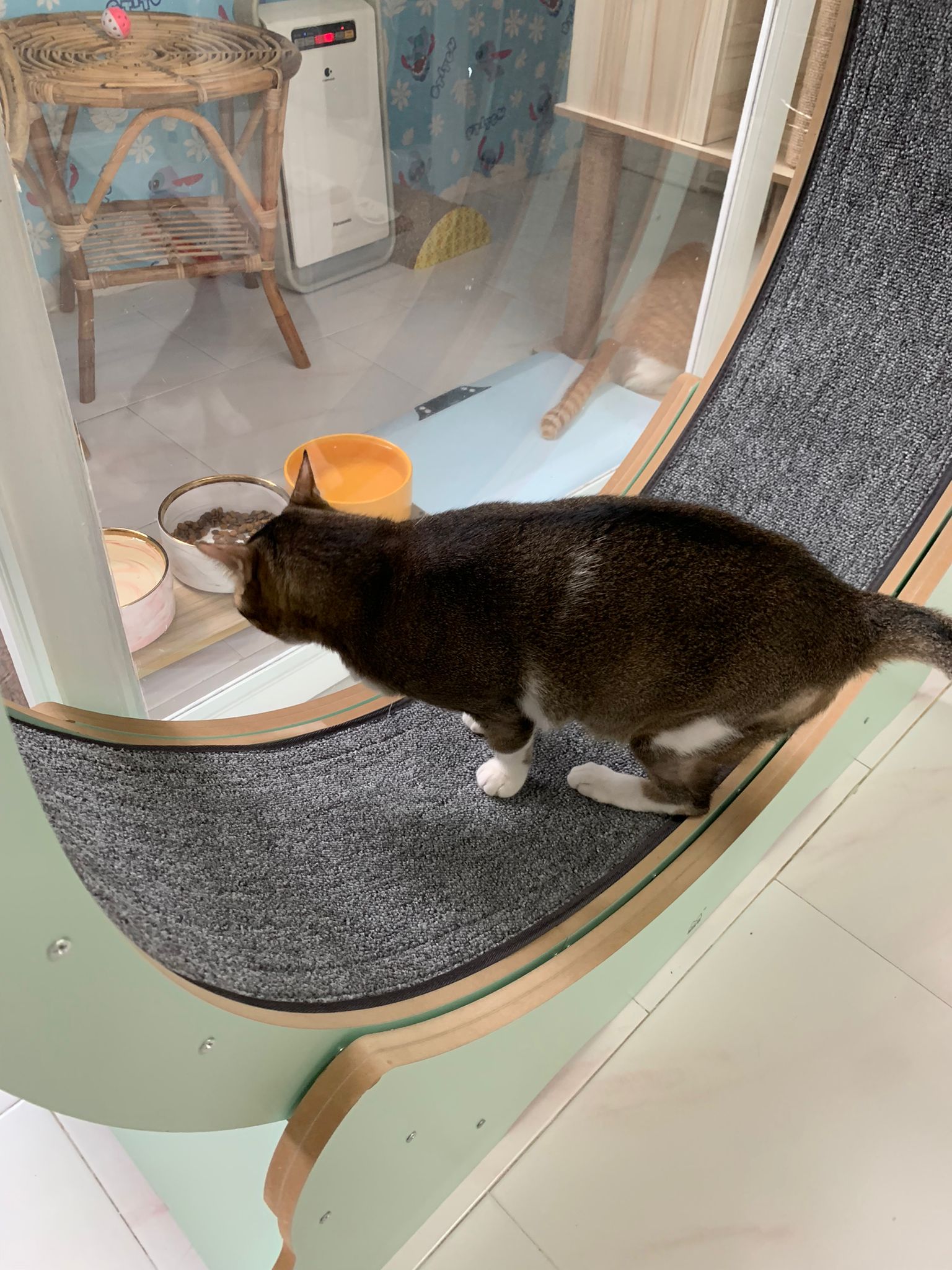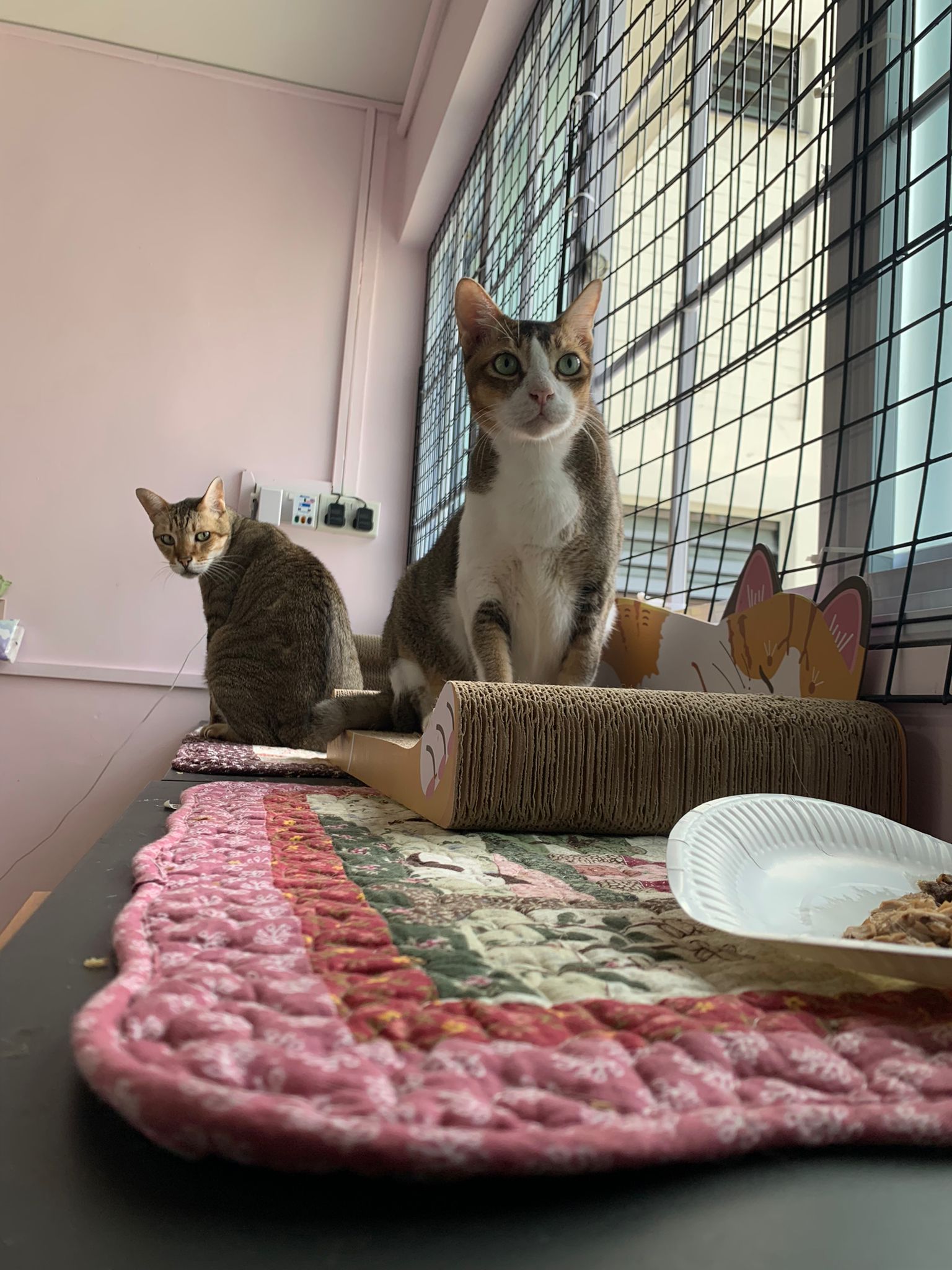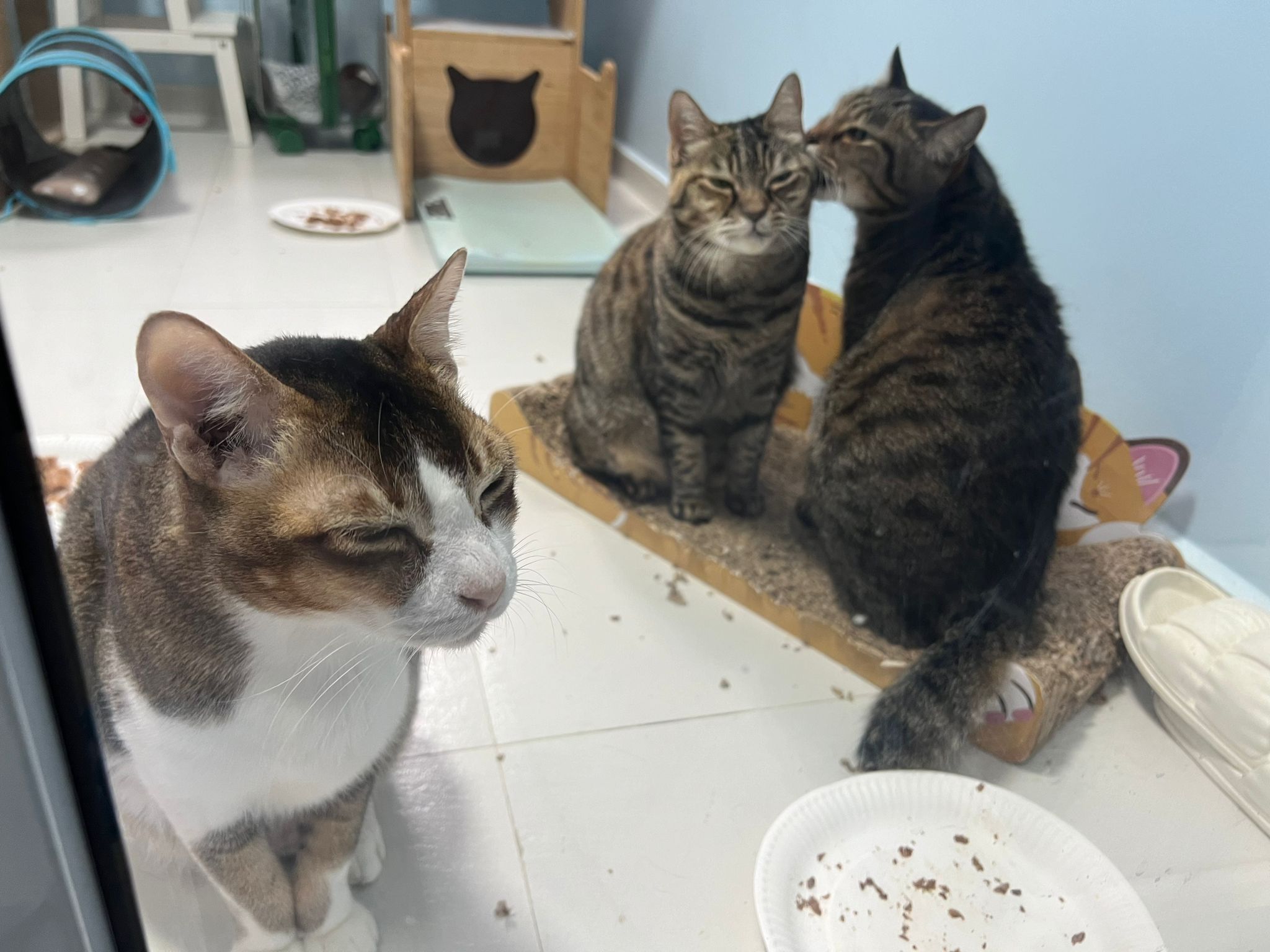 1pm+: I Waited so long their bench delivery not here yet. Today throw half their cat tree away. Rearrange a little. Tmr then give them the bench 🙂