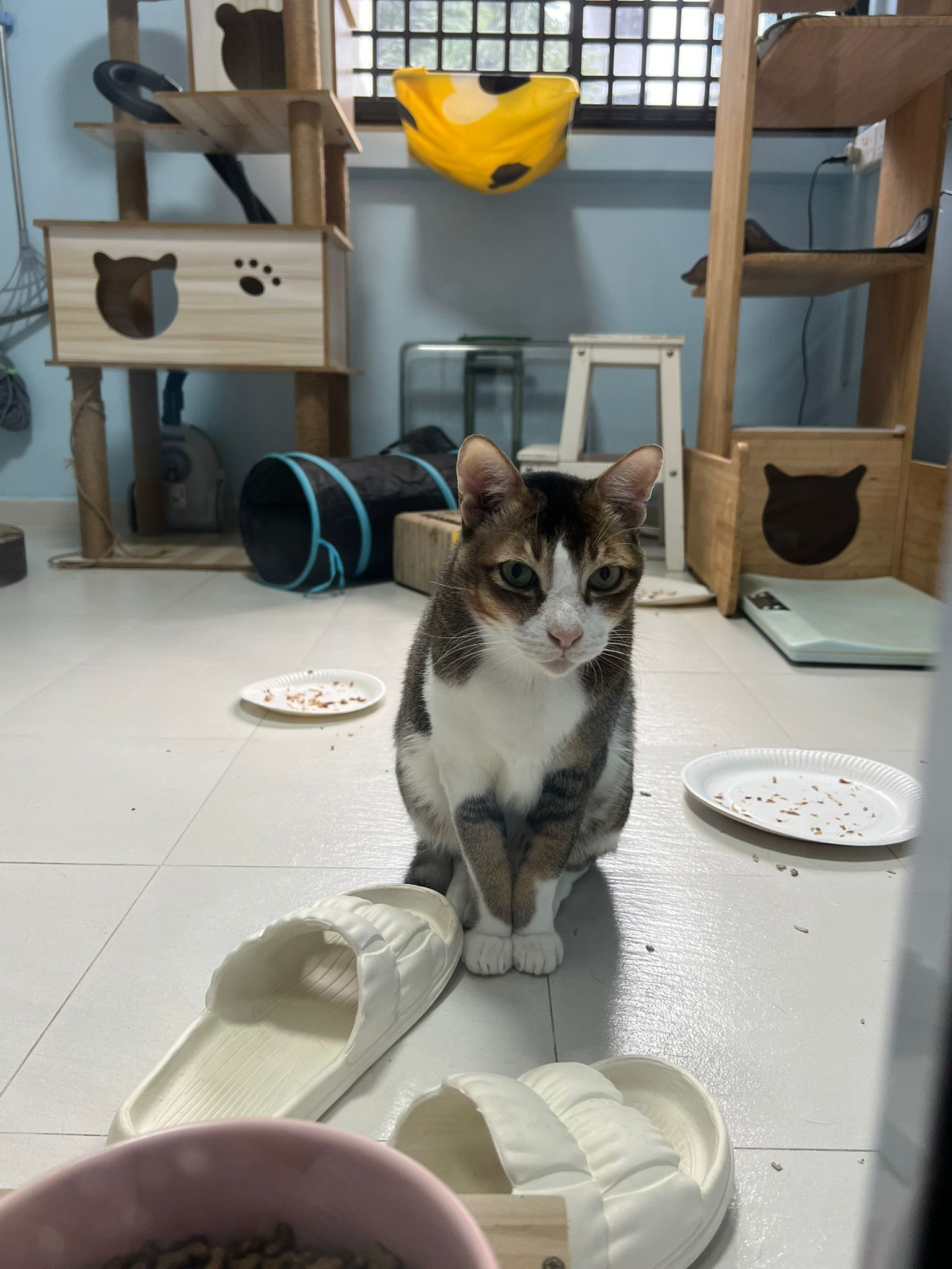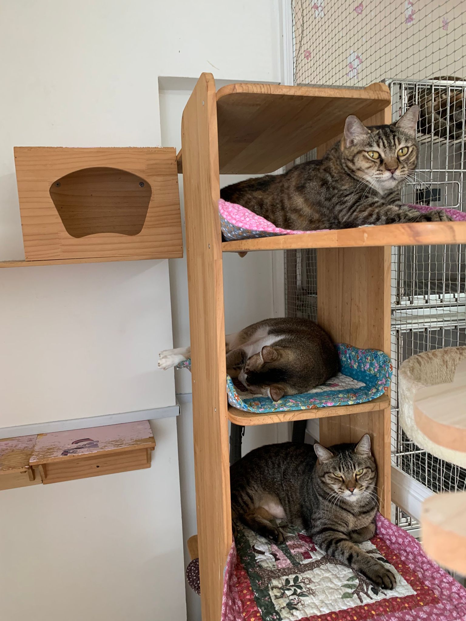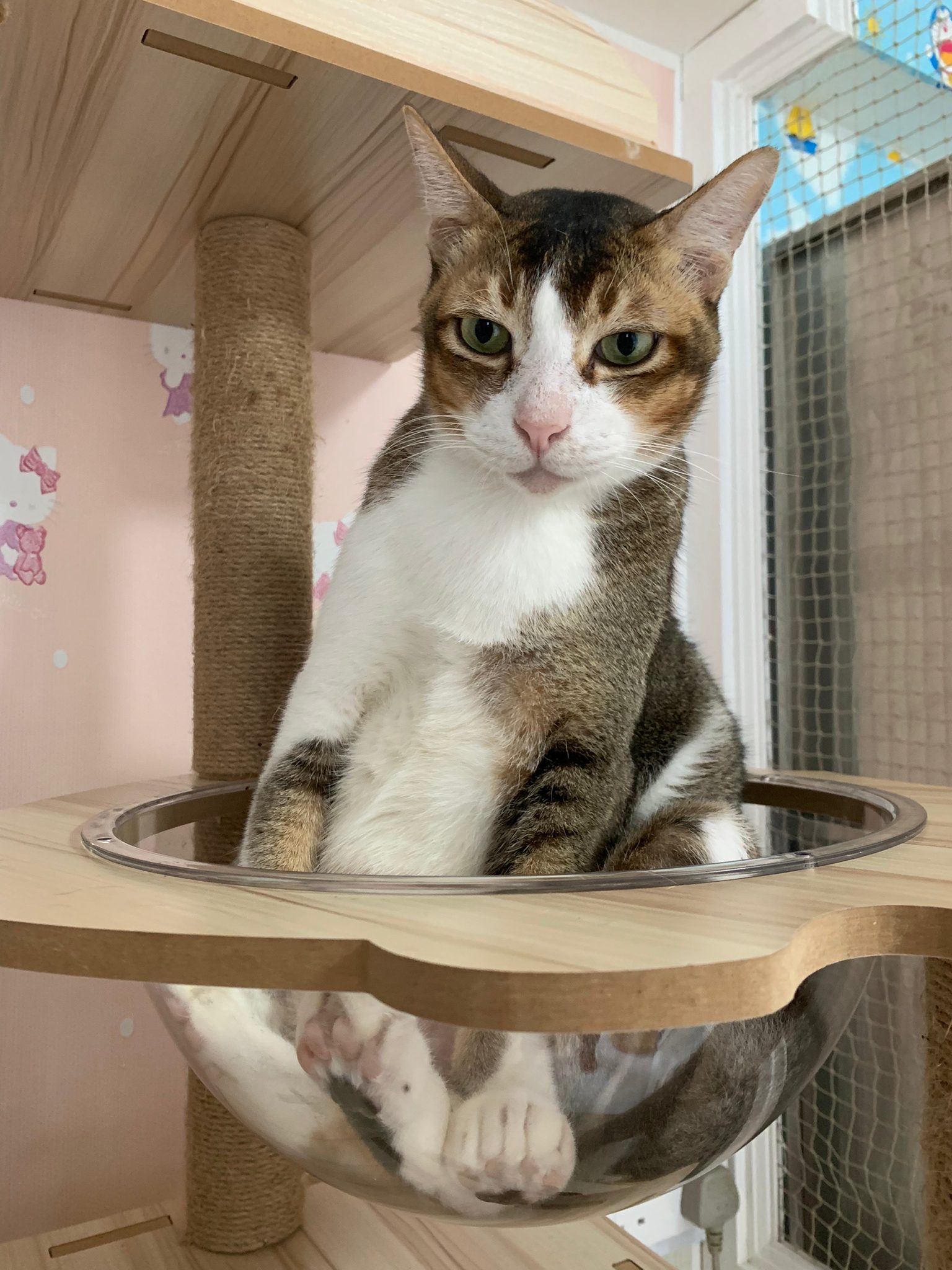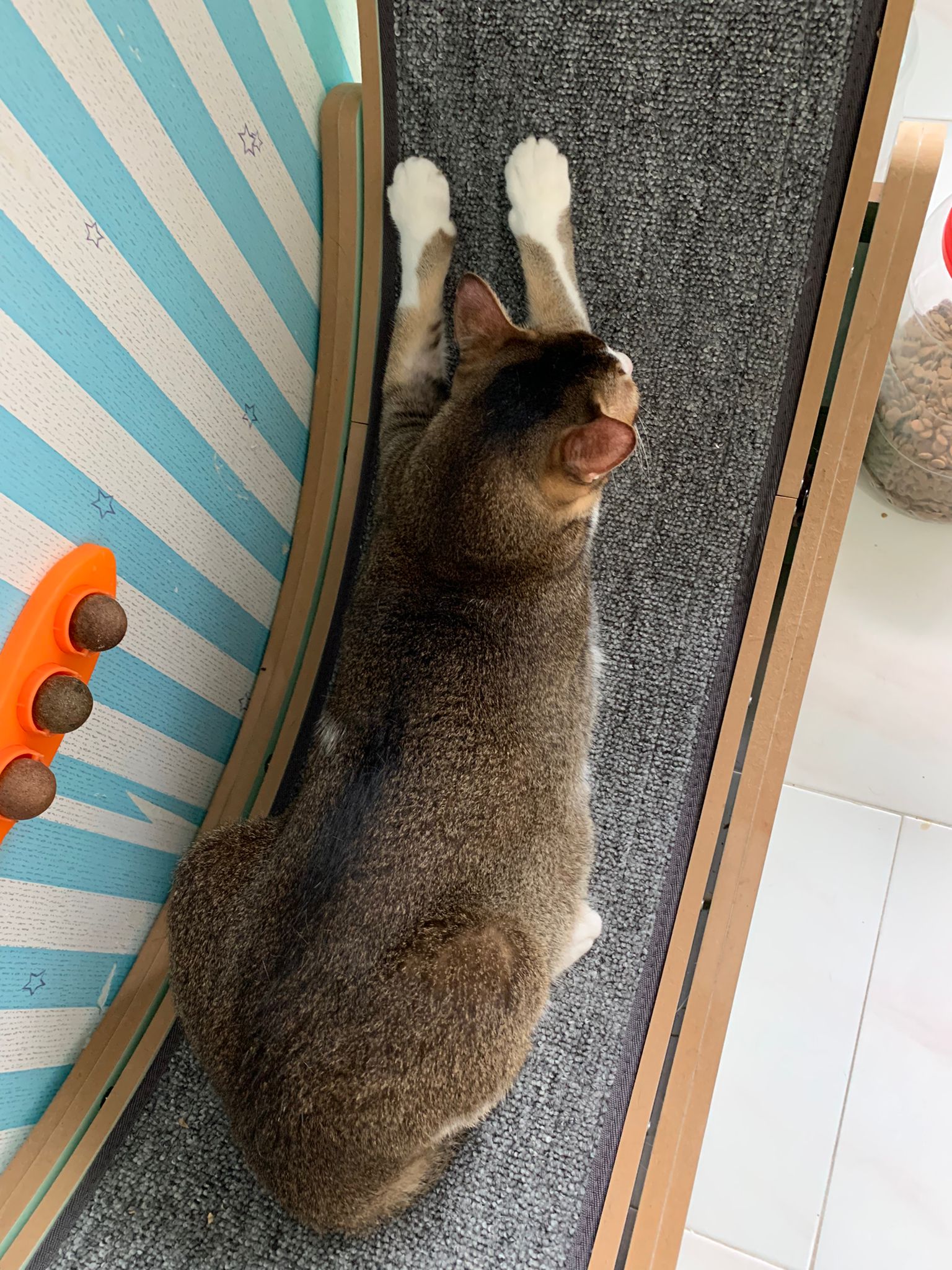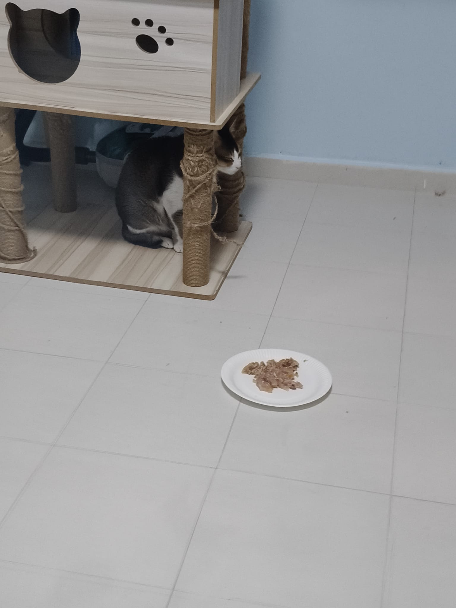 1pm+: I Waited so long their bench delivery not here yet. Today throw half their cat tree away. Rearrange a little. Tmr then give them the bench 🙂