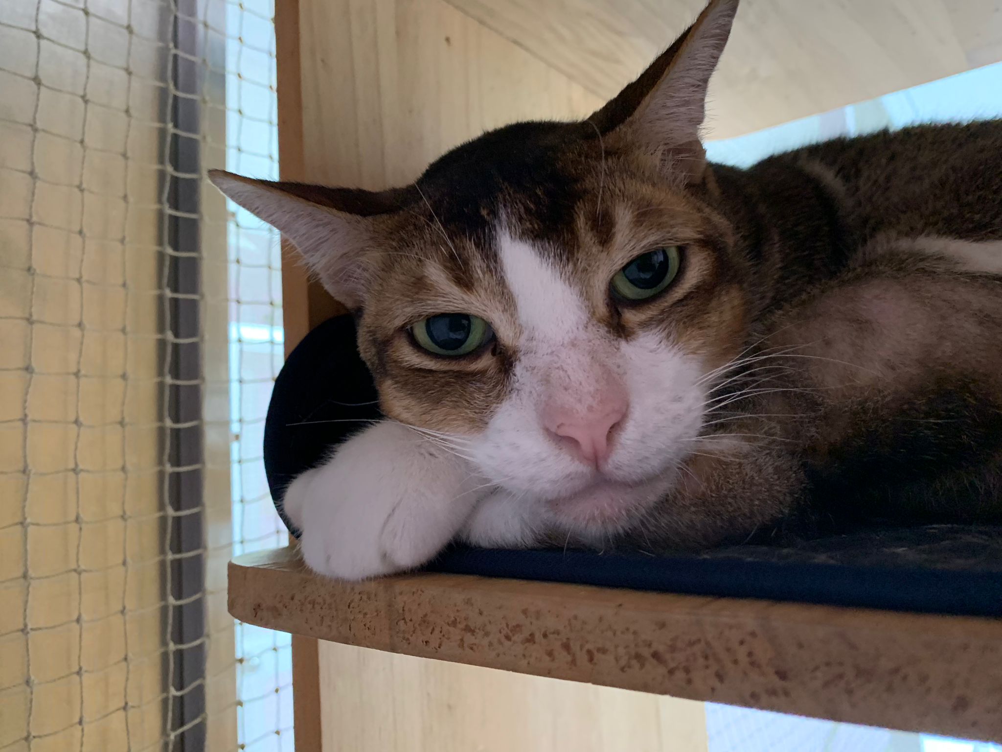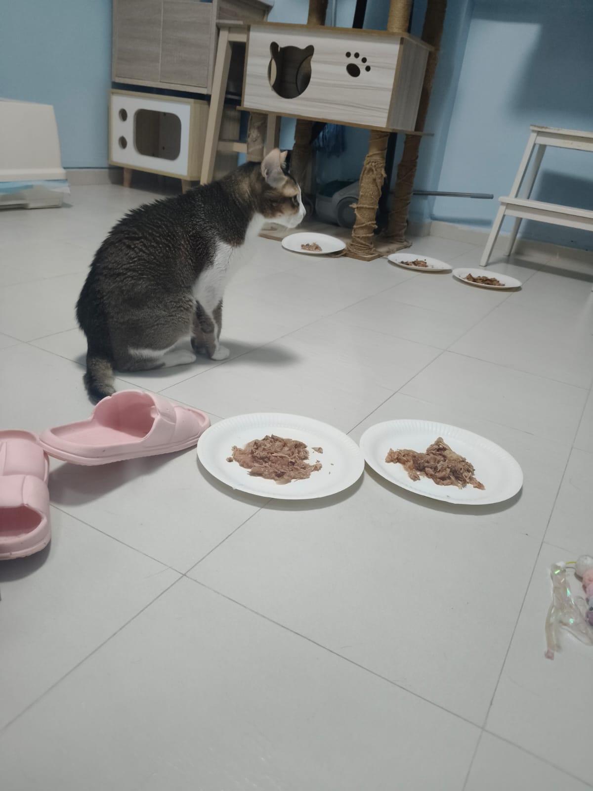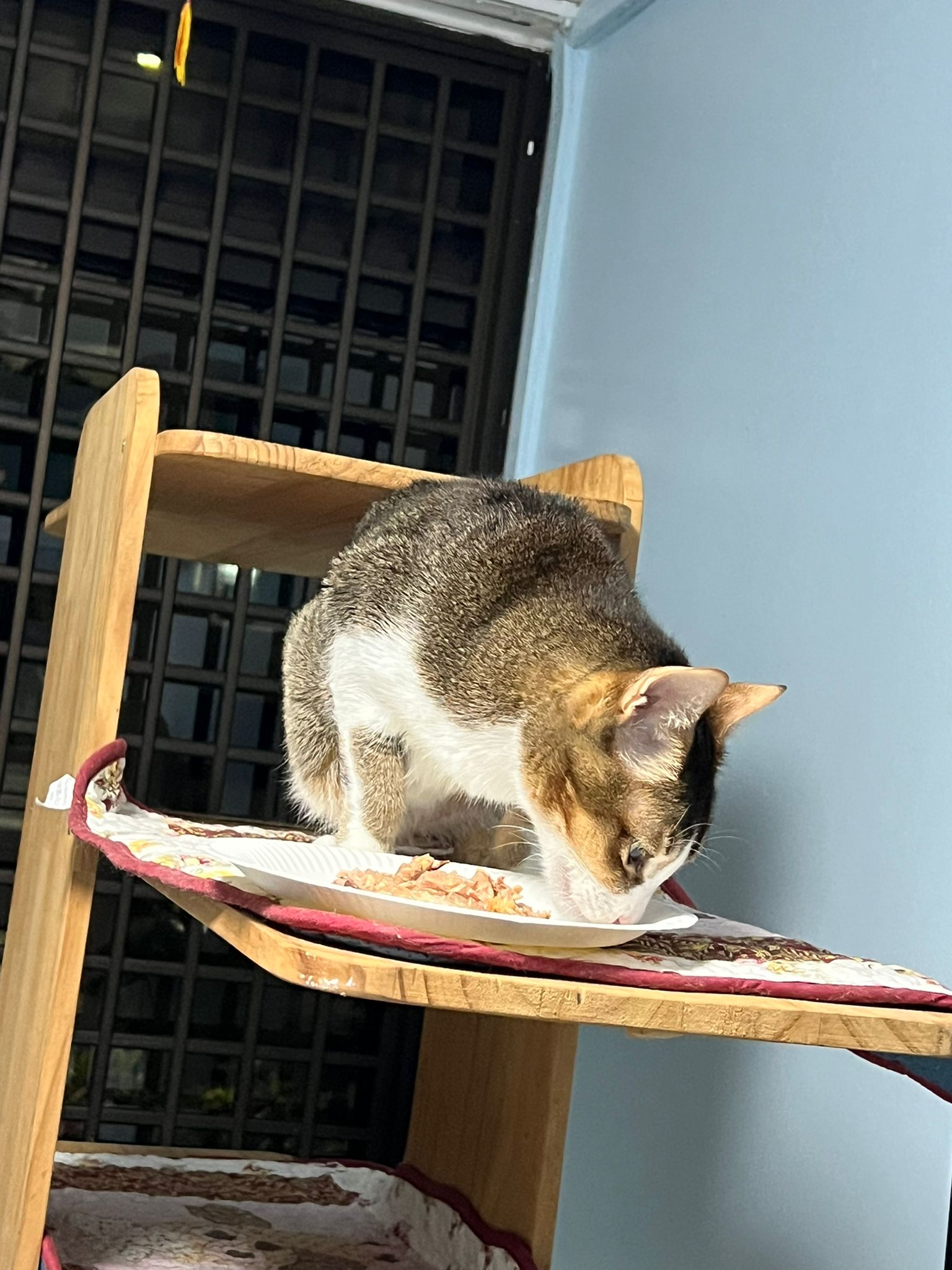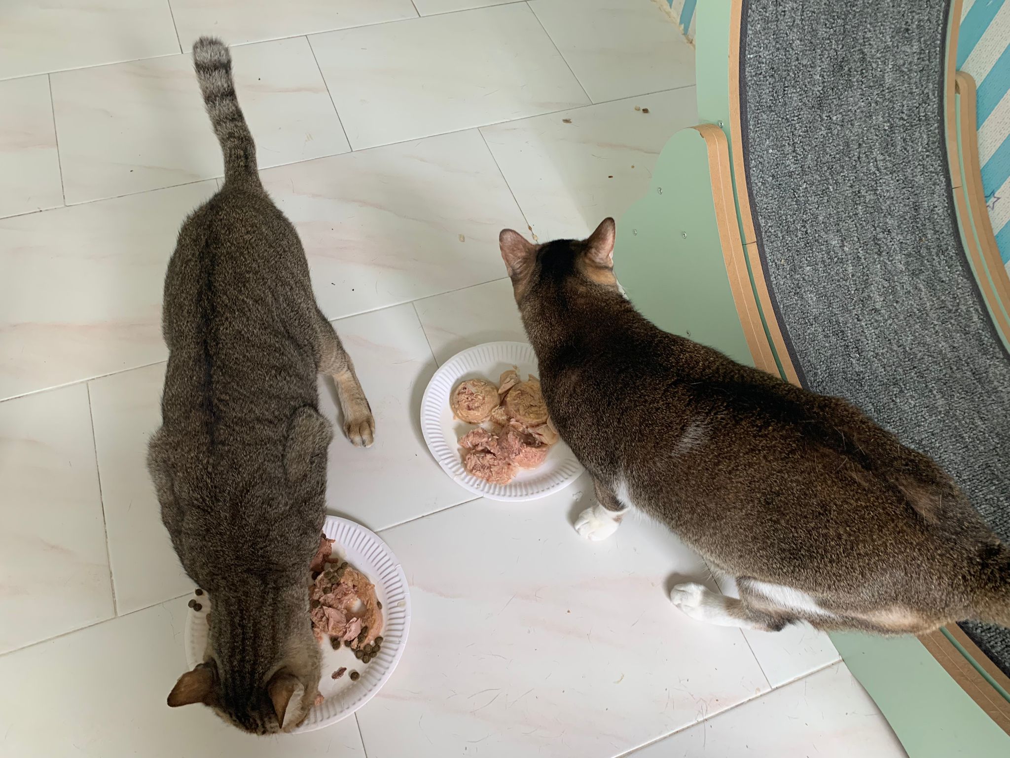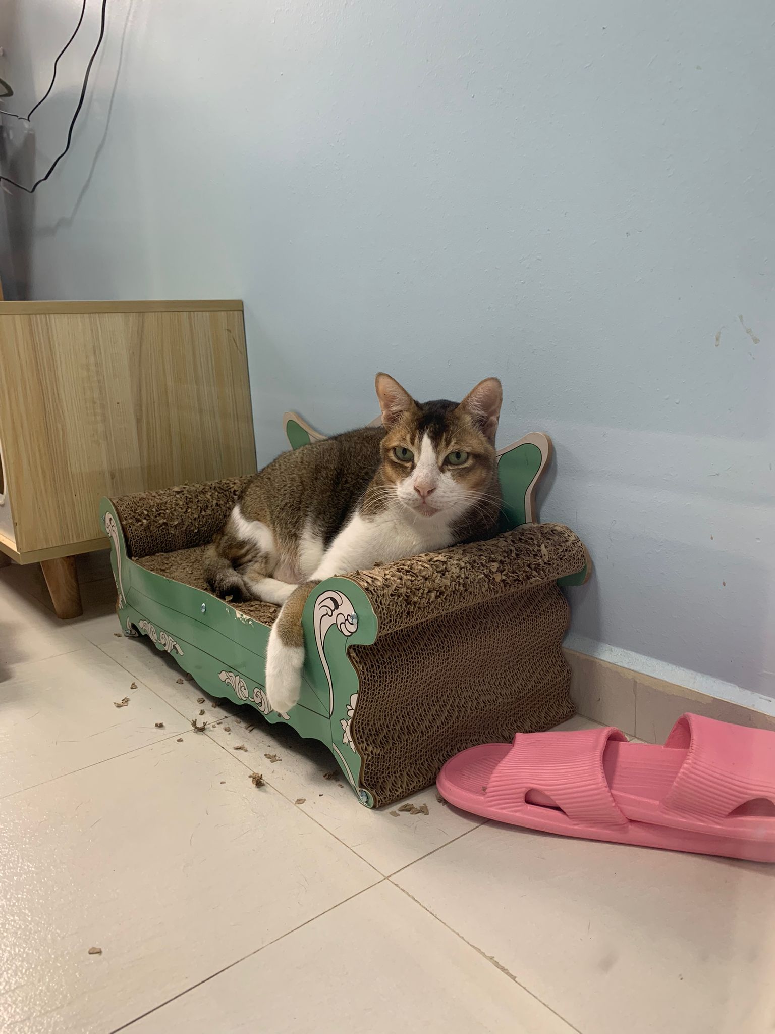 1pm+: I Waited so long their bench delivery not here yet. Today throw half their cat tree away. Rearrange a little. Tmr then give them the bench 🙂