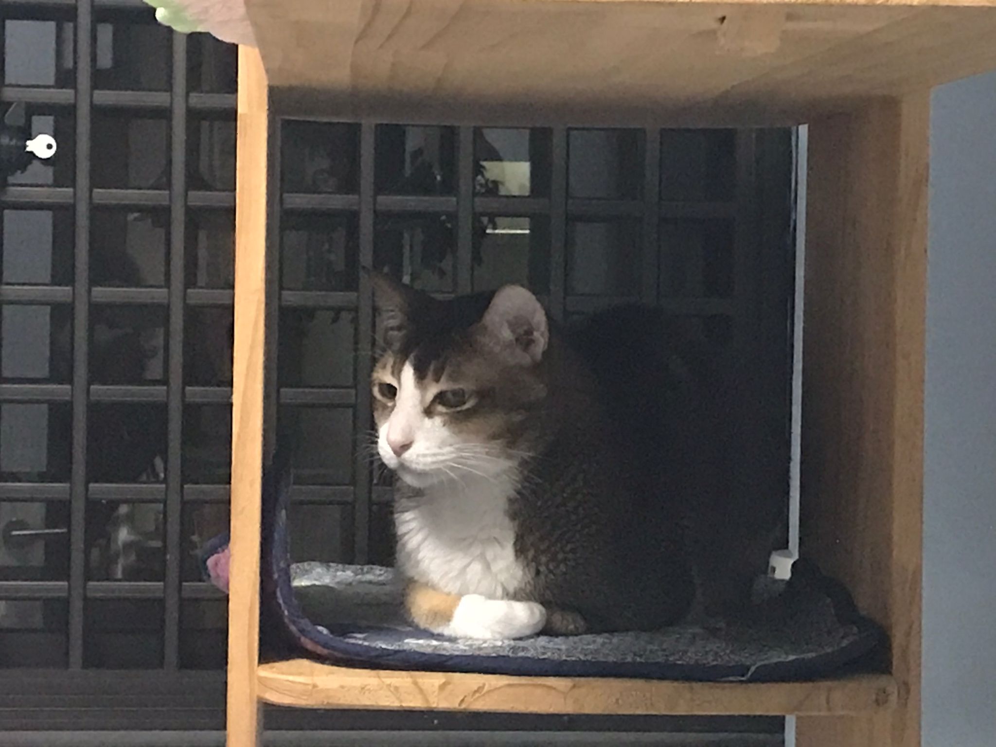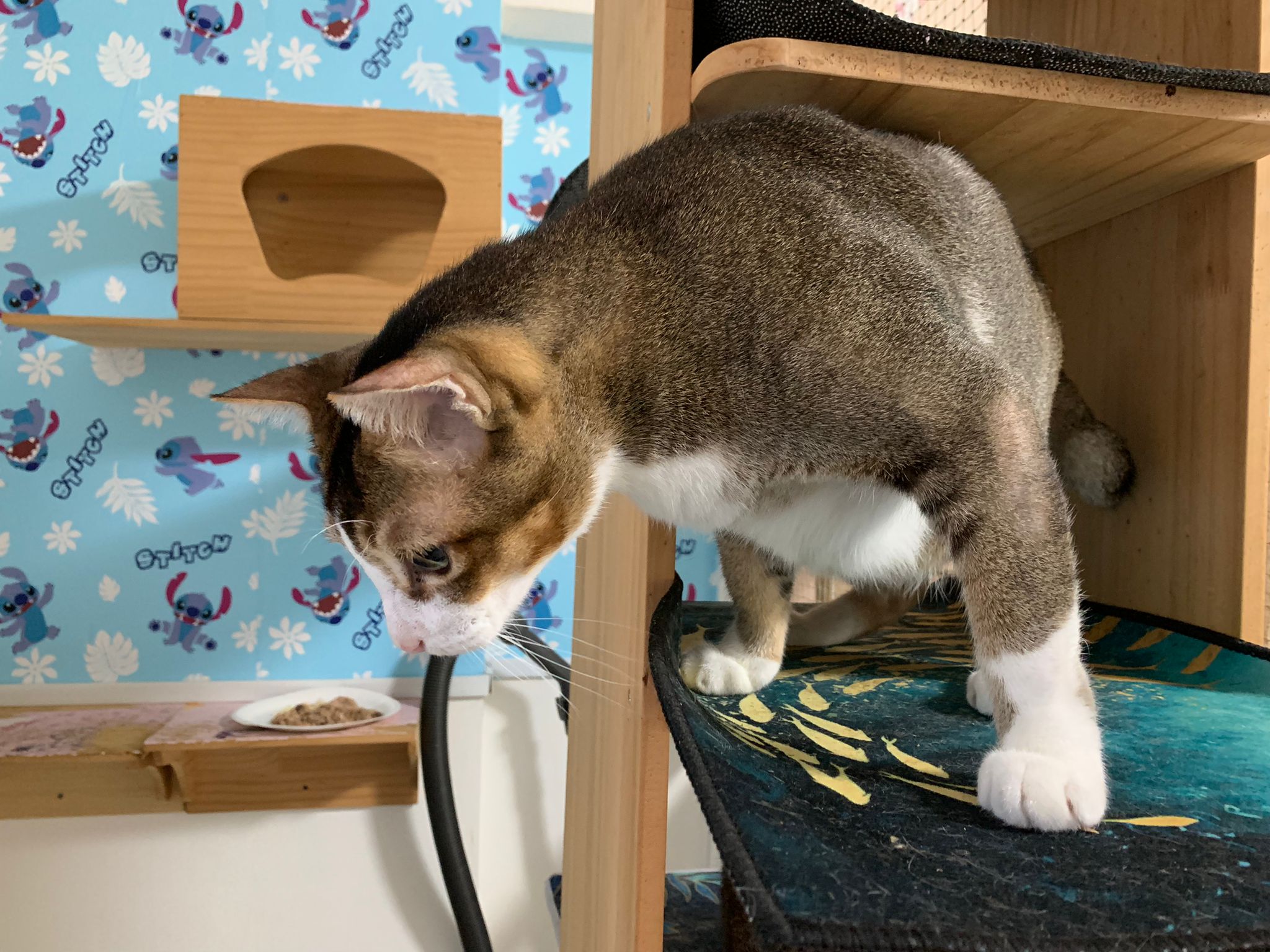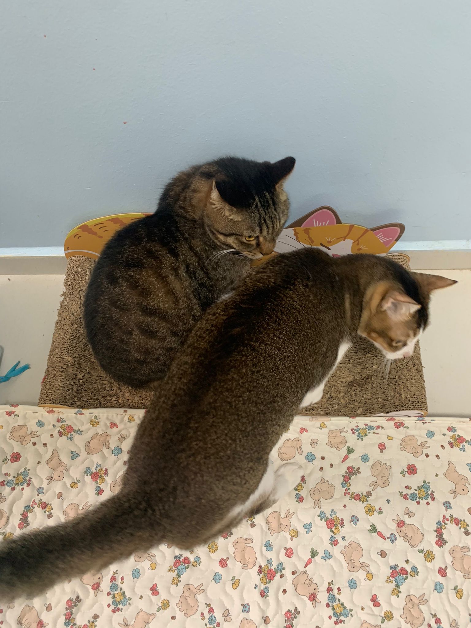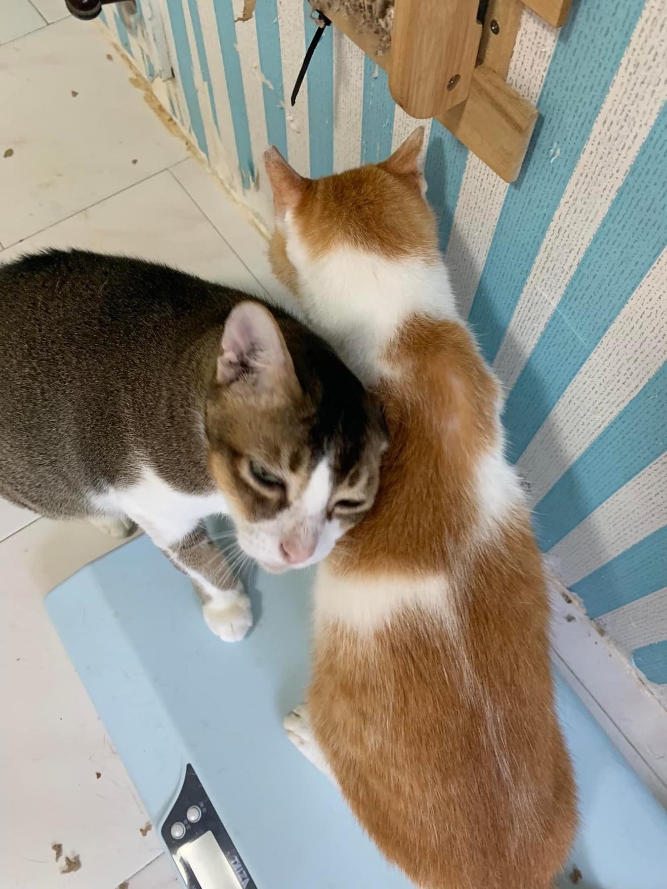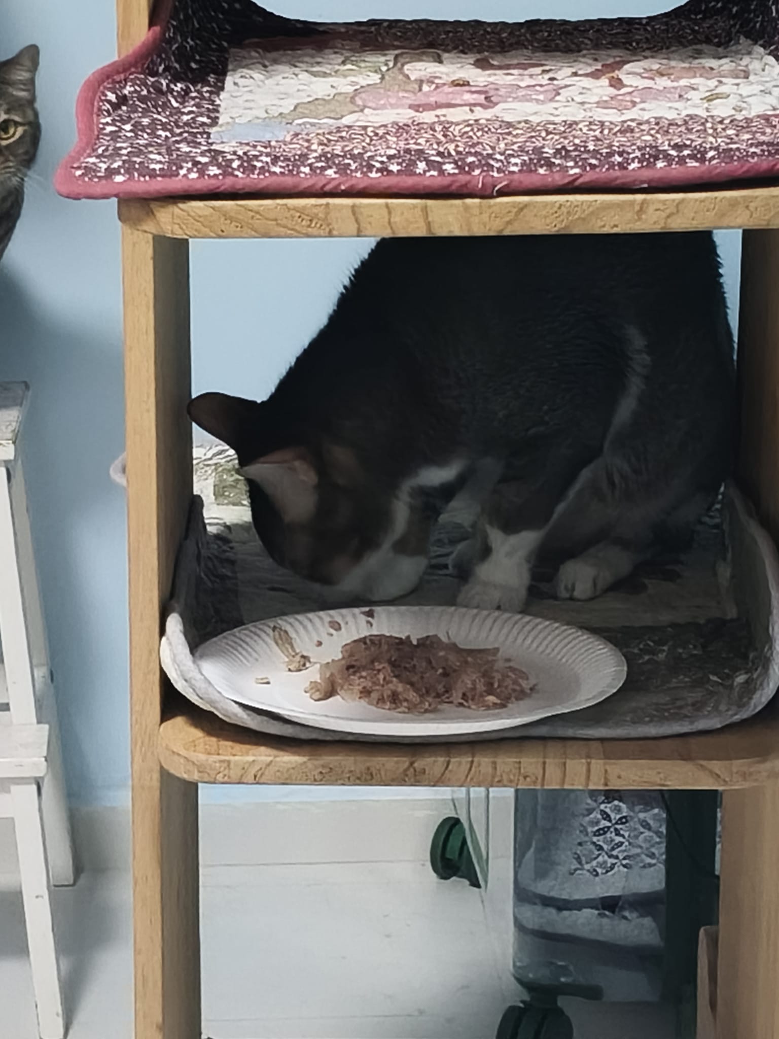 1pm+: I Waited so long their bench delivery not here yet. Today throw half their cat tree away. Rearrange a little. Tmr then give them the bench 🙂
