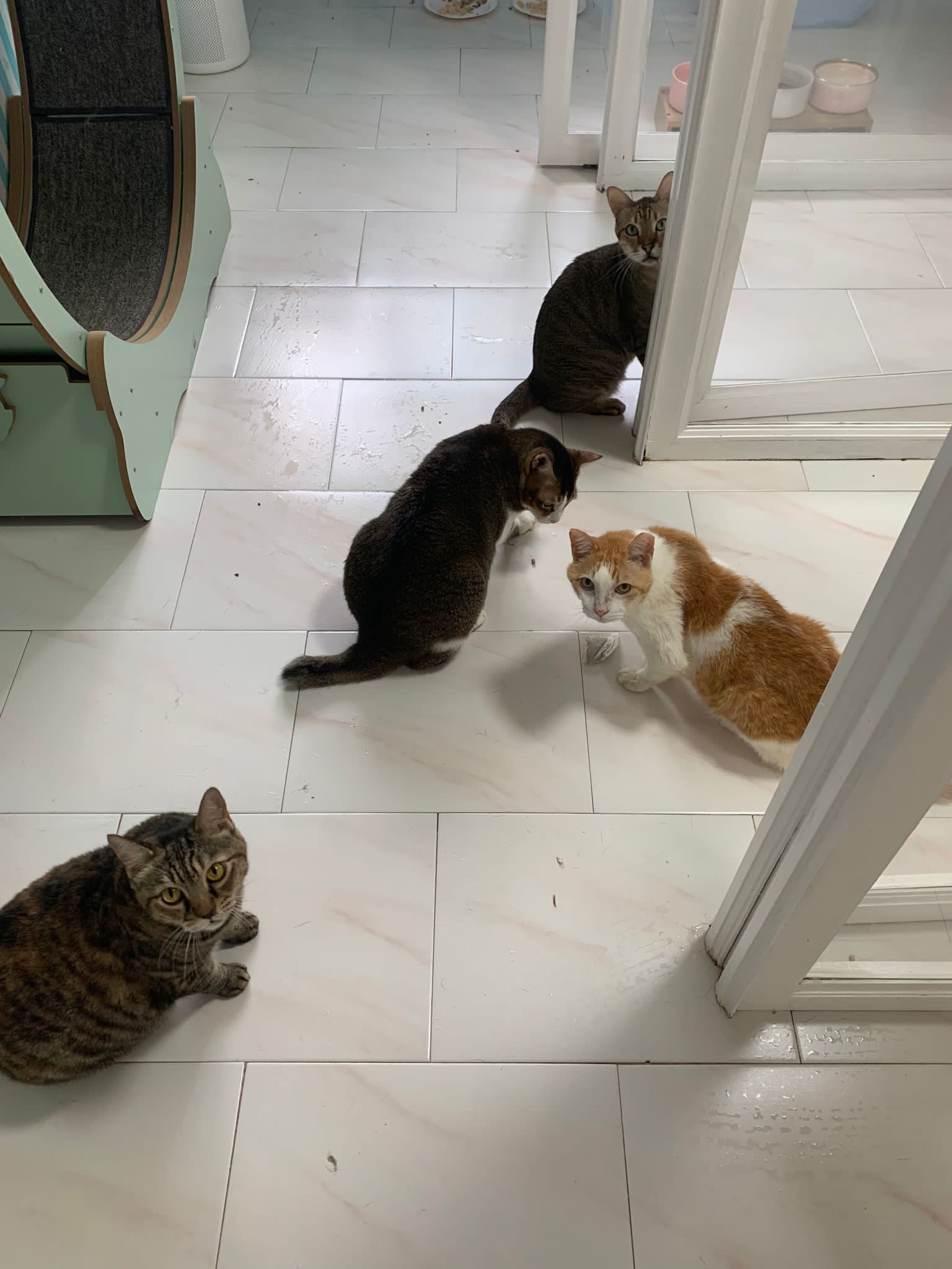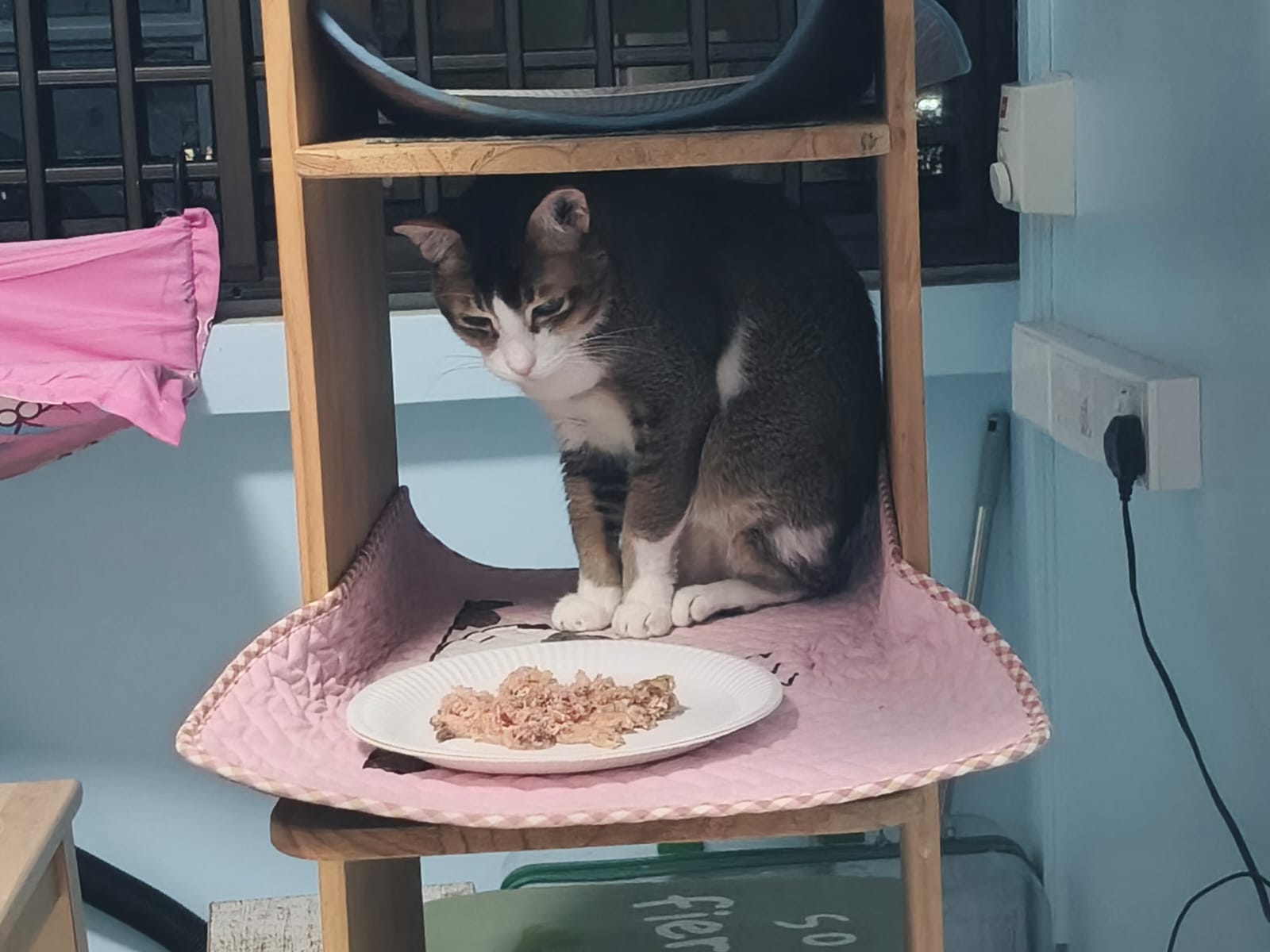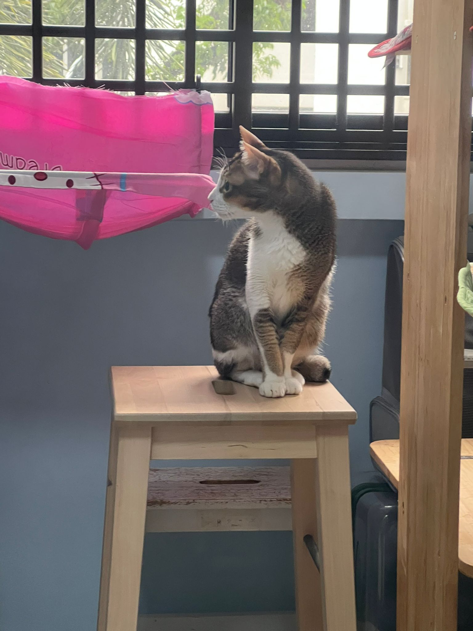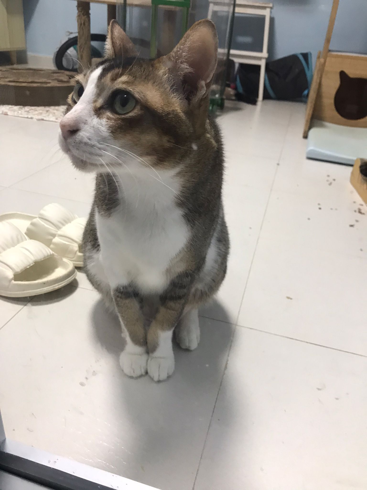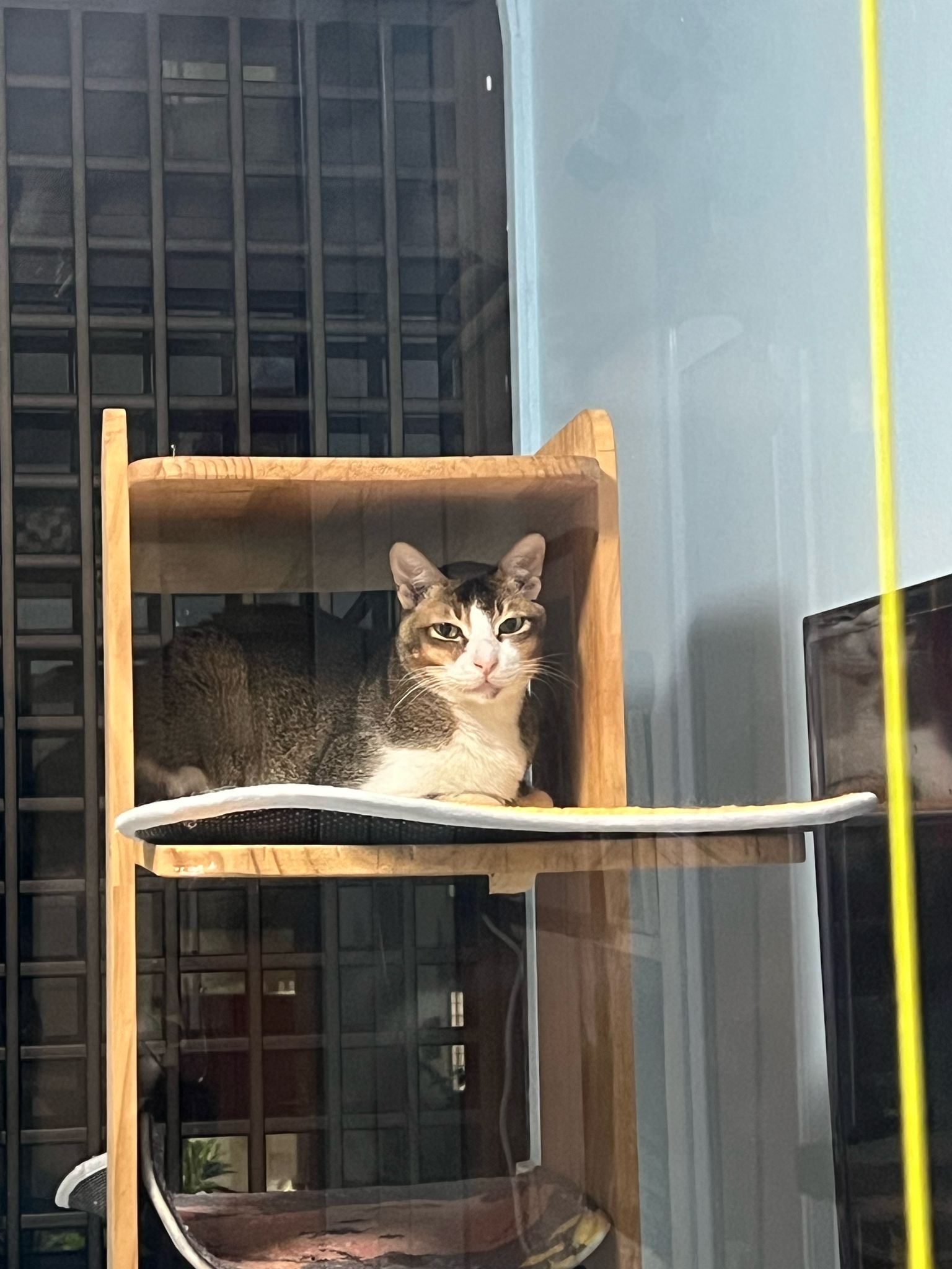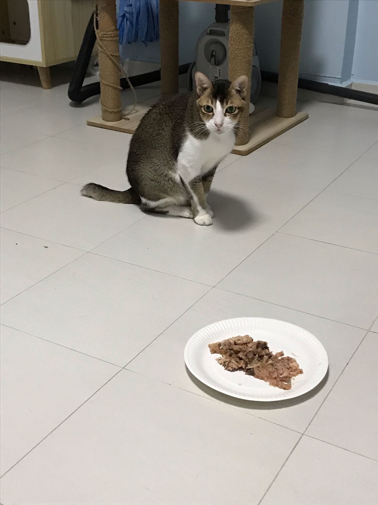 1pm+: I Waited so long their bench delivery not here yet. Today throw half their cat tree away. Rearrange a little. Tmr then give them the bench 🙂