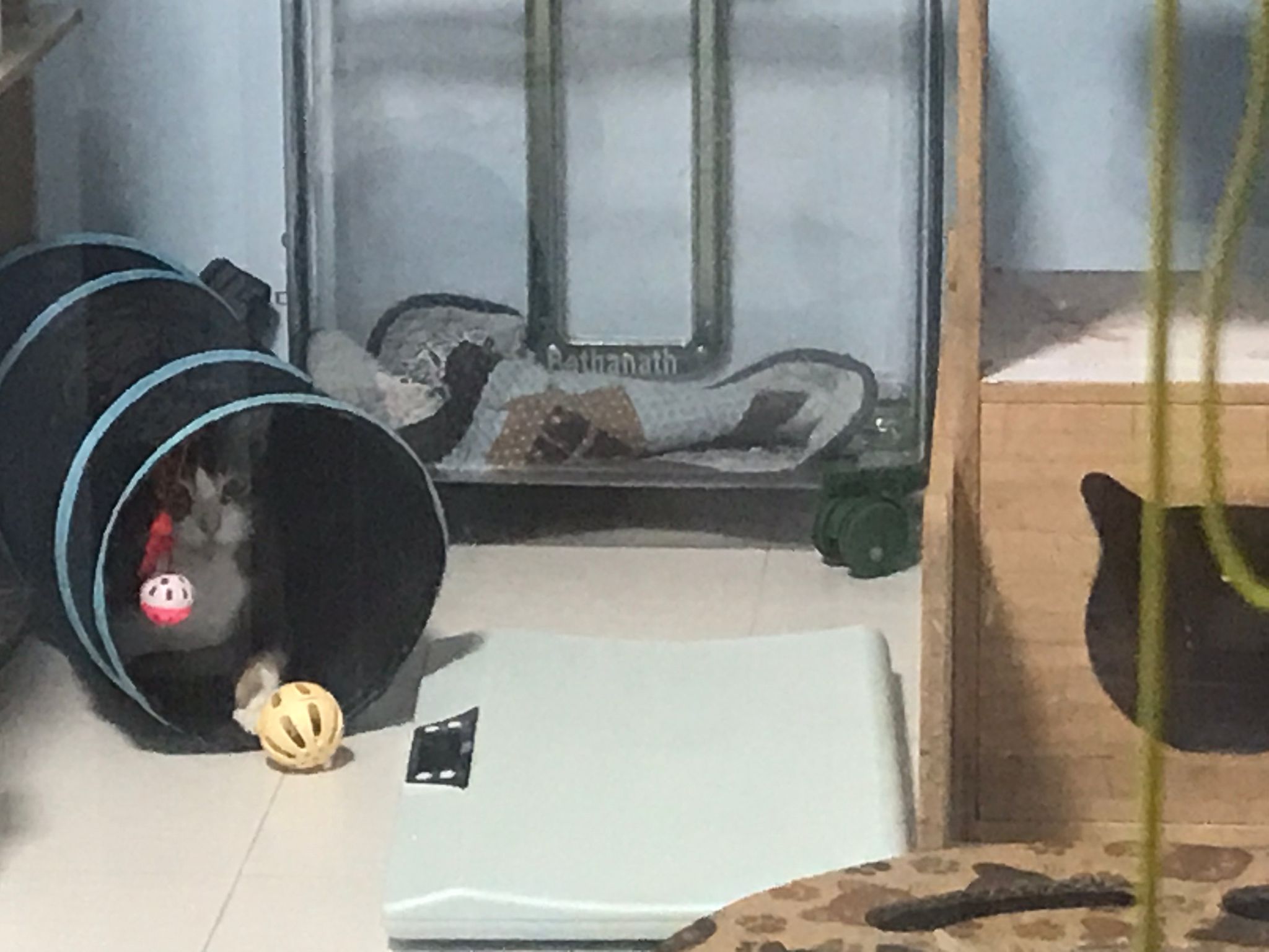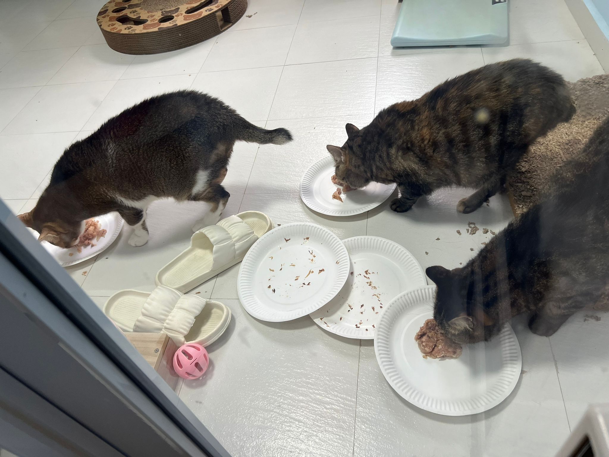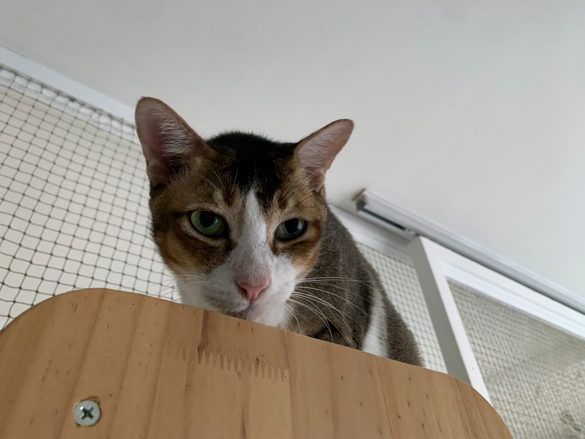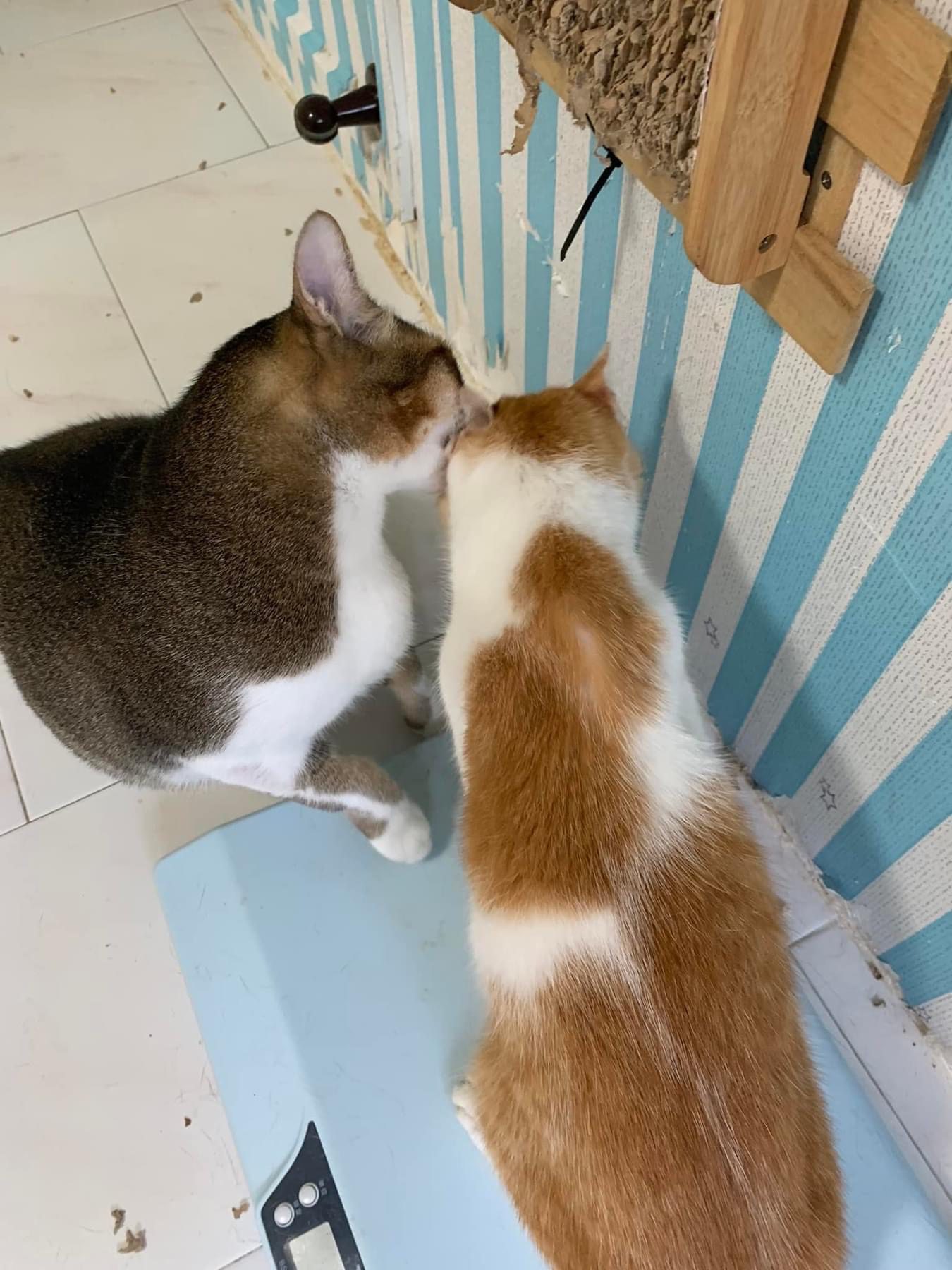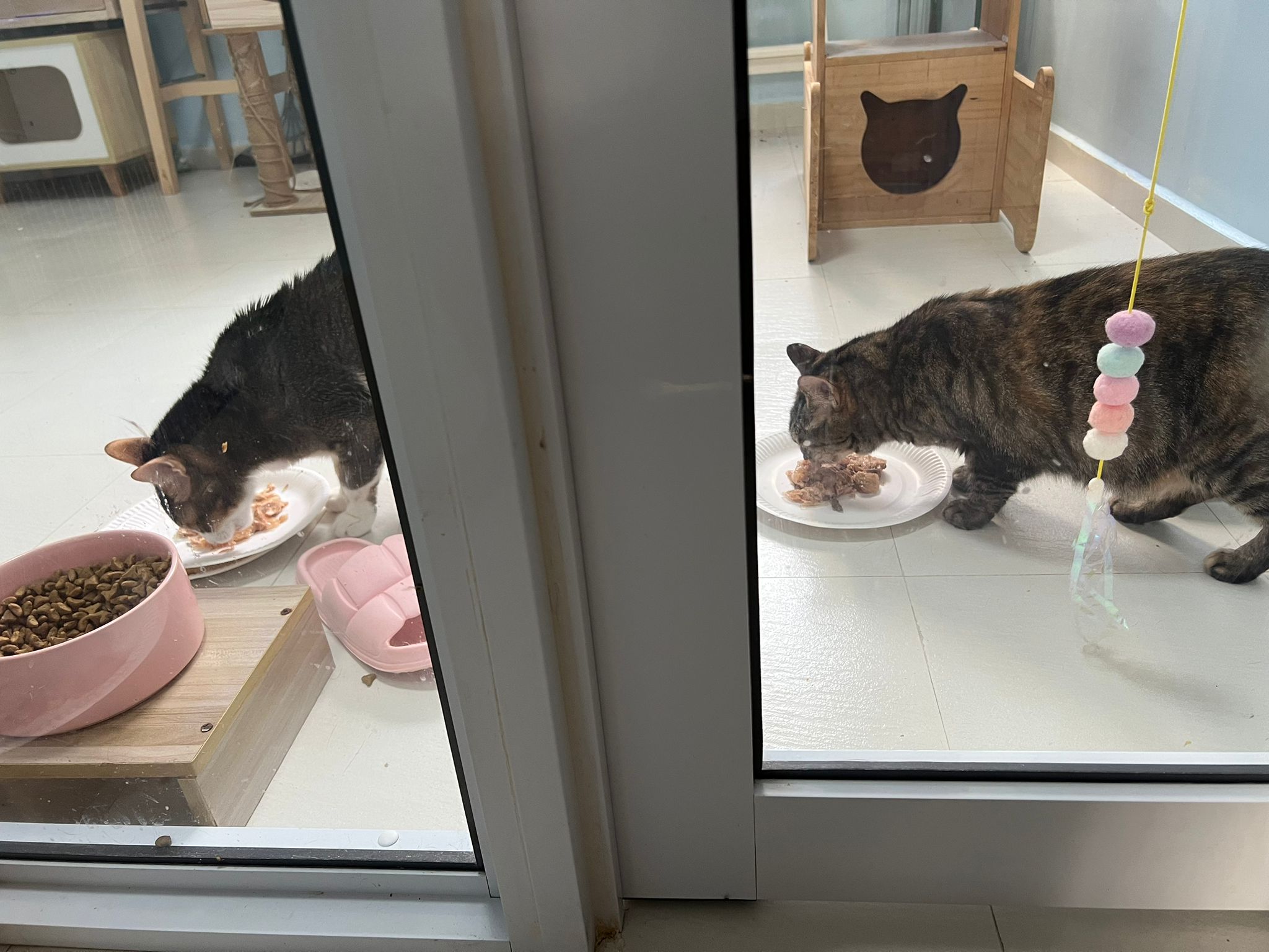 1pm+: I Waited so long their bench delivery not here yet. Today throw half their cat tree away. Rearrange a little. Tmr then give them the bench 🙂