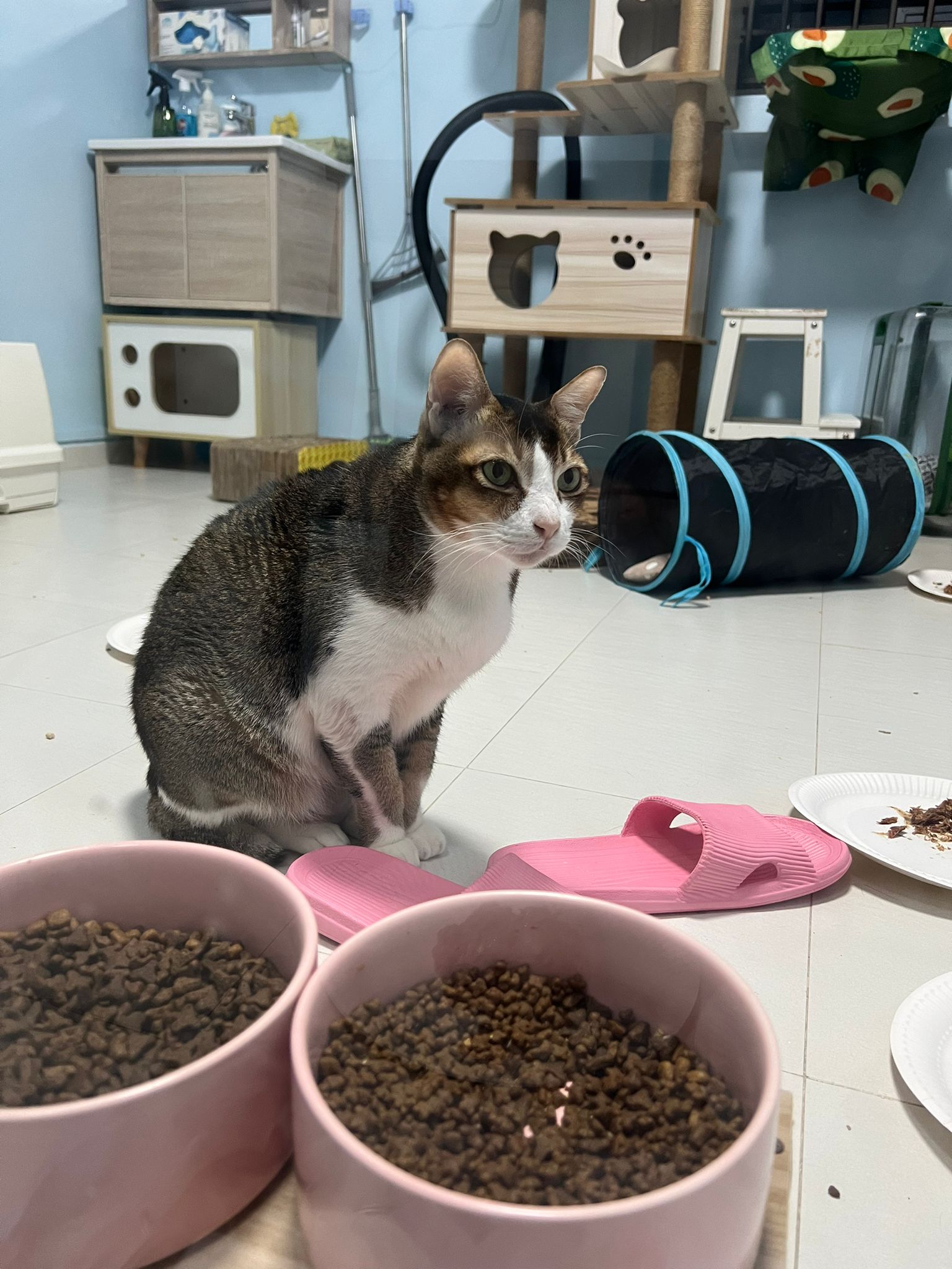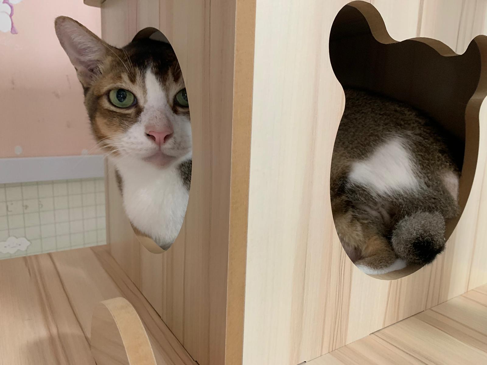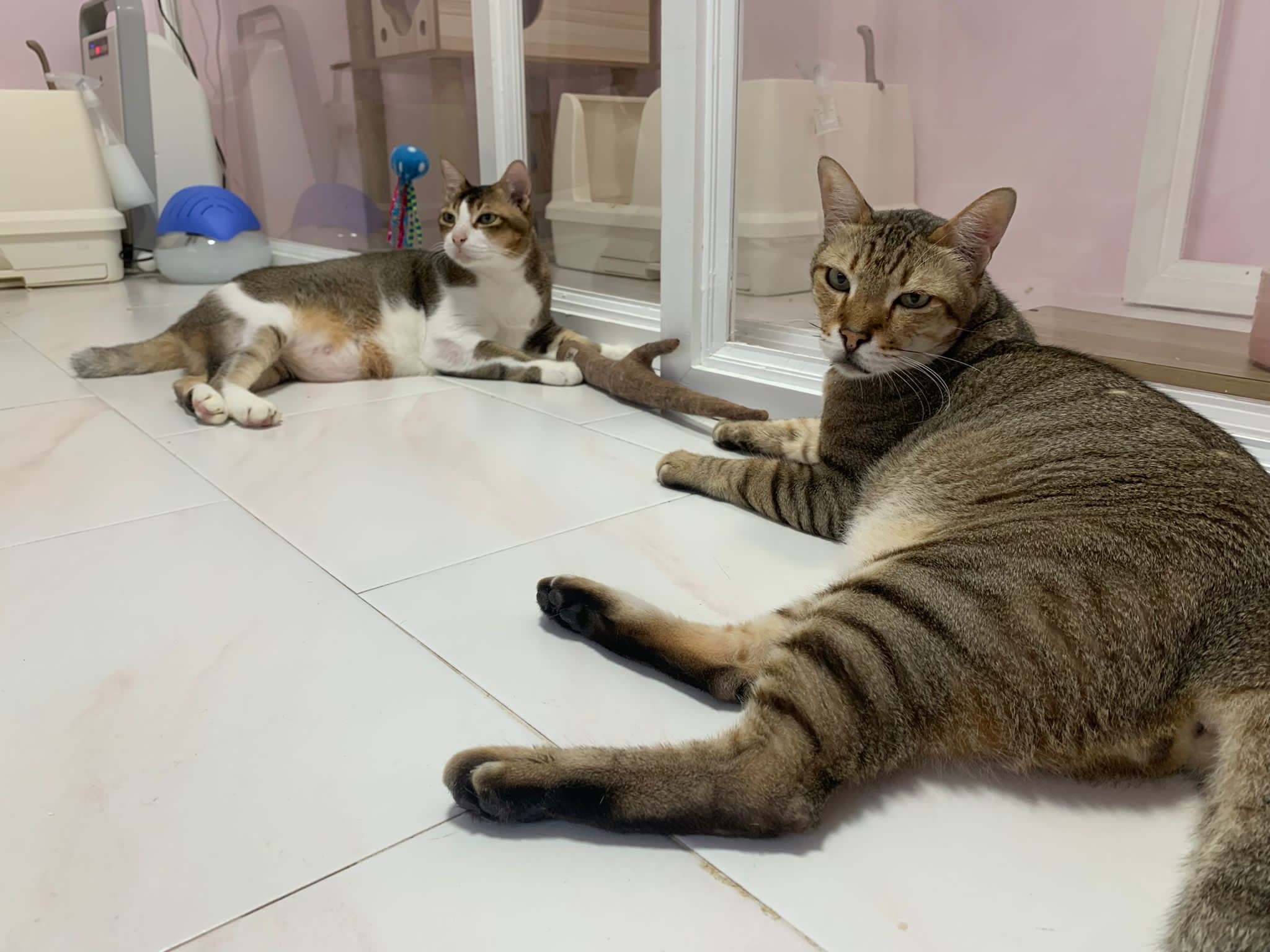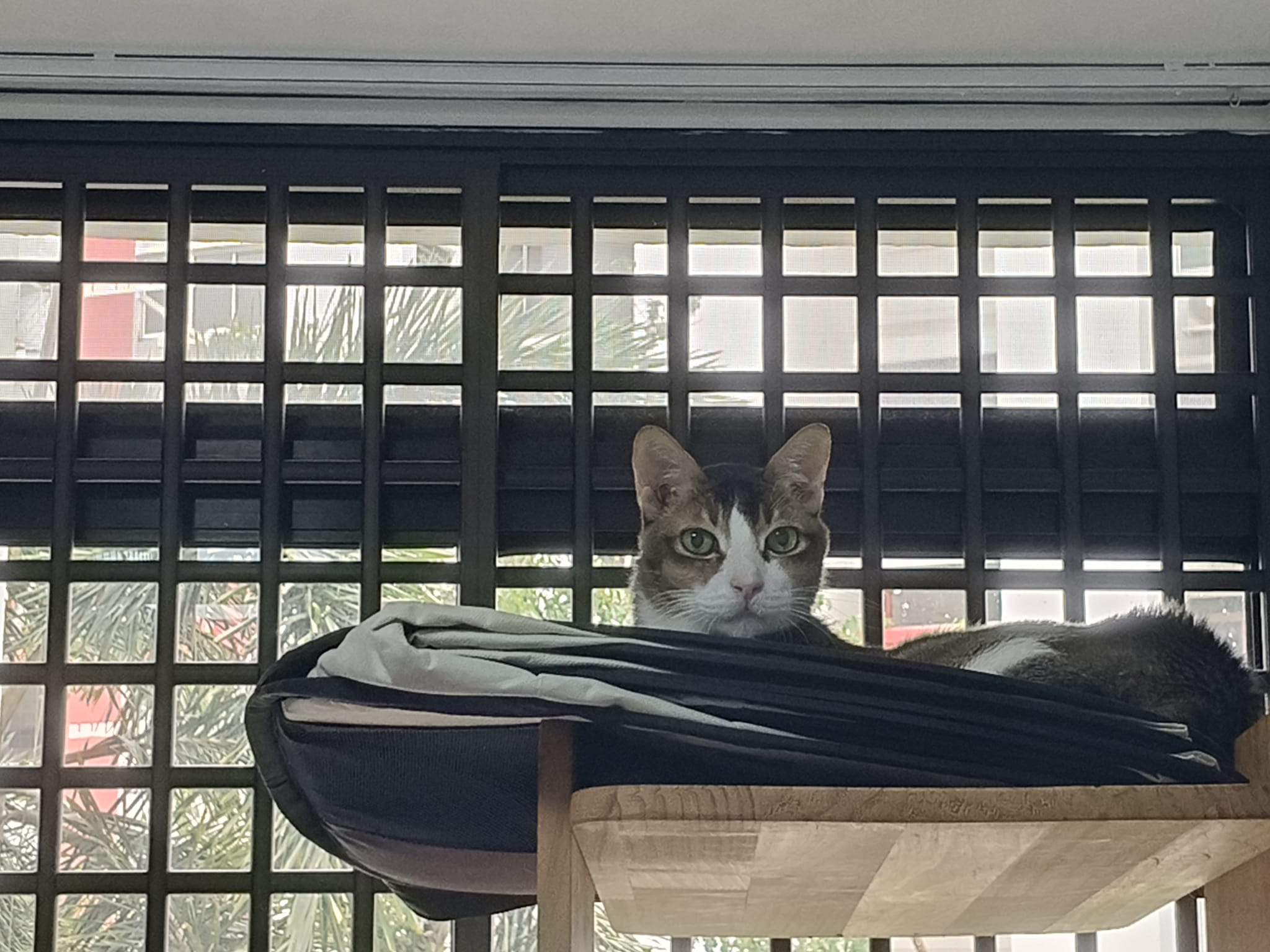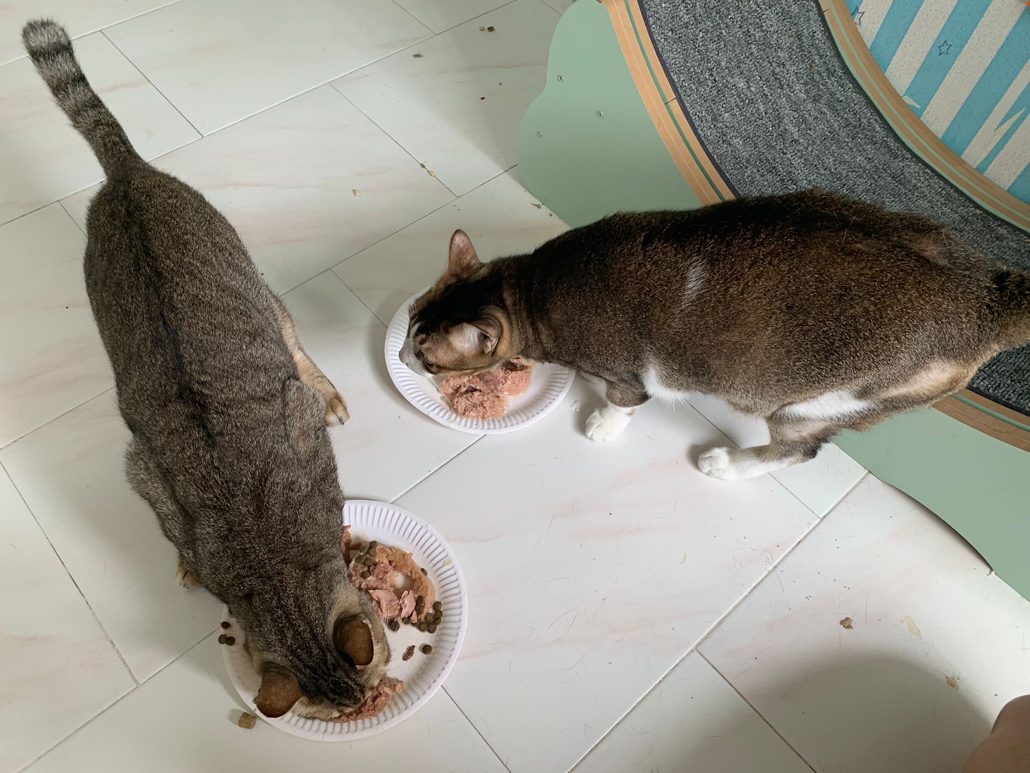 1pm+: I Waited so long their bench delivery not here yet. Today throw half their cat tree away. Rearrange a little. Tmr then give them the bench 🙂