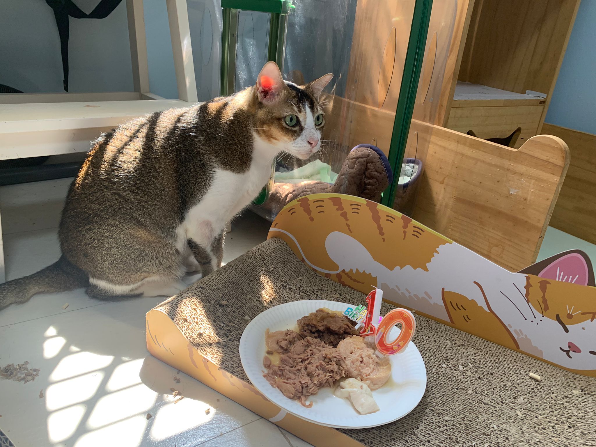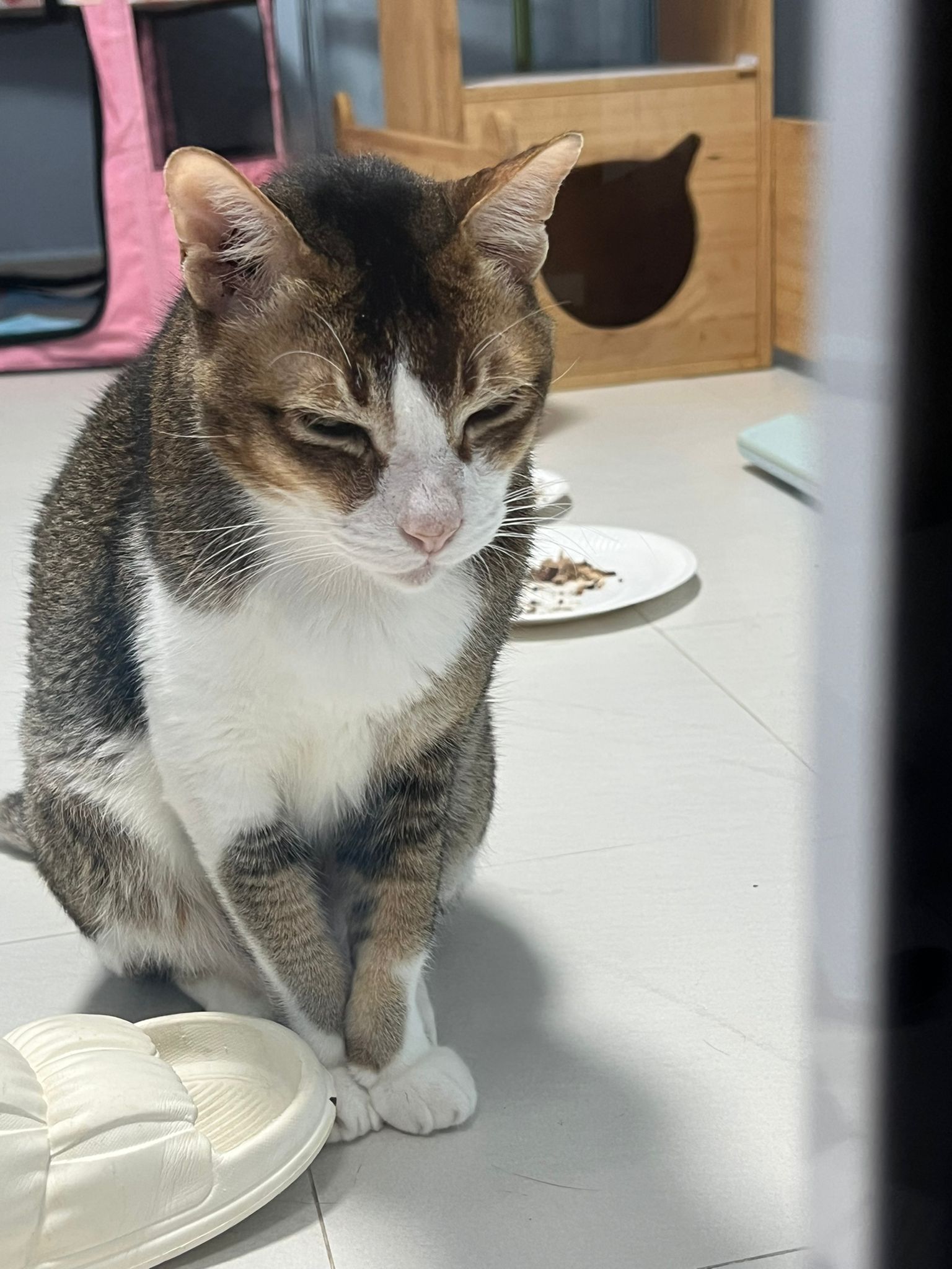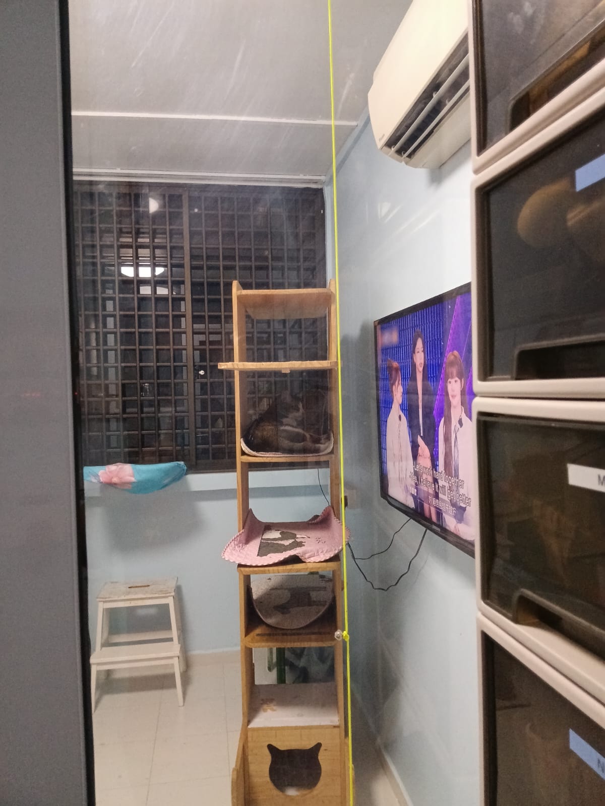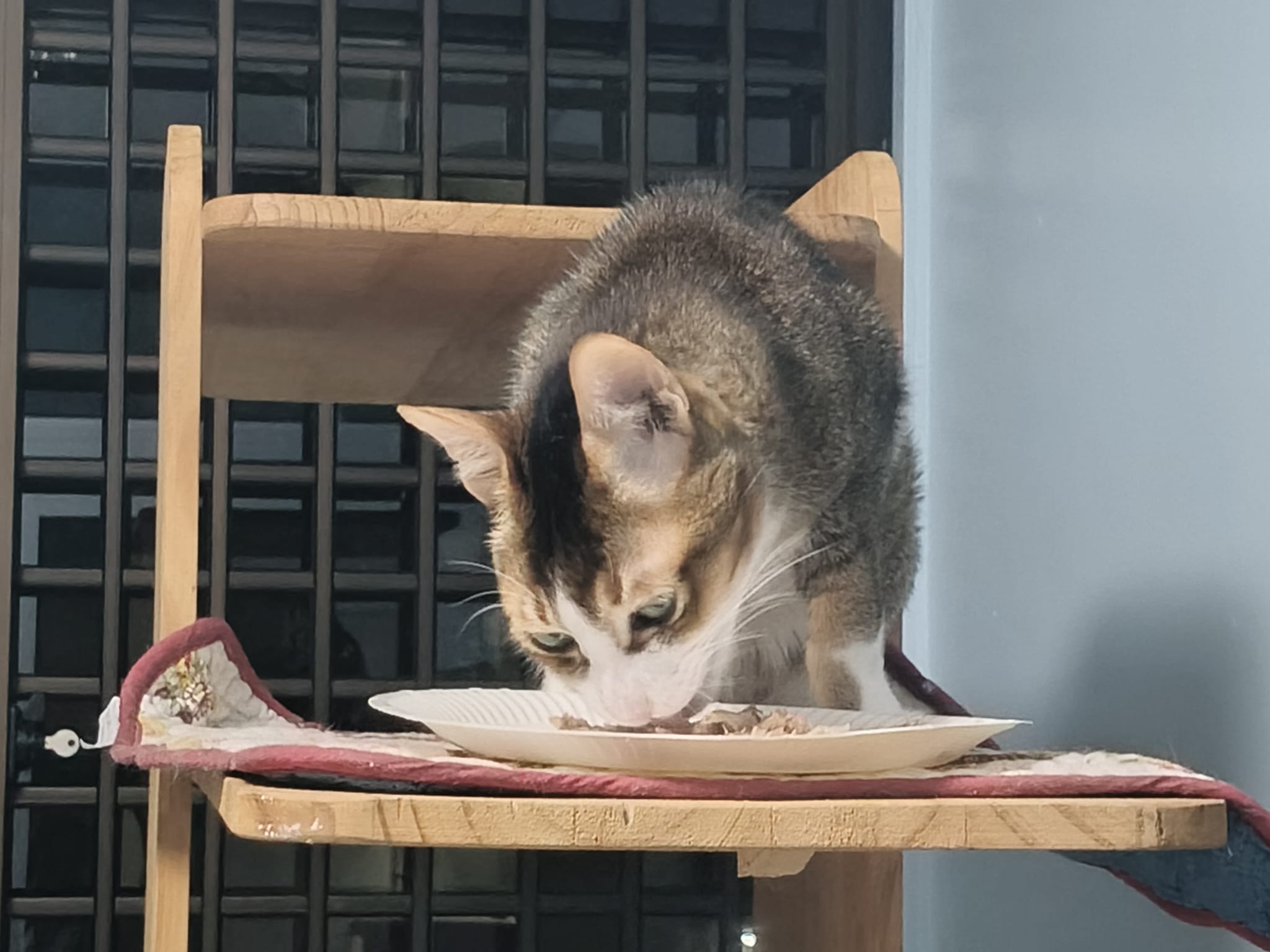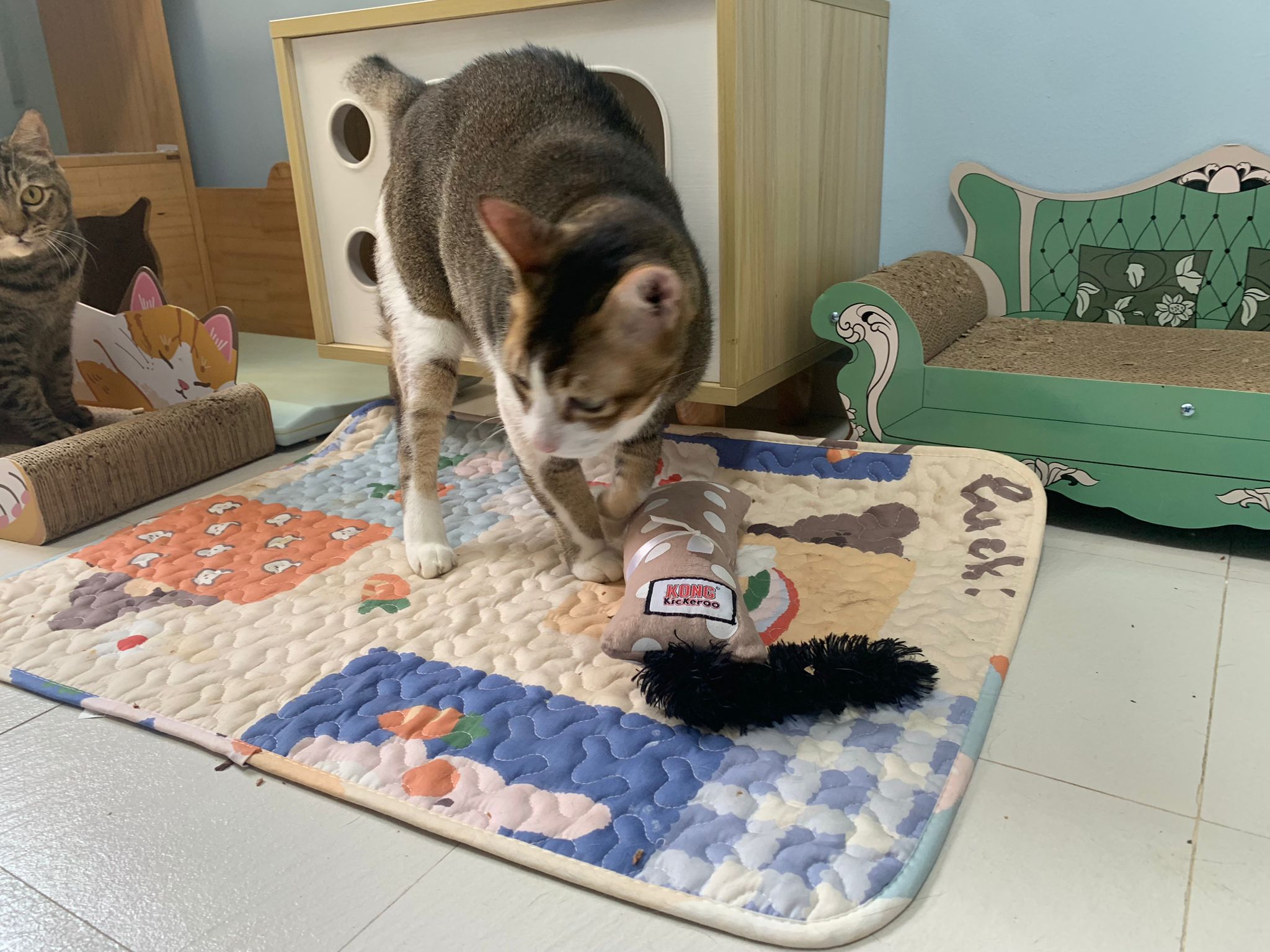 1pm+: I Waited so long their bench delivery not here yet. Today throw half their cat tree away. Rearrange a little. Tmr then give them the bench 🙂