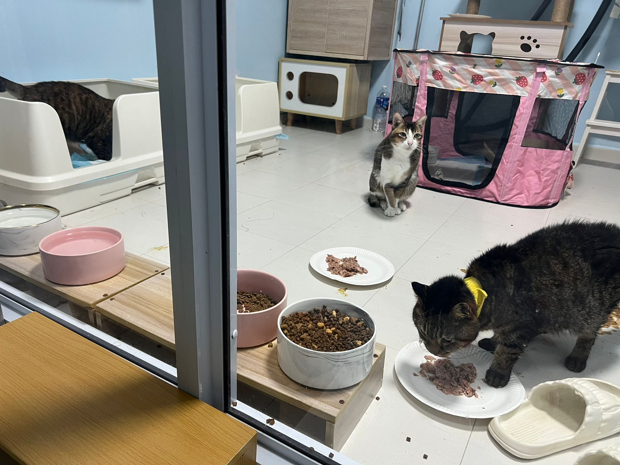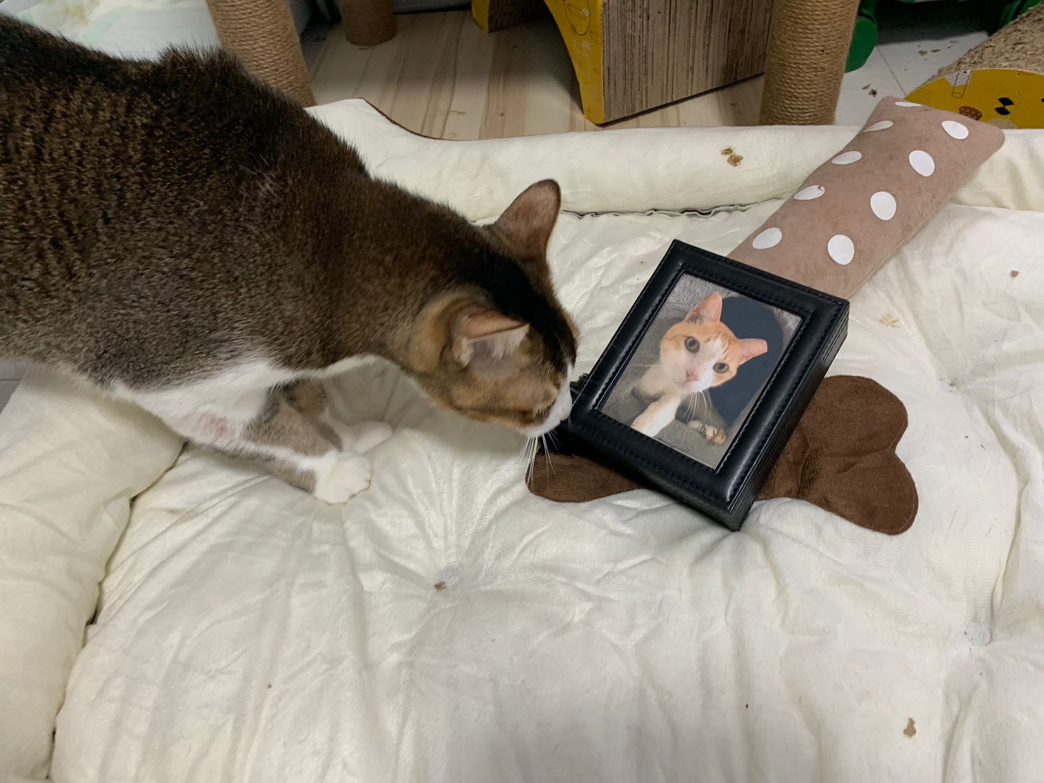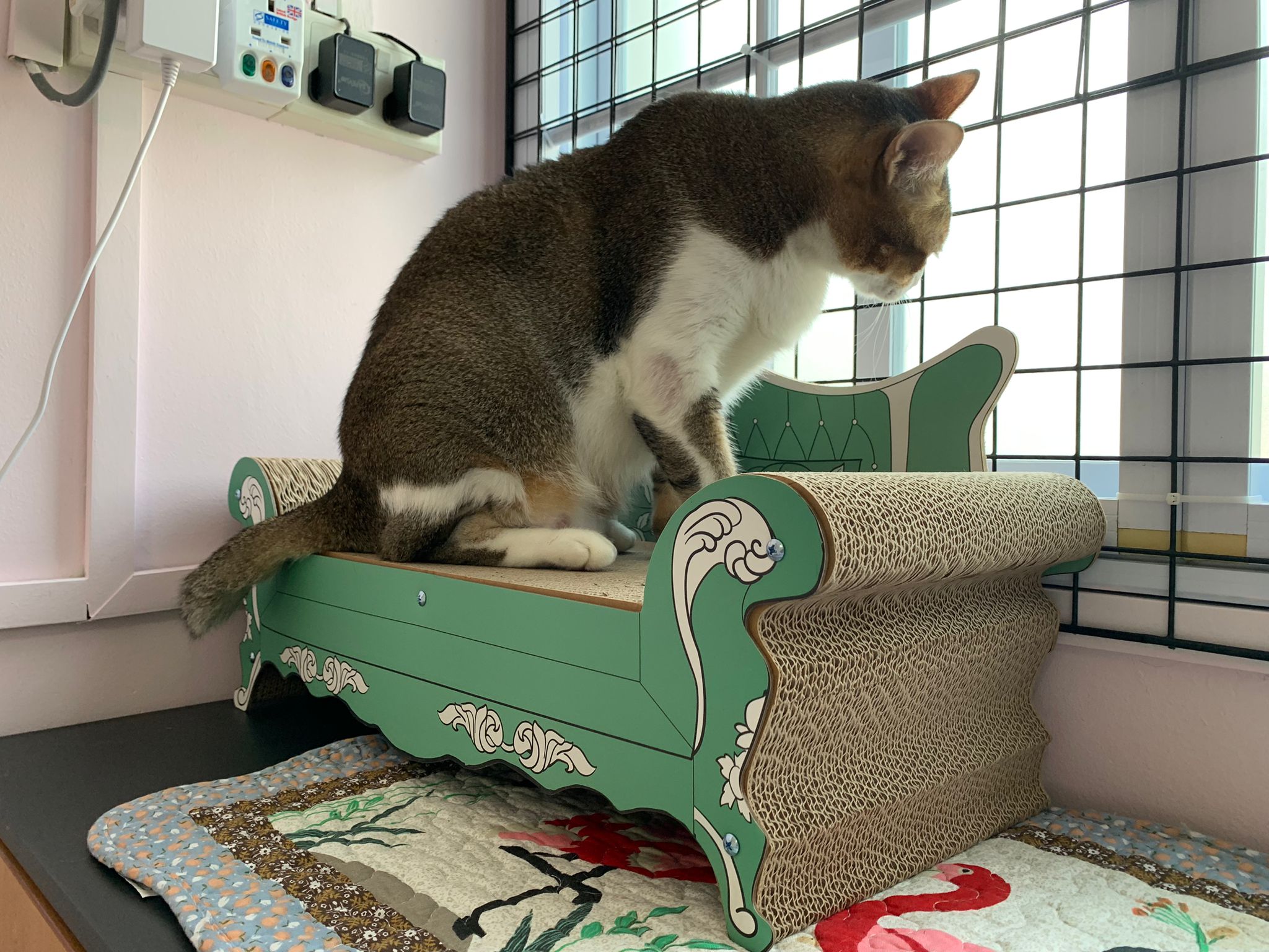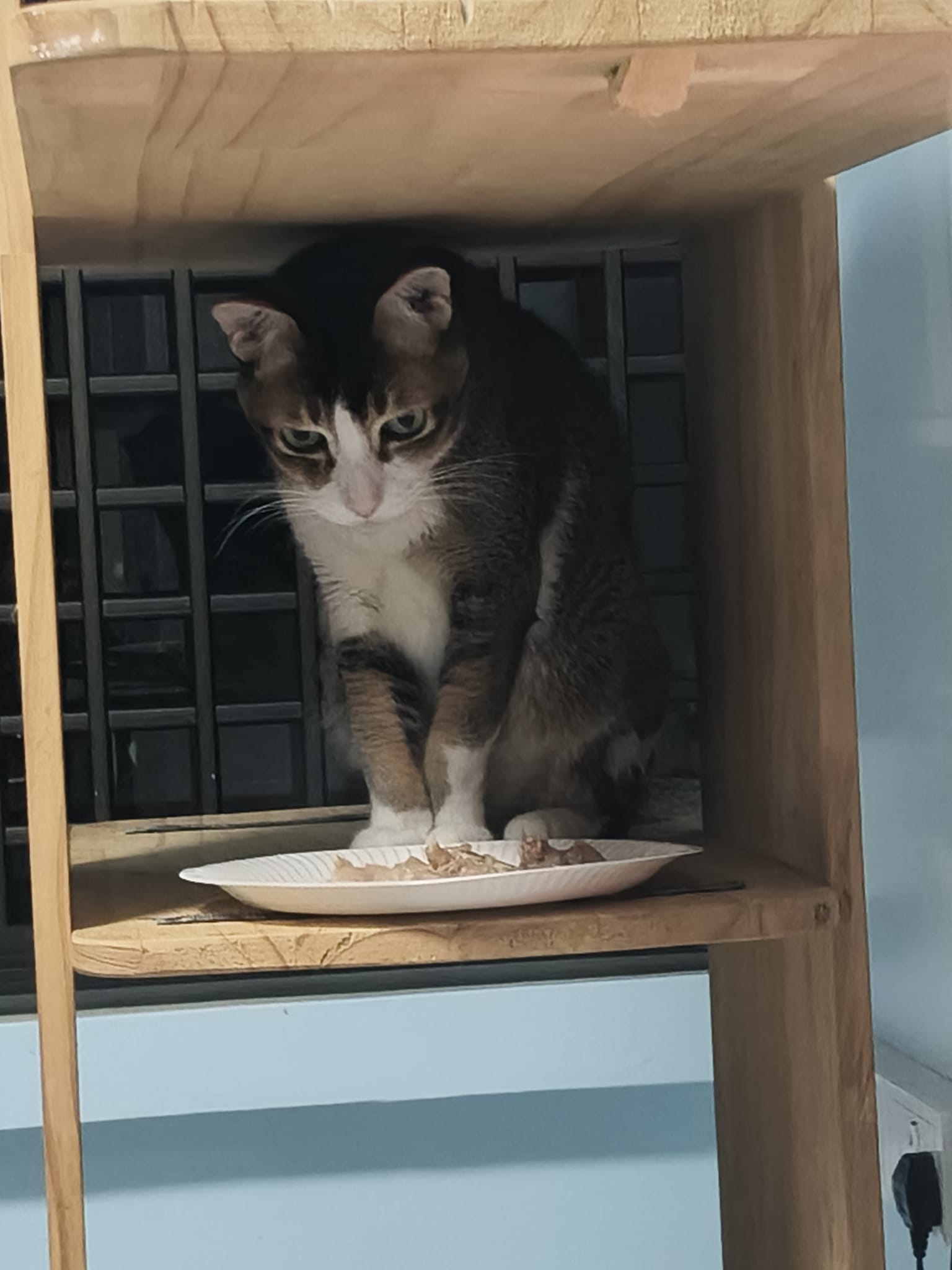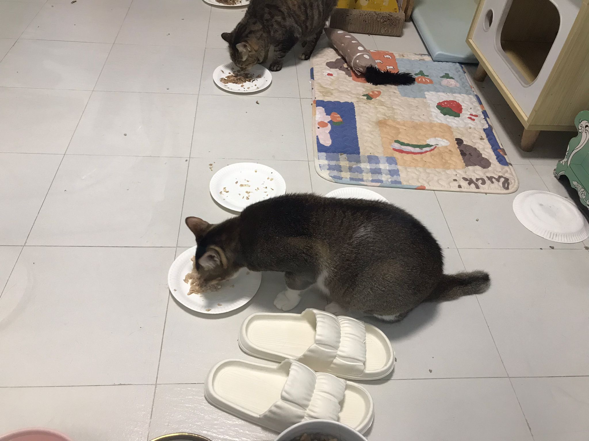 1pm+: I Waited so long their bench delivery not here yet. Today throw half their cat tree away. Rearrange a little. Tmr then give them the bench 🙂