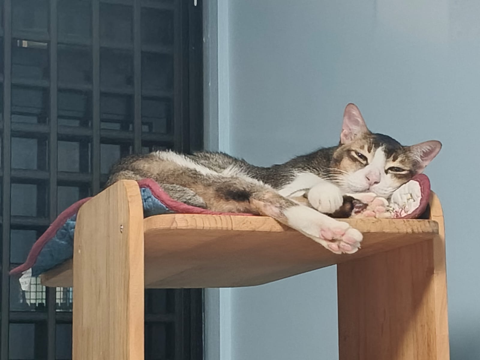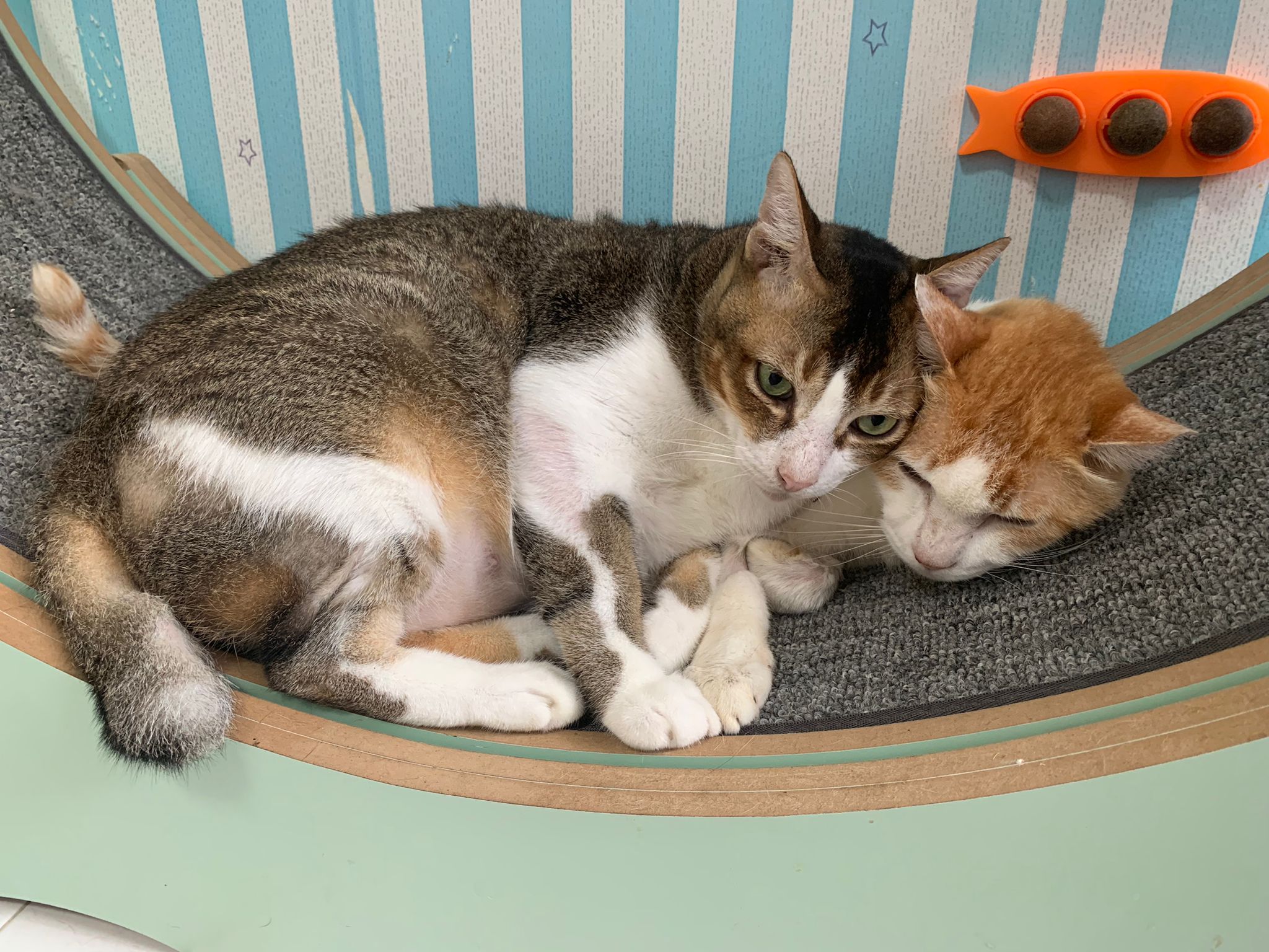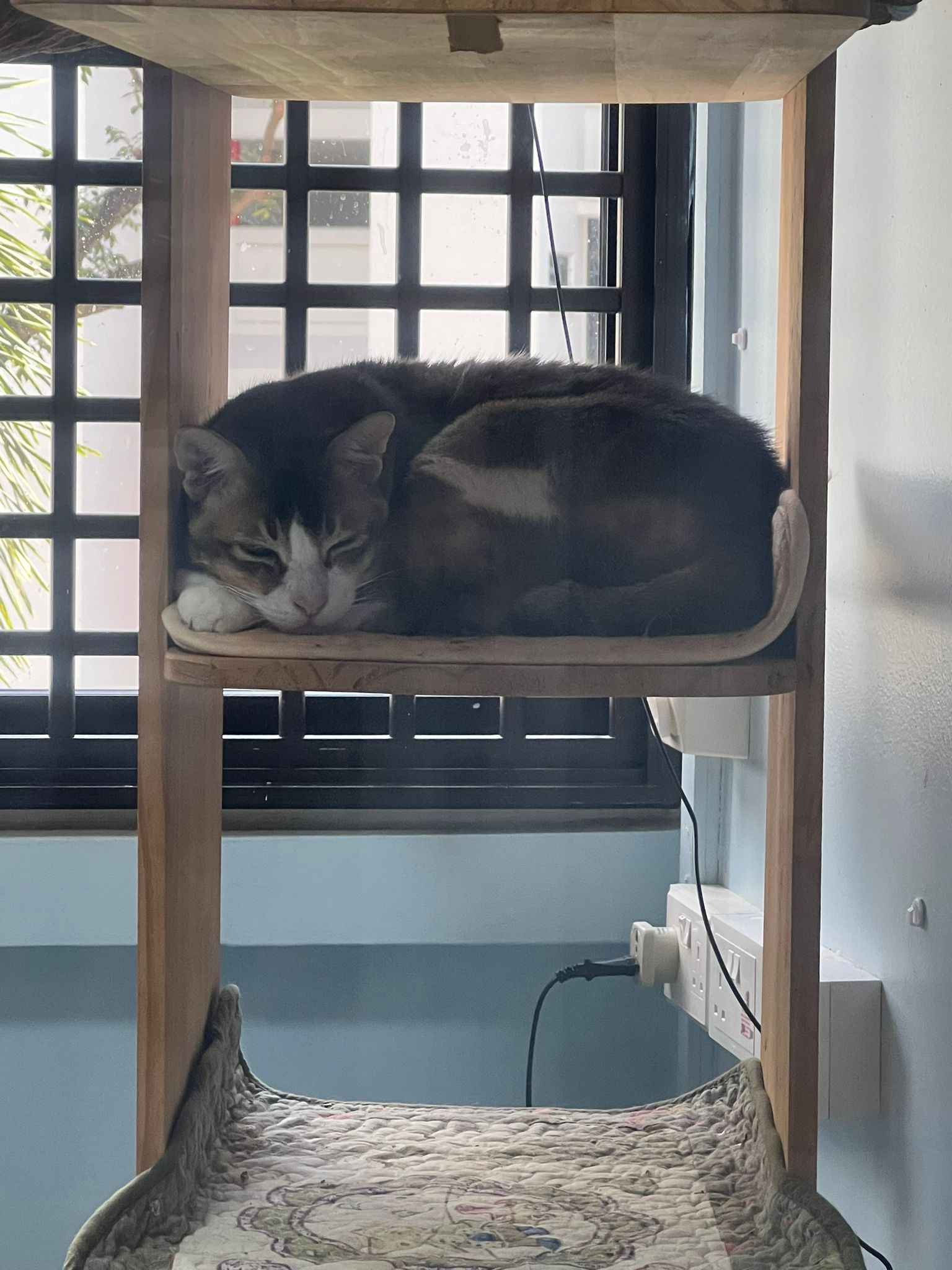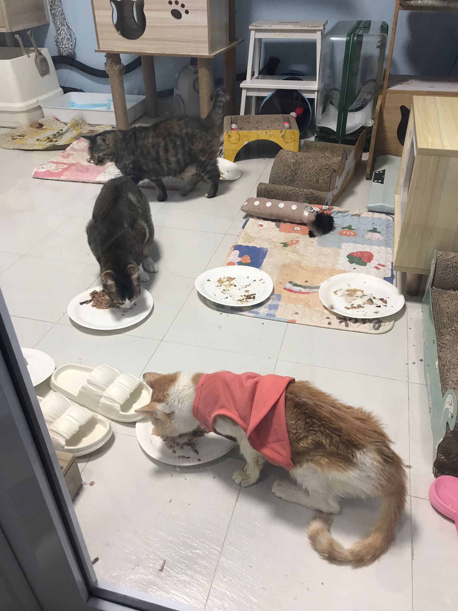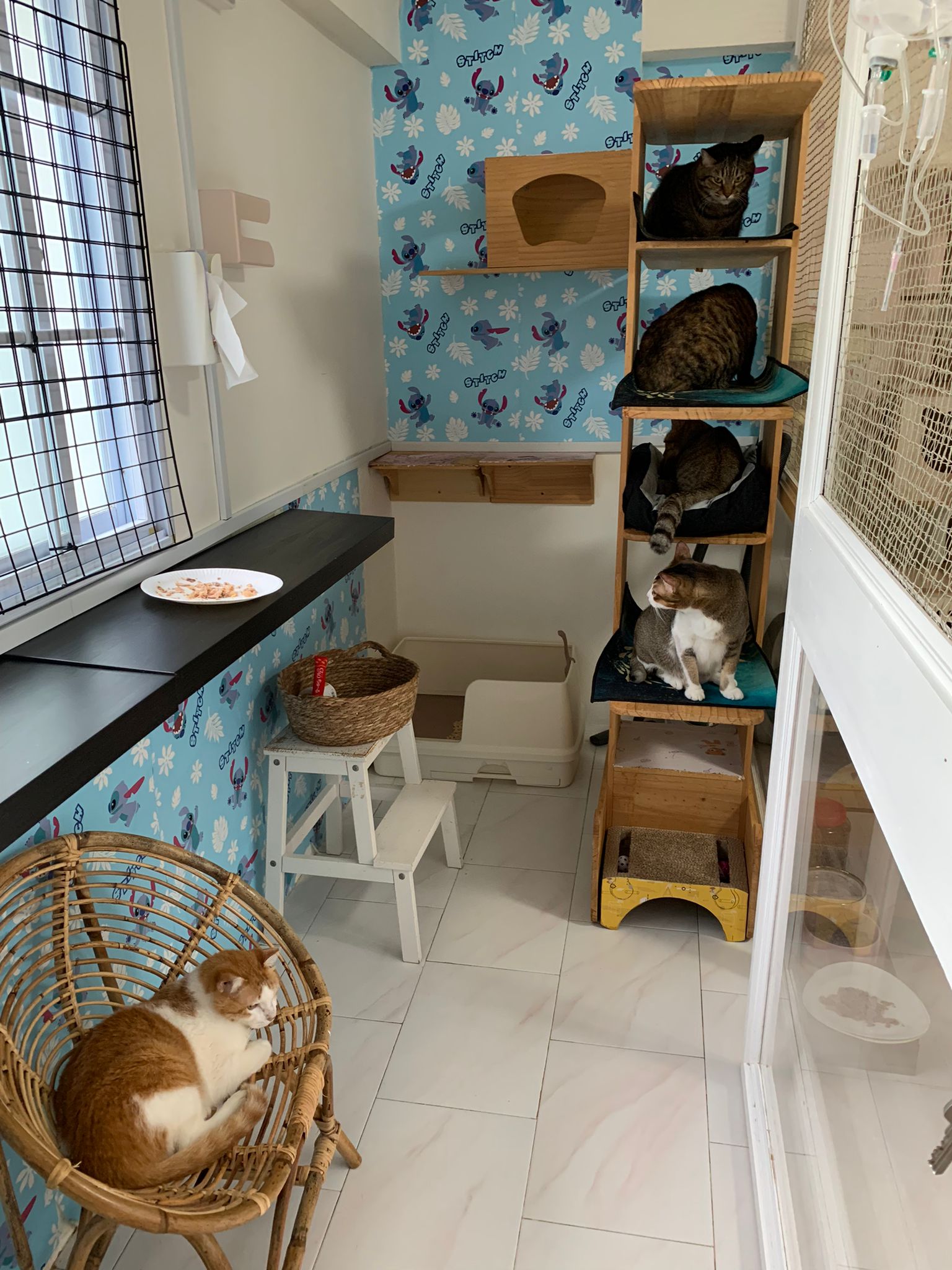 1pm+: I Waited so long their bench delivery not here yet. Today throw half their cat tree away. Rearrange a little. Tmr then give them the bench 🙂