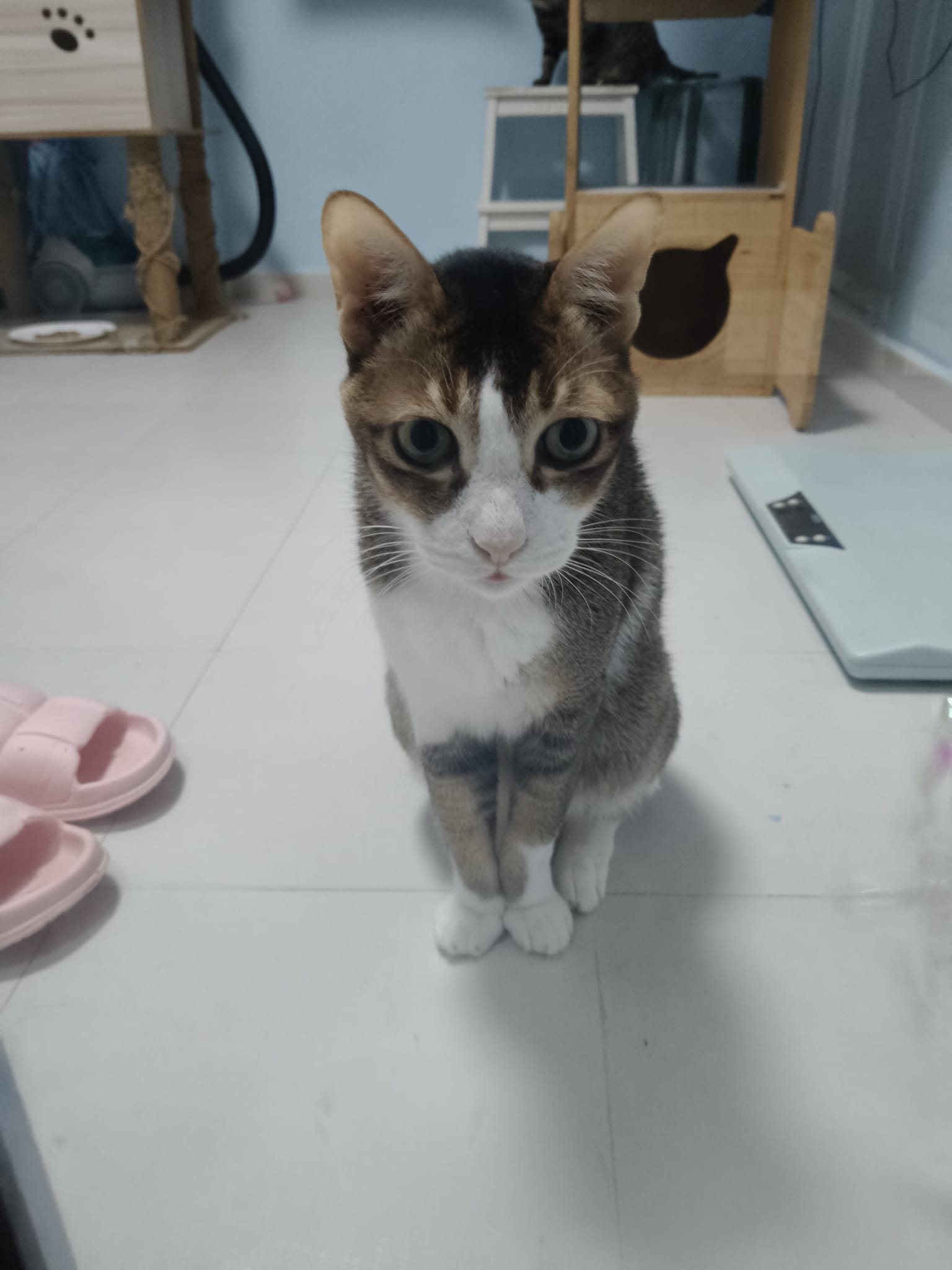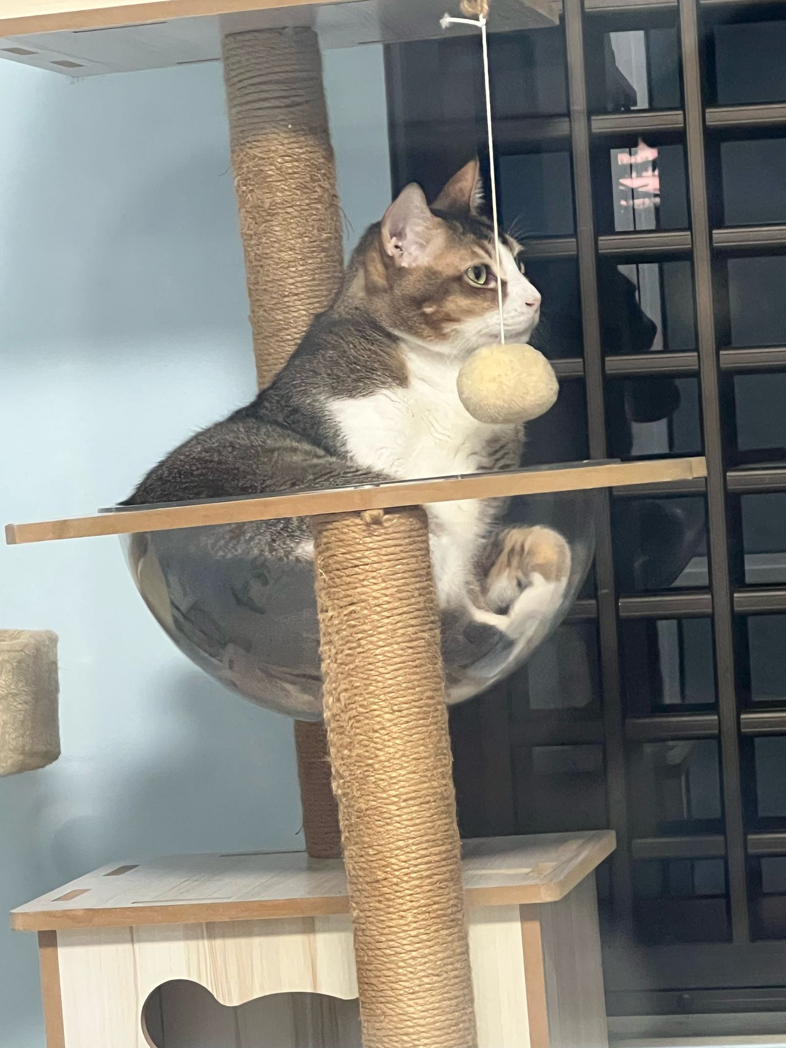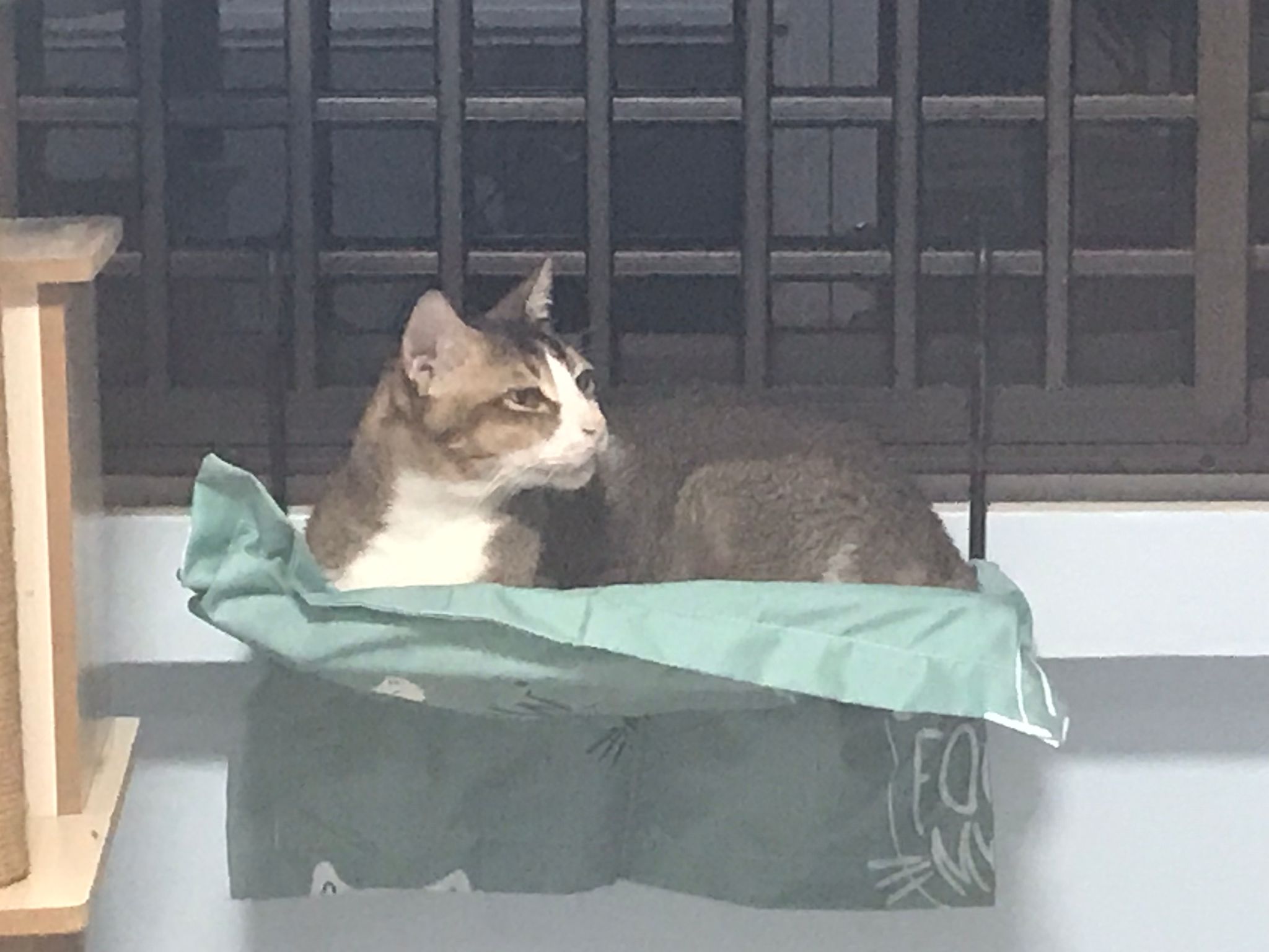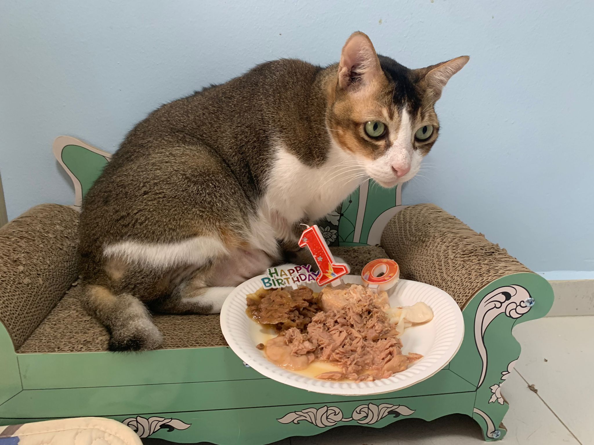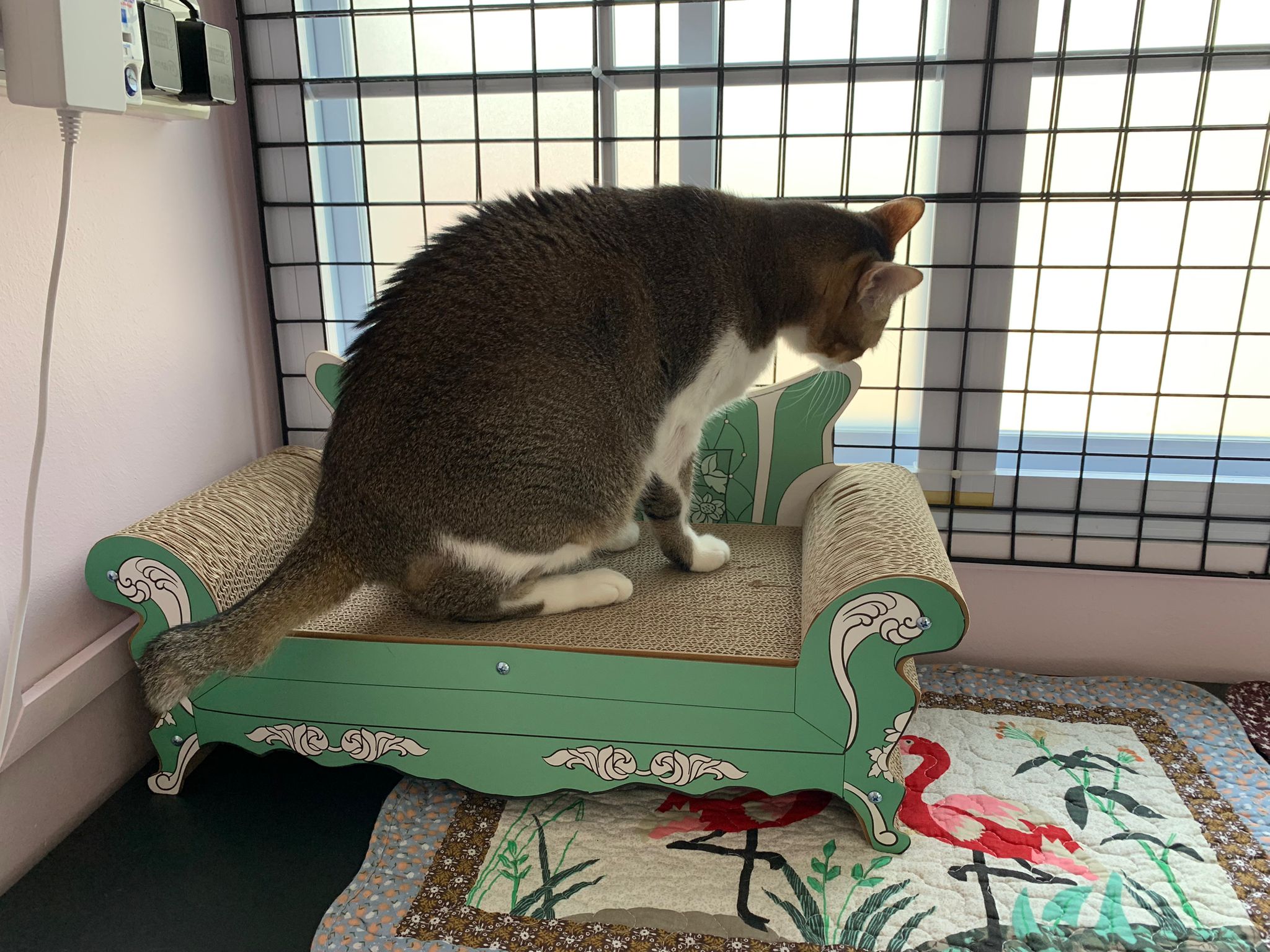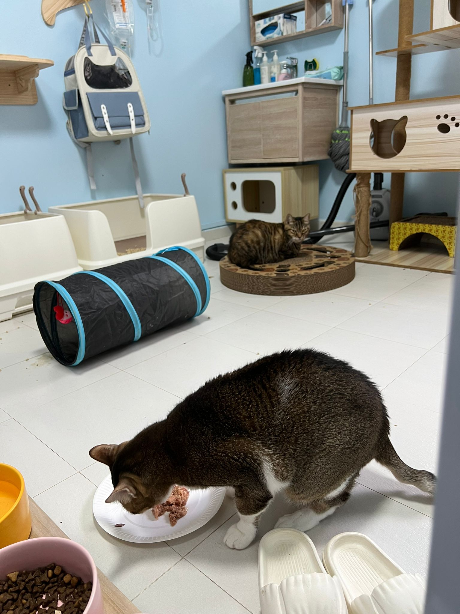 1pm+: I Waited so long their bench delivery not here yet. Today throw half their cat tree away. Rearrange a little. Tmr then give them the bench 🙂