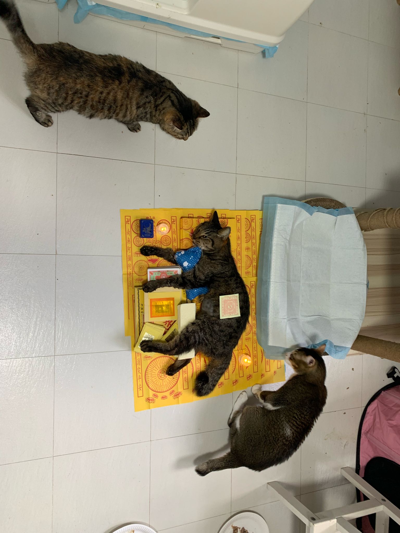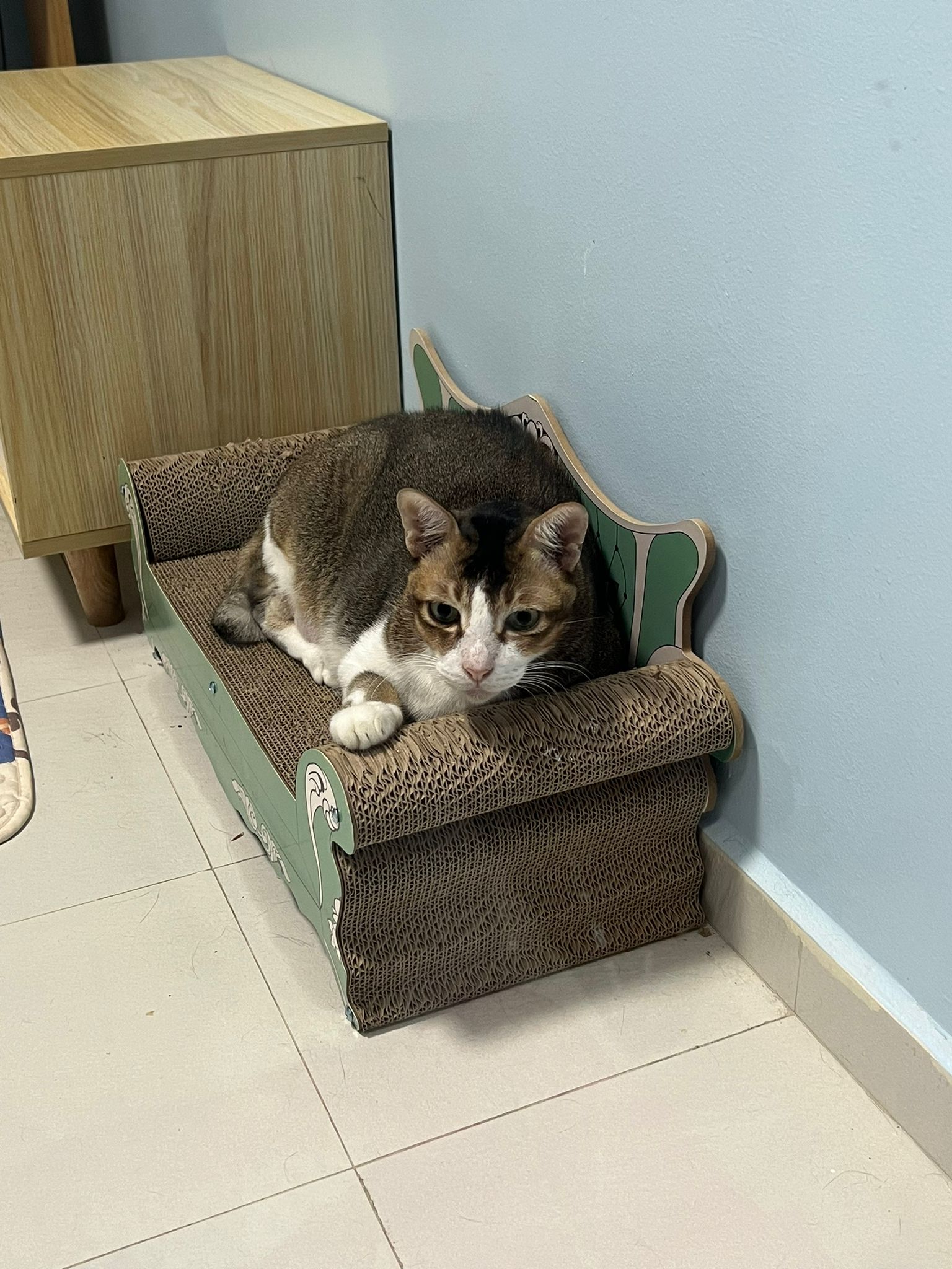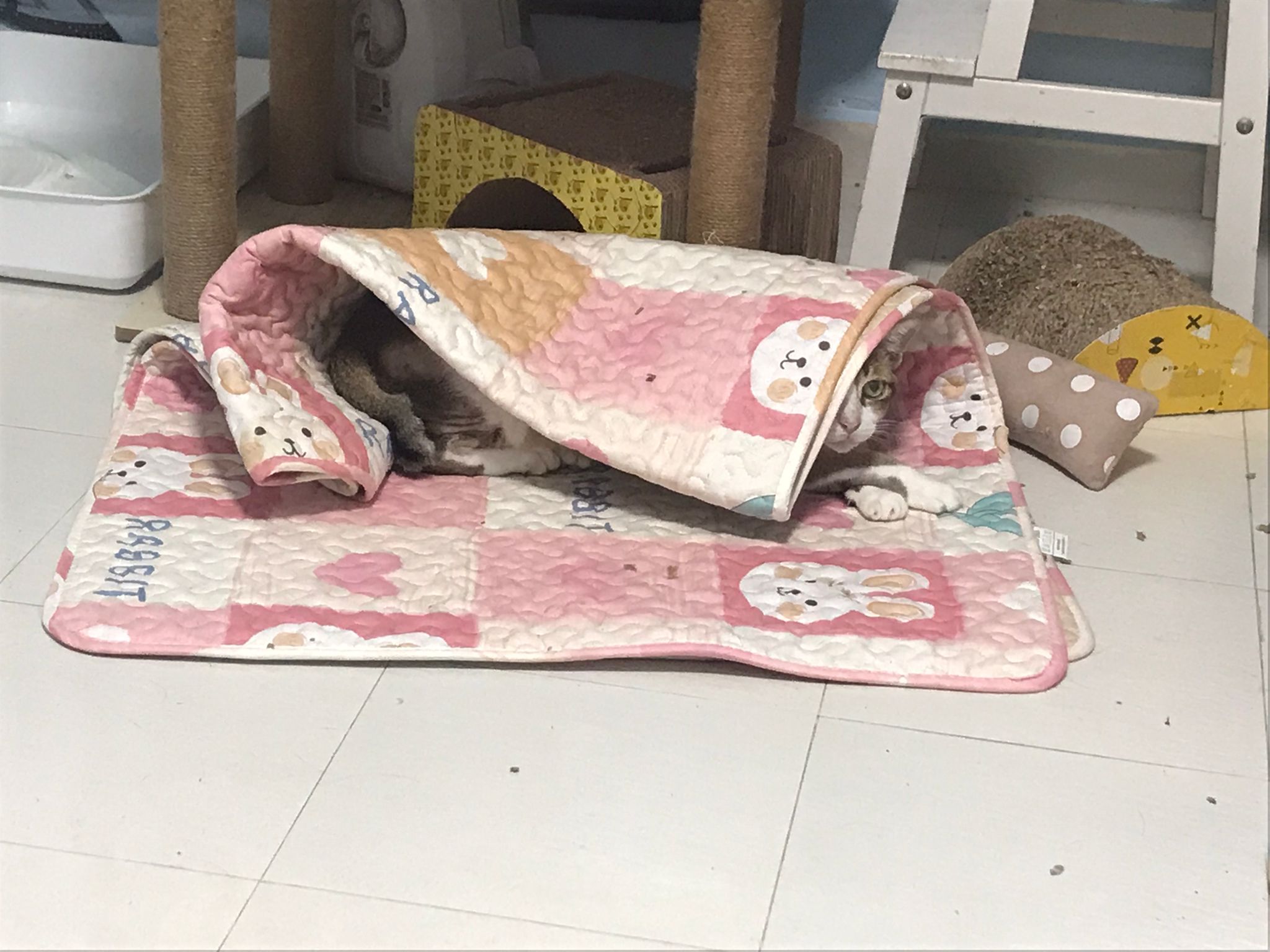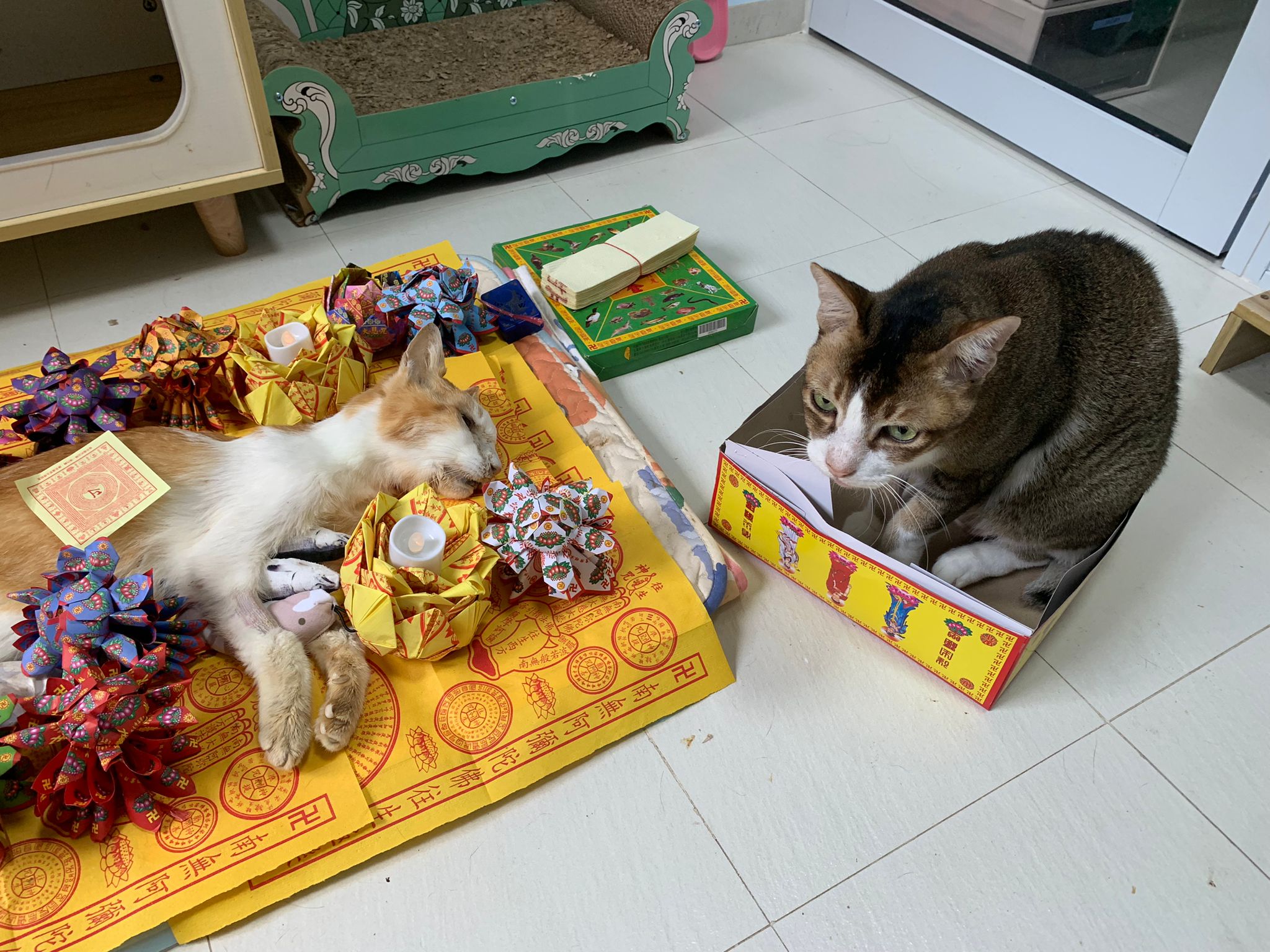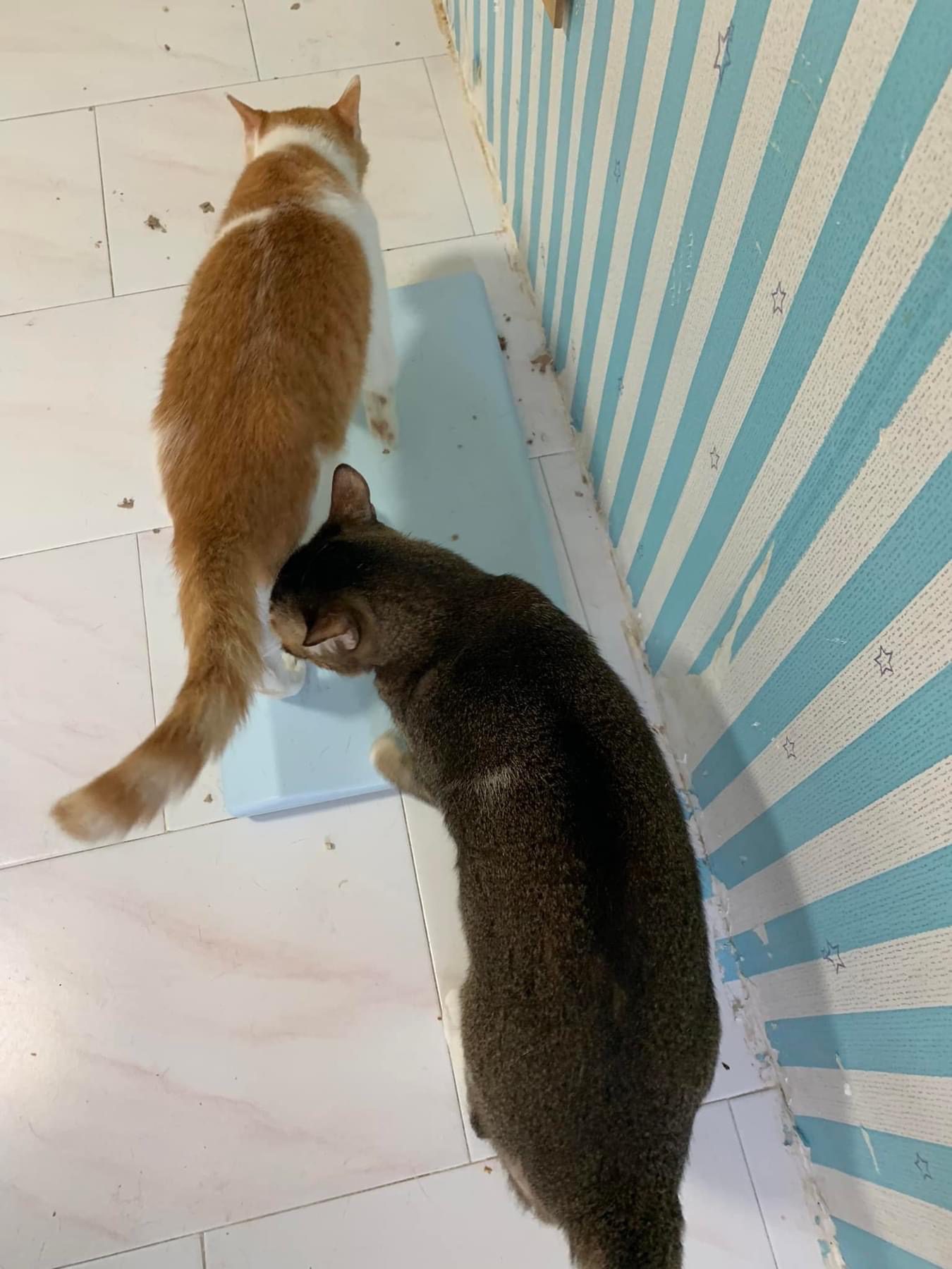 1pm+: I Waited so long their bench delivery not here yet. Today throw half their cat tree away. Rearrange a little. Tmr then give them the bench 🙂
