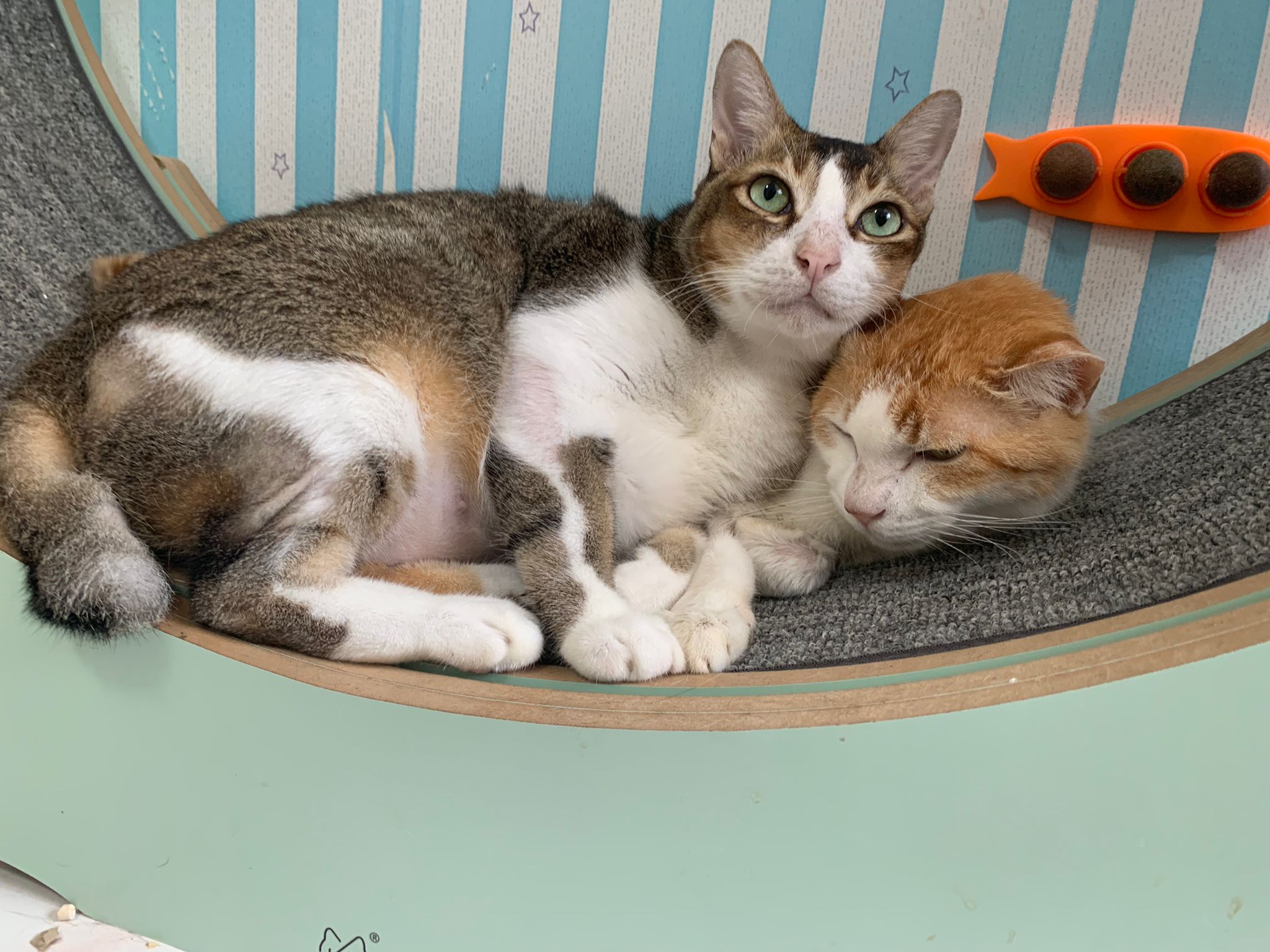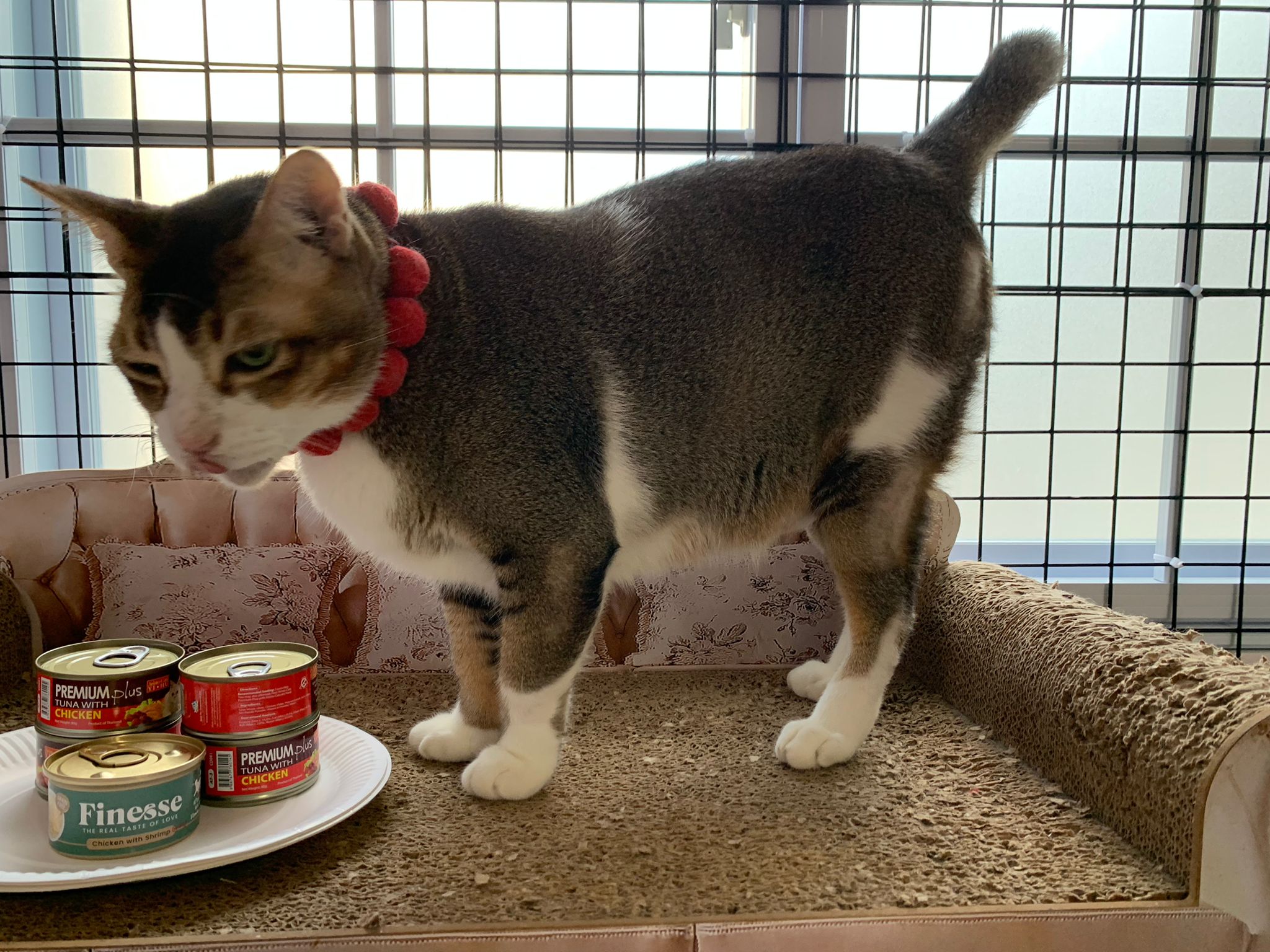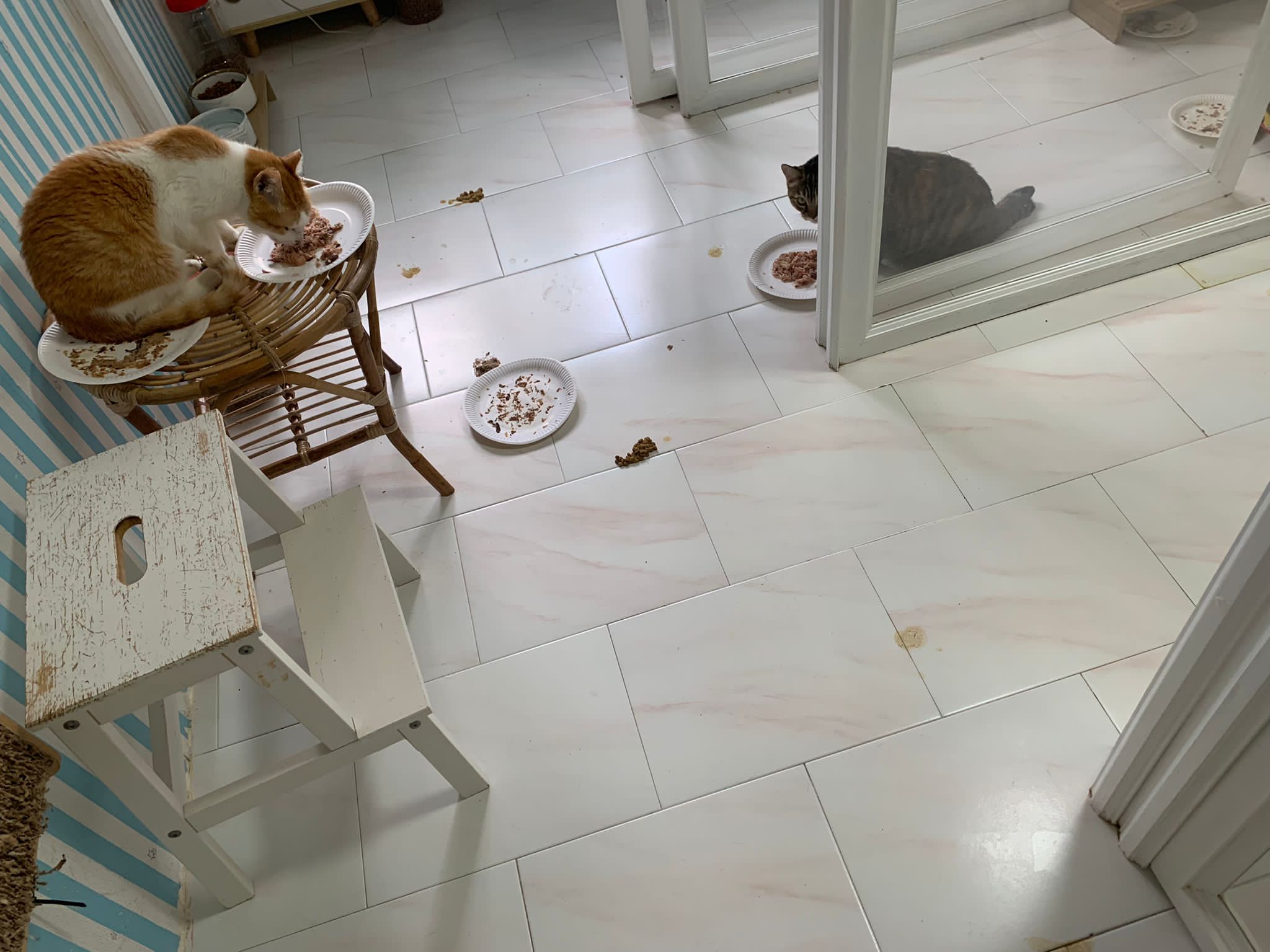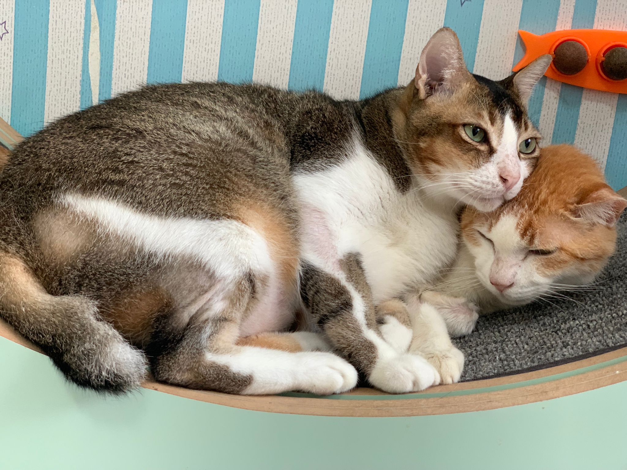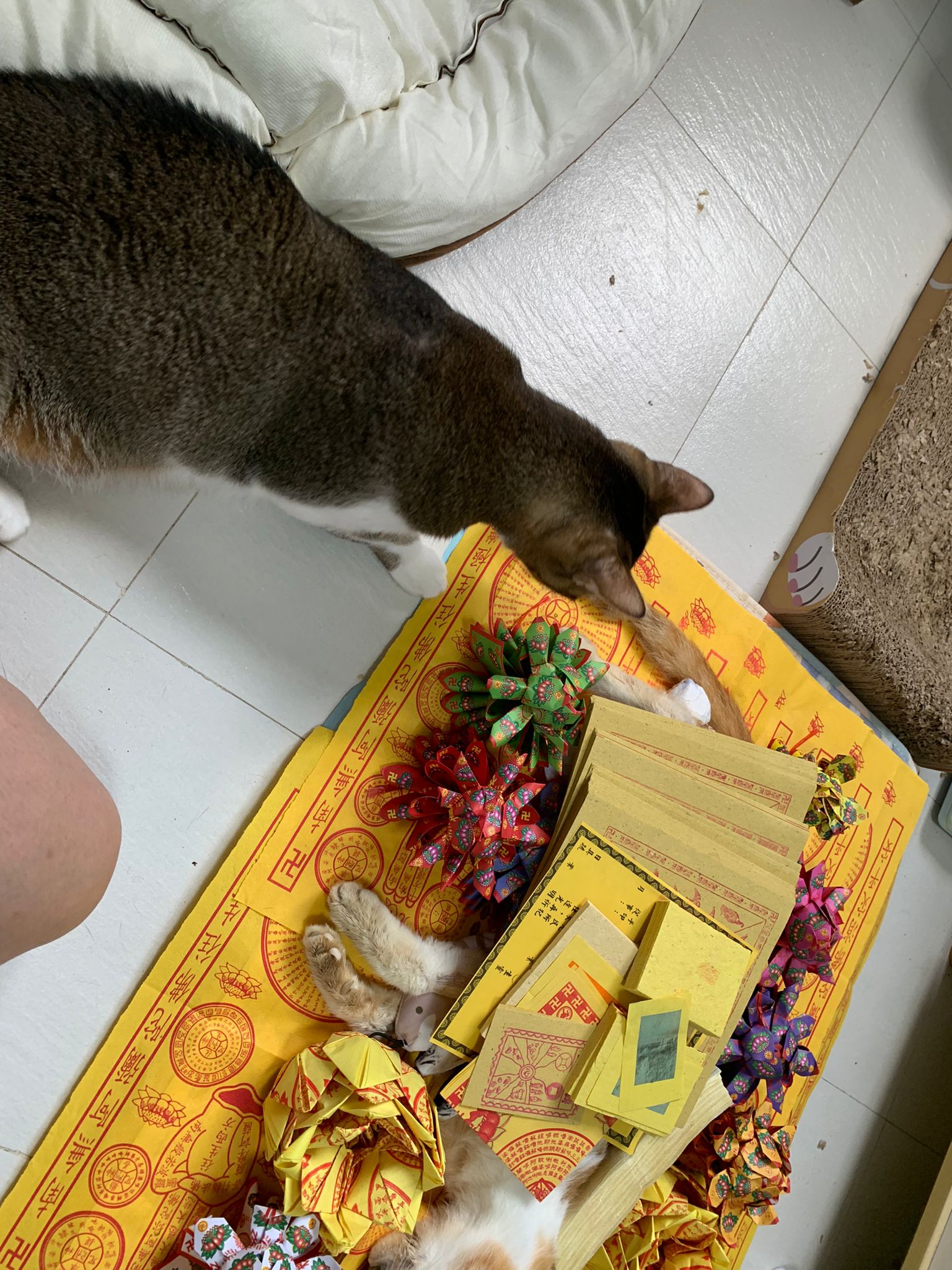 1pm+: I Waited so long their bench delivery not here yet. Today throw half their cat tree away. Rearrange a little. Tmr then give them the bench 🙂