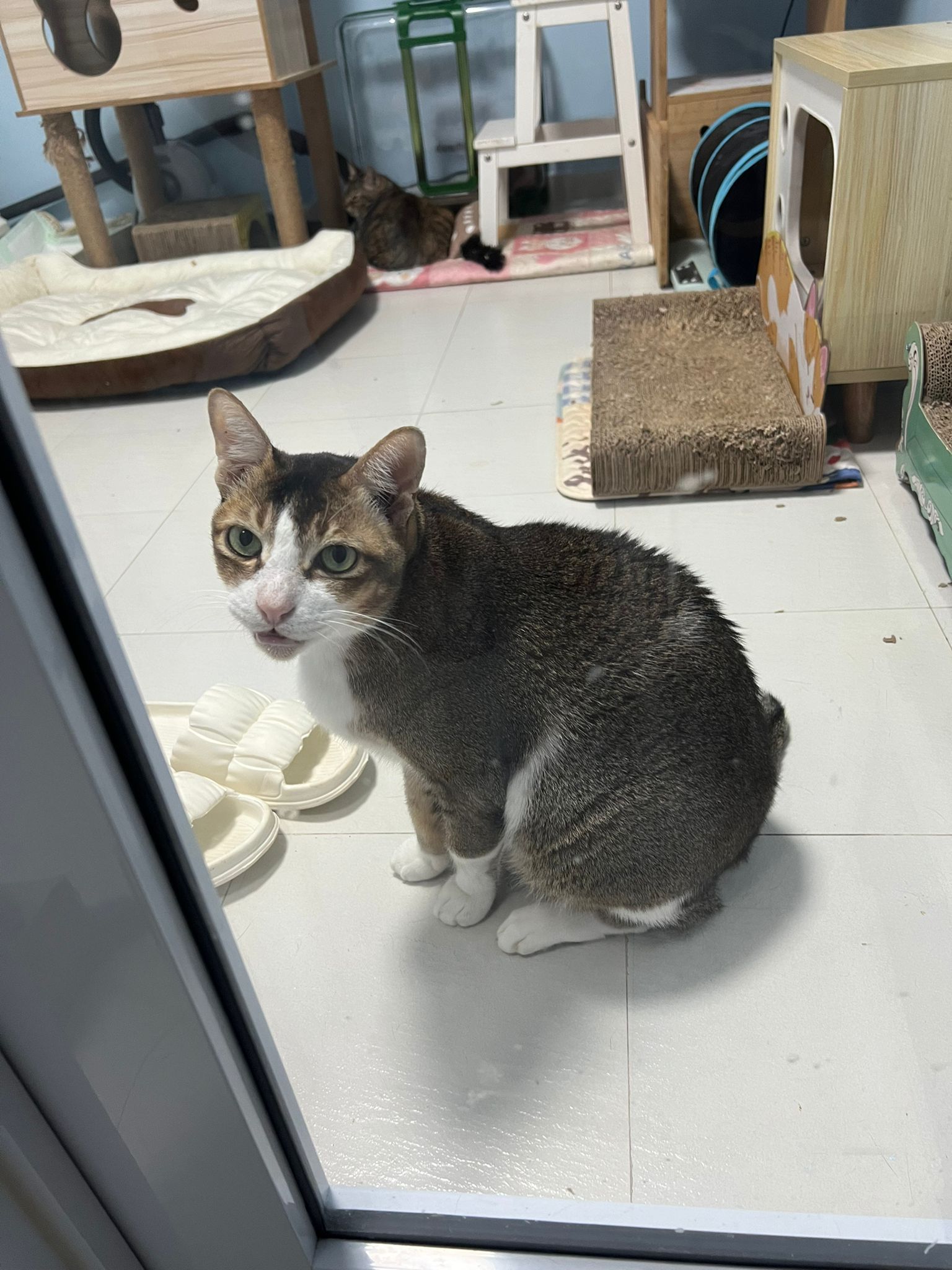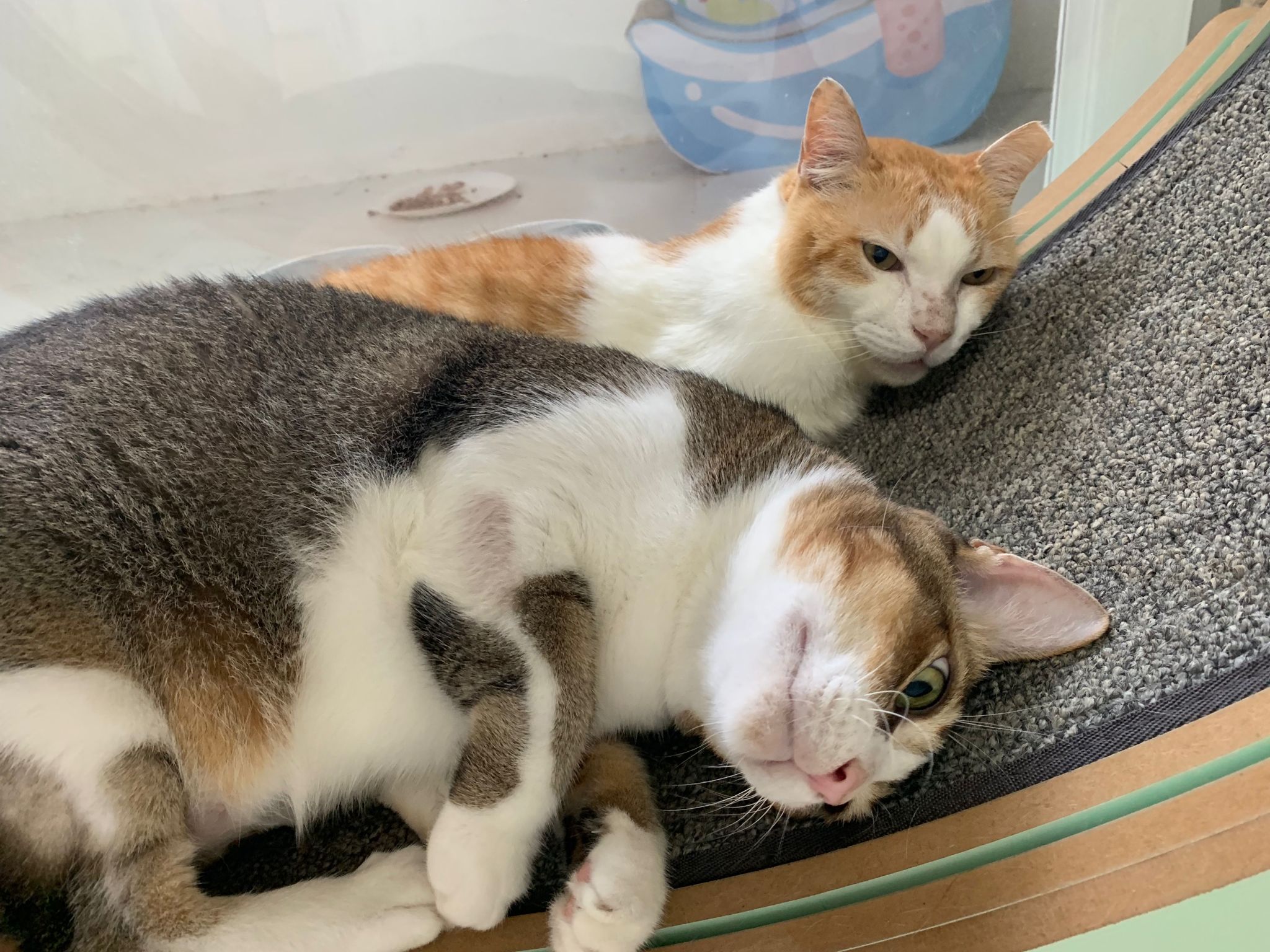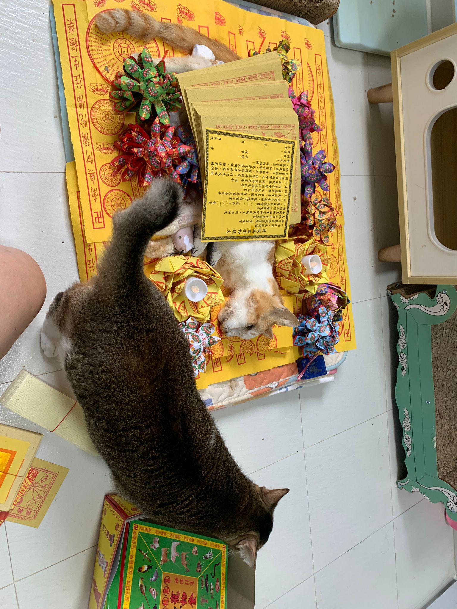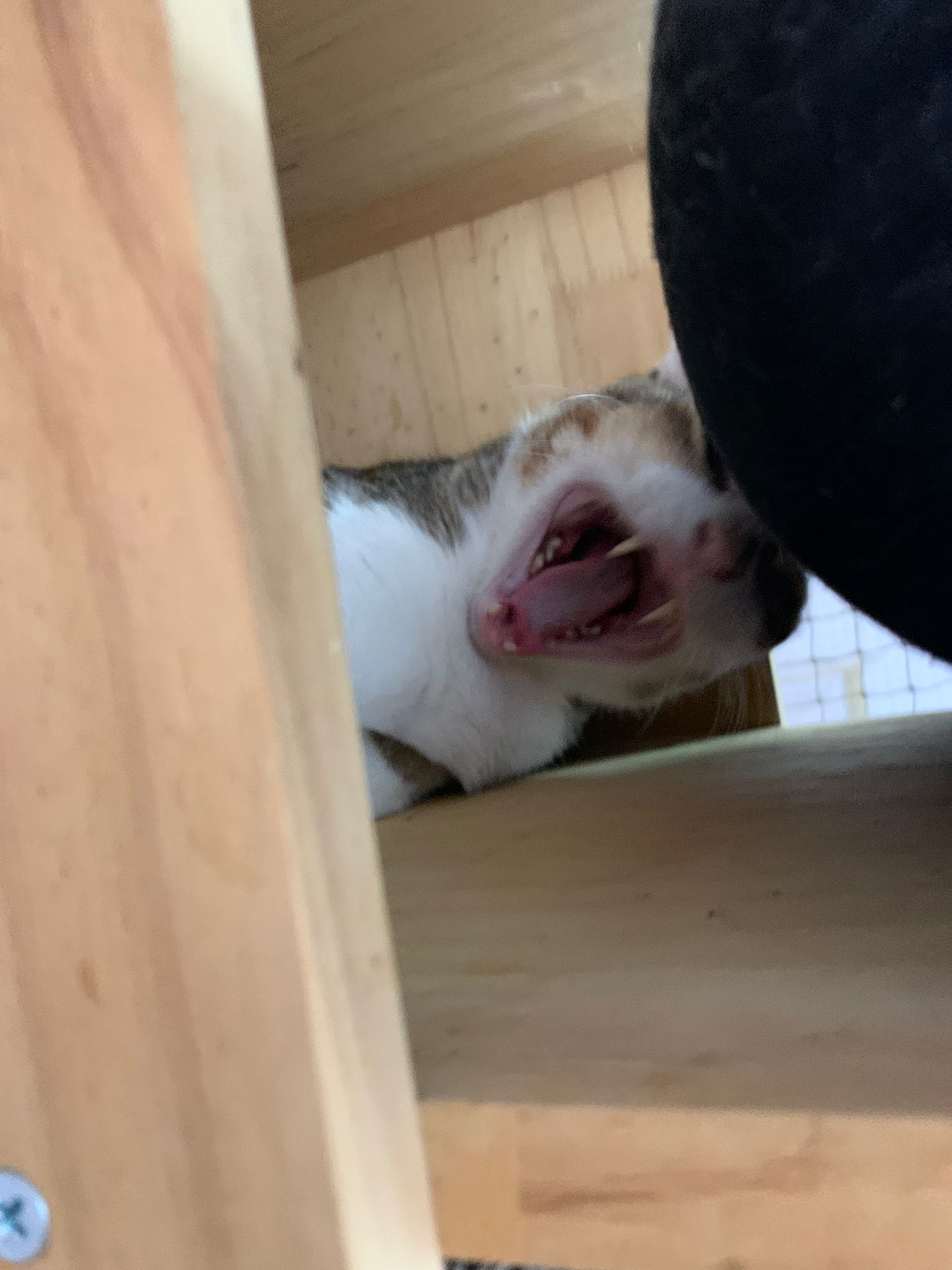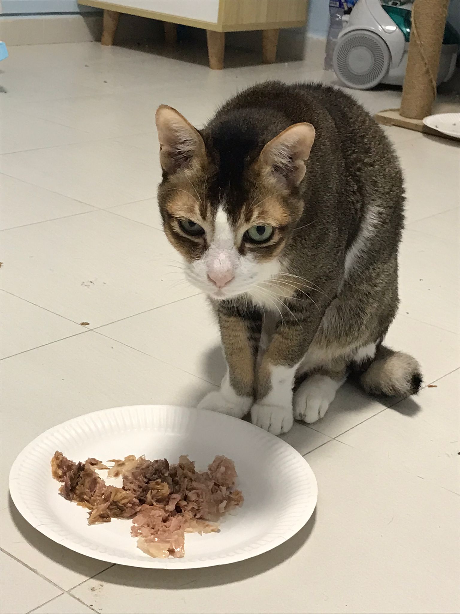 1pm+: I Waited so long their bench delivery not here yet. Today throw half their cat tree away. Rearrange a little. Tmr then give them the bench 🙂