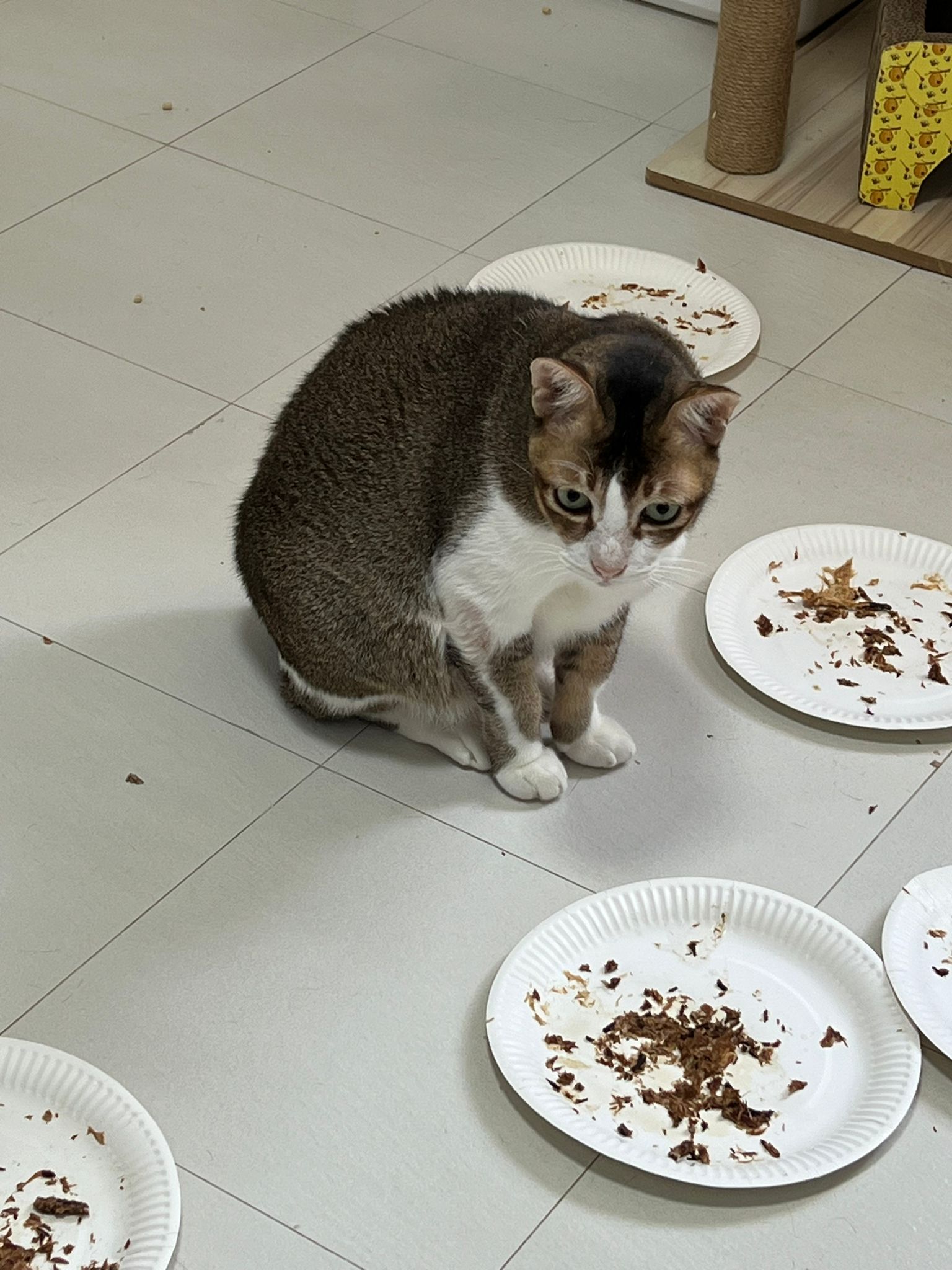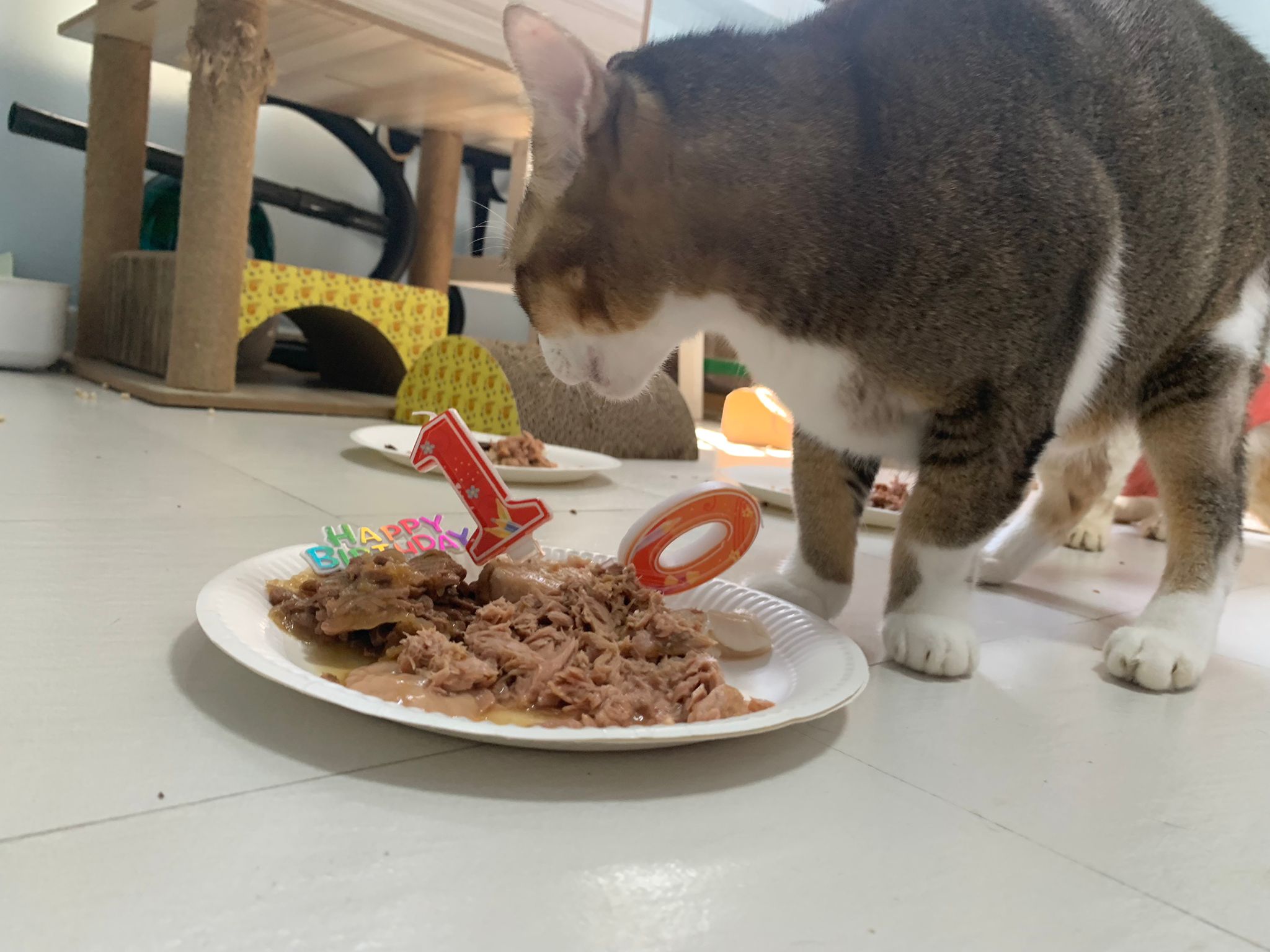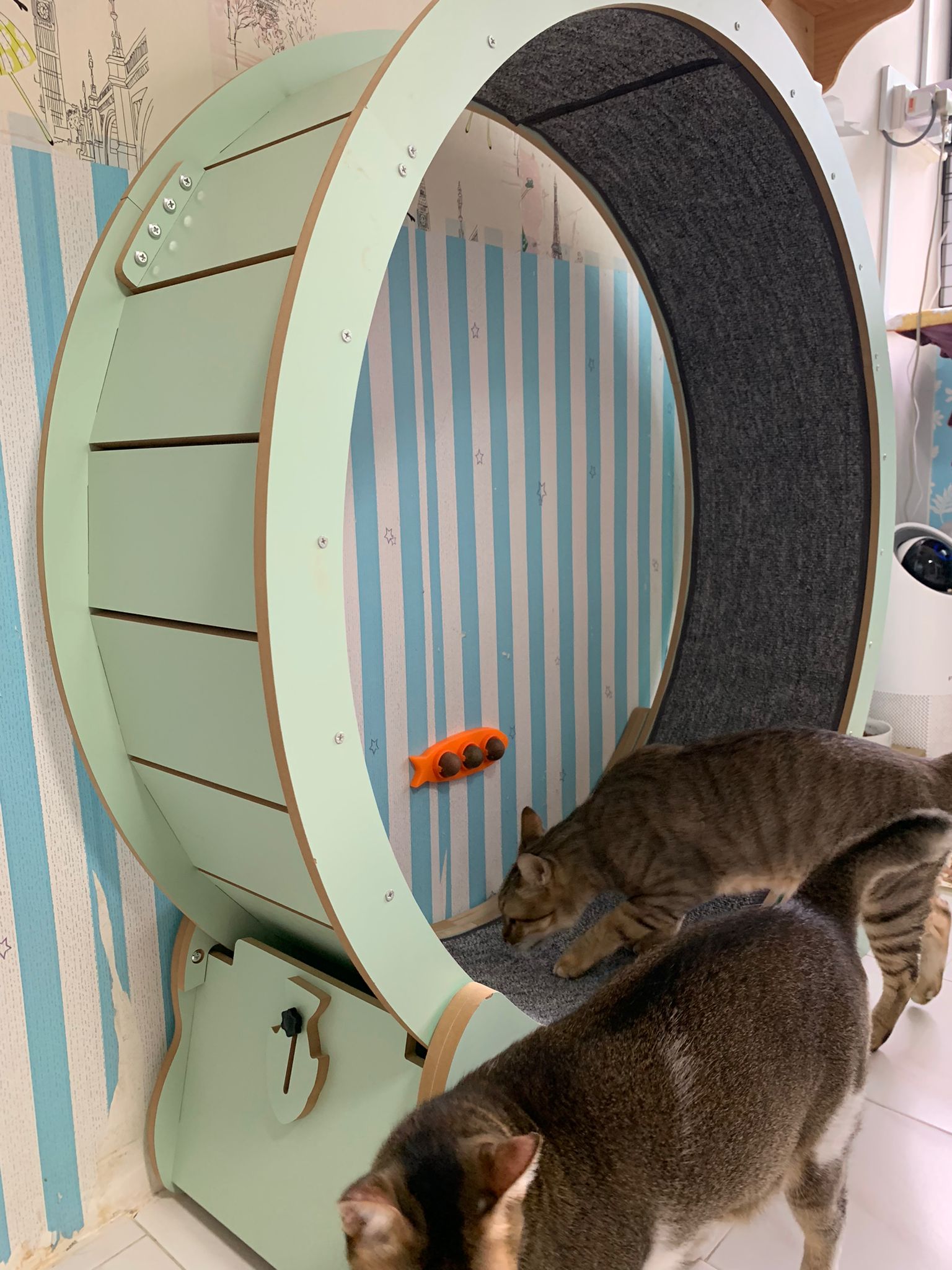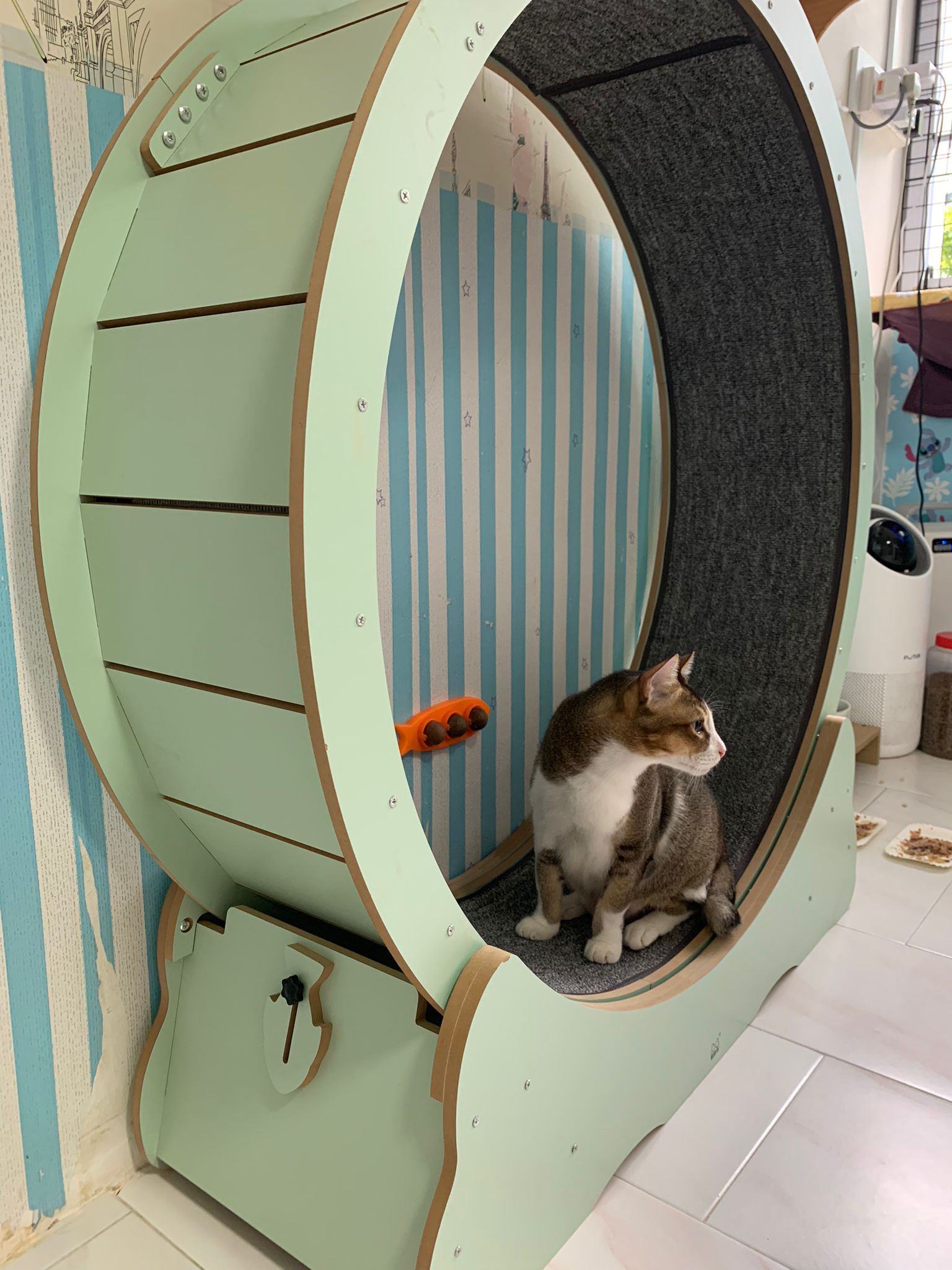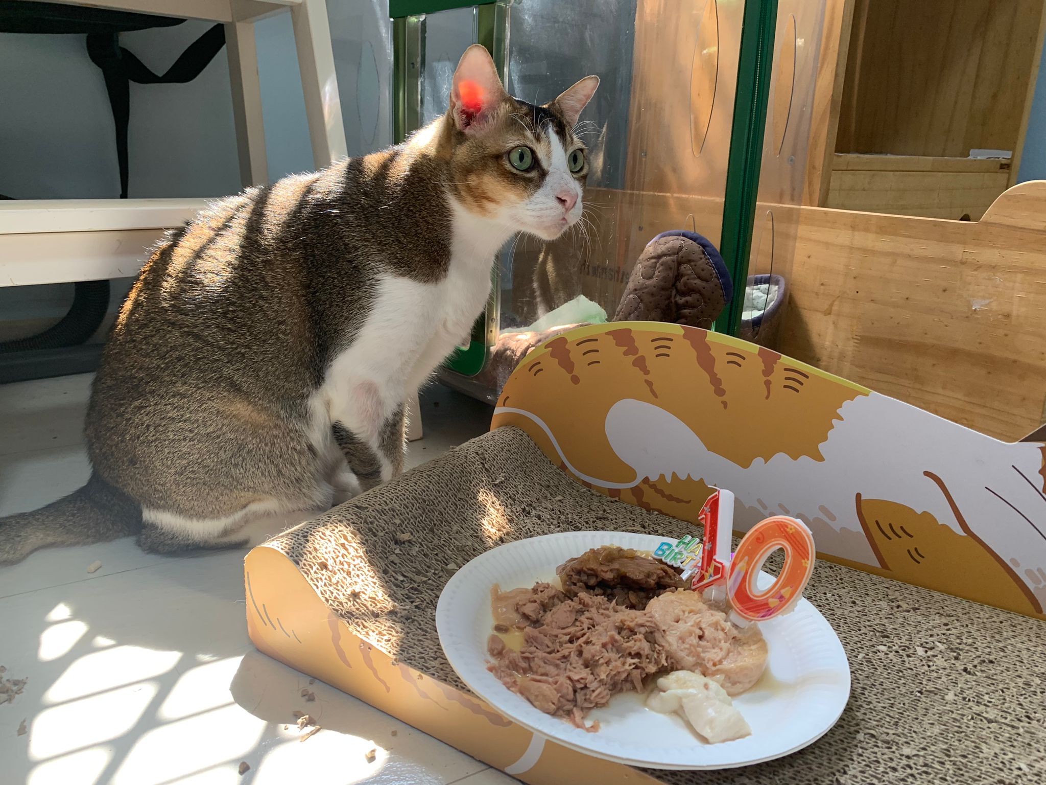 1pm+: I Waited so long their bench delivery not here yet. Today throw half their cat tree away. Rearrange a little. Tmr then give them the bench 🙂