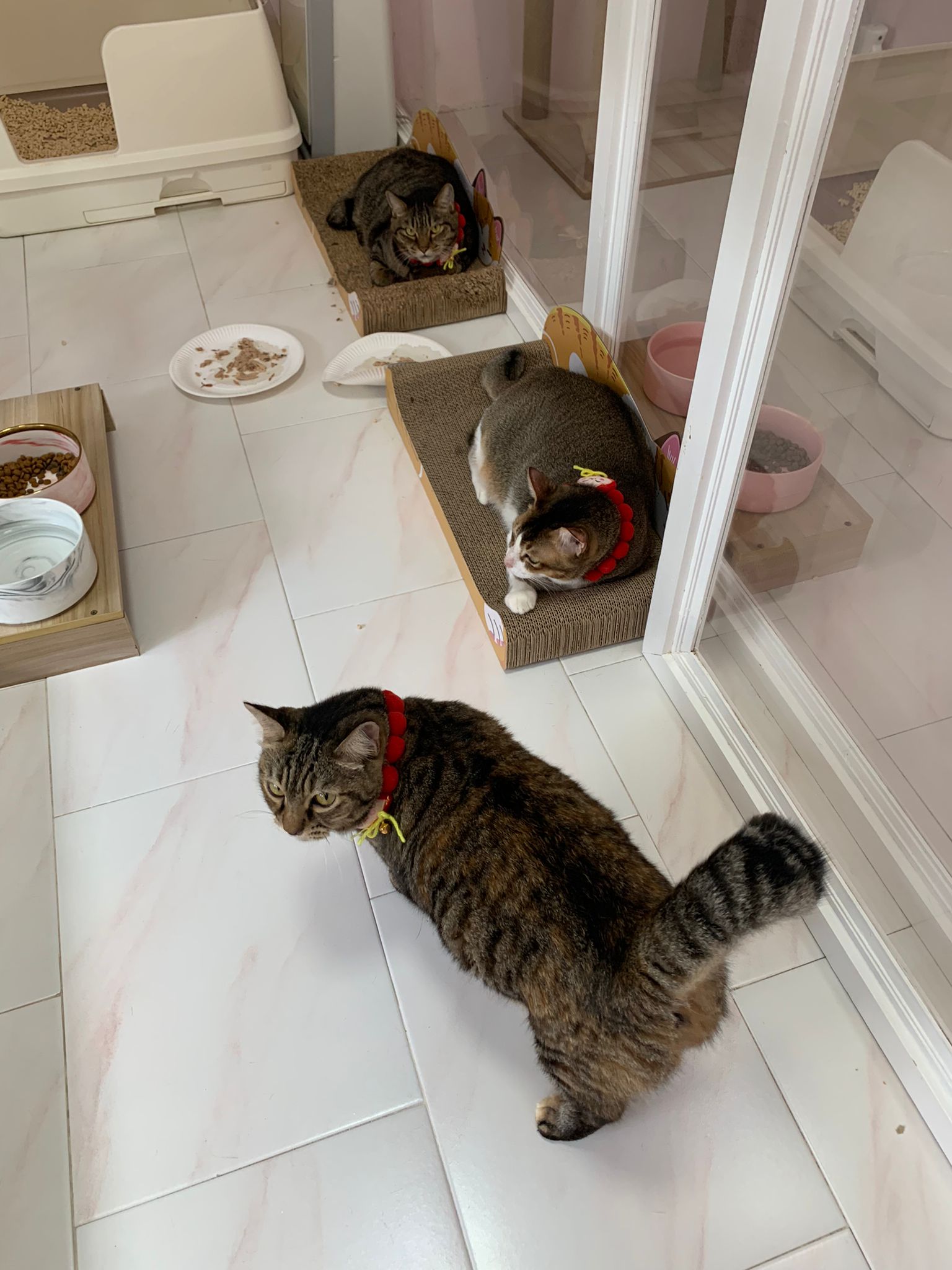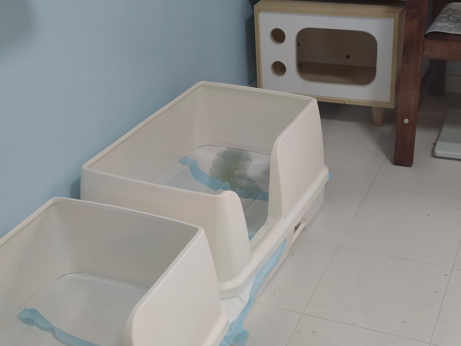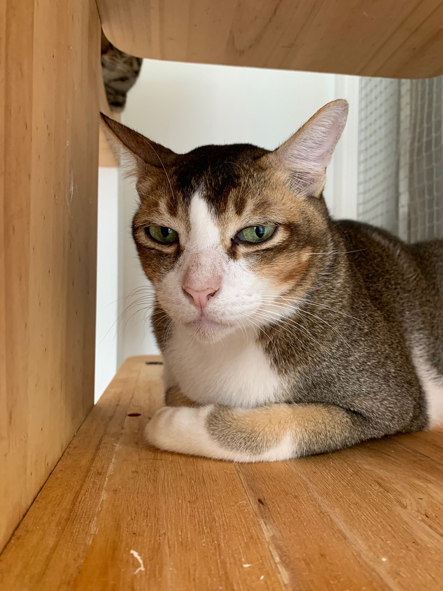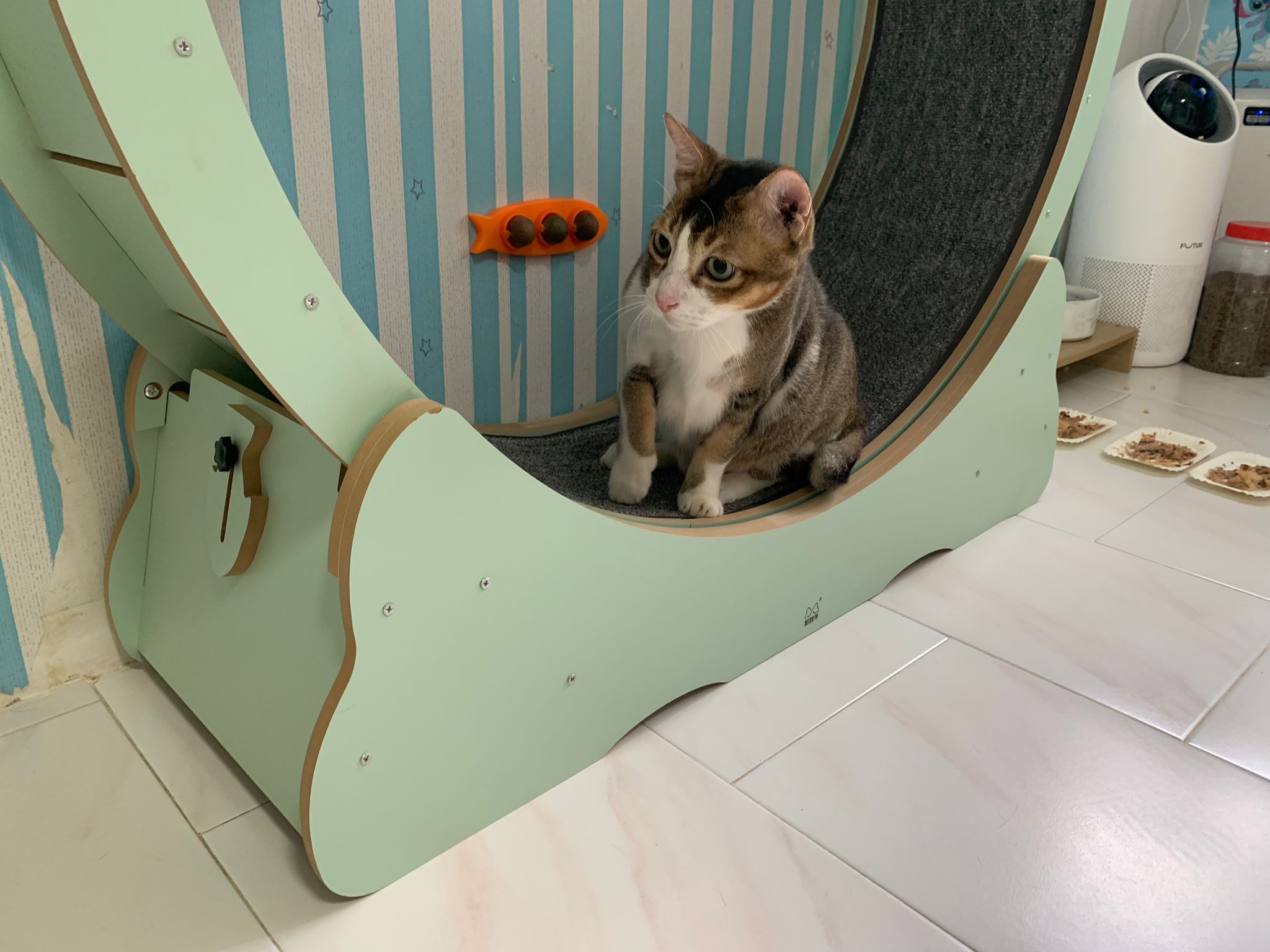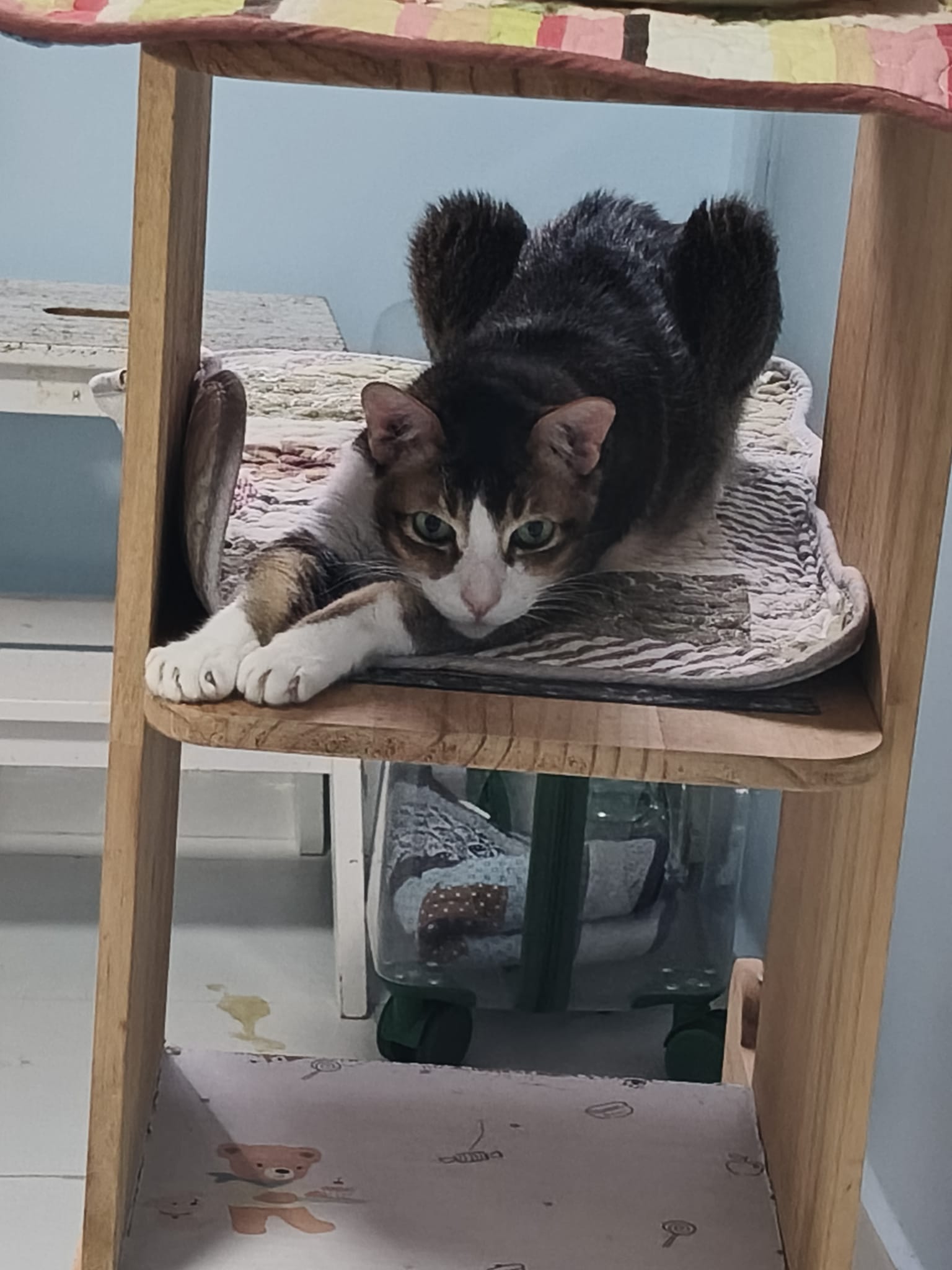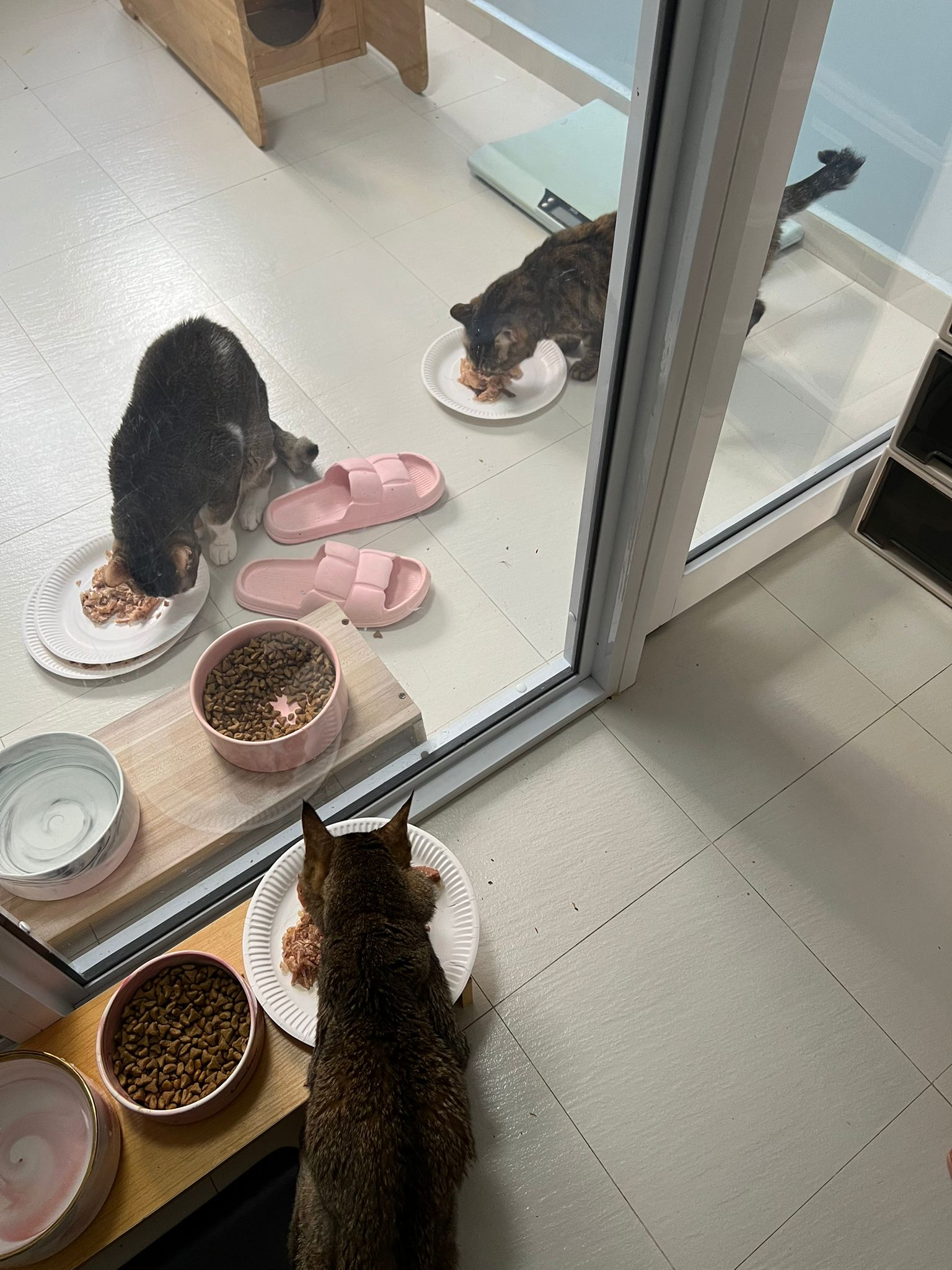1pm+: I Waited so long their bench delivery not here yet. Today throw half their cat tree away. Rearrange a little. Tmr then give them the bench 🙂