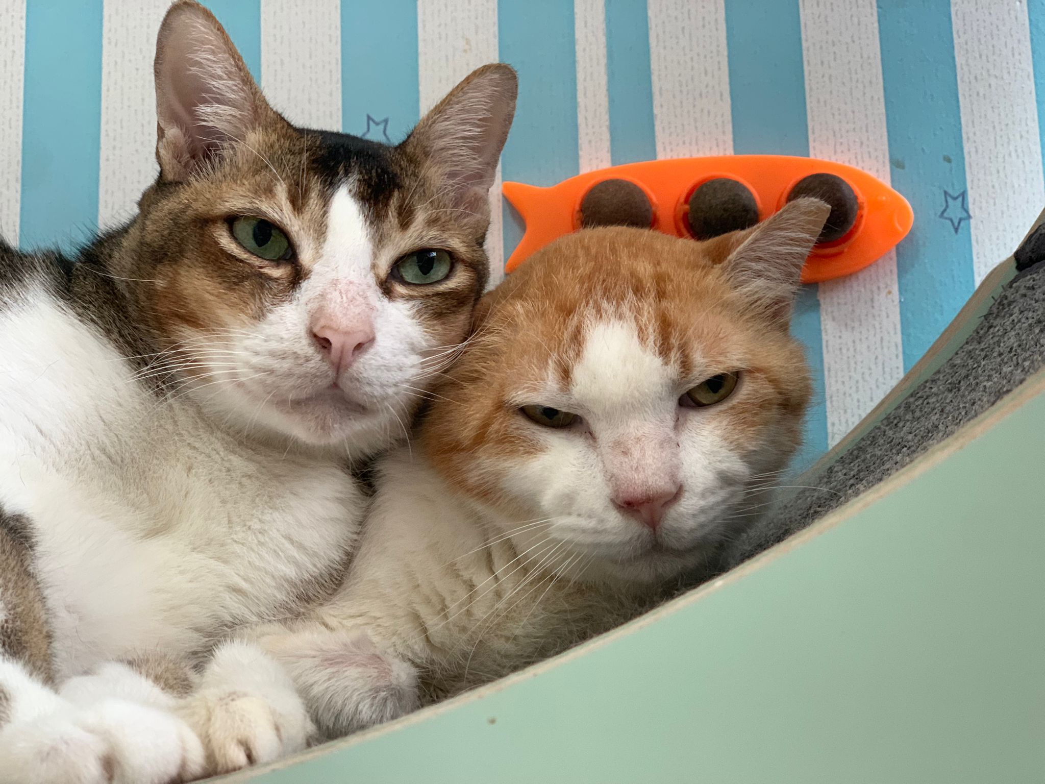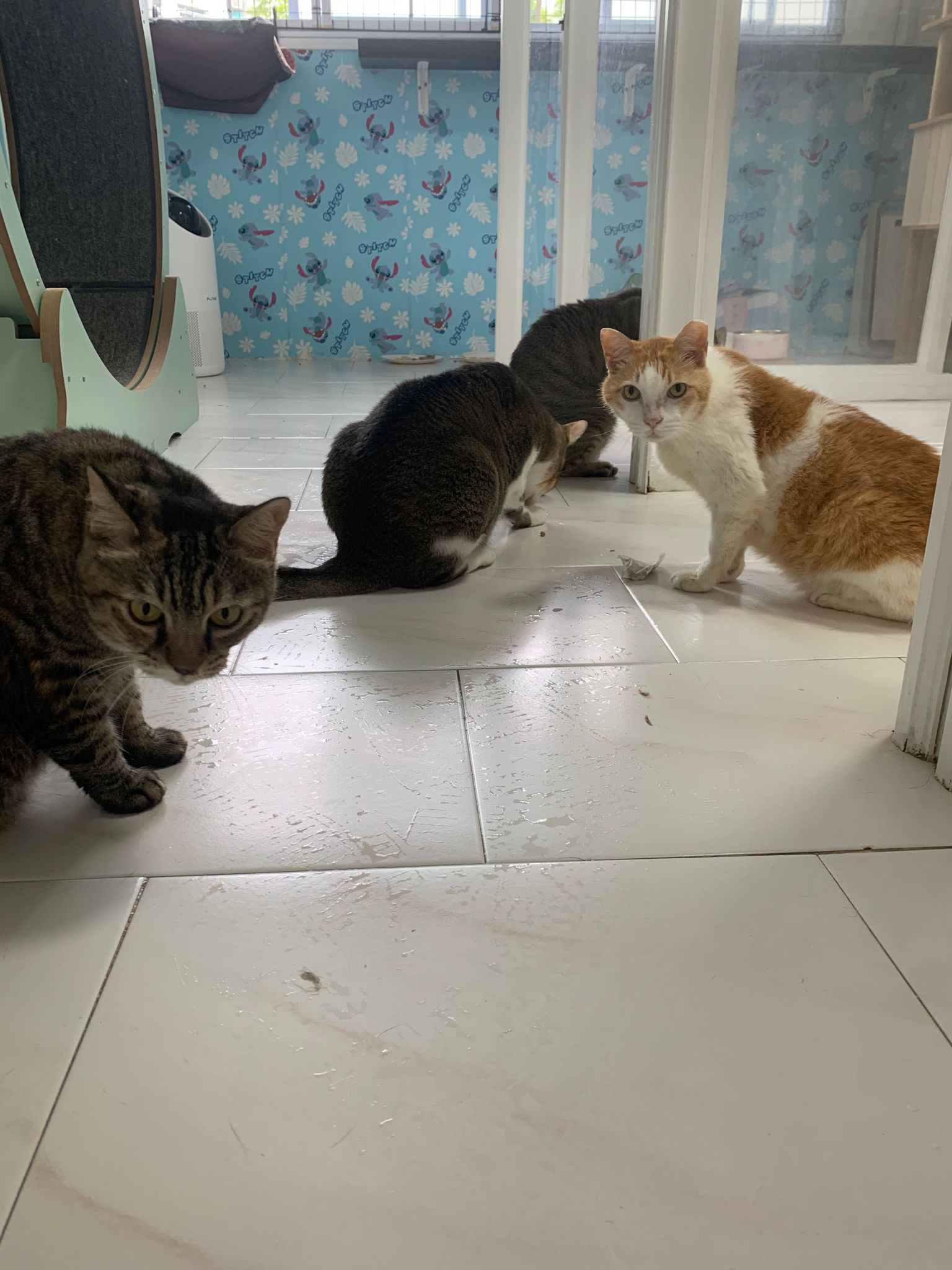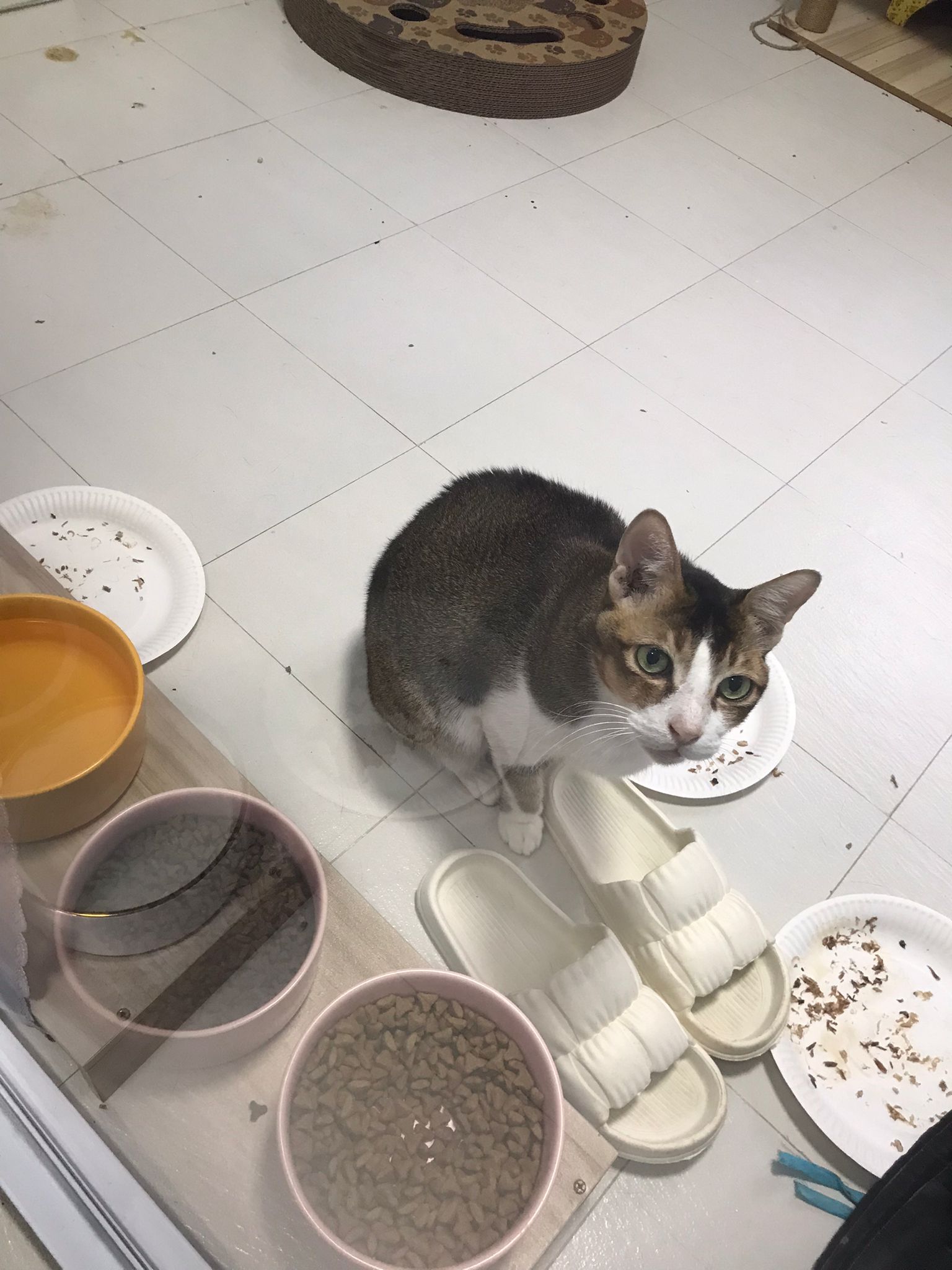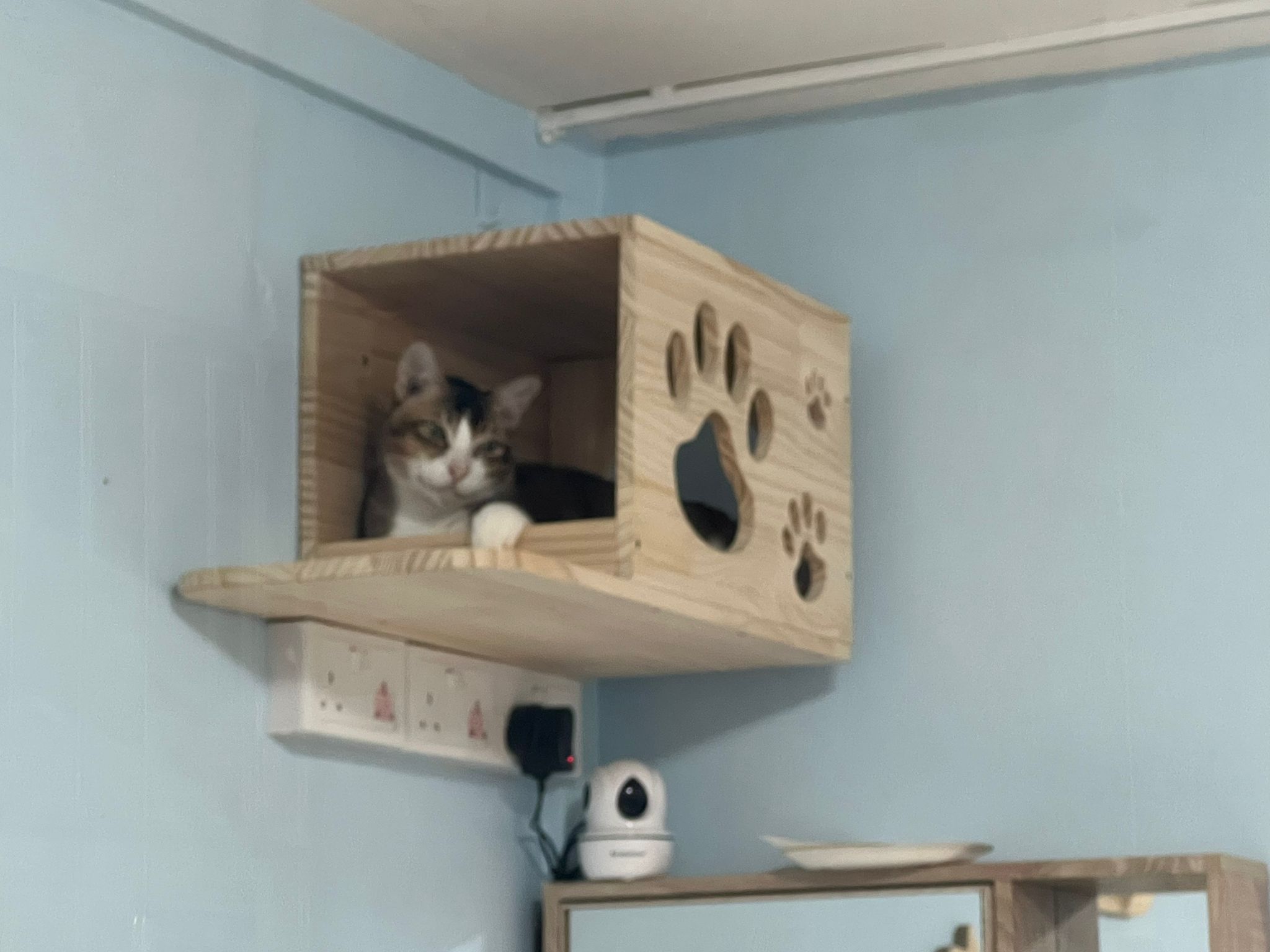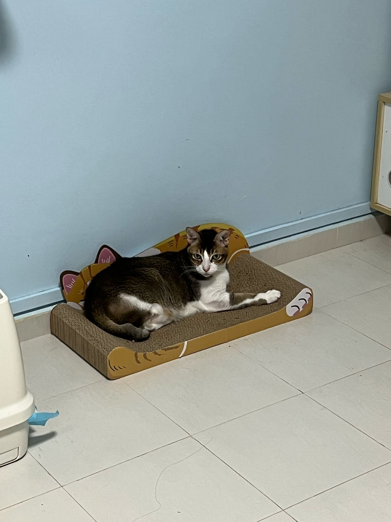 1pm+: I Waited so long their bench delivery not here yet. Today throw half their cat tree away. Rearrange a little. Tmr then give them the bench 🙂