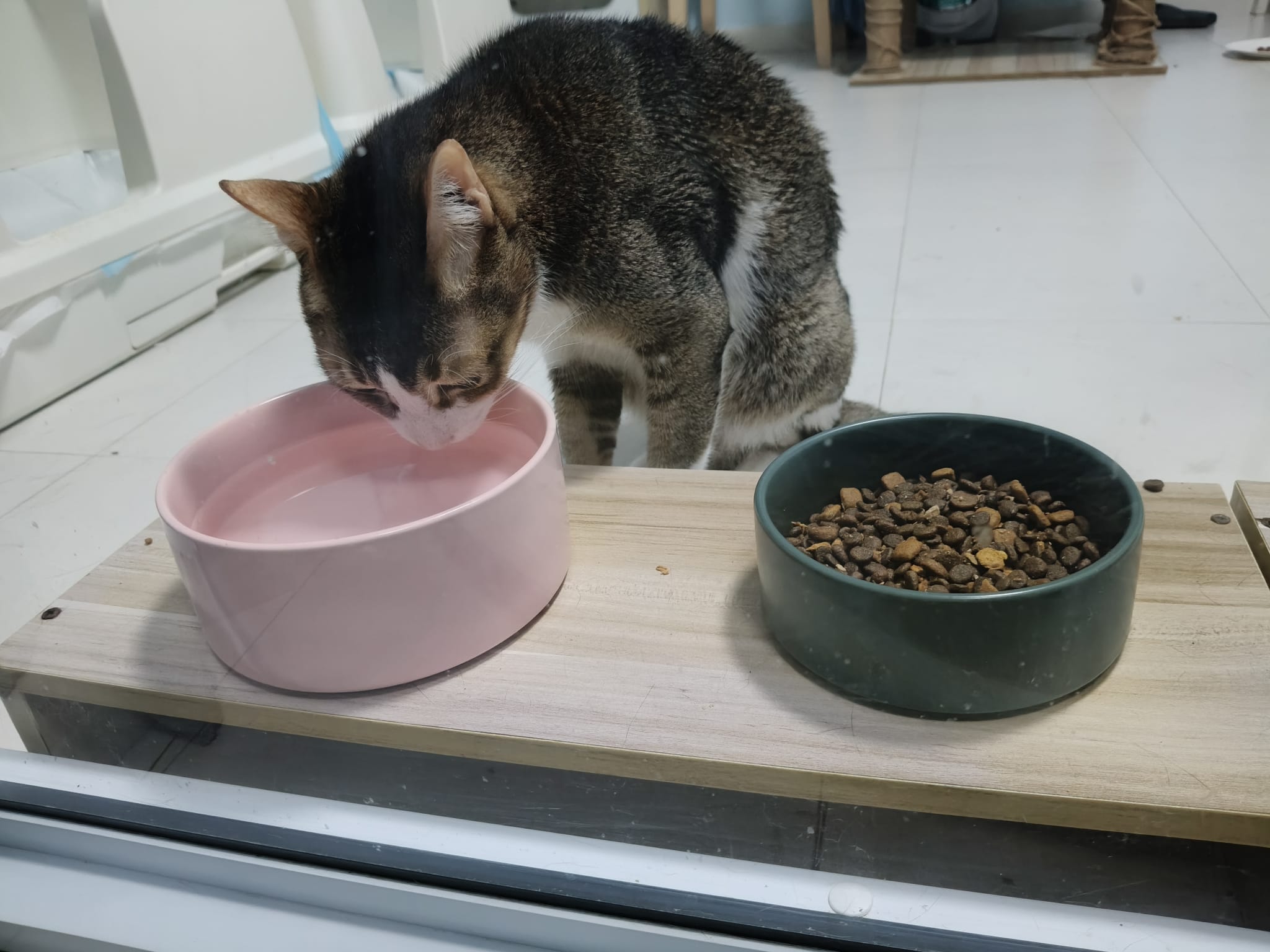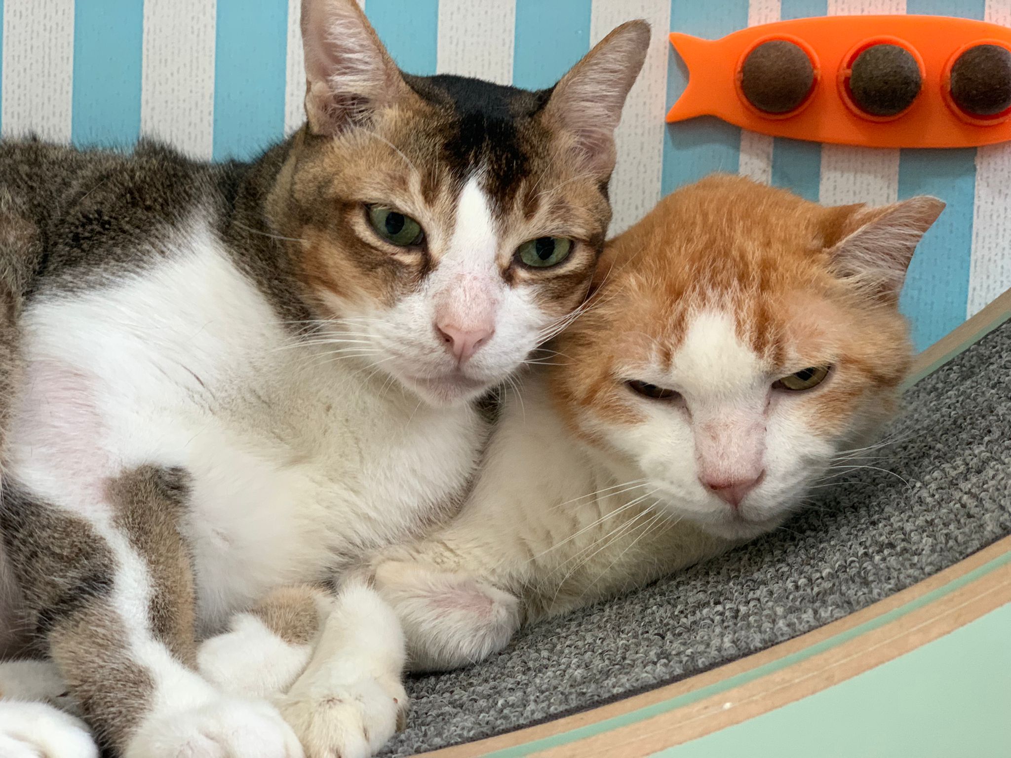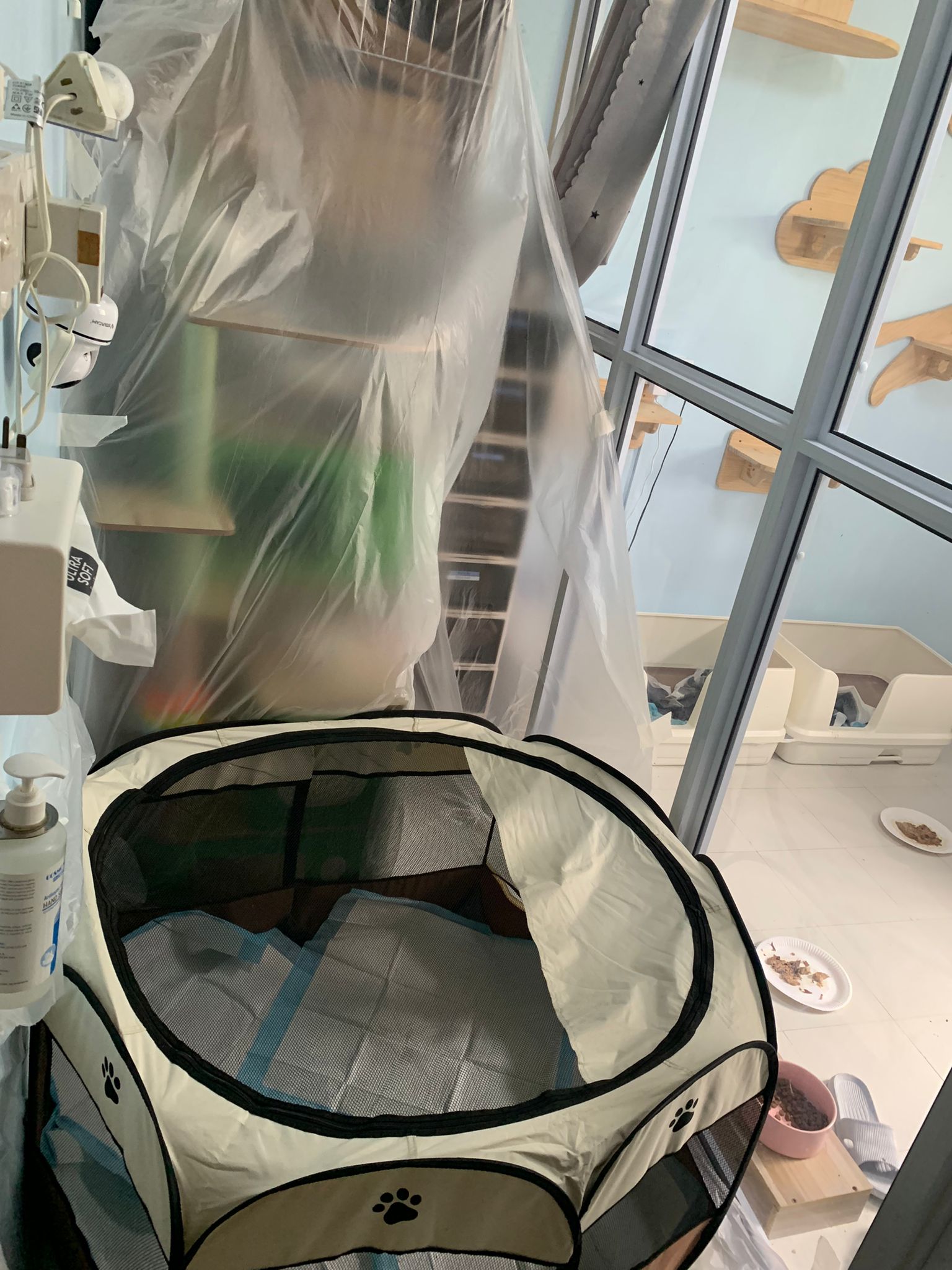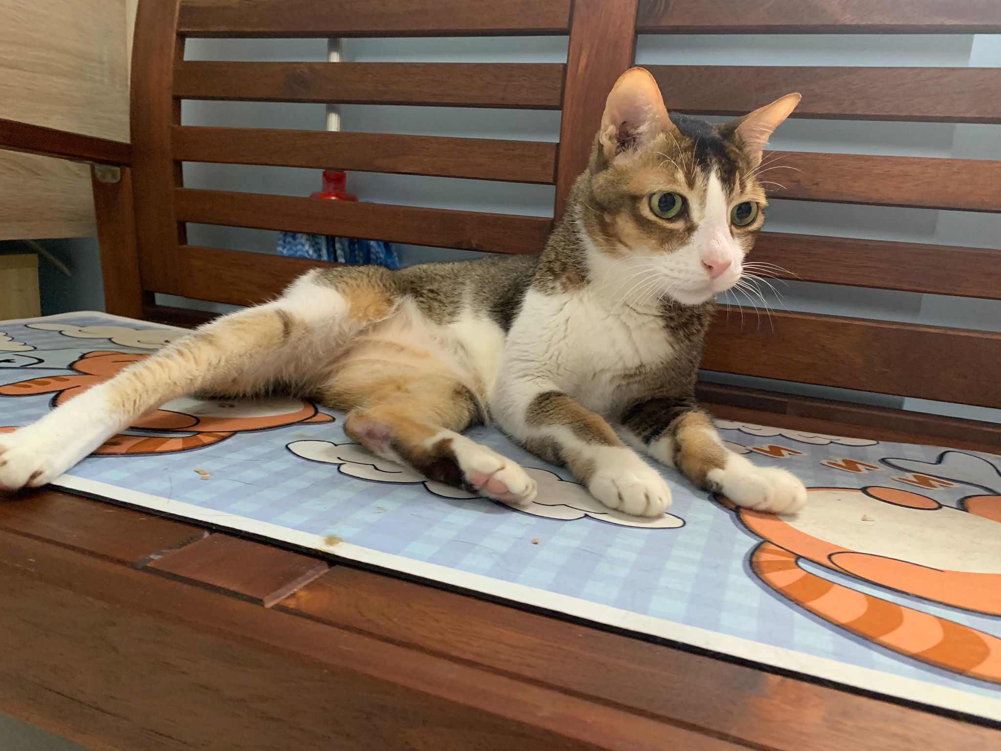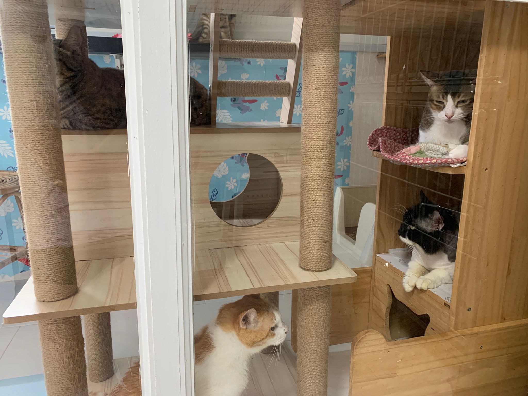 1pm+: I Waited so long their bench delivery not here yet. Today throw half their cat tree away. Rearrange a little. Tmr then give them the bench 🙂