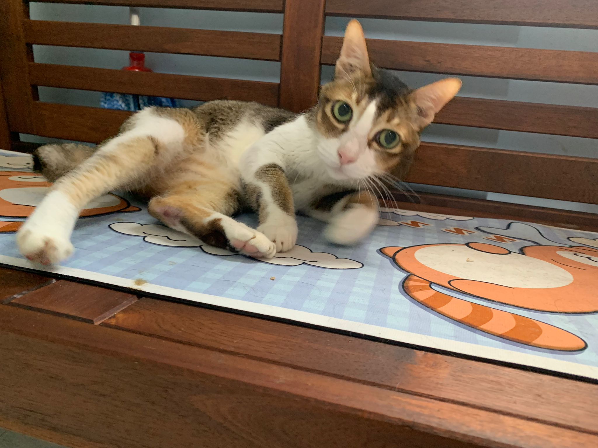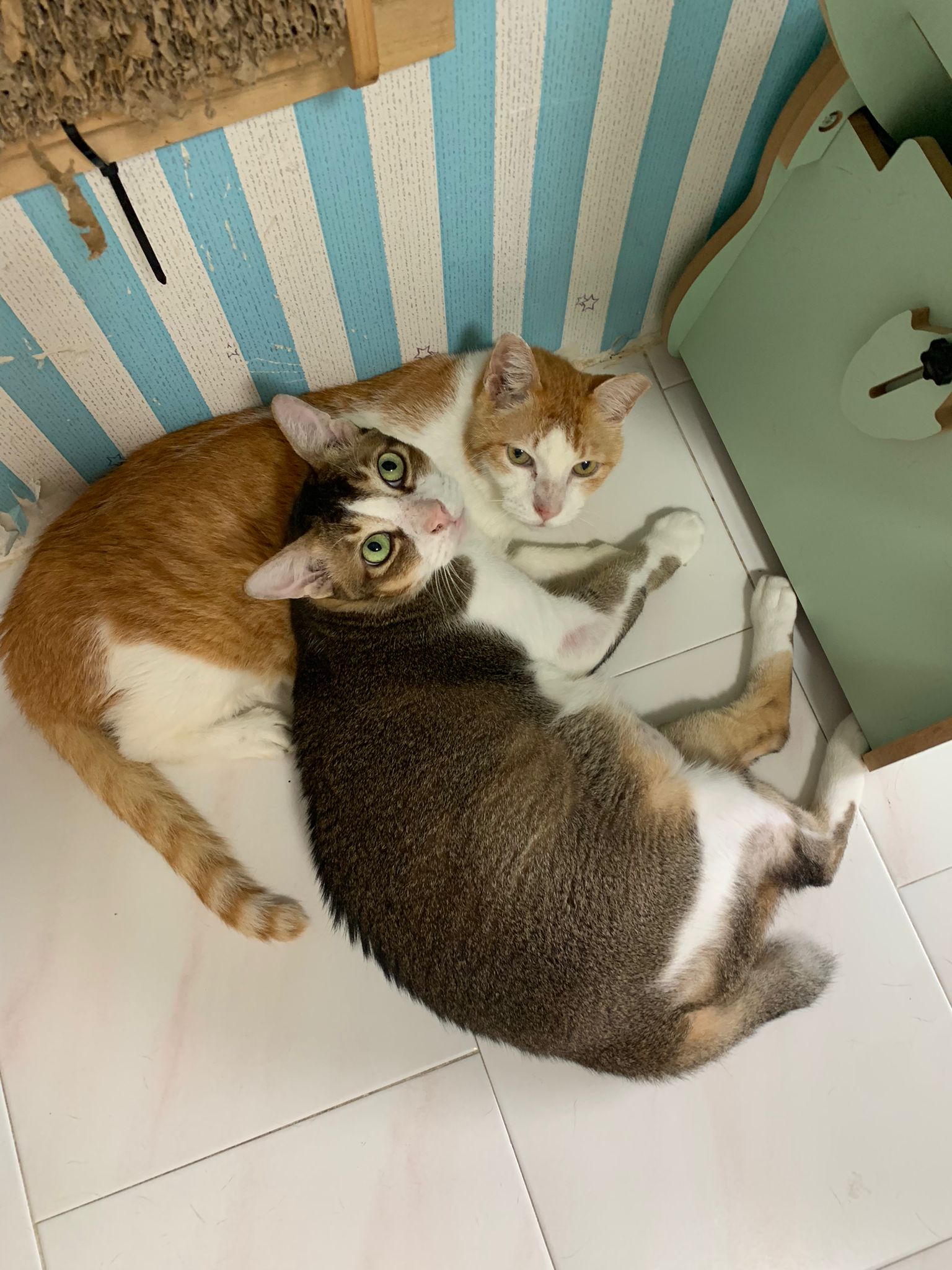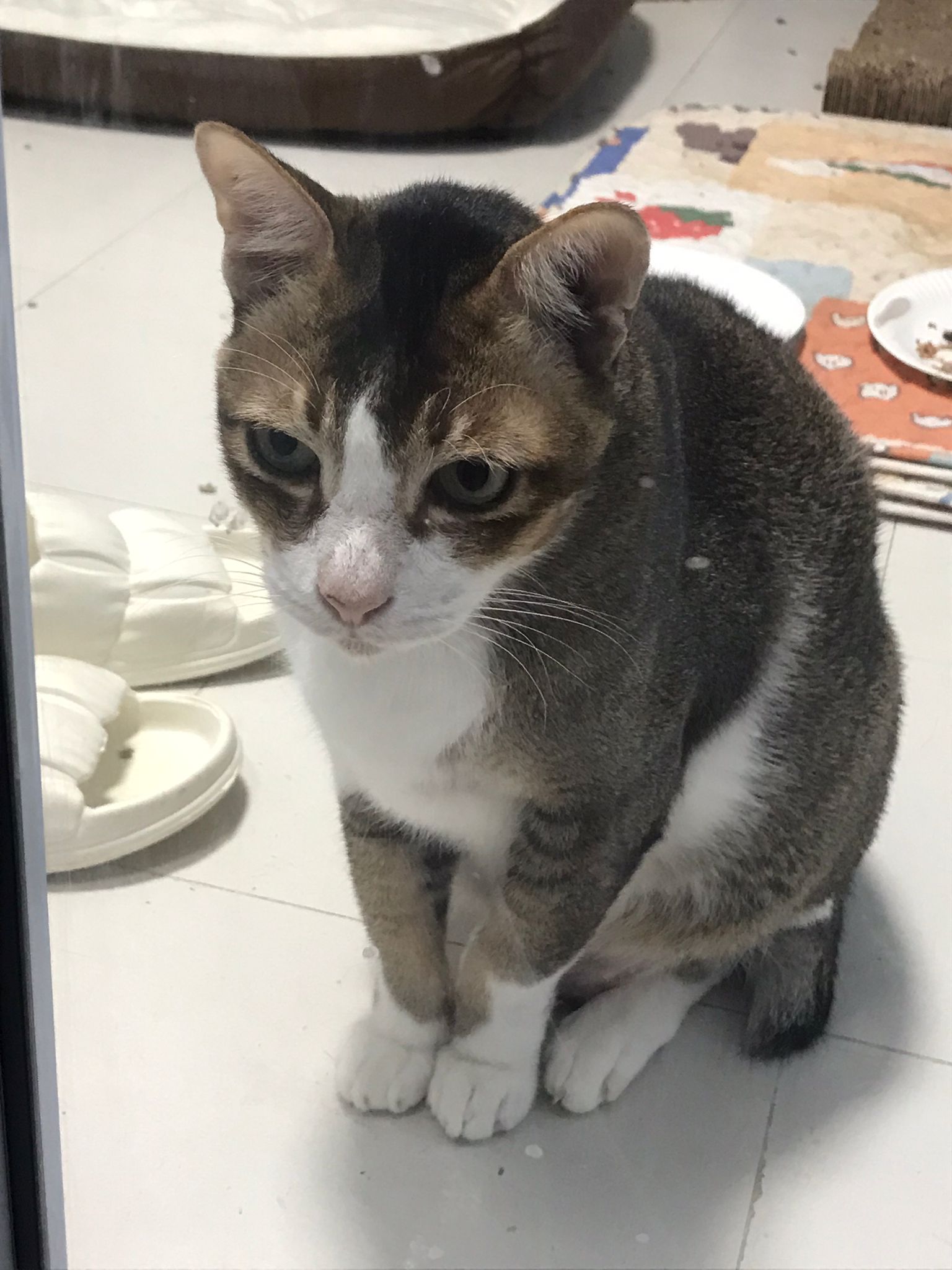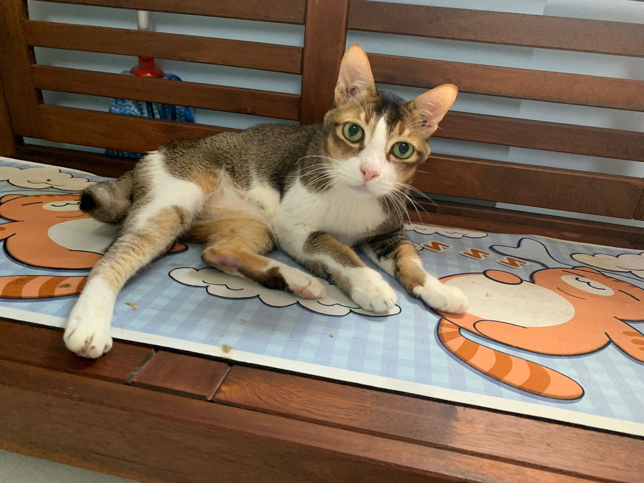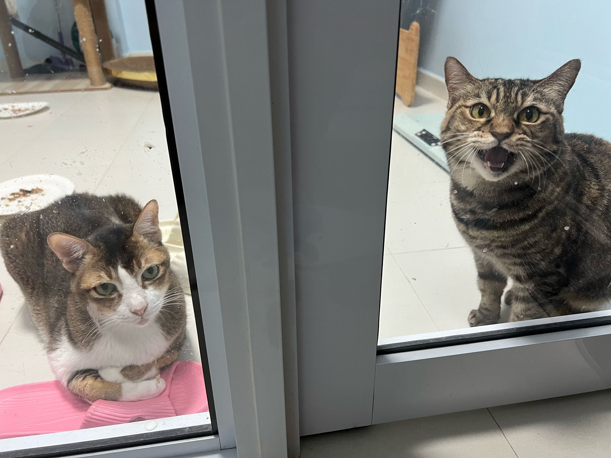 1pm+: I Waited so long their bench delivery not here yet. Today throw half their cat tree away. Rearrange a little. Tmr then give them the bench 🙂