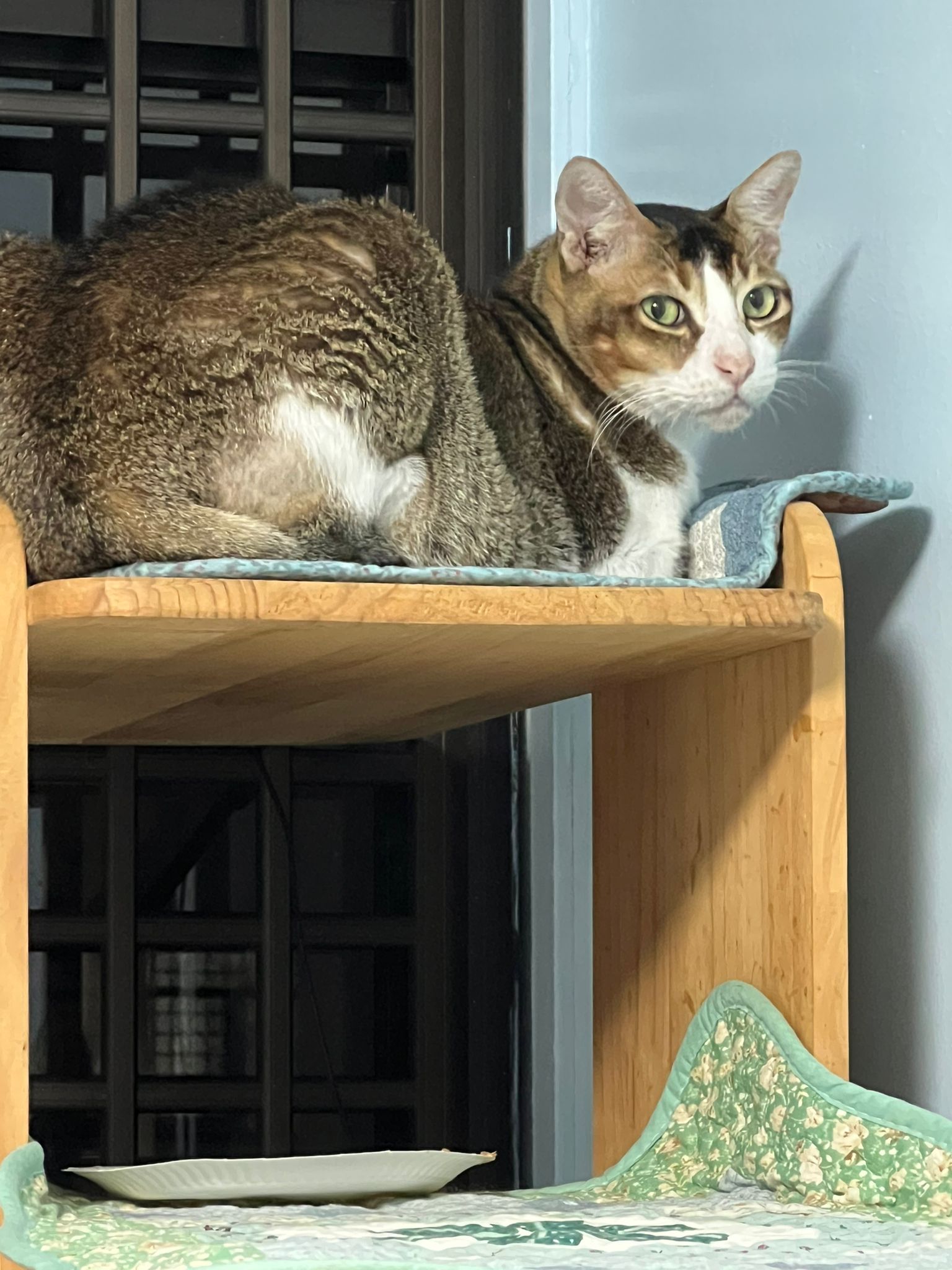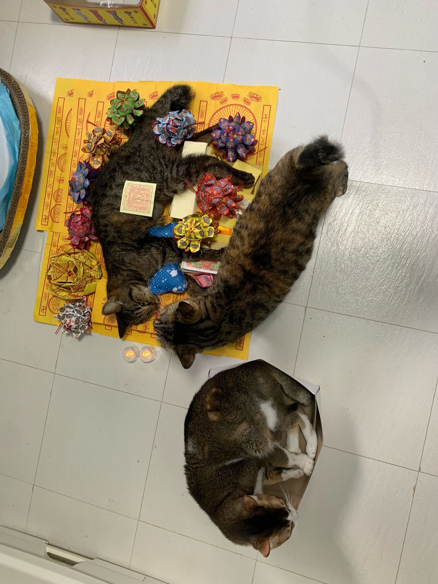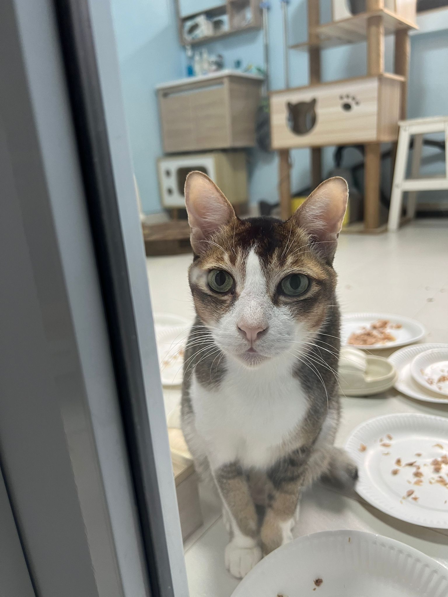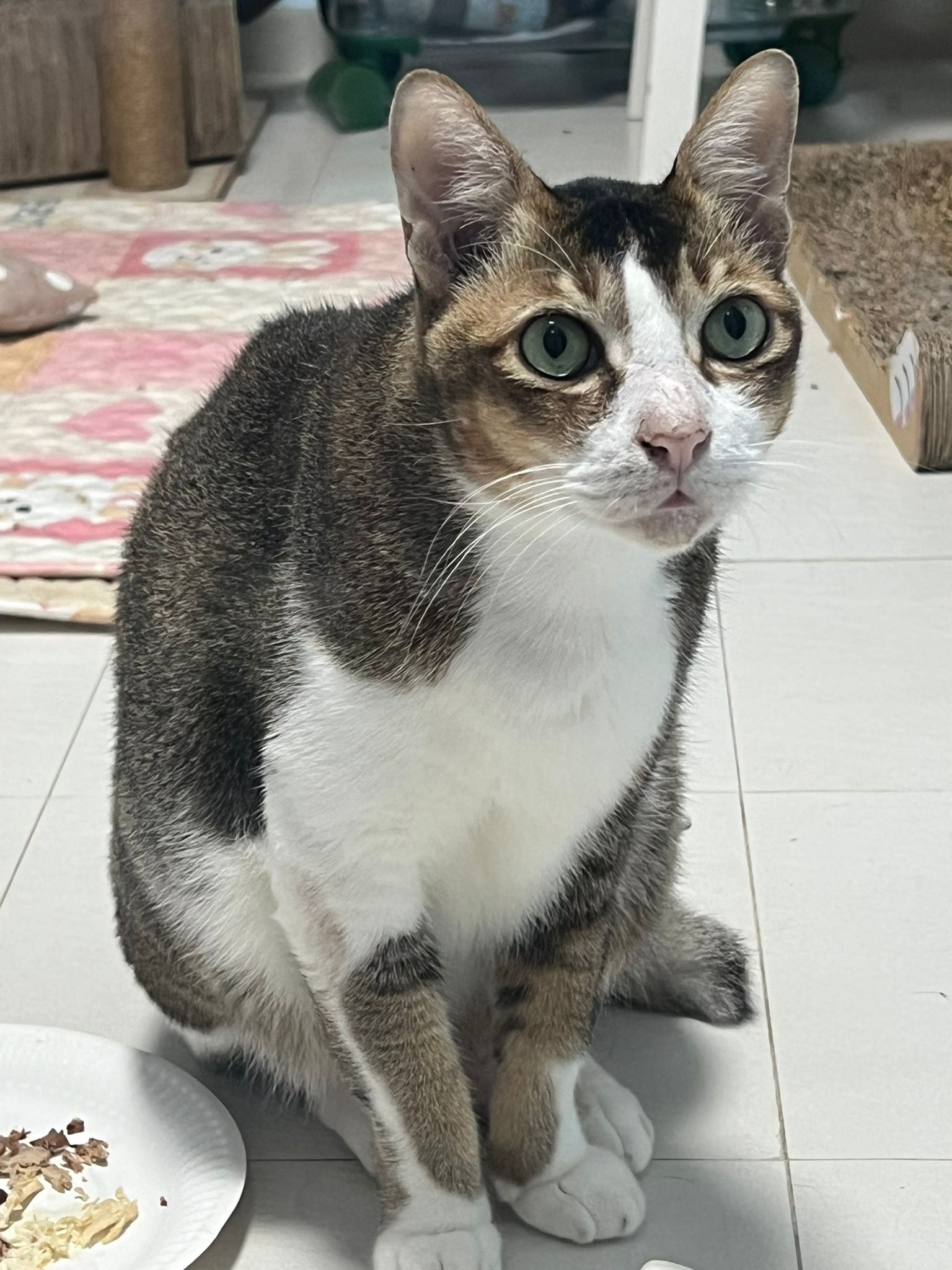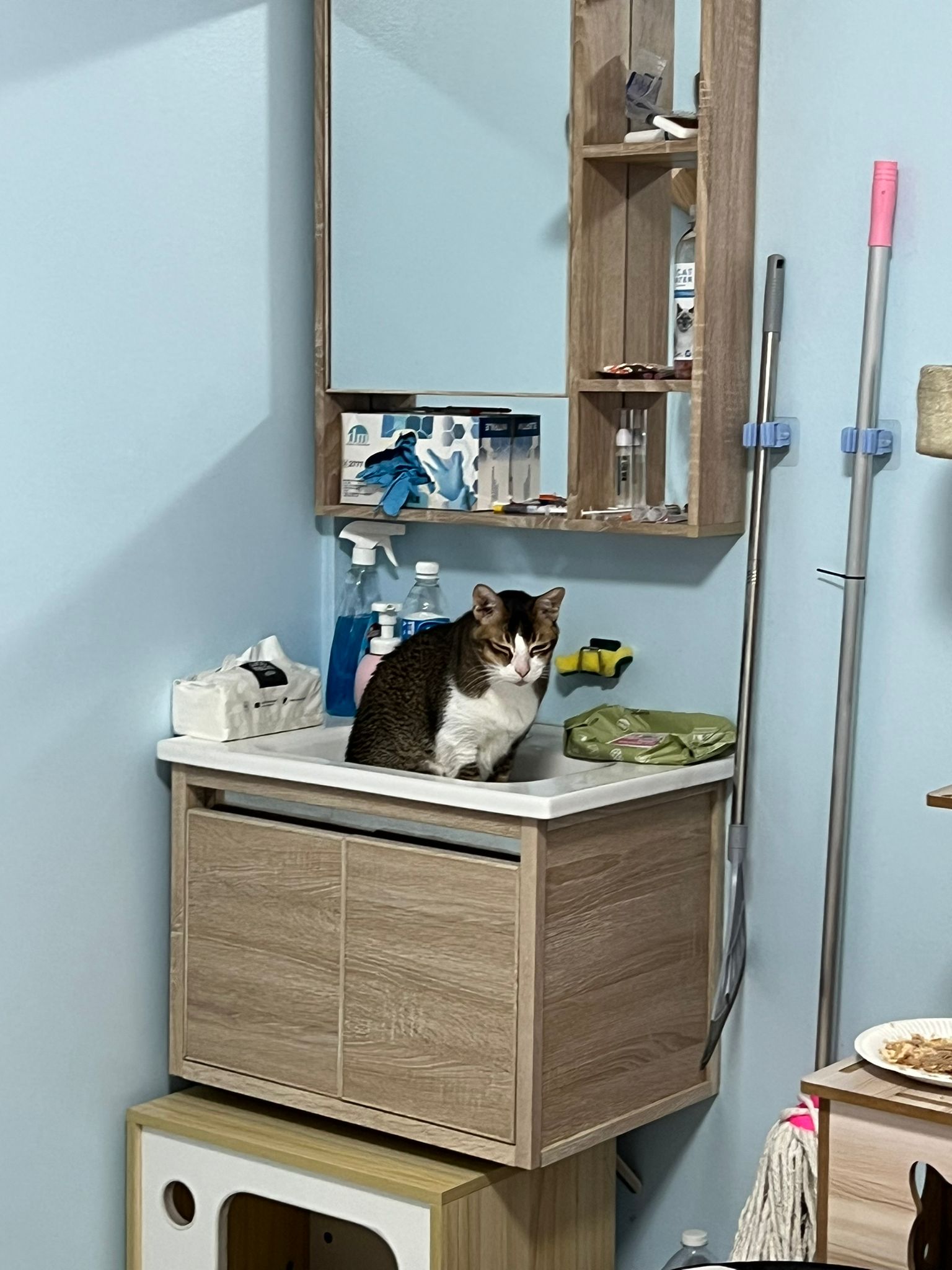 1pm+: I Waited so long their bench delivery not here yet. Today throw half their cat tree away. Rearrange a little. Tmr then give them the bench 🙂