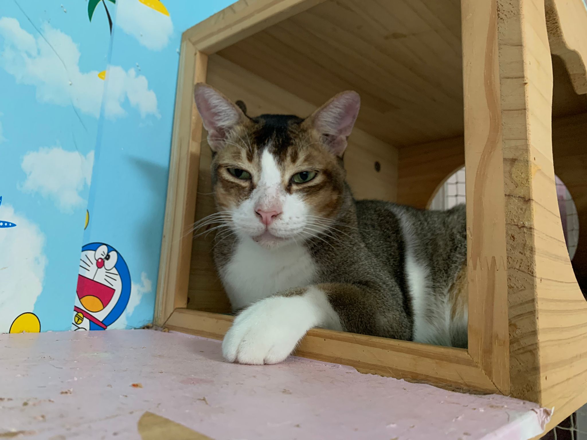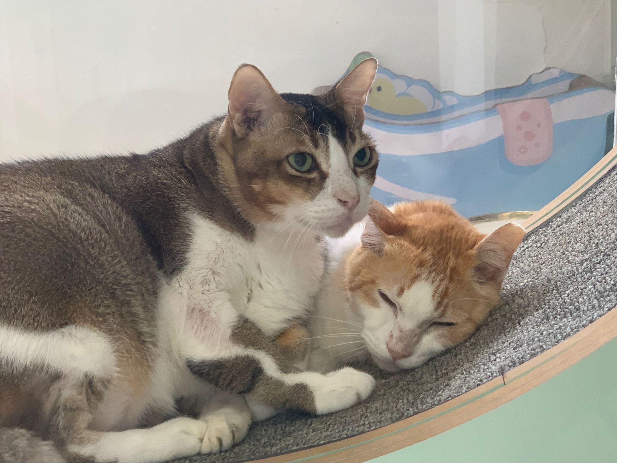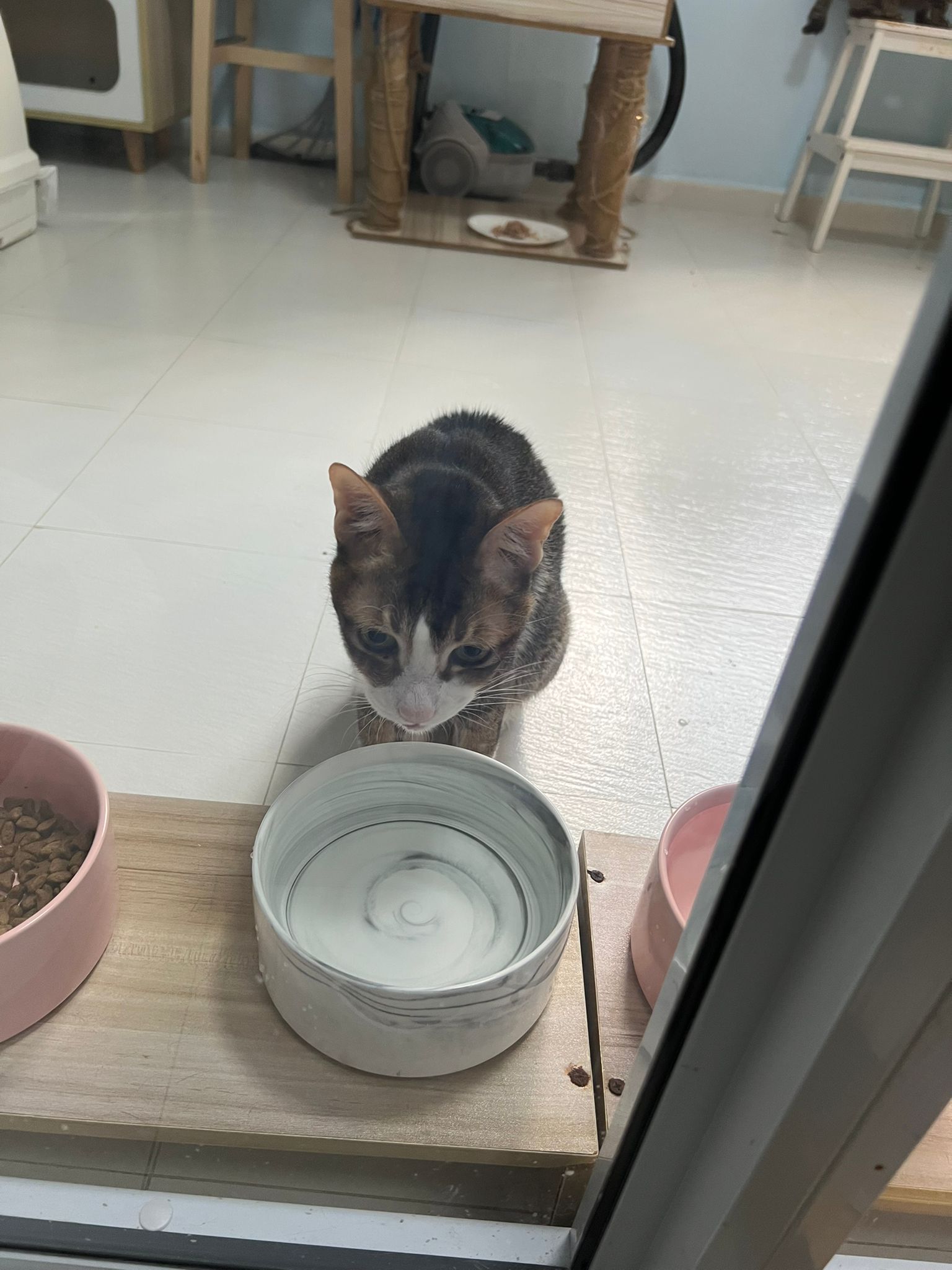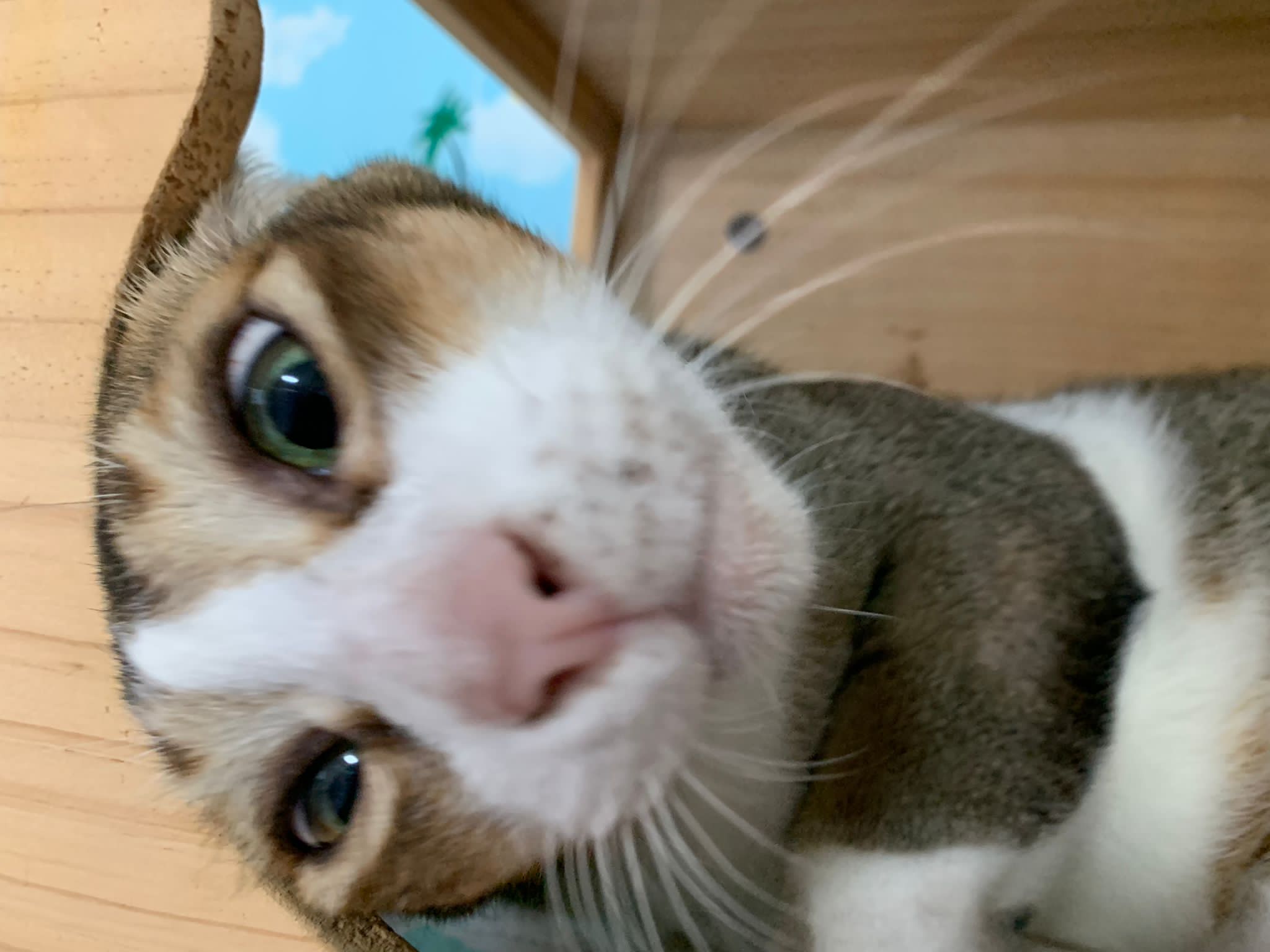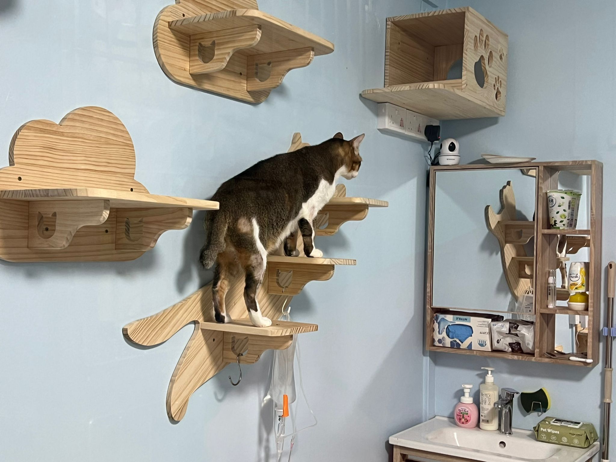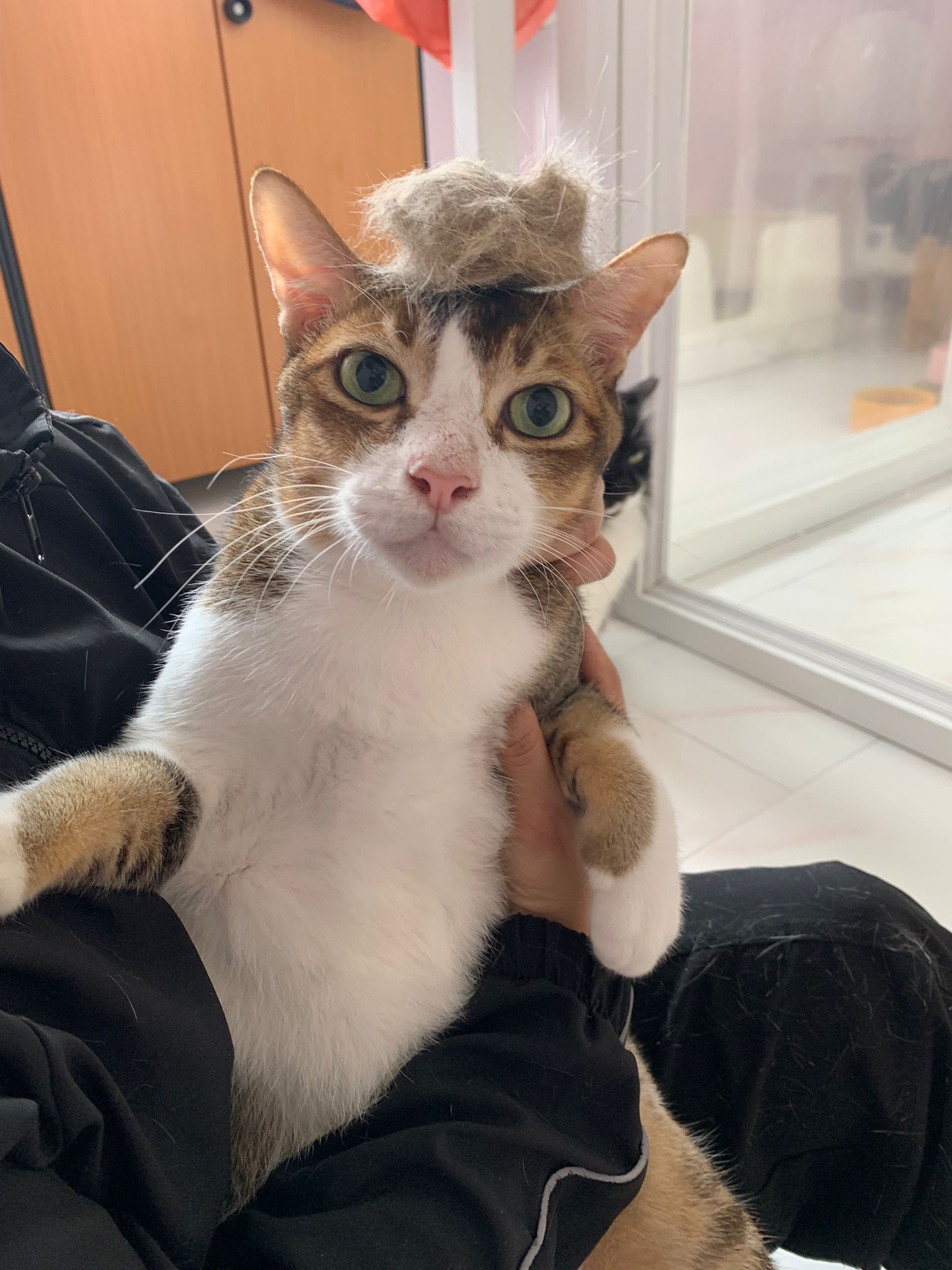 1pm+: I Waited so long their bench delivery not here yet. Today throw half their cat tree away. Rearrange a little. Tmr then give them the bench 🙂