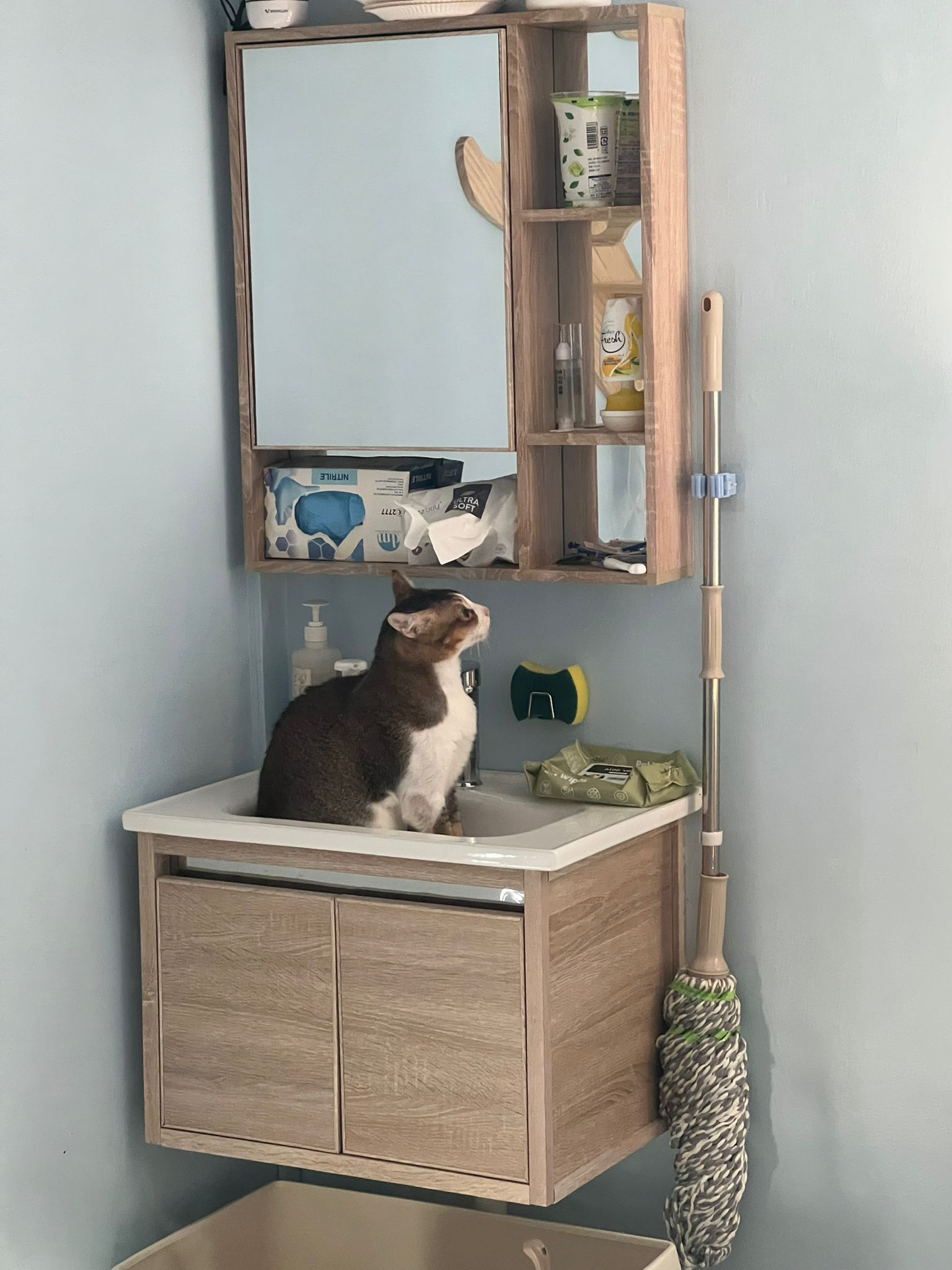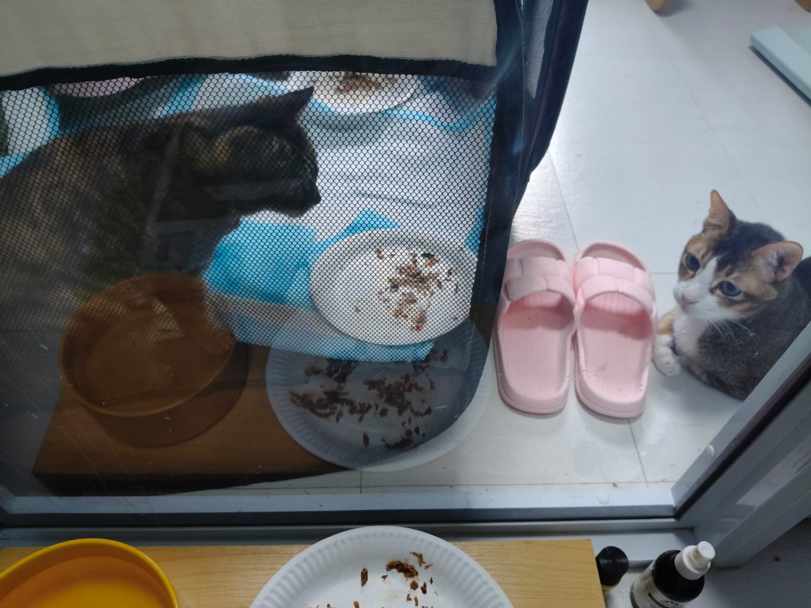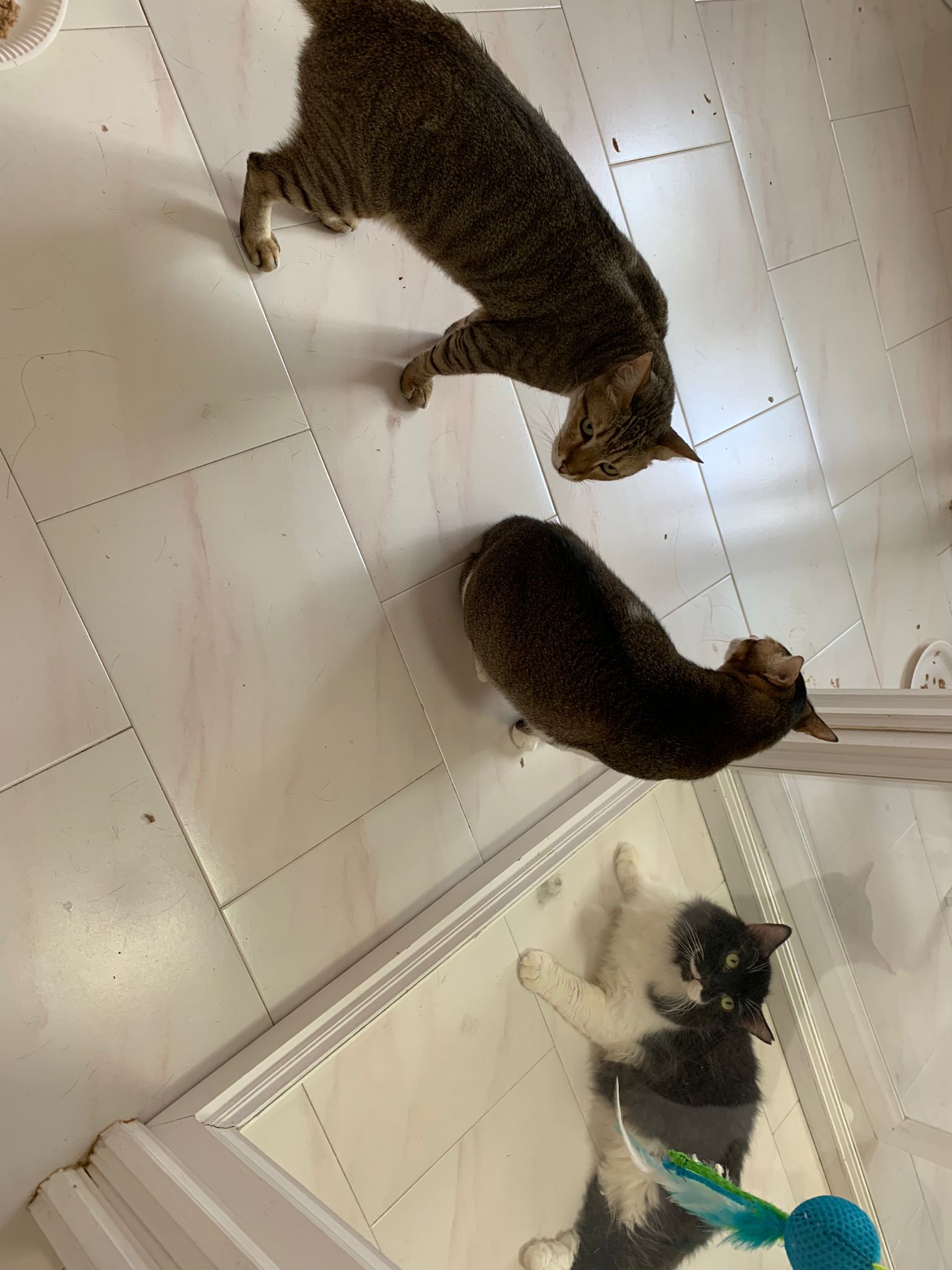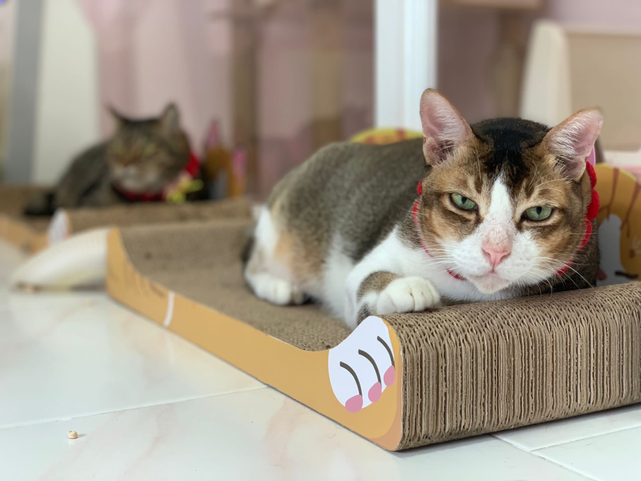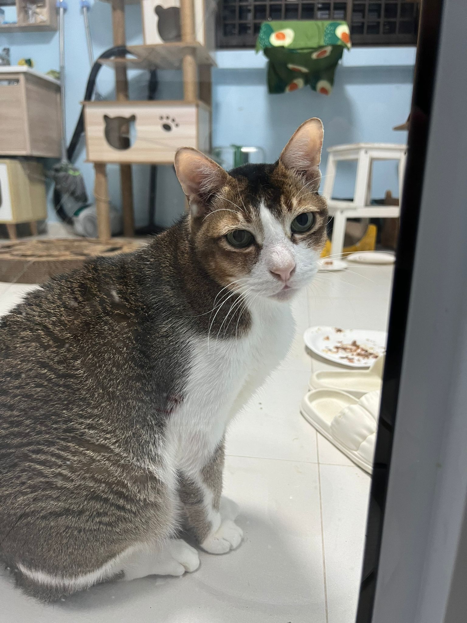 1pm+: I Waited so long their bench delivery not here yet. Today throw half their cat tree away. Rearrange a little. Tmr then give them the bench 🙂