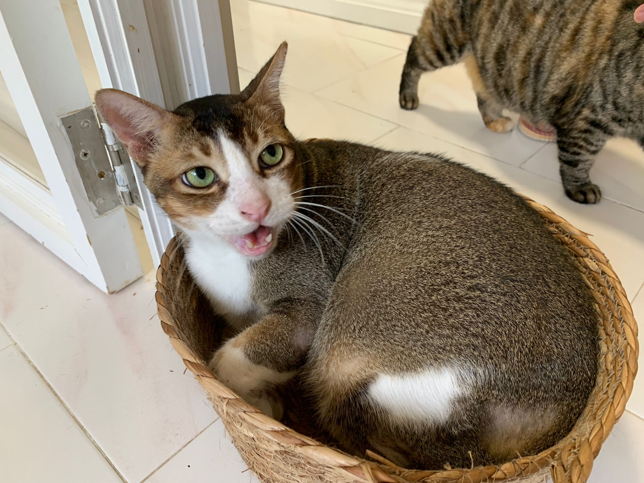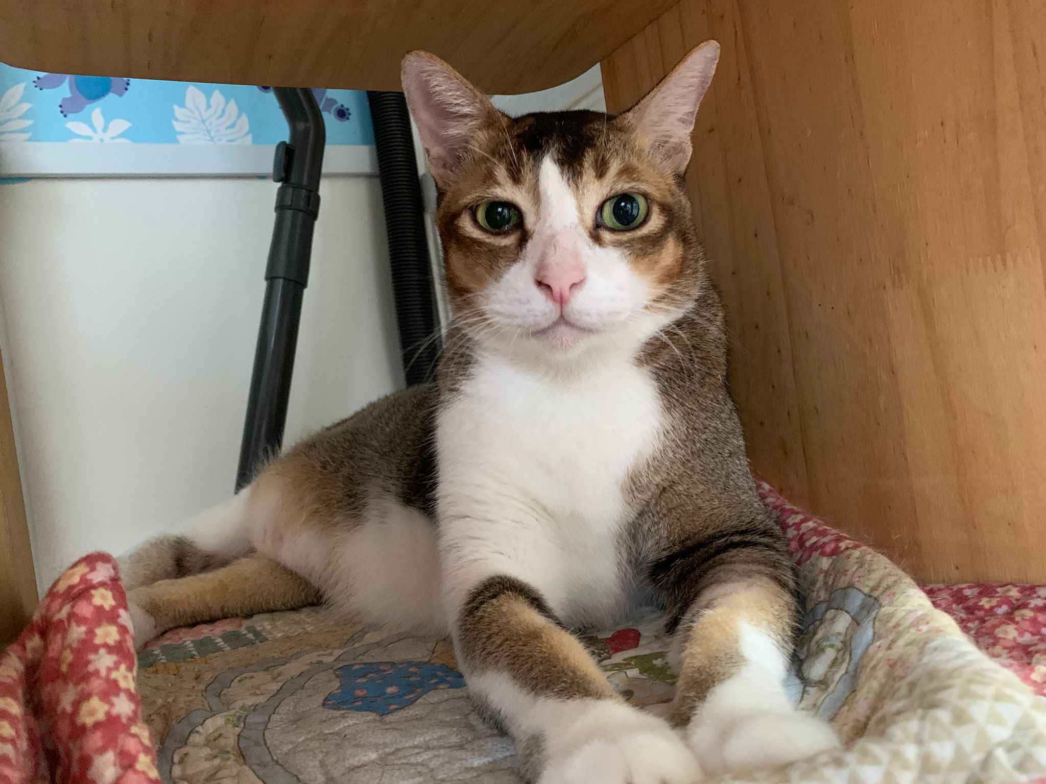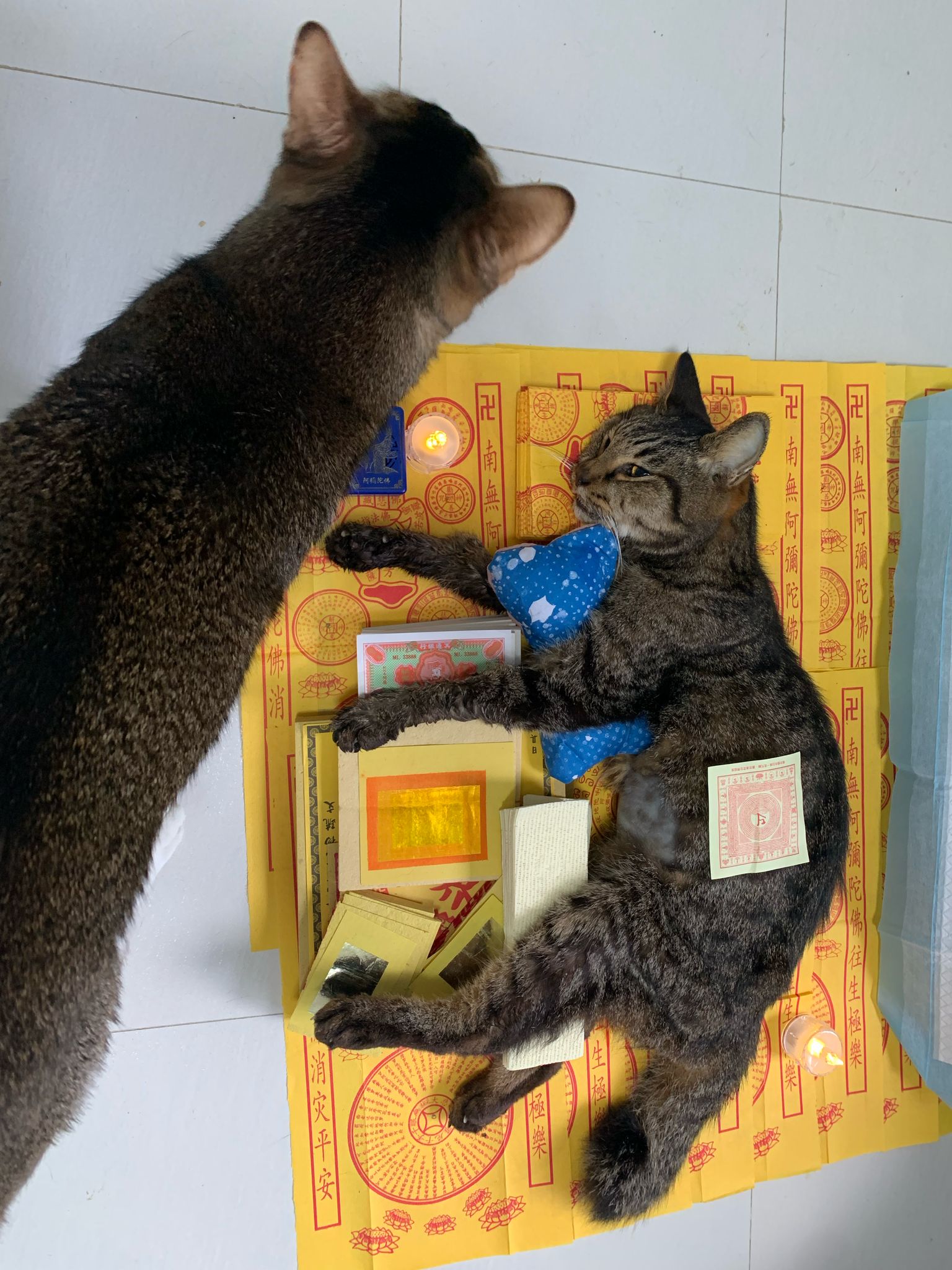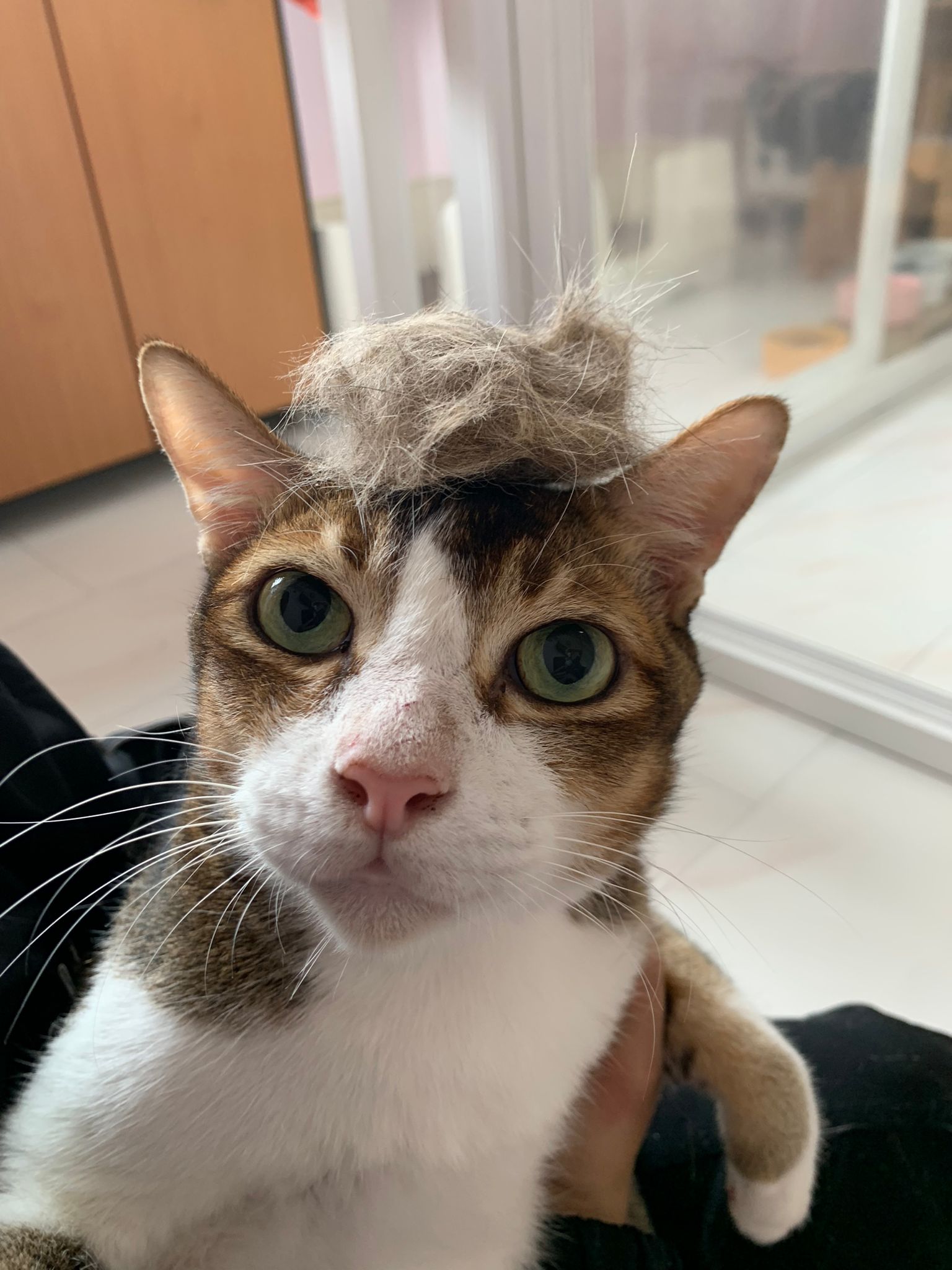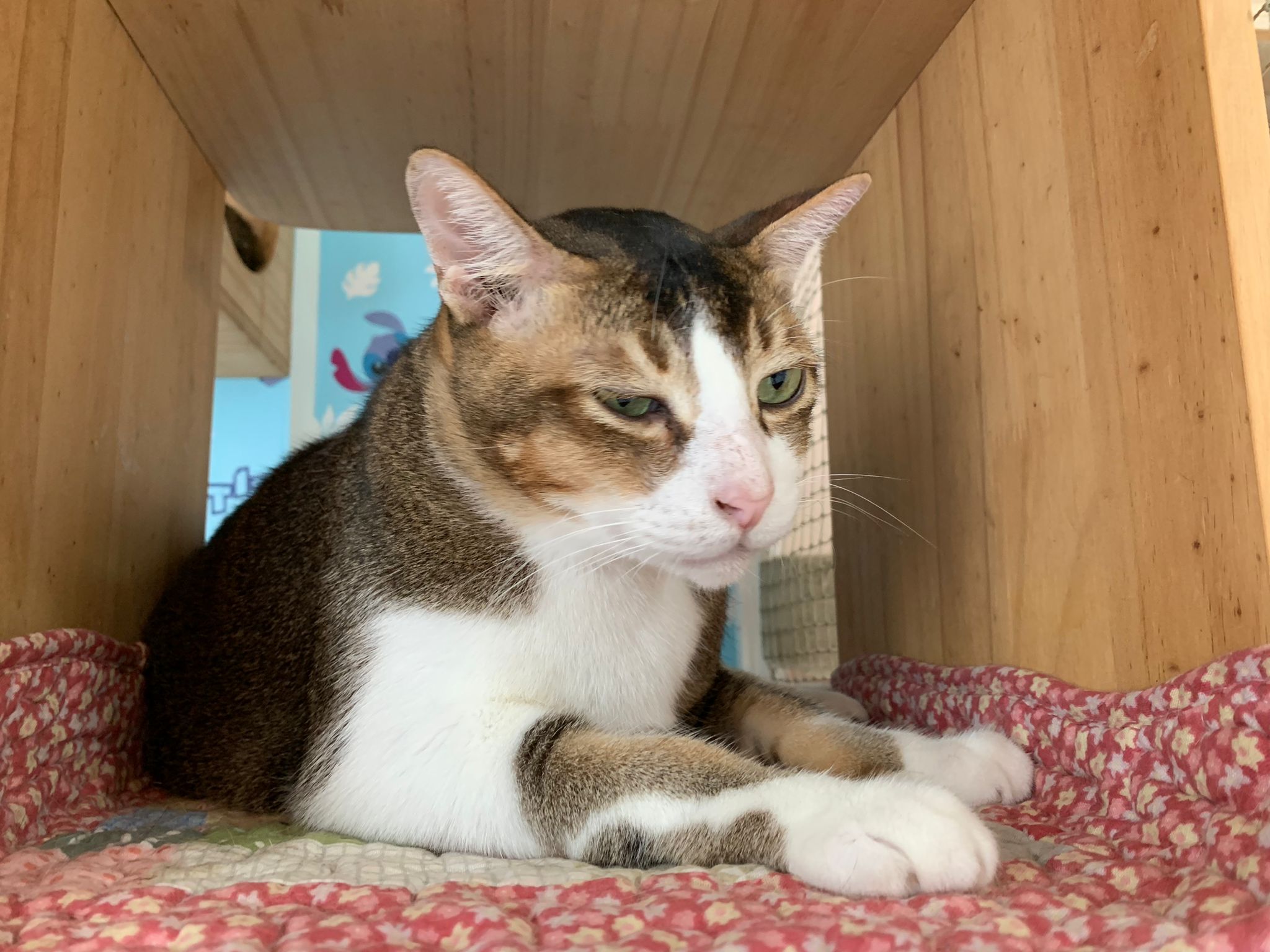 1pm+: I Waited so long their bench delivery not here yet. Today throw half their cat tree away. Rearrange a little. Tmr then give them the bench 🙂