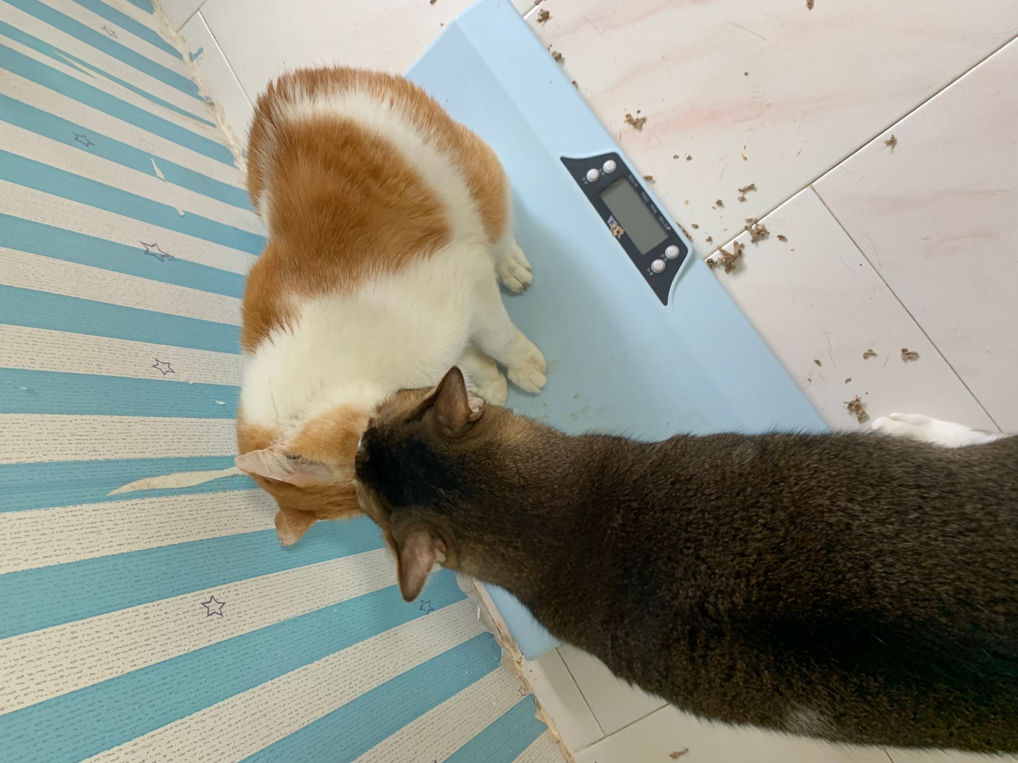 Morning; both of them same weight 4.62kg, daring lose 90g in 36 days. Kerry weight no change in 36 days.