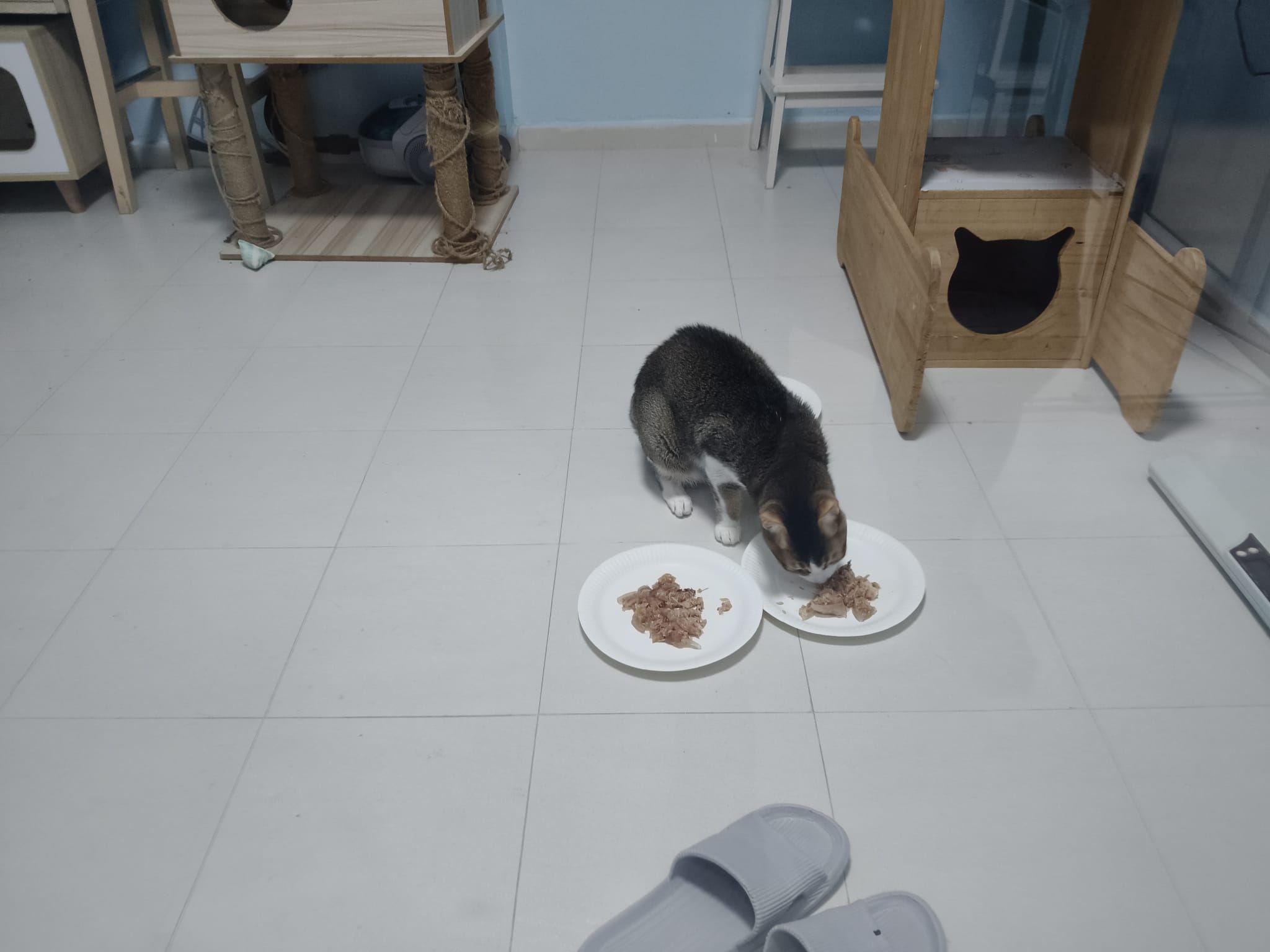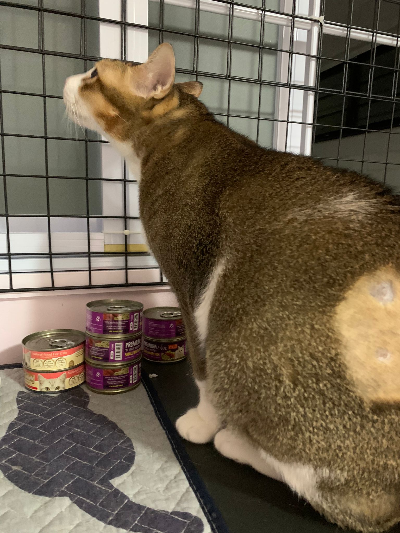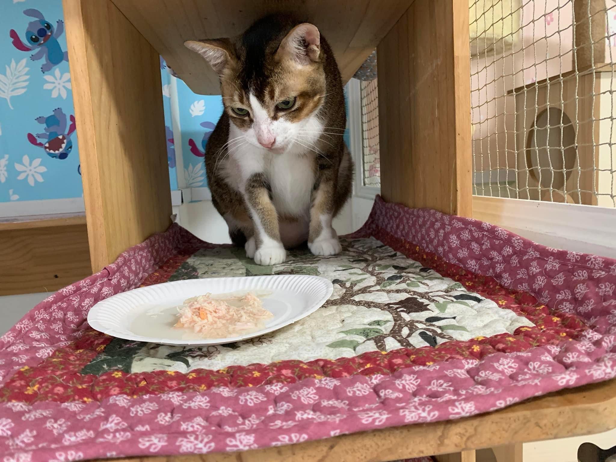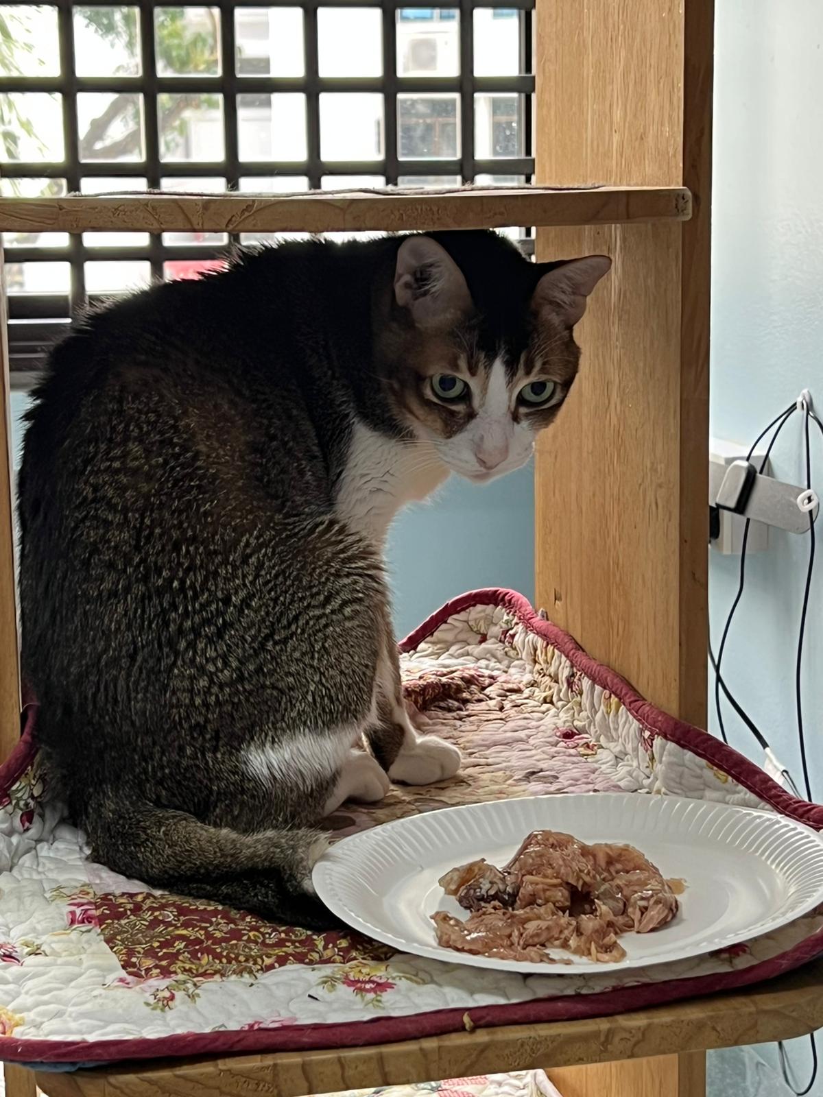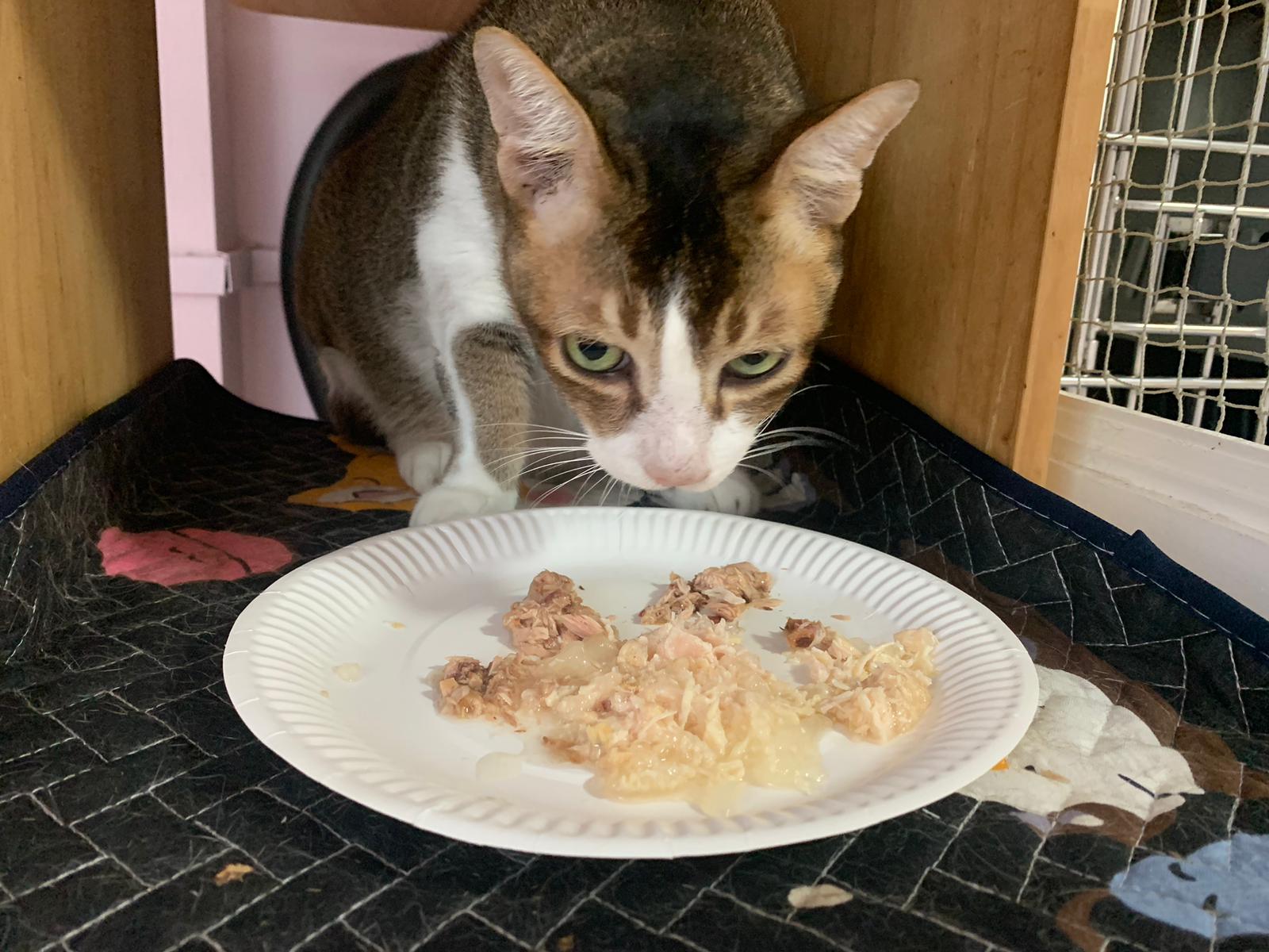 Morning; I sit on the floor outside his room packing the storage box and he meow wait for me. 1pm+: given him Clav jab and 0.15ml bupre. serve ff he finish n went on to Kerry plate. Comb both fur they r happy kid
