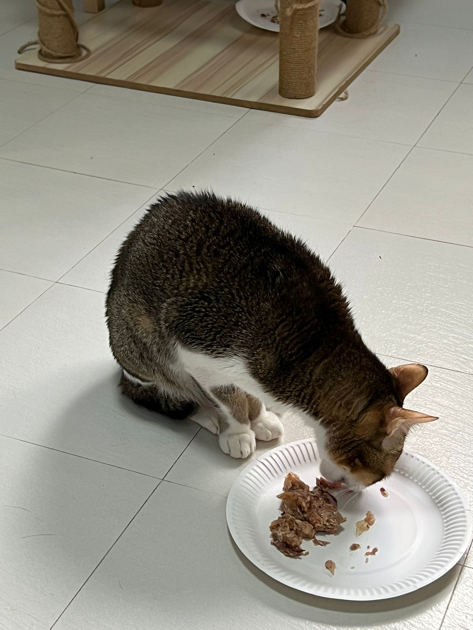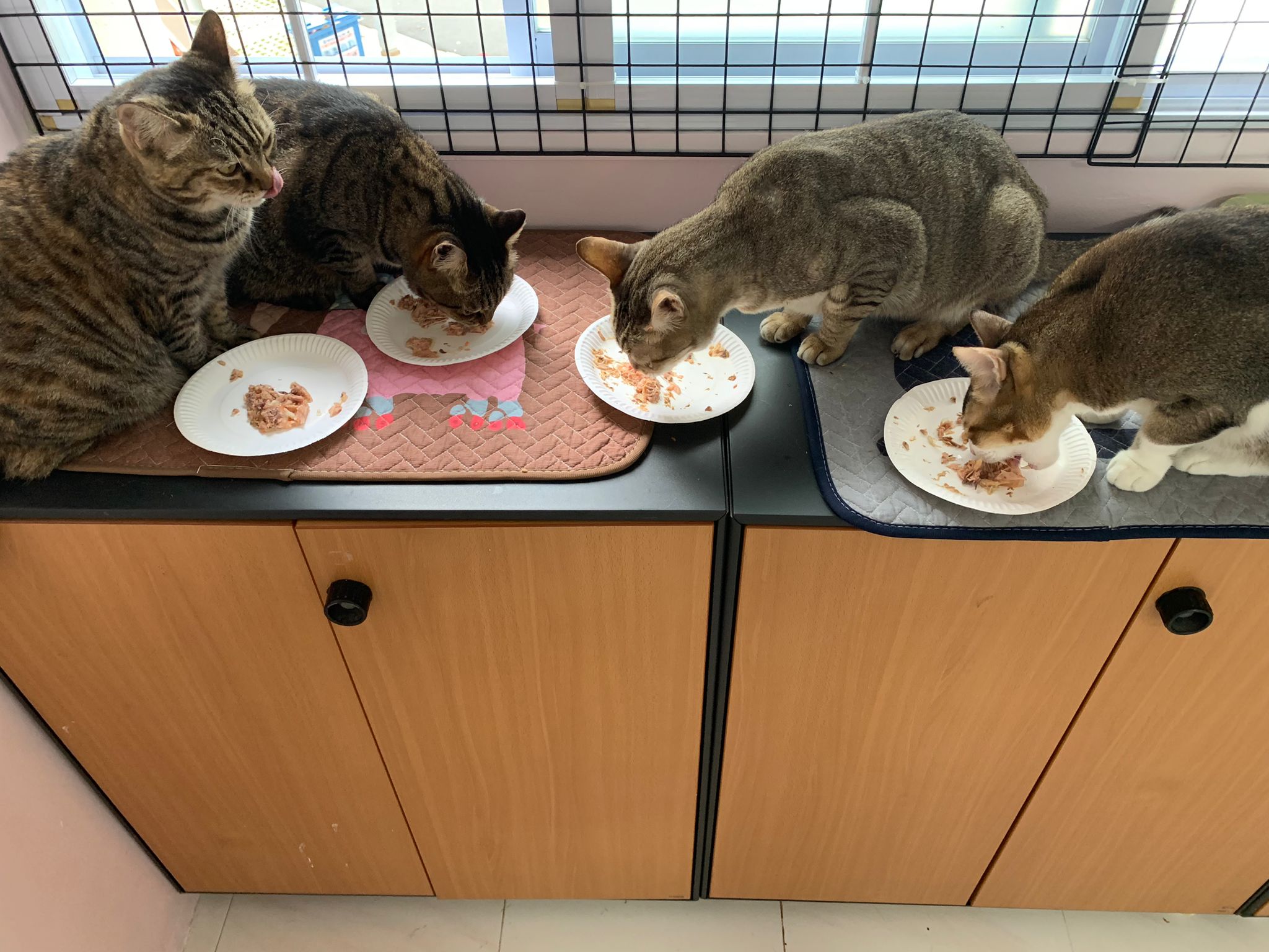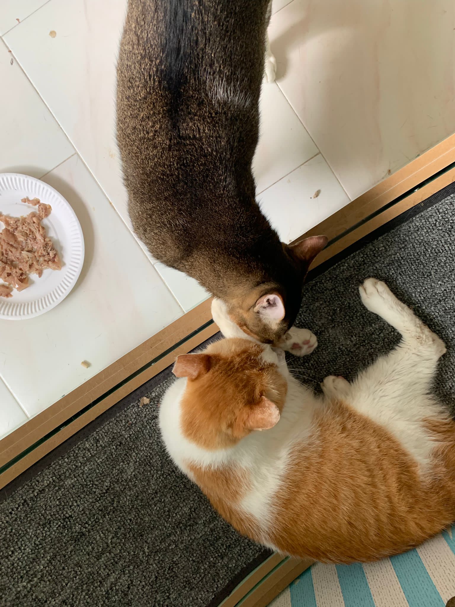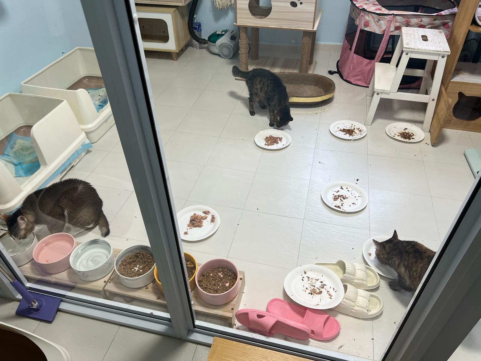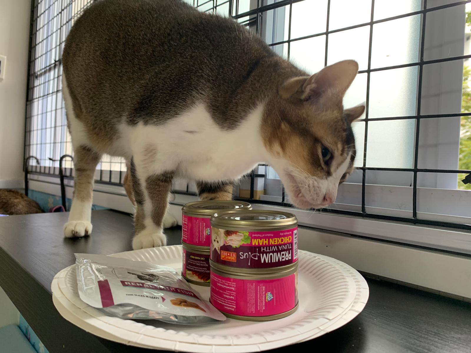 Morning; I sit on the floor outside his room packing the storage box and he meow wait for me. 1pm+: given him Clav jab and 0.15ml bupre. serve ff he finish n went on to Kerry plate. Comb both fur they r happy kid