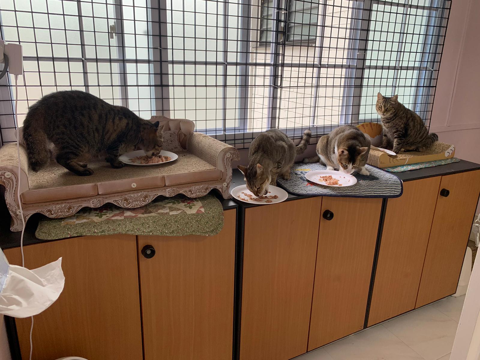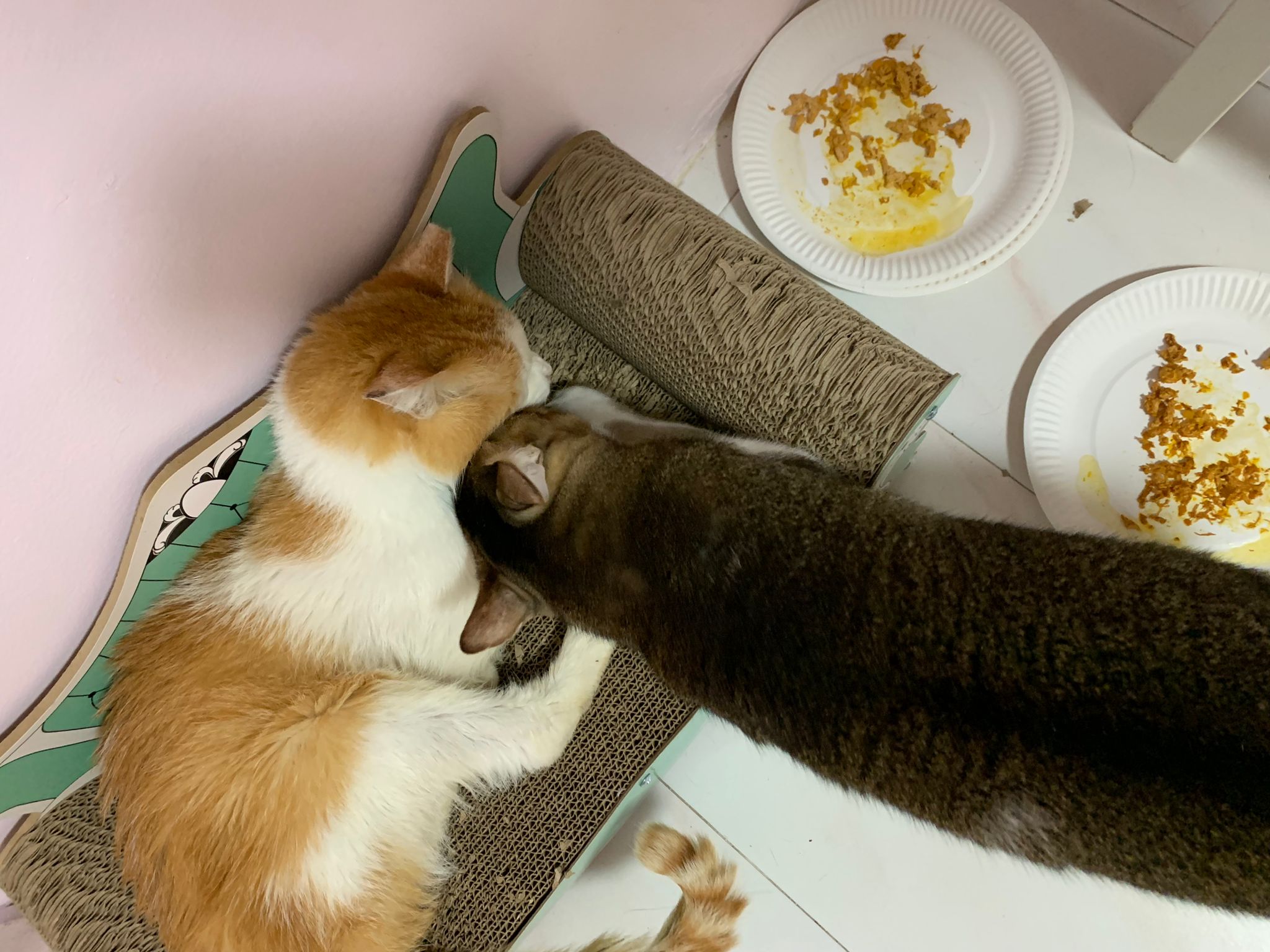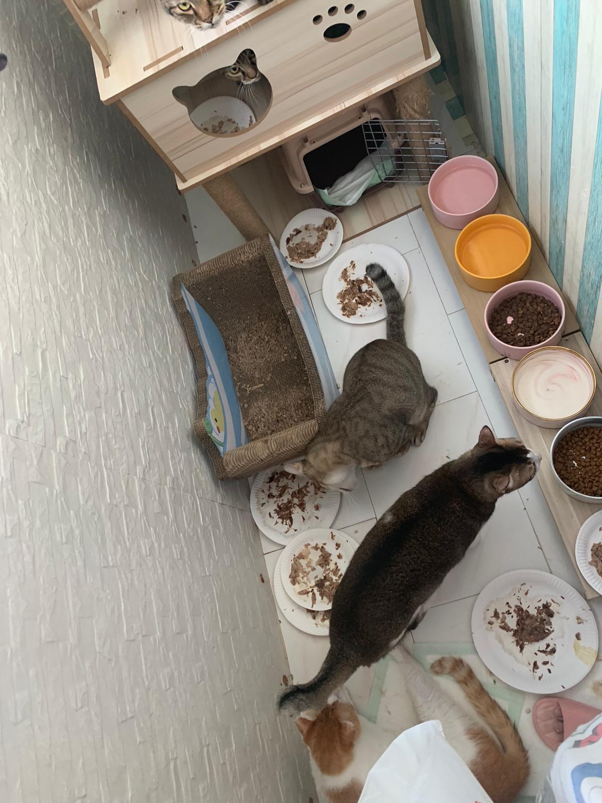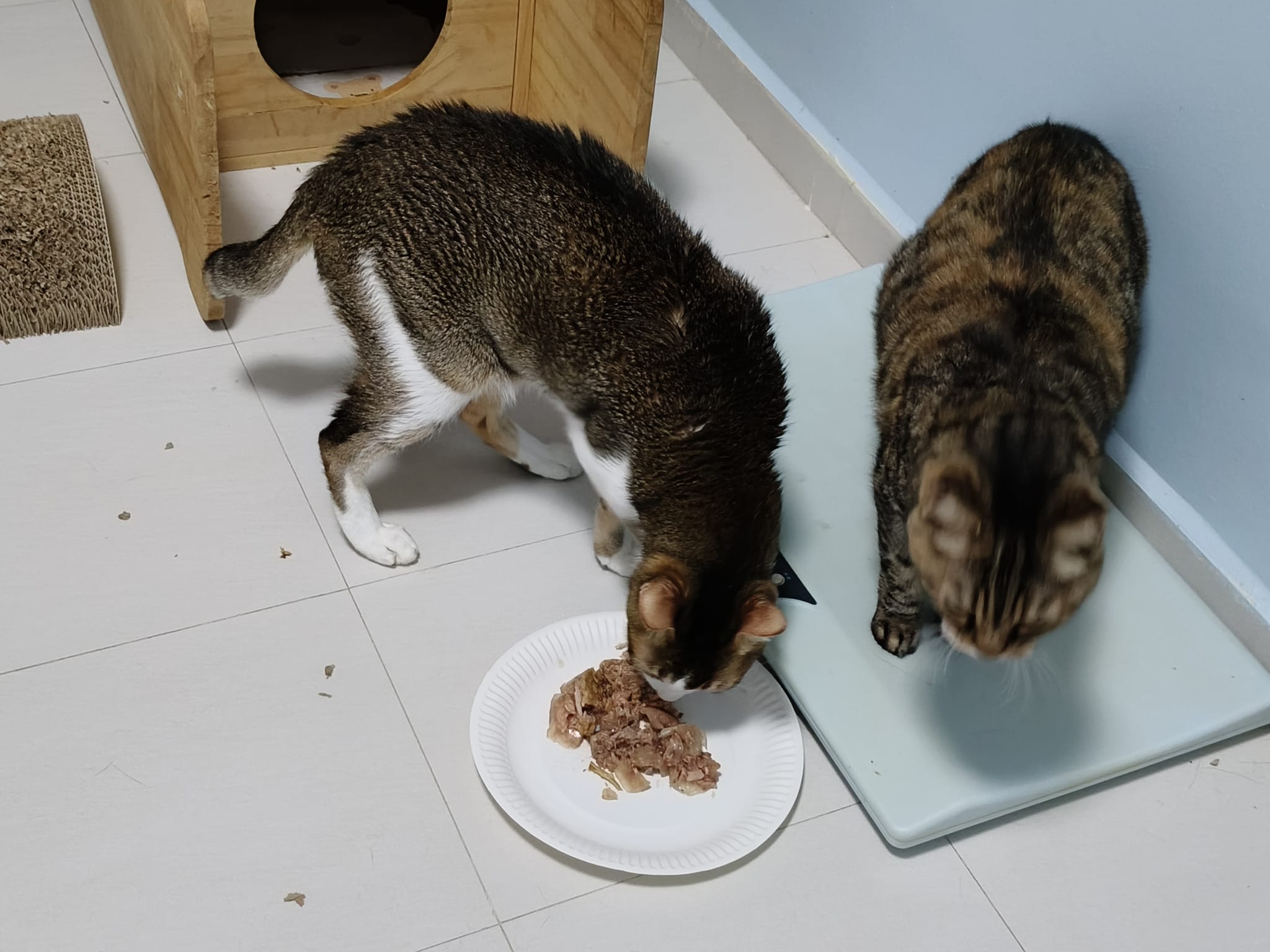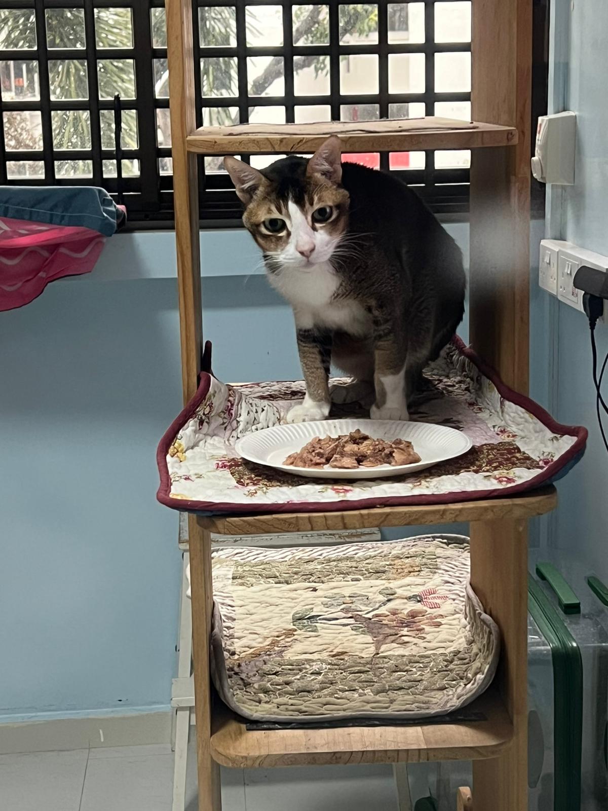 Morning; I sit on the floor outside his room packing the storage box and he meow wait for me. 1pm+: given him Clav jab and 0.15ml bupre. serve ff he finish n went on to Kerry plate. Comb both fur they r happy kid