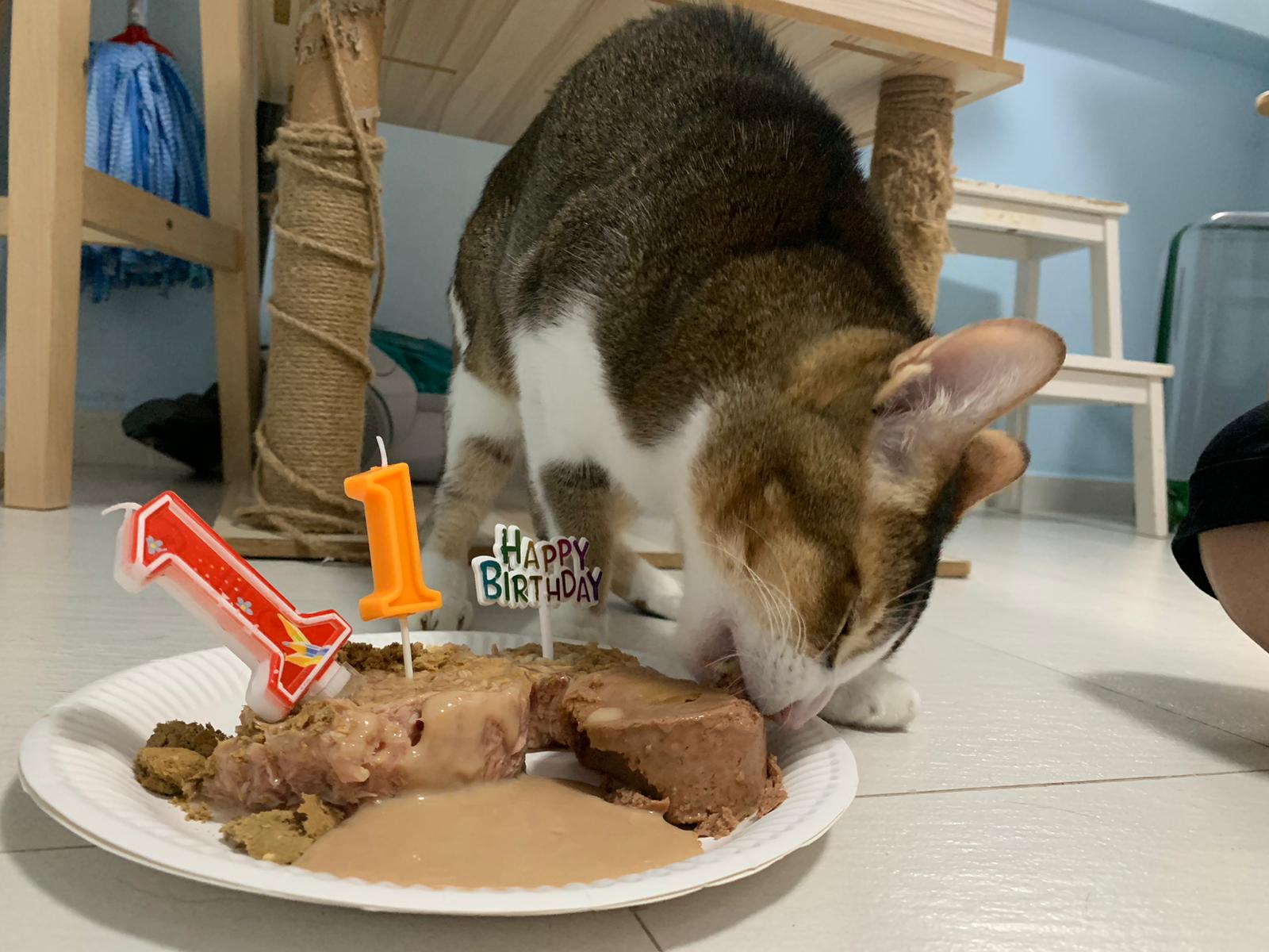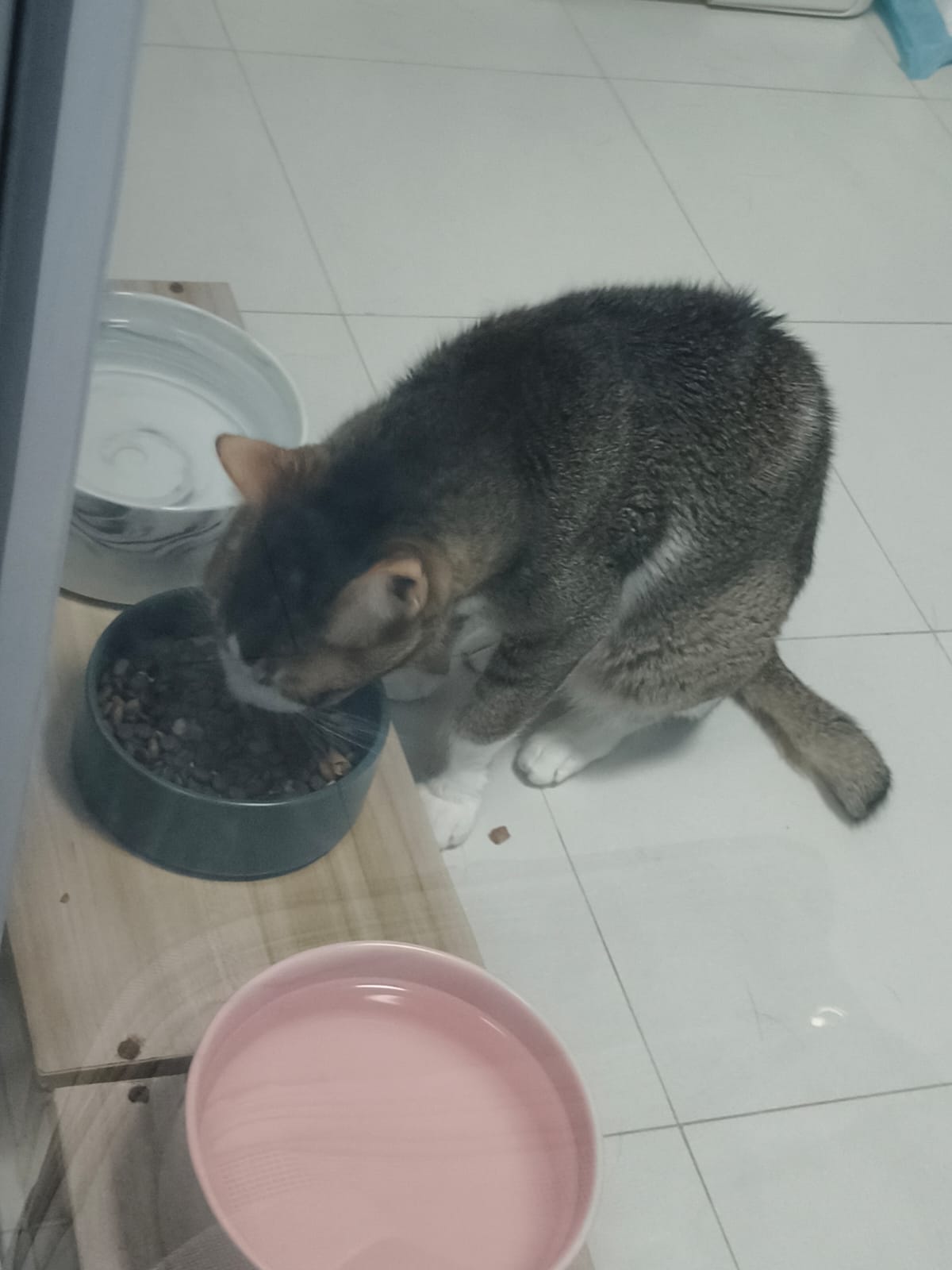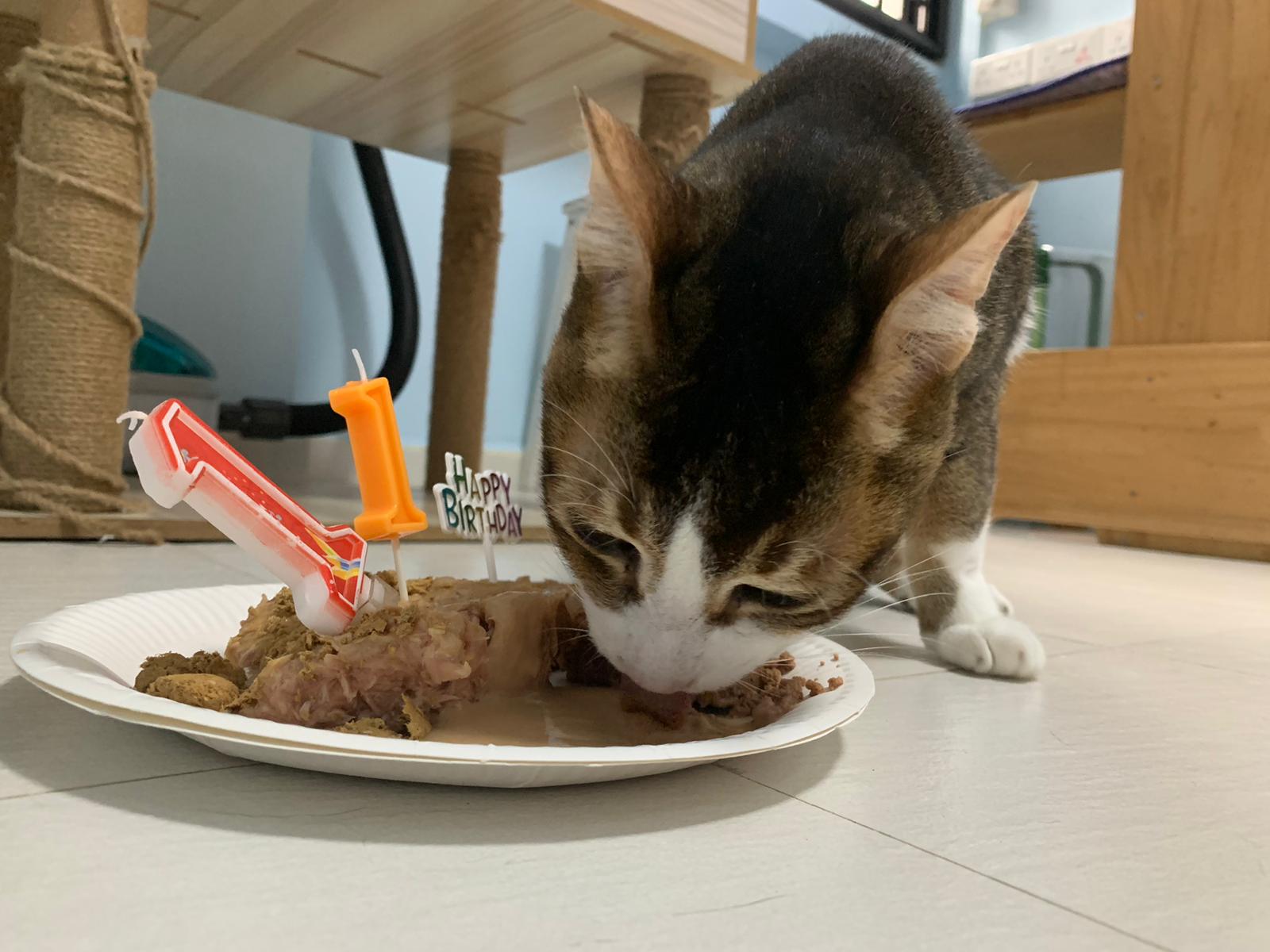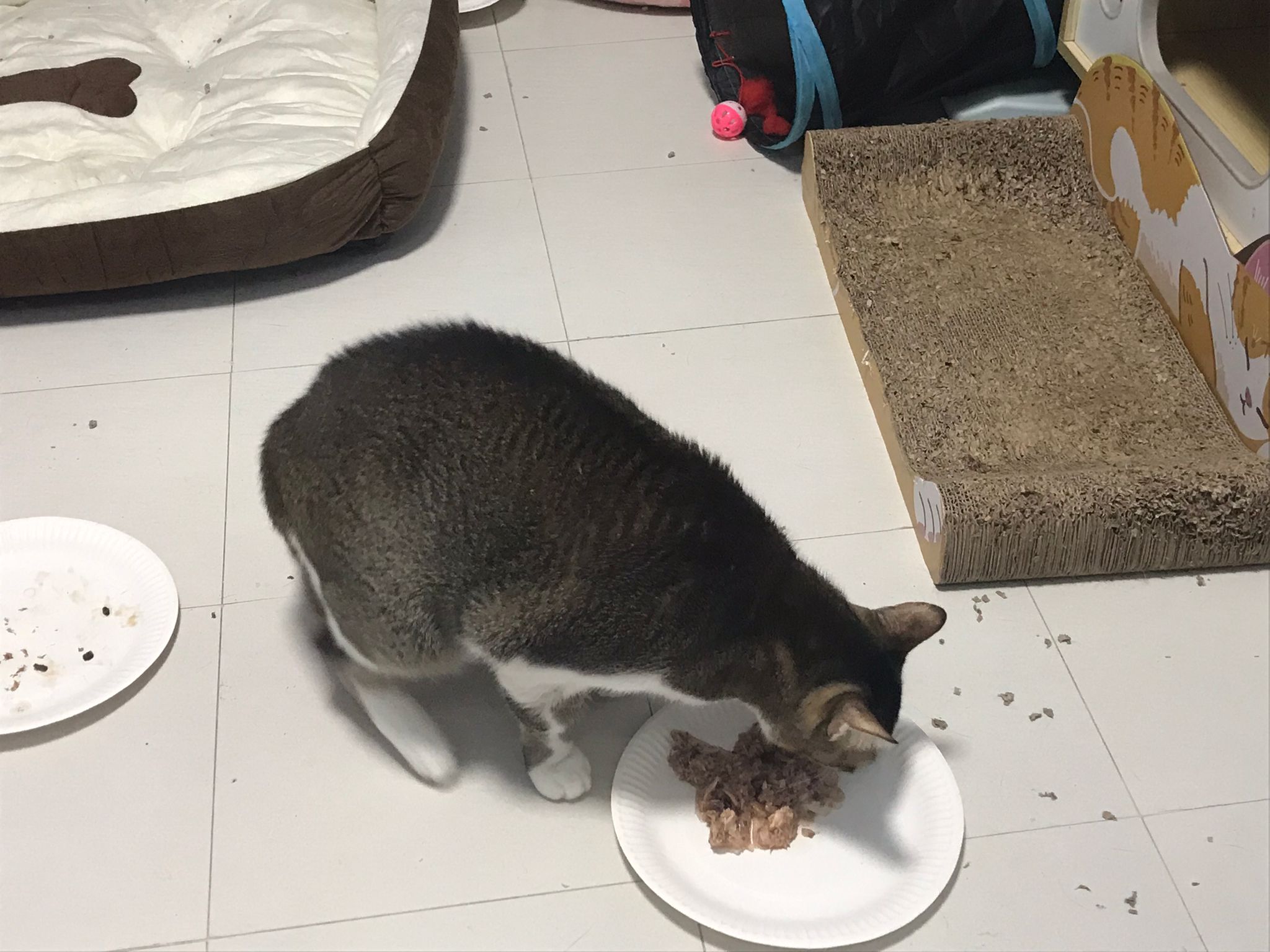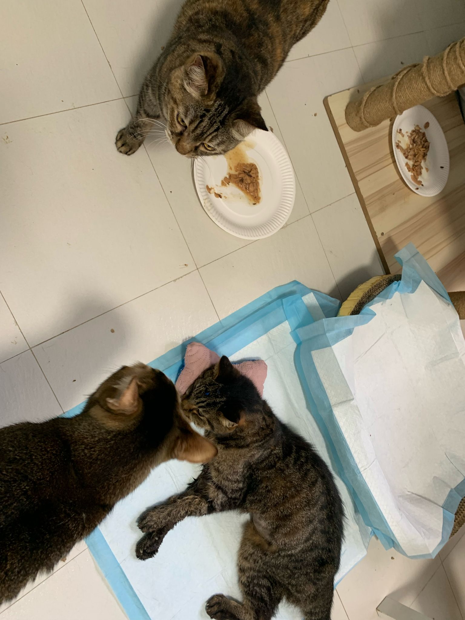 Morning; I sit on the floor outside his room packing the storage box and he meow wait for me. 1pm+: given him Clav jab and 0.15ml bupre. serve ff he finish n went on to Kerry plate. Comb both fur they r happy kid