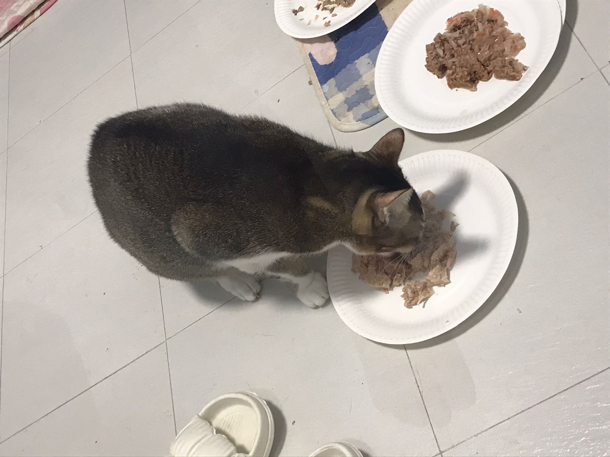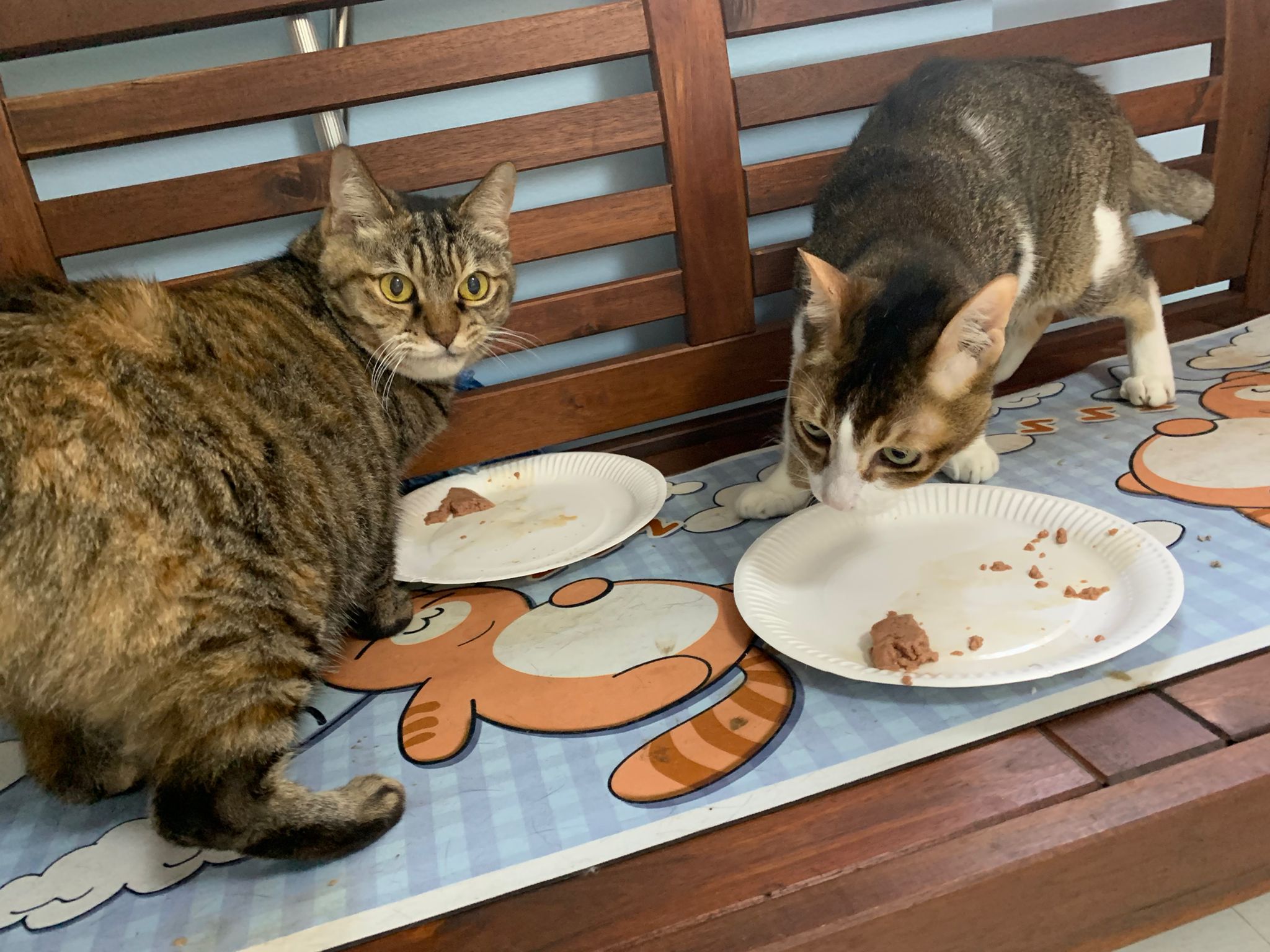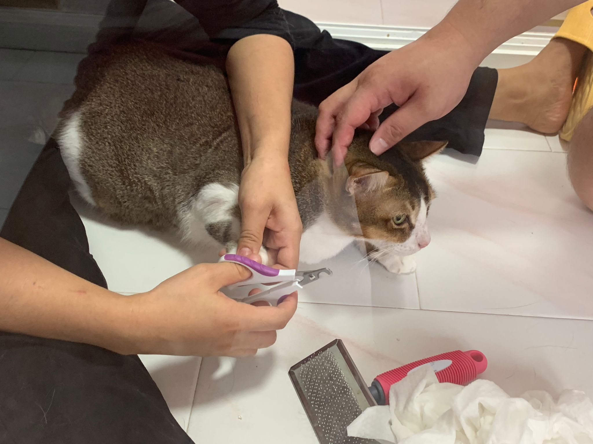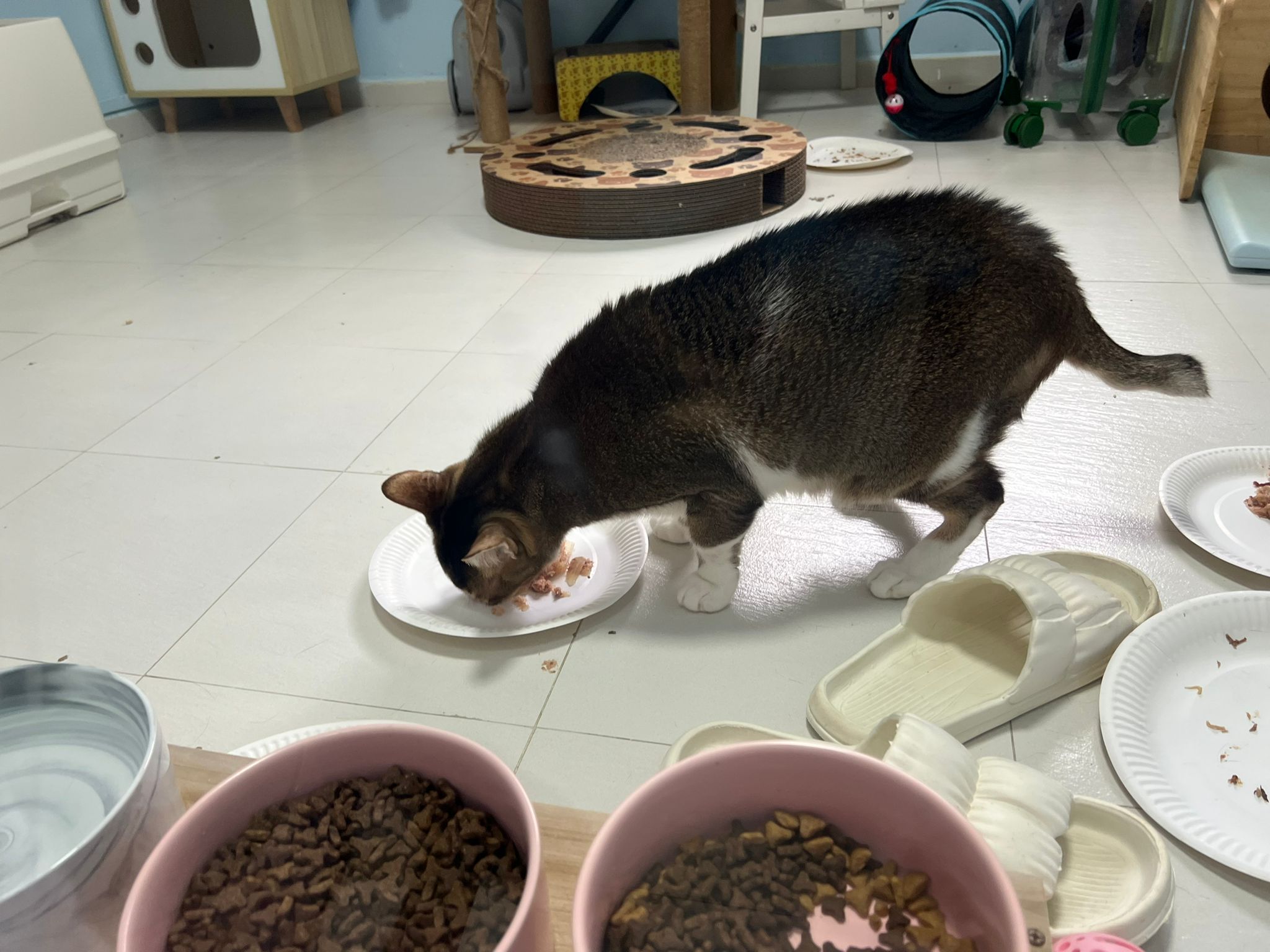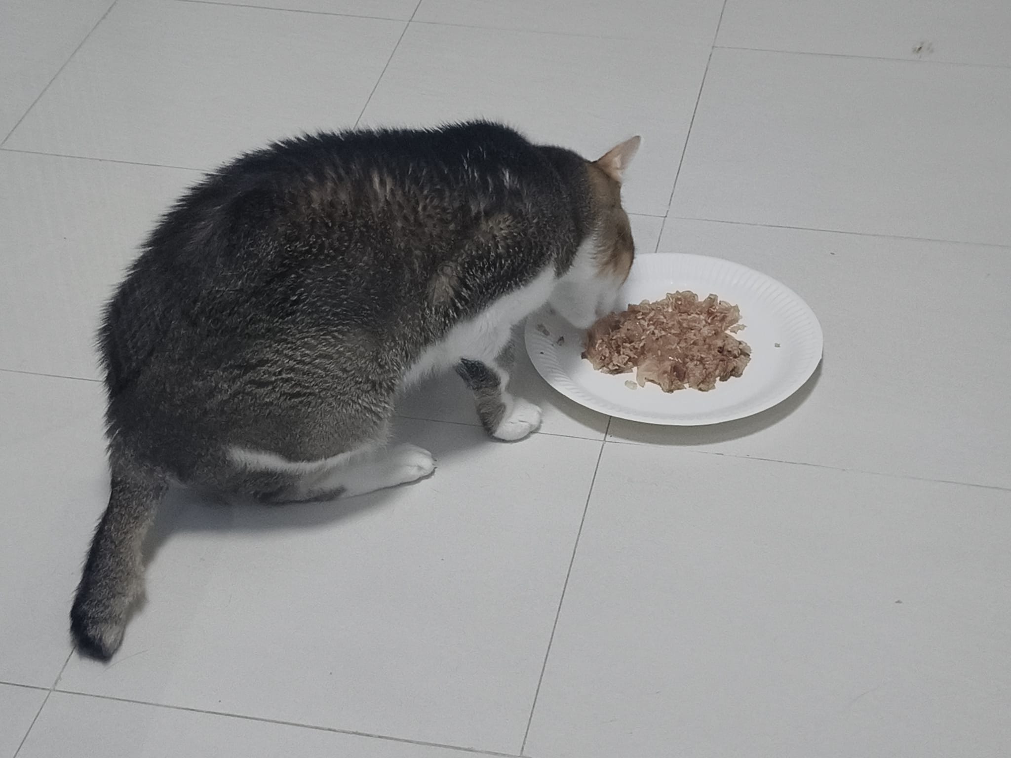 Morning; I sit on the floor outside his room packing the storage box and he meow wait for me. 1pm+: given him Clav jab and 0.15ml bupre. serve ff he finish n went on to Kerry plate. Comb both fur they r happy kid