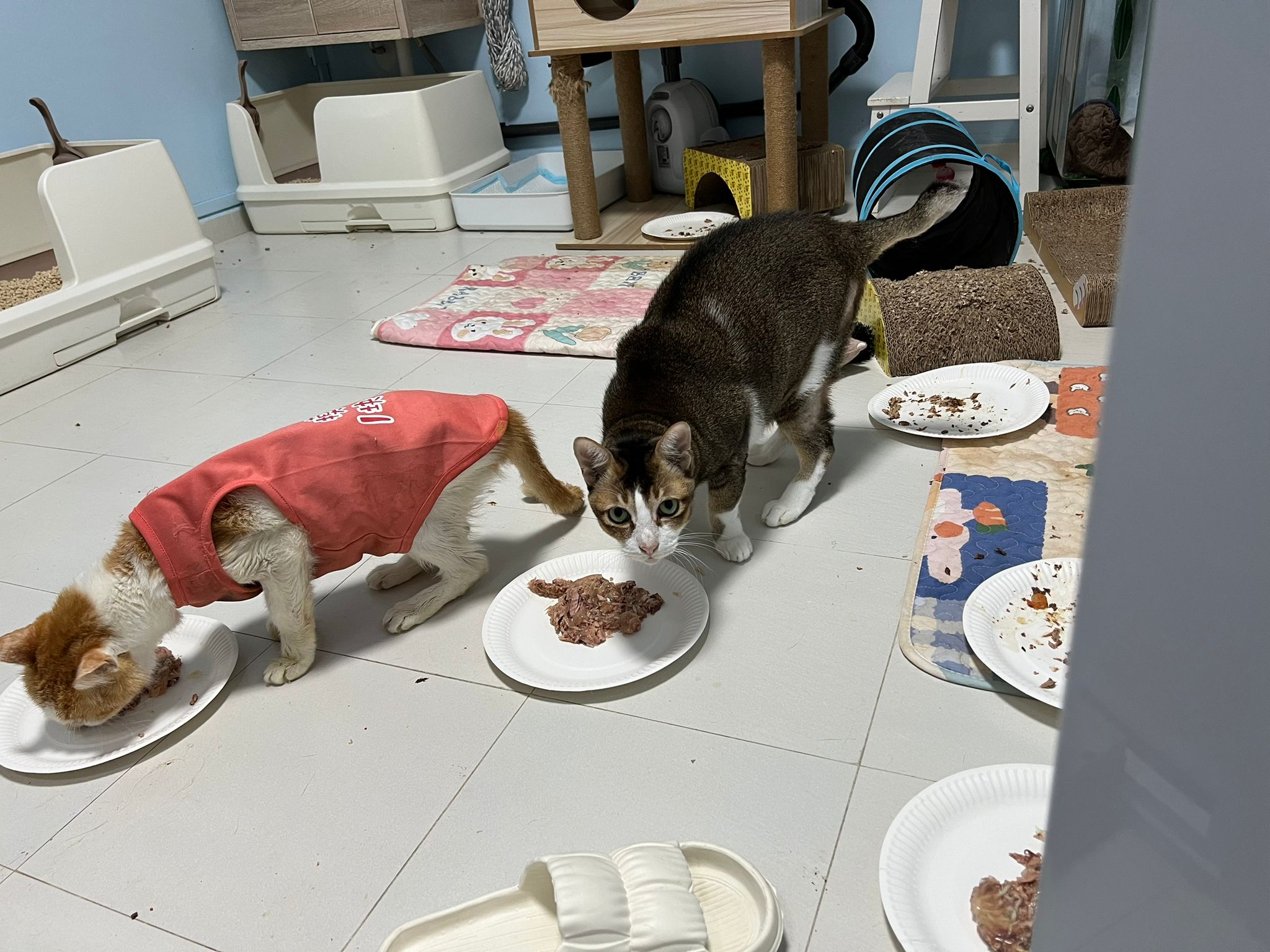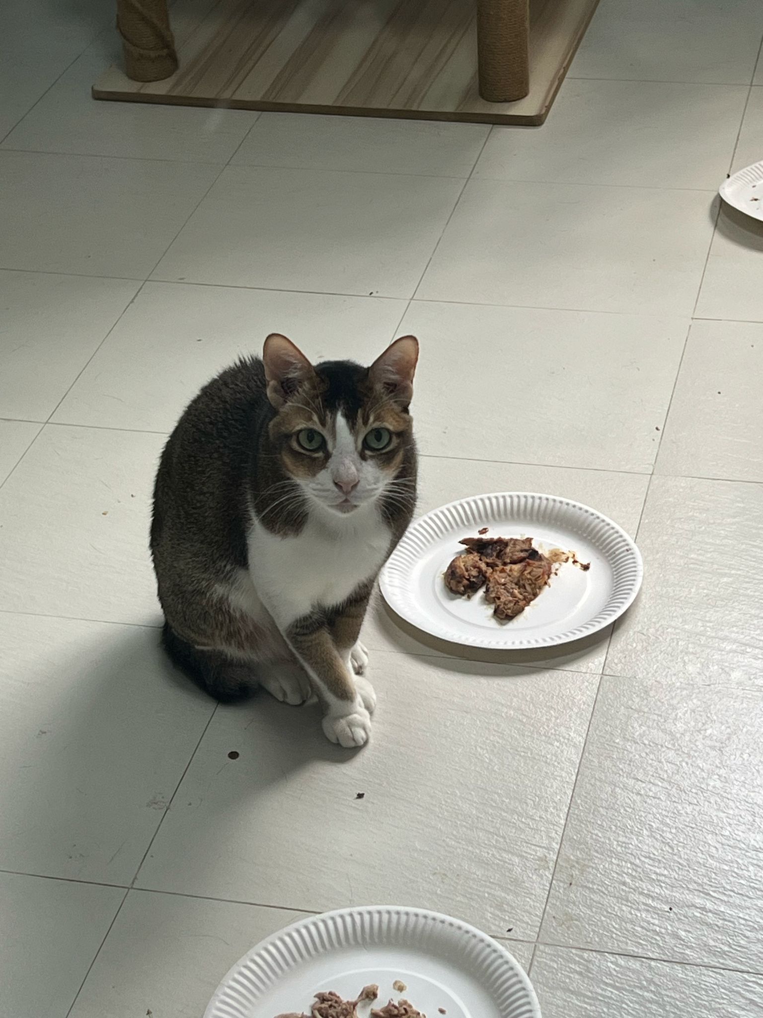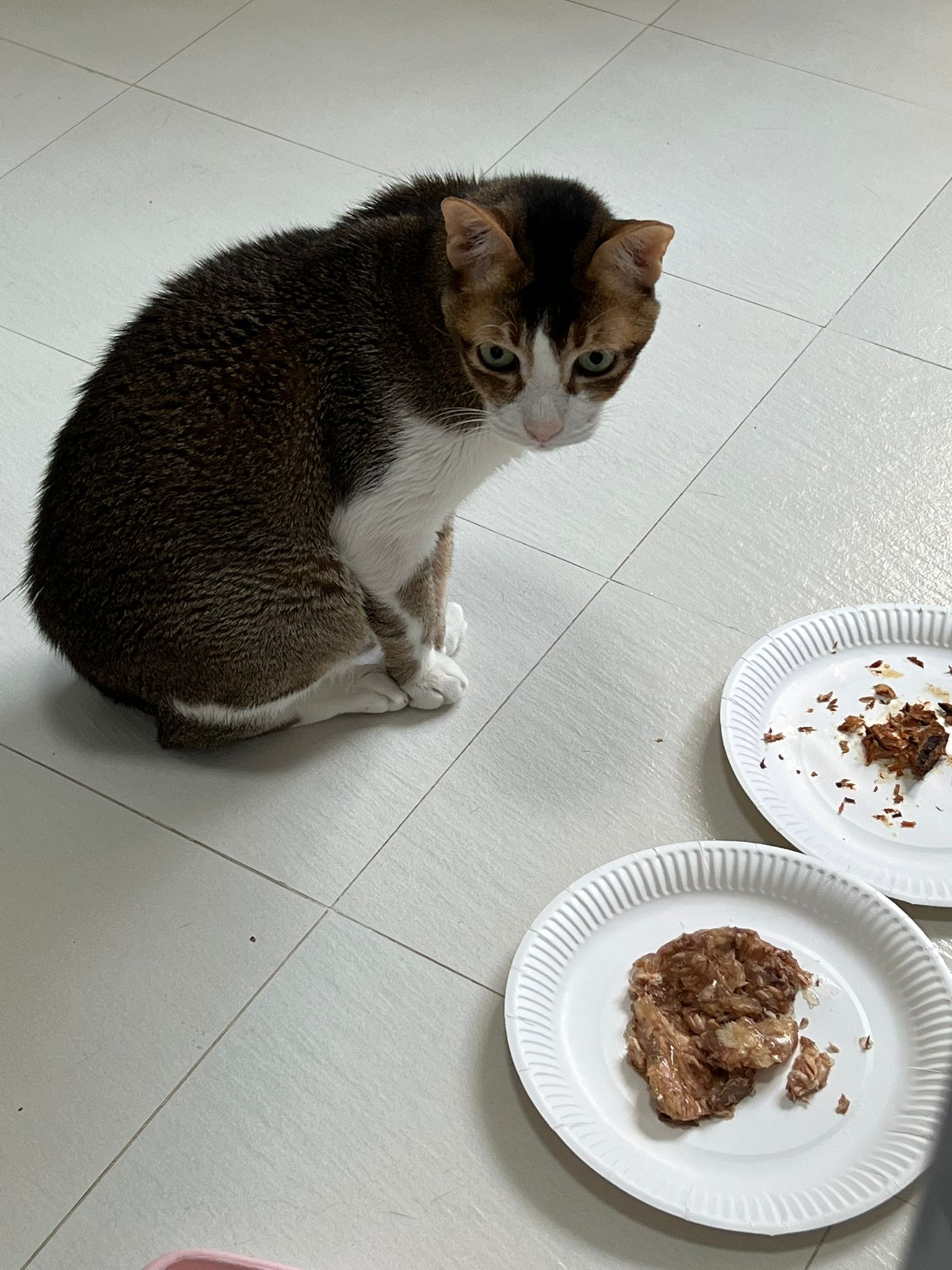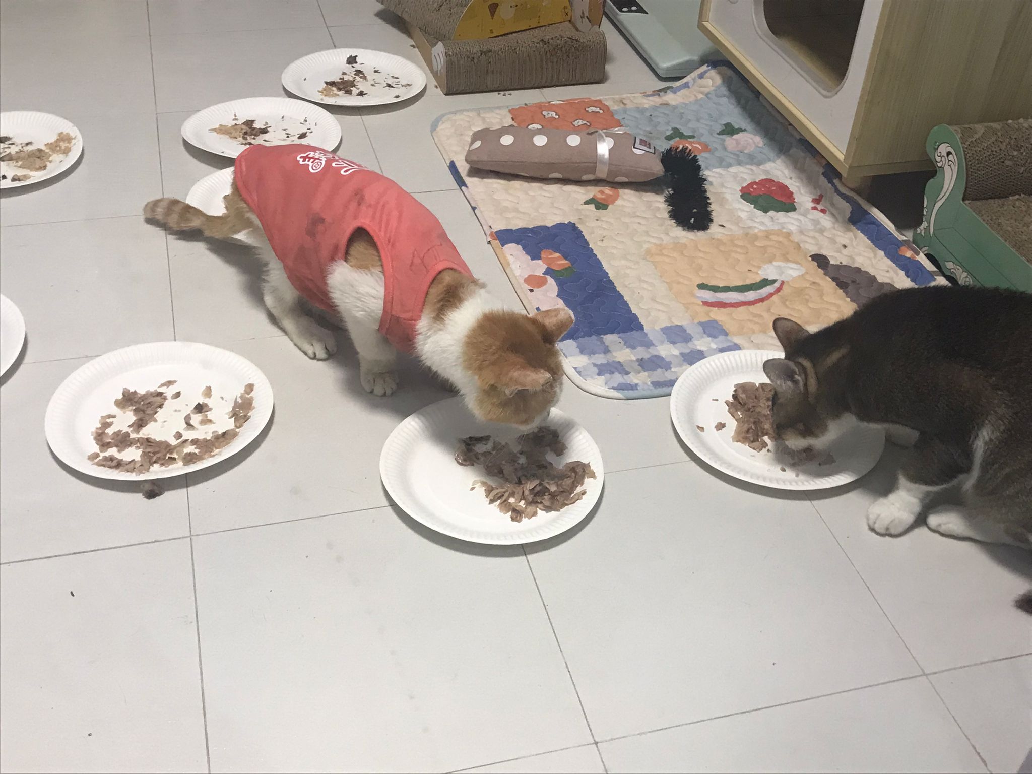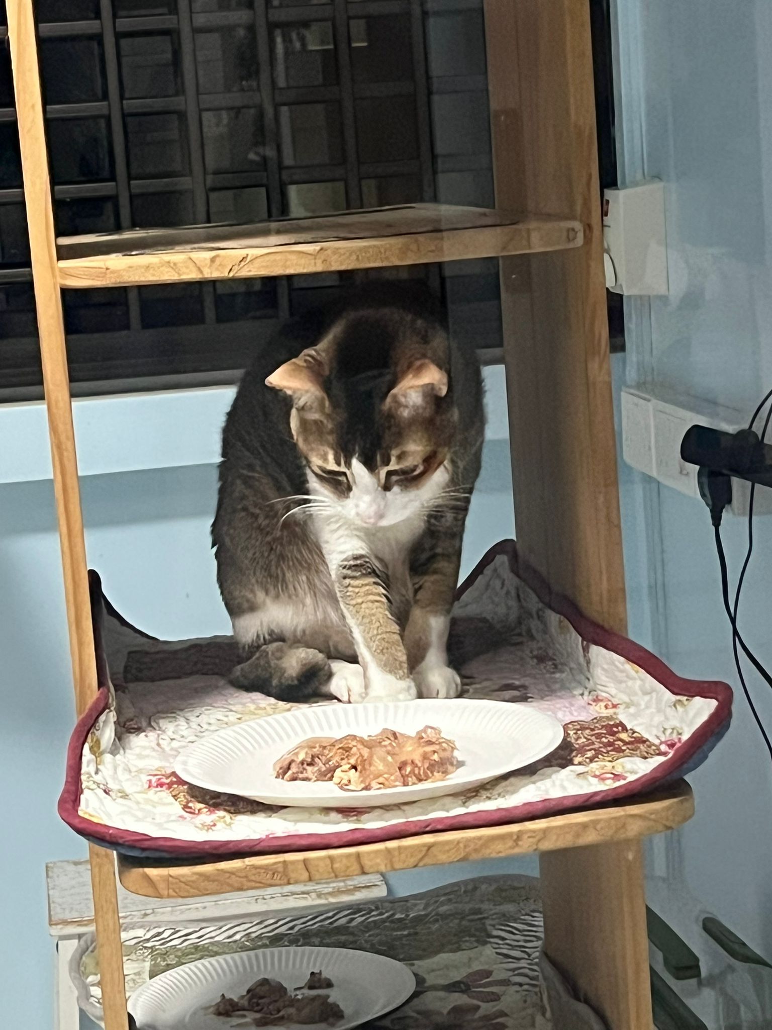 Morning; I sit on the floor outside his room packing the storage box and he meow wait for me. 1pm+: given him Clav jab and 0.15ml bupre. serve ff he finish n went on to Kerry plate. Comb both fur they r happy kid