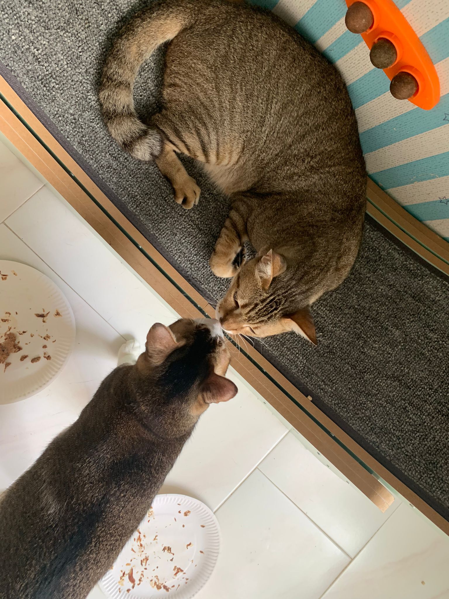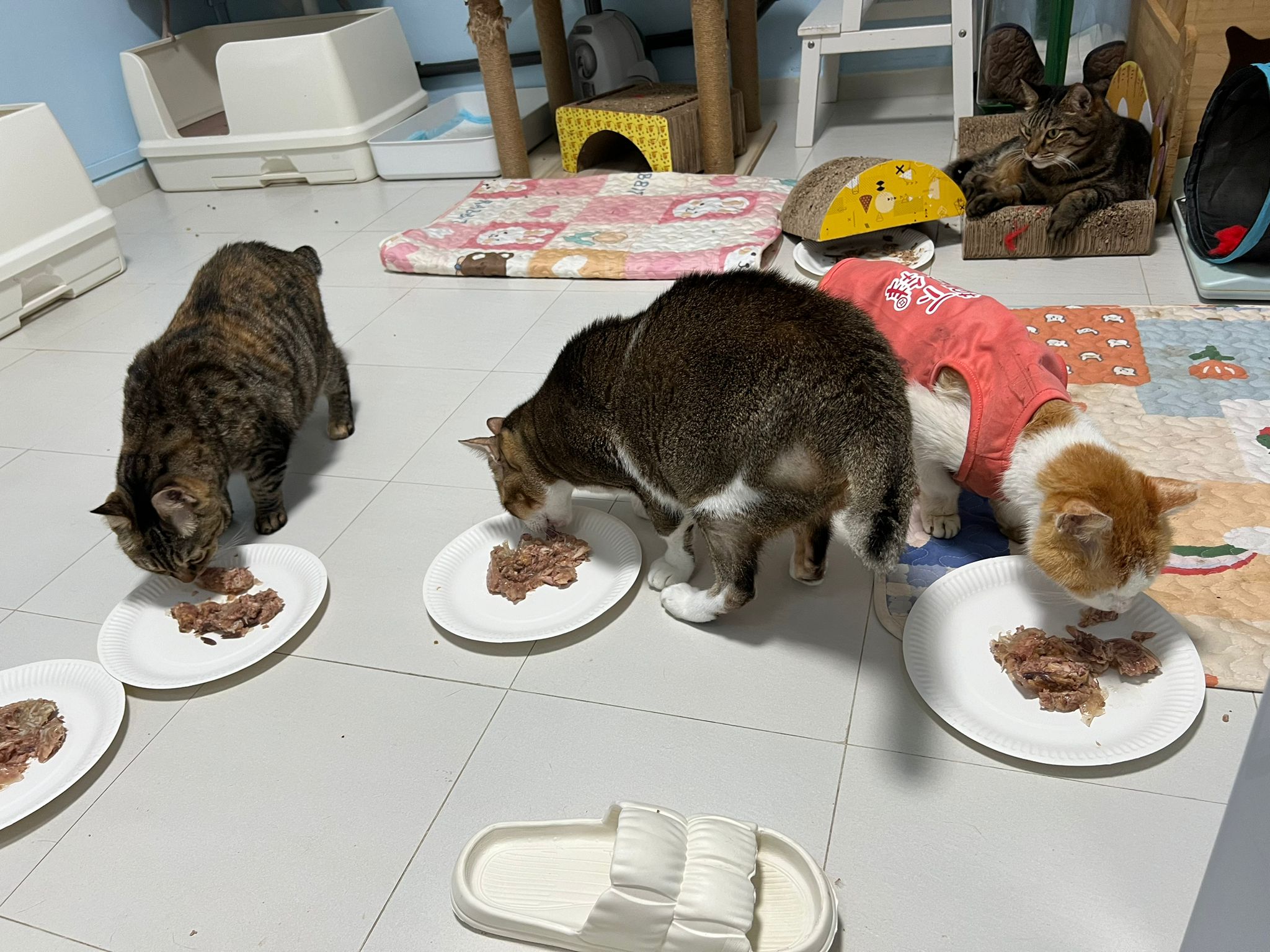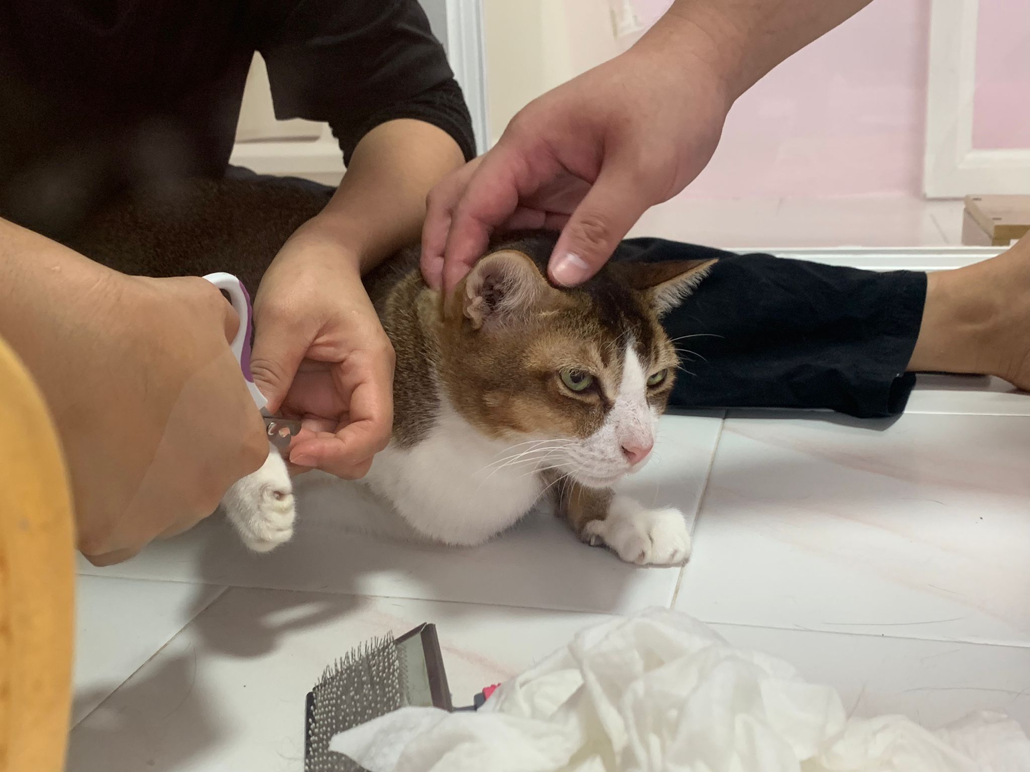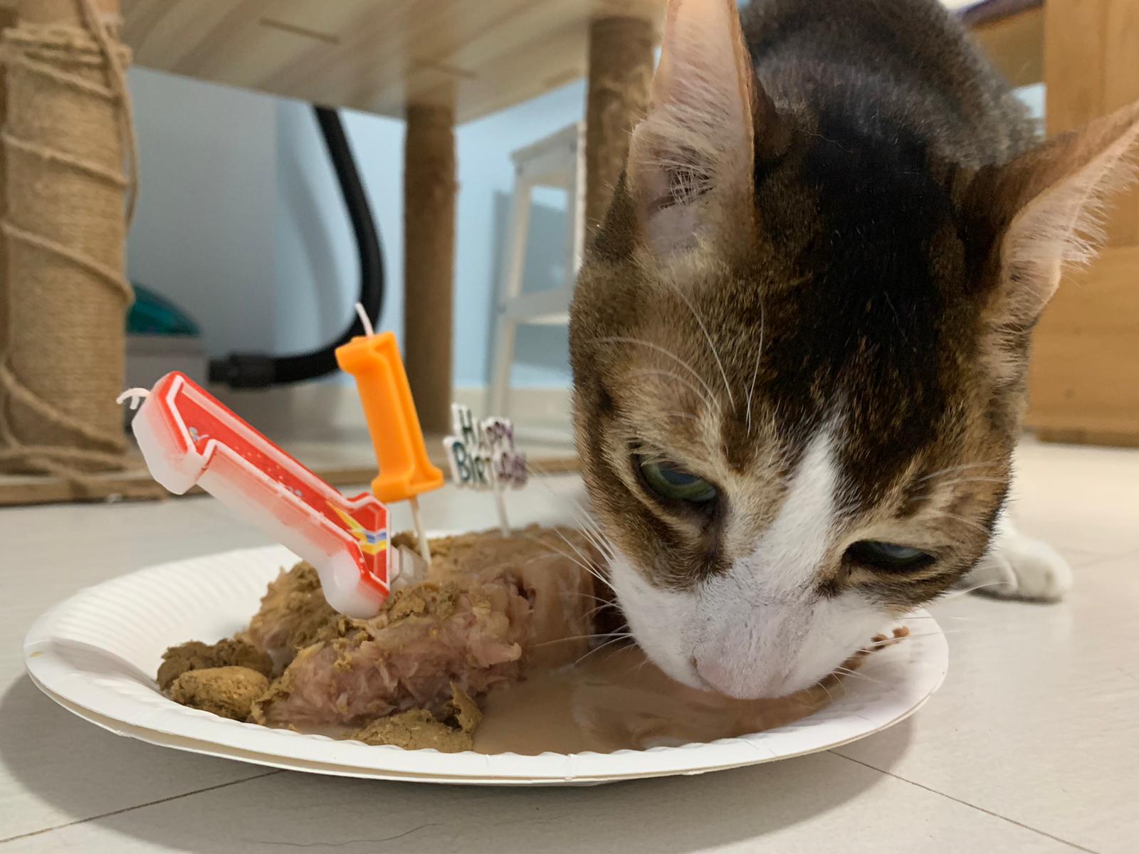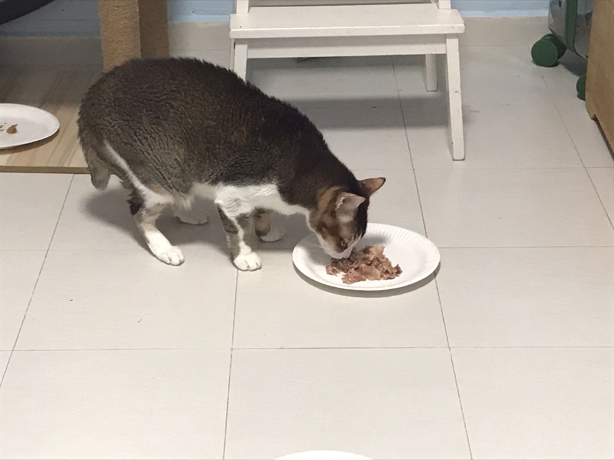 Morning; I sit on the floor outside his room packing the storage box and he meow wait for me. 1pm+: given him Clav jab and 0.15ml bupre. serve ff he finish n went on to Kerry plate. Comb both fur they r happy kid