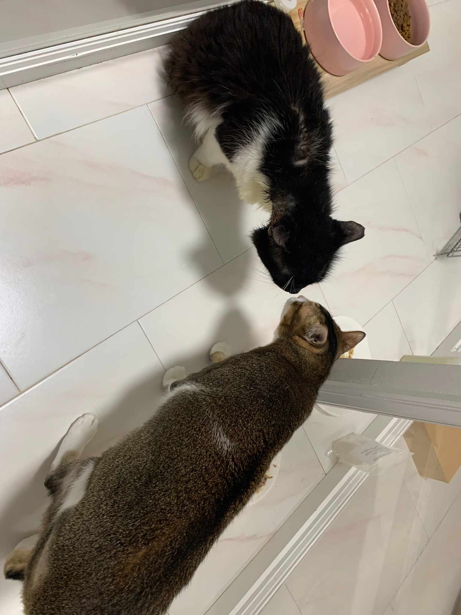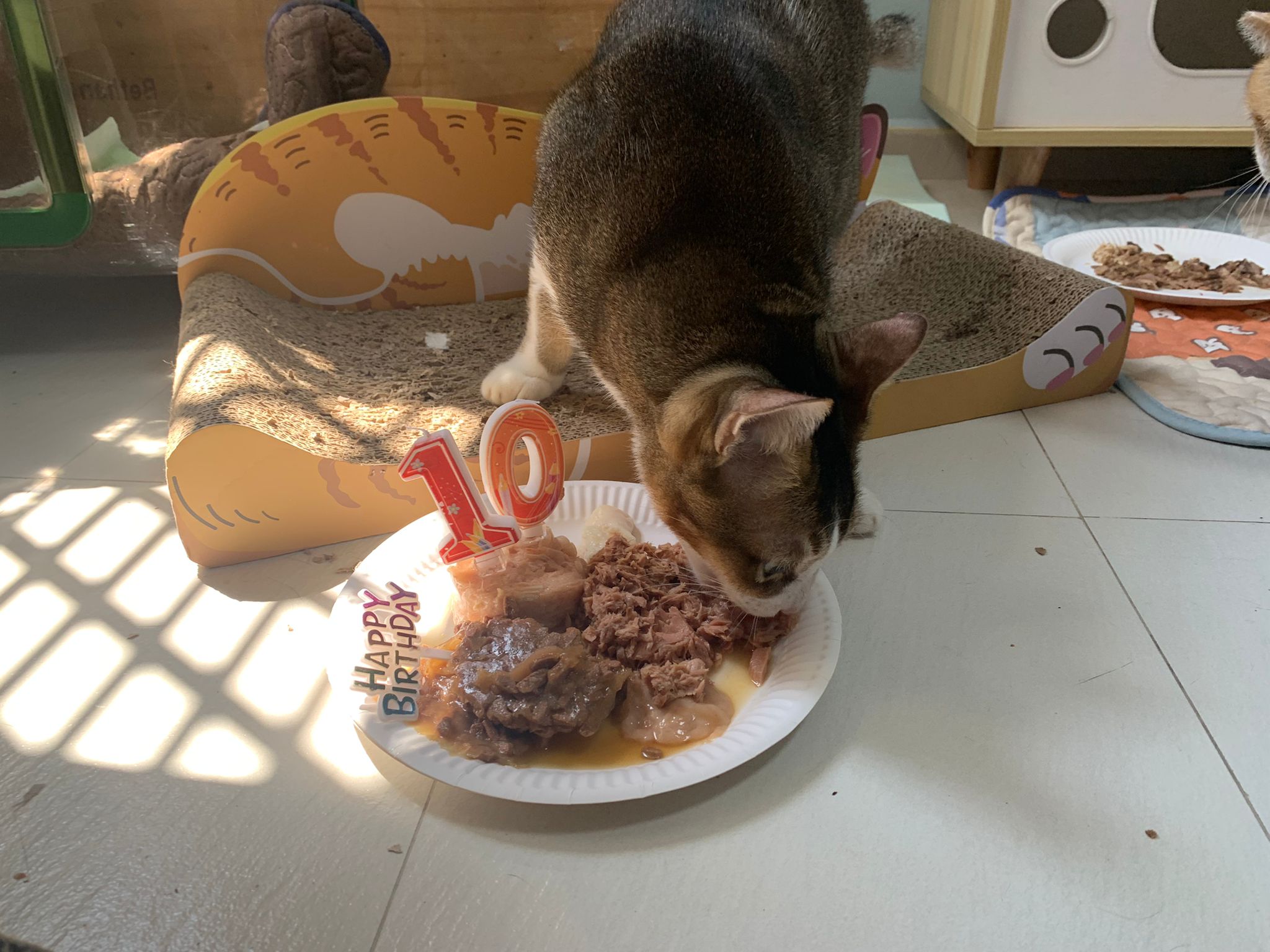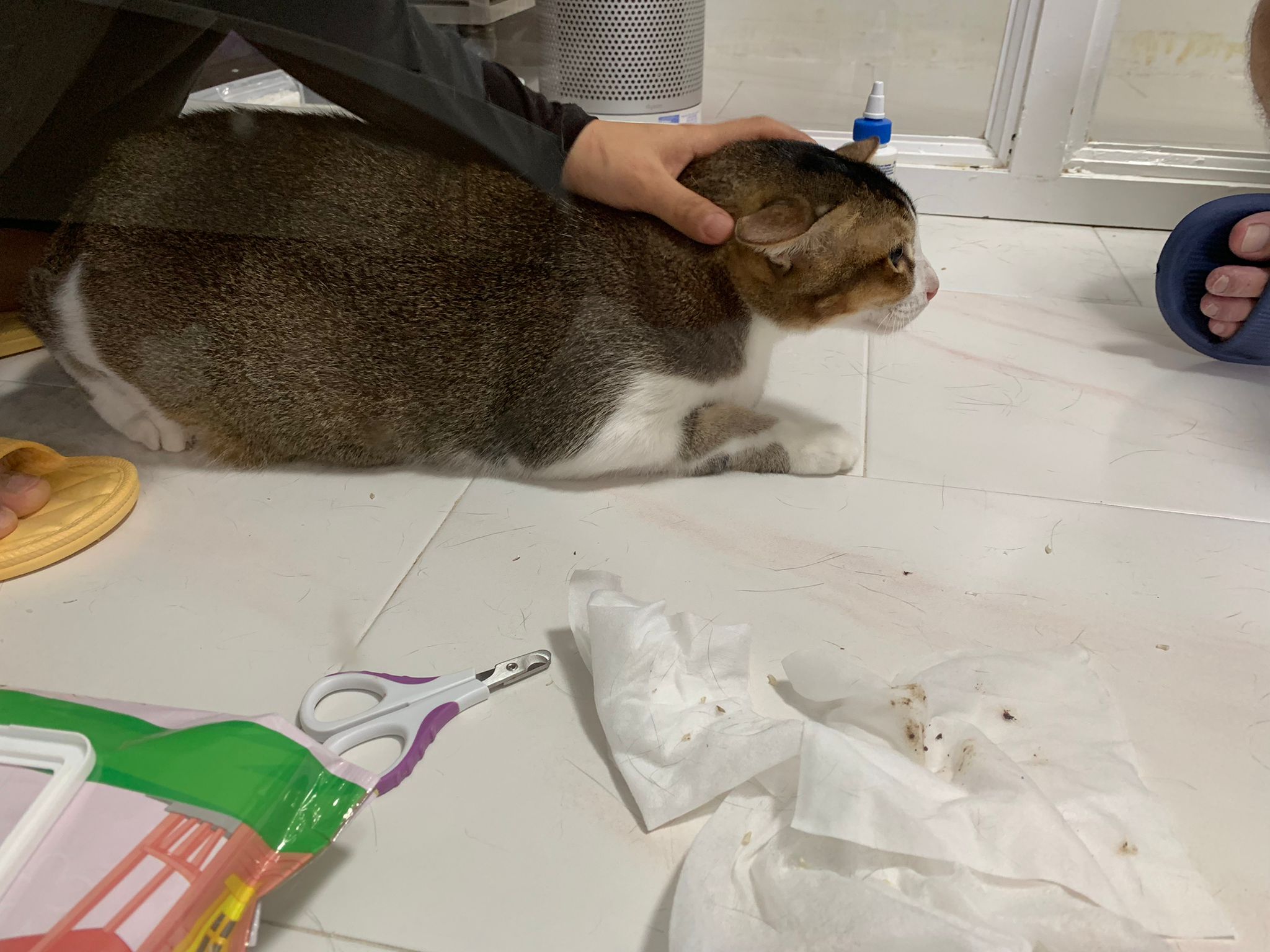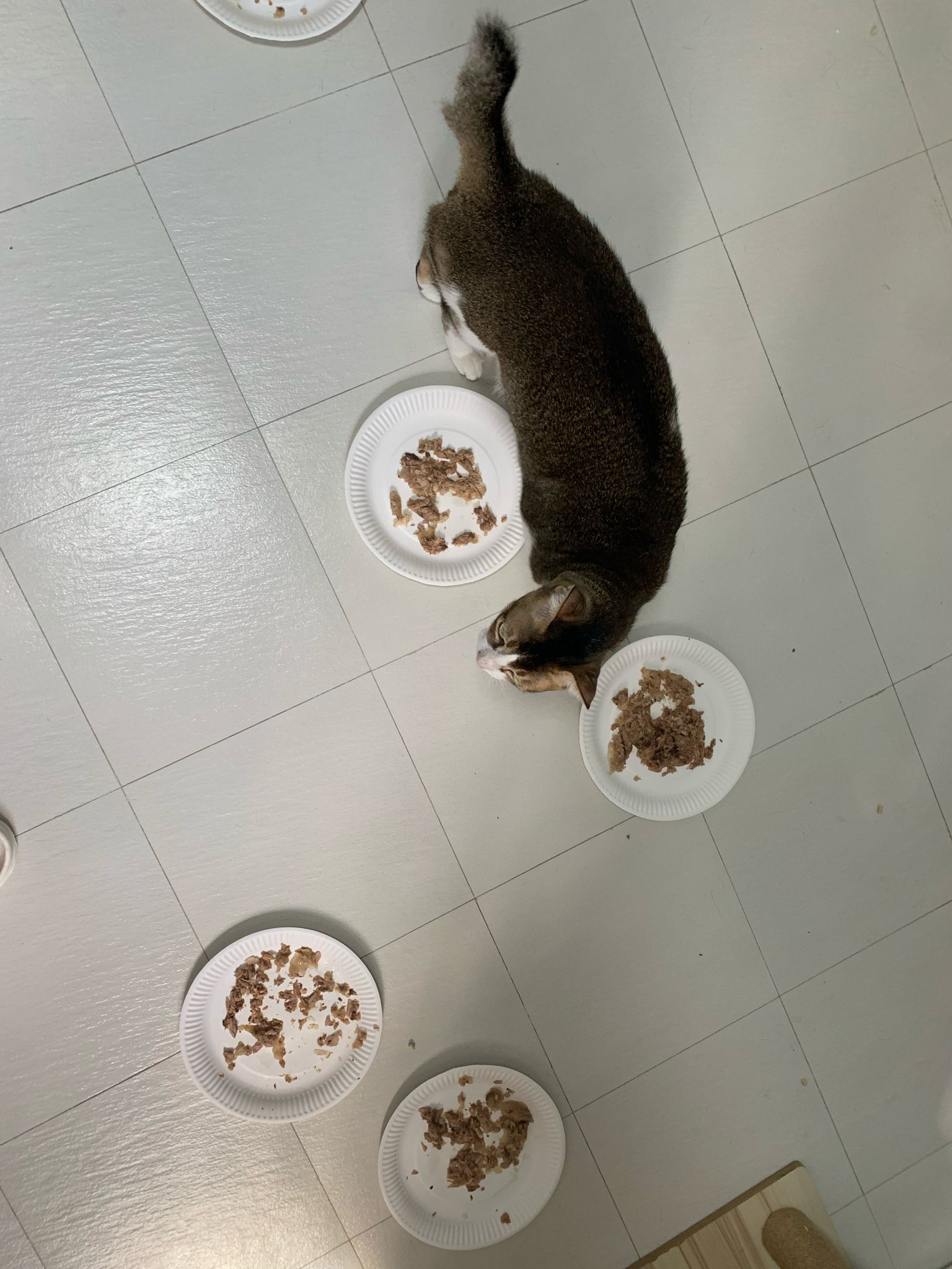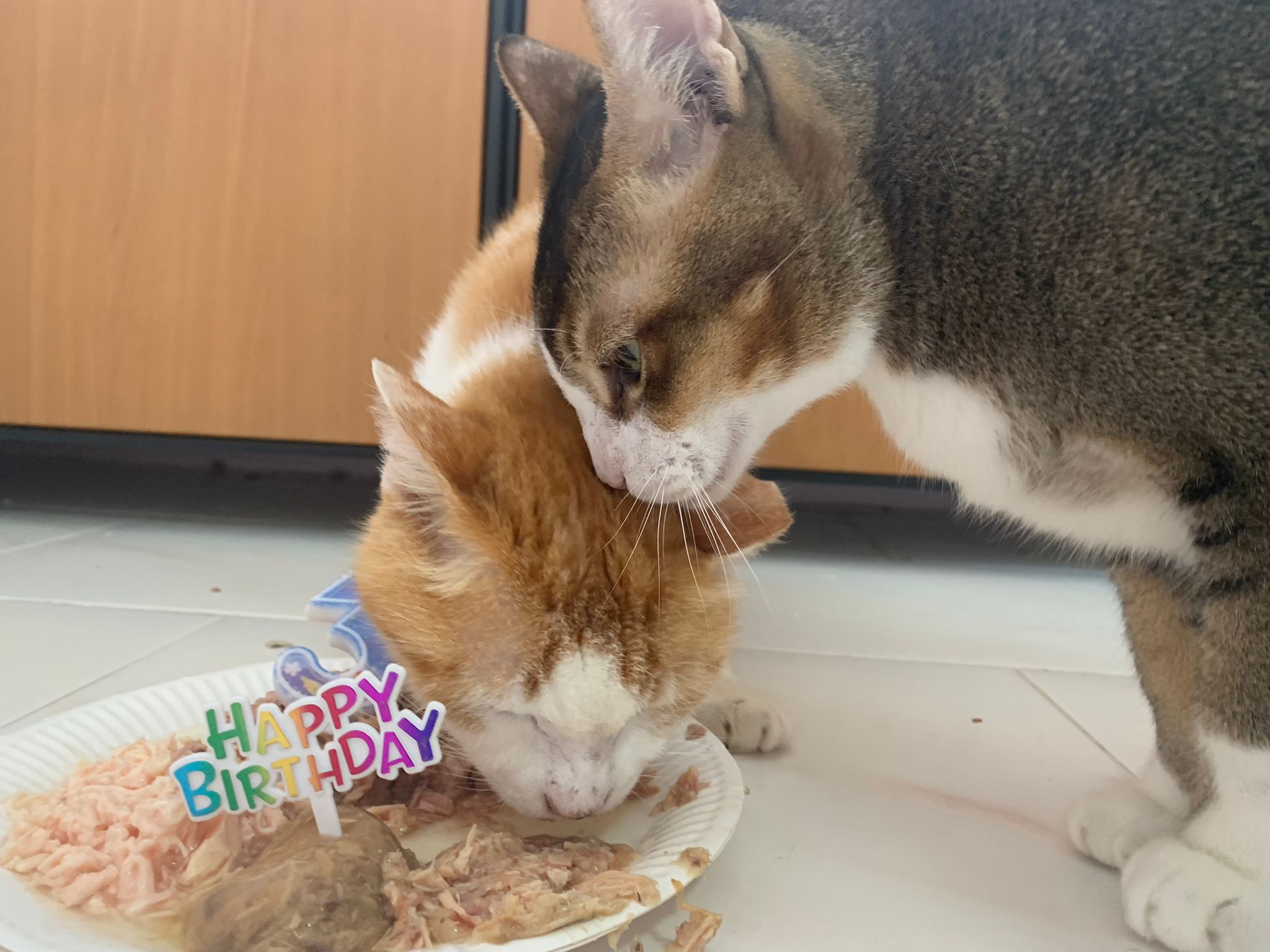 Morning; I sit on the floor outside his room packing the storage box and he meow wait for me. 1pm+: given him Clav jab and 0.15ml bupre. serve ff he finish n went on to Kerry plate. Comb both fur they r happy kid