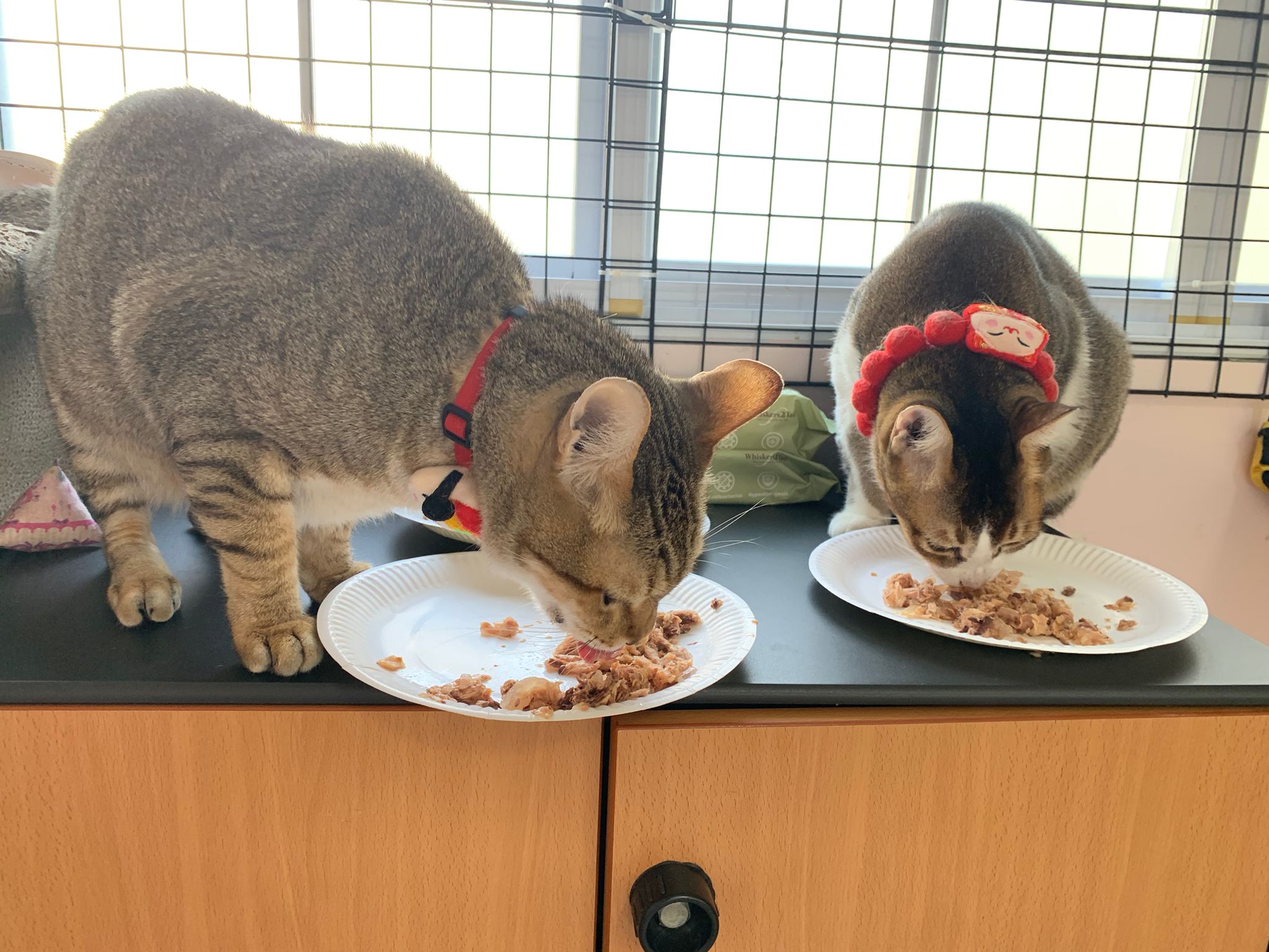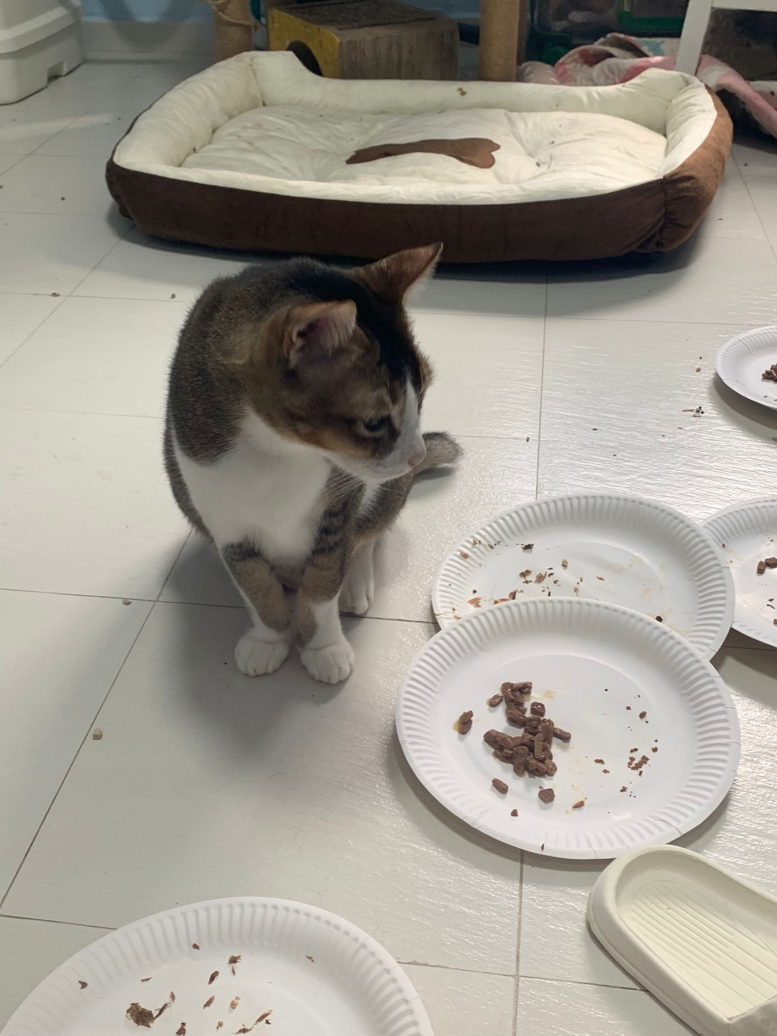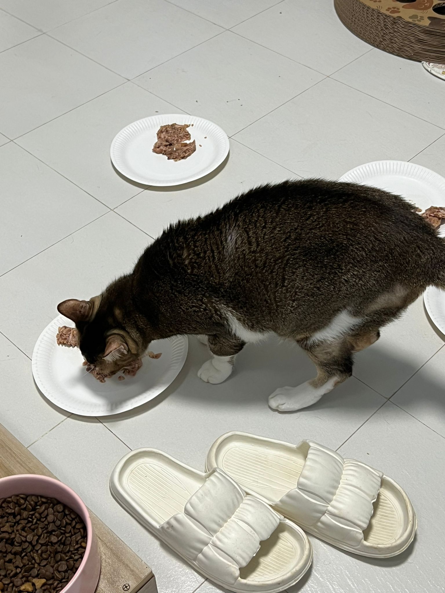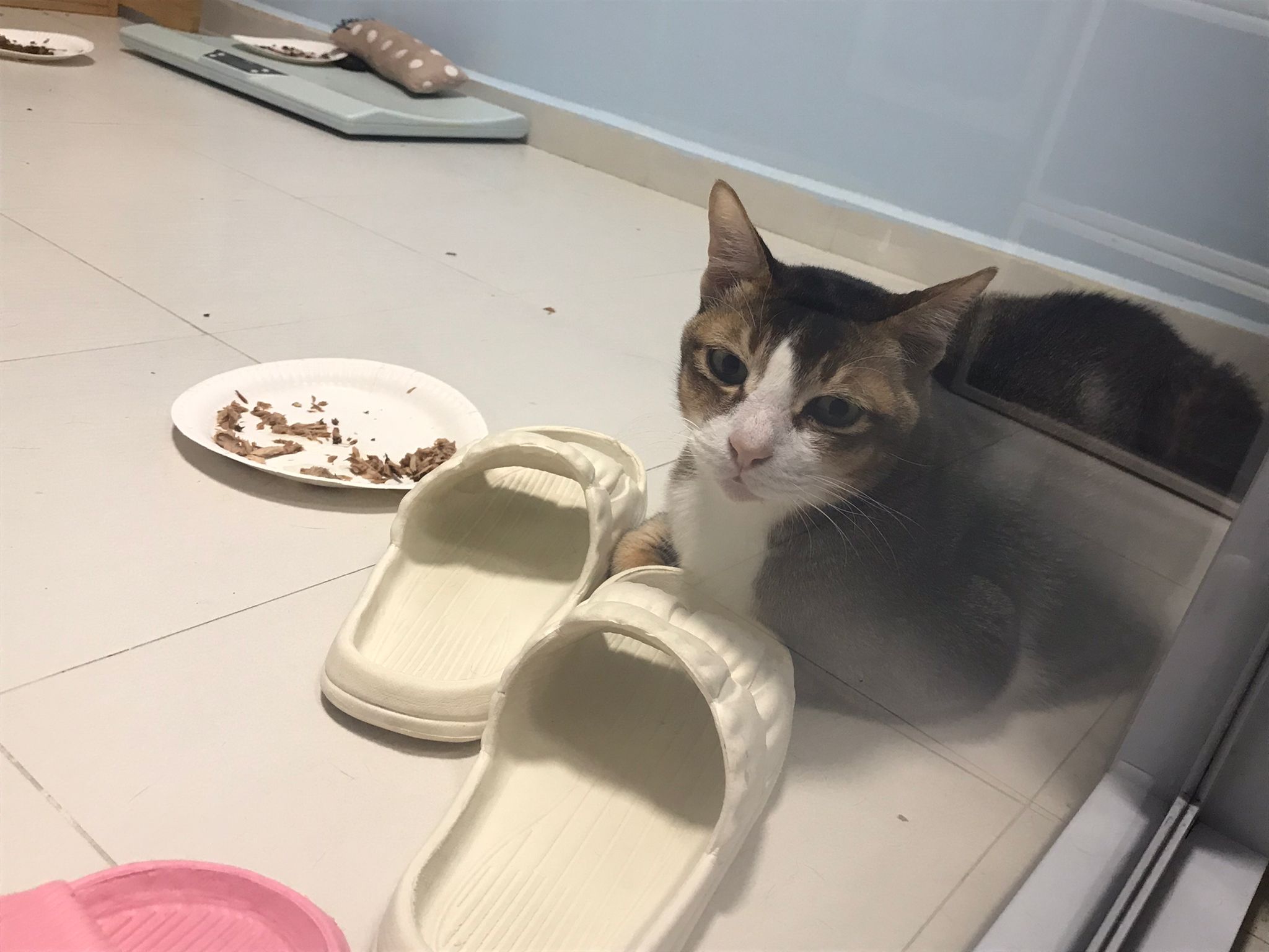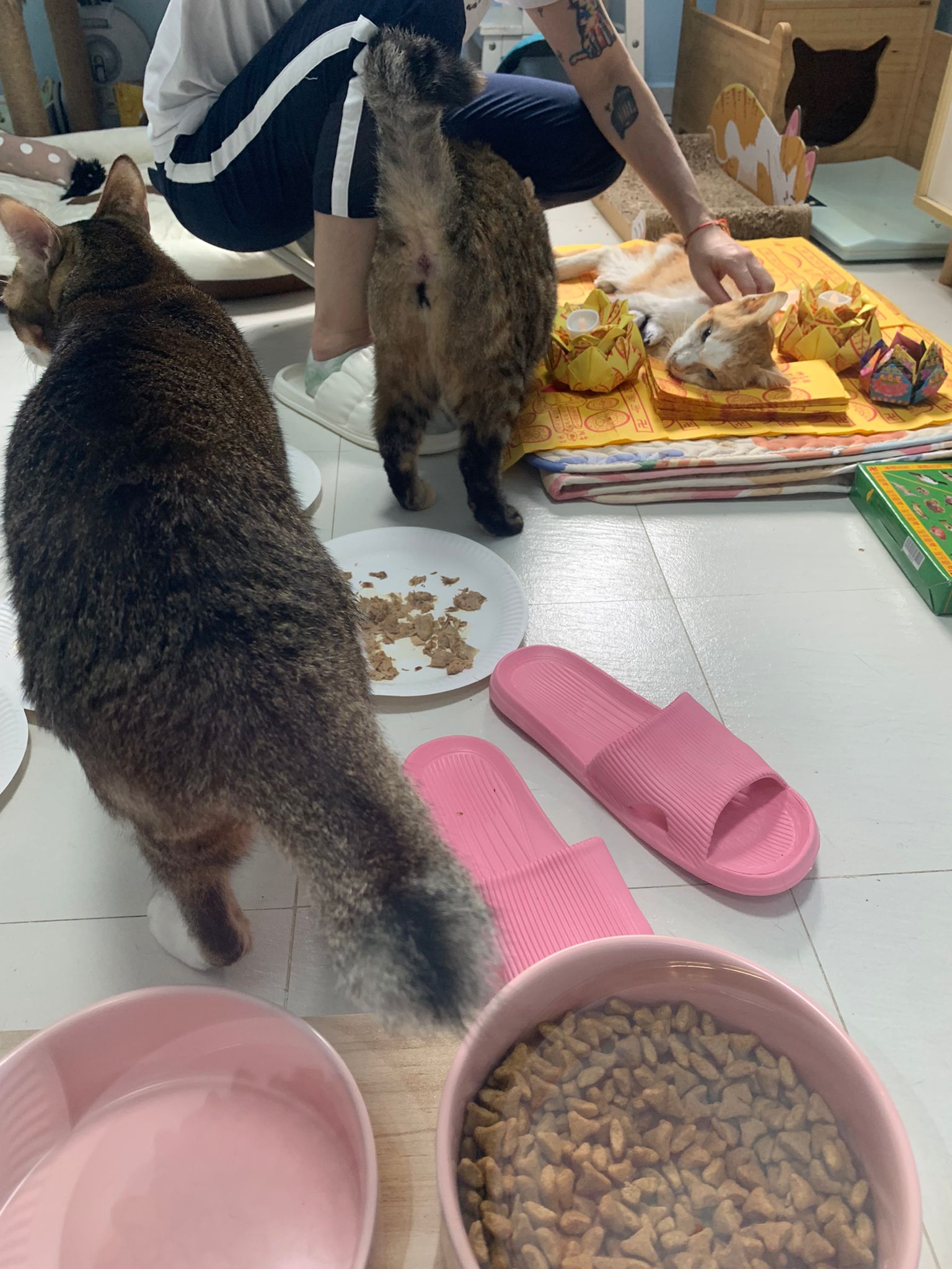 Morning; I sit on the floor outside his room packing the storage box and he meow wait for me. 1pm+: given him Clav jab and 0.15ml bupre. serve ff he finish n went on to Kerry plate. Comb both fur they r happy kid