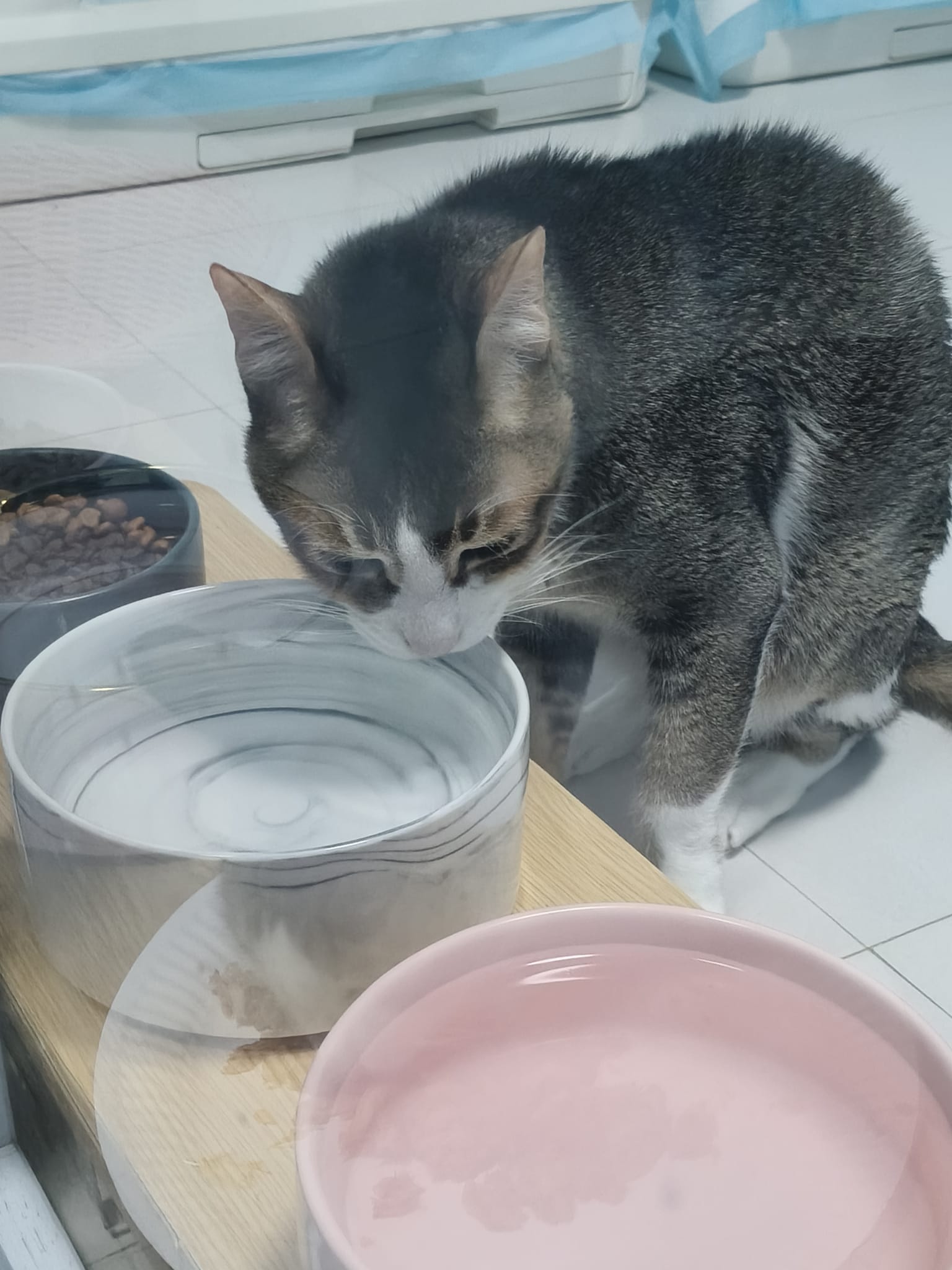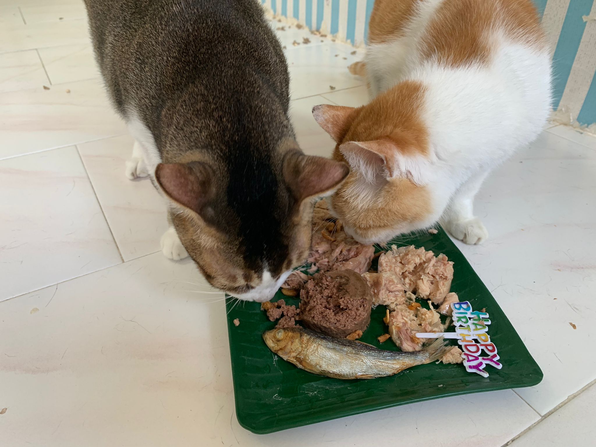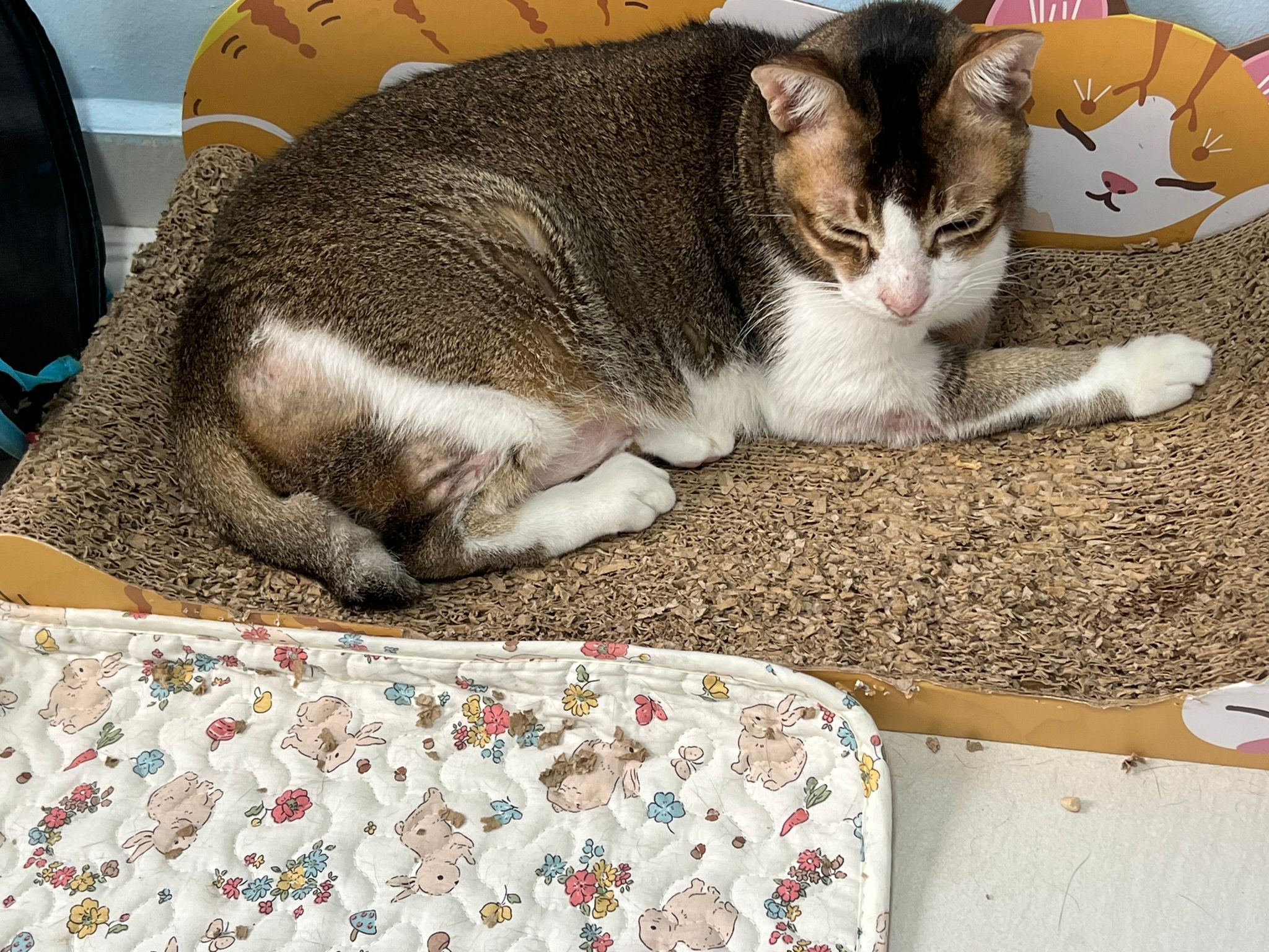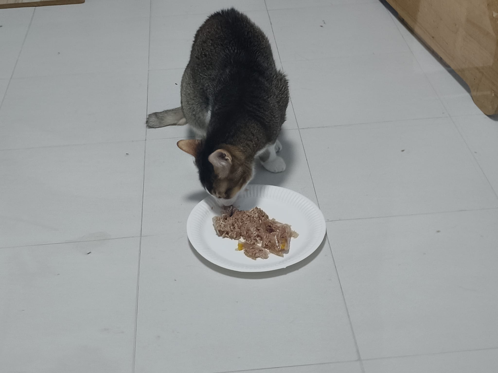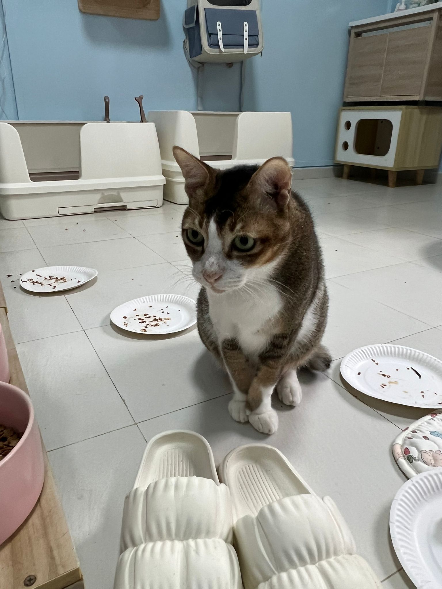 Morning; I sit on the floor outside his room packing the storage box and he meow wait for me. 1pm+: given him Clav jab and 0.15ml bupre. serve ff he finish n went on to Kerry plate. Comb both fur they r happy kid