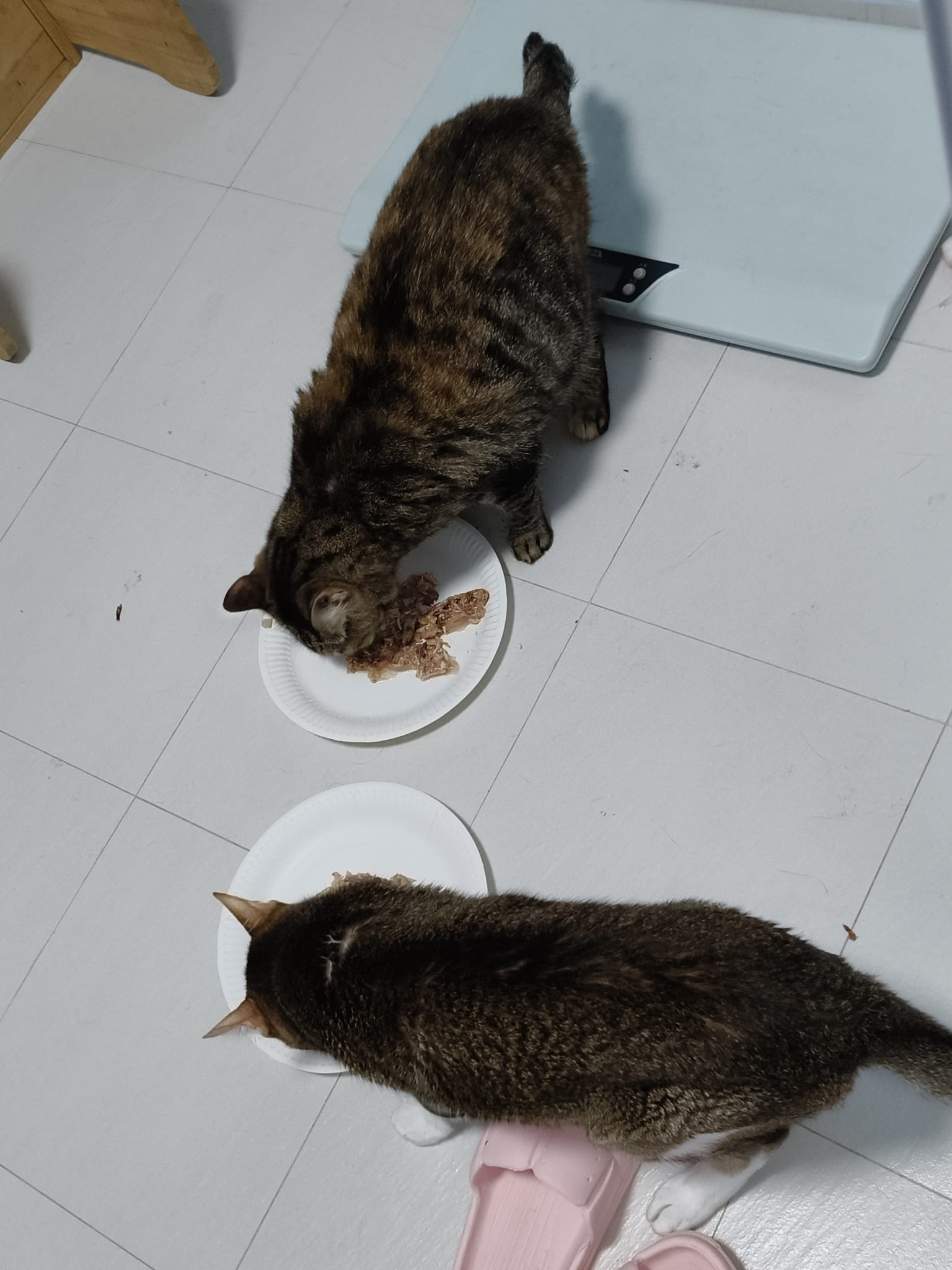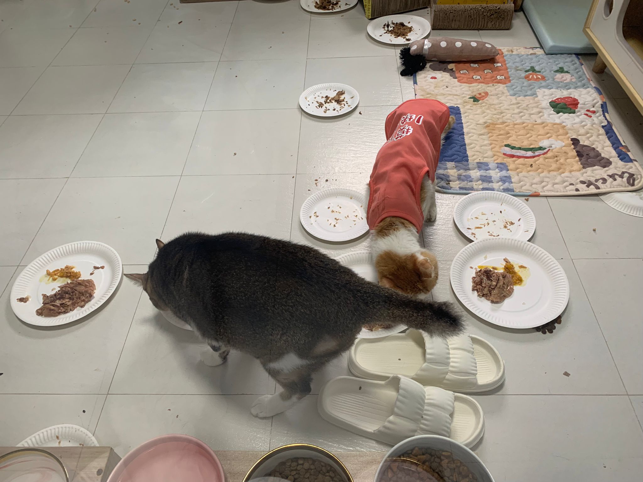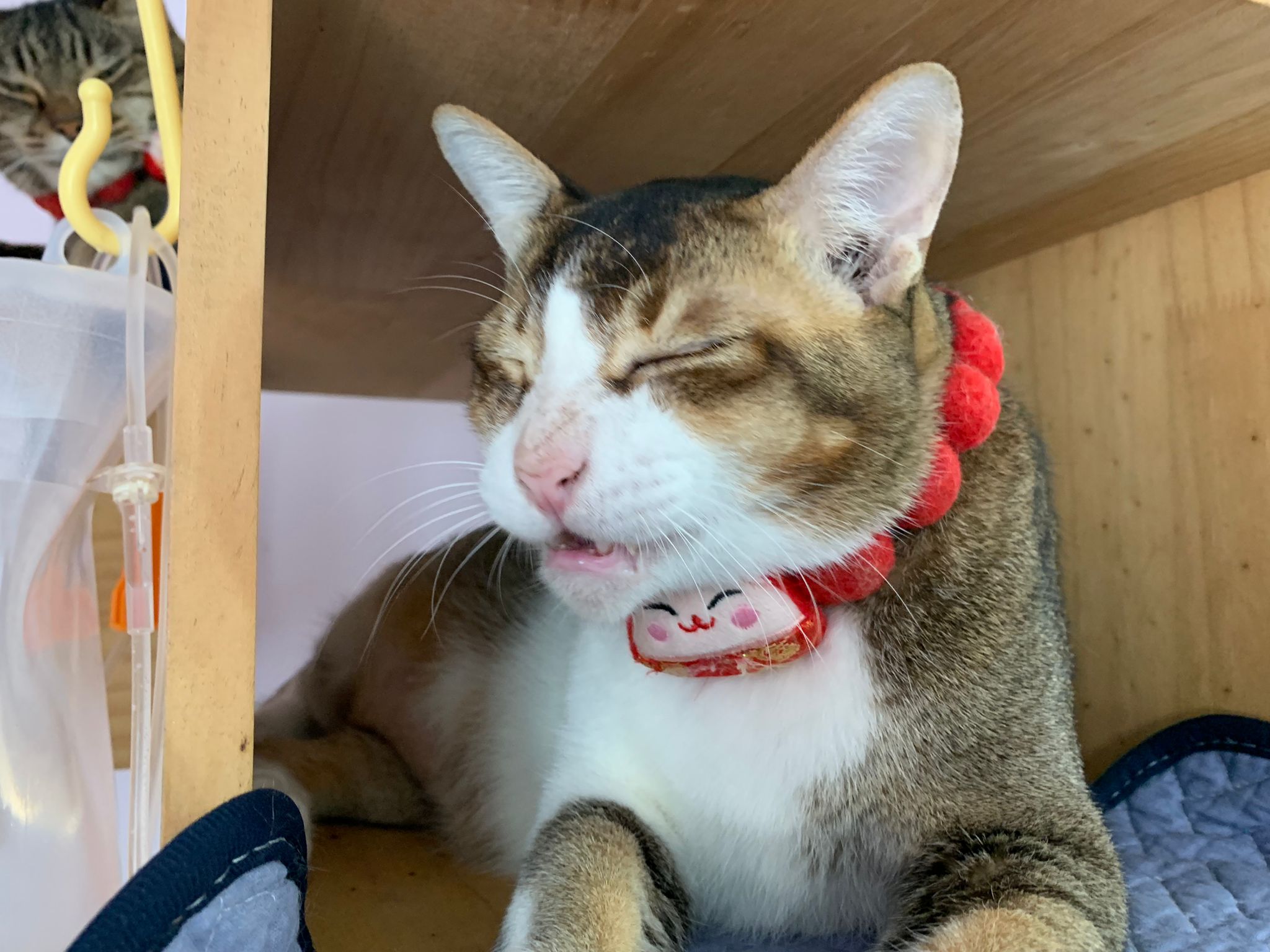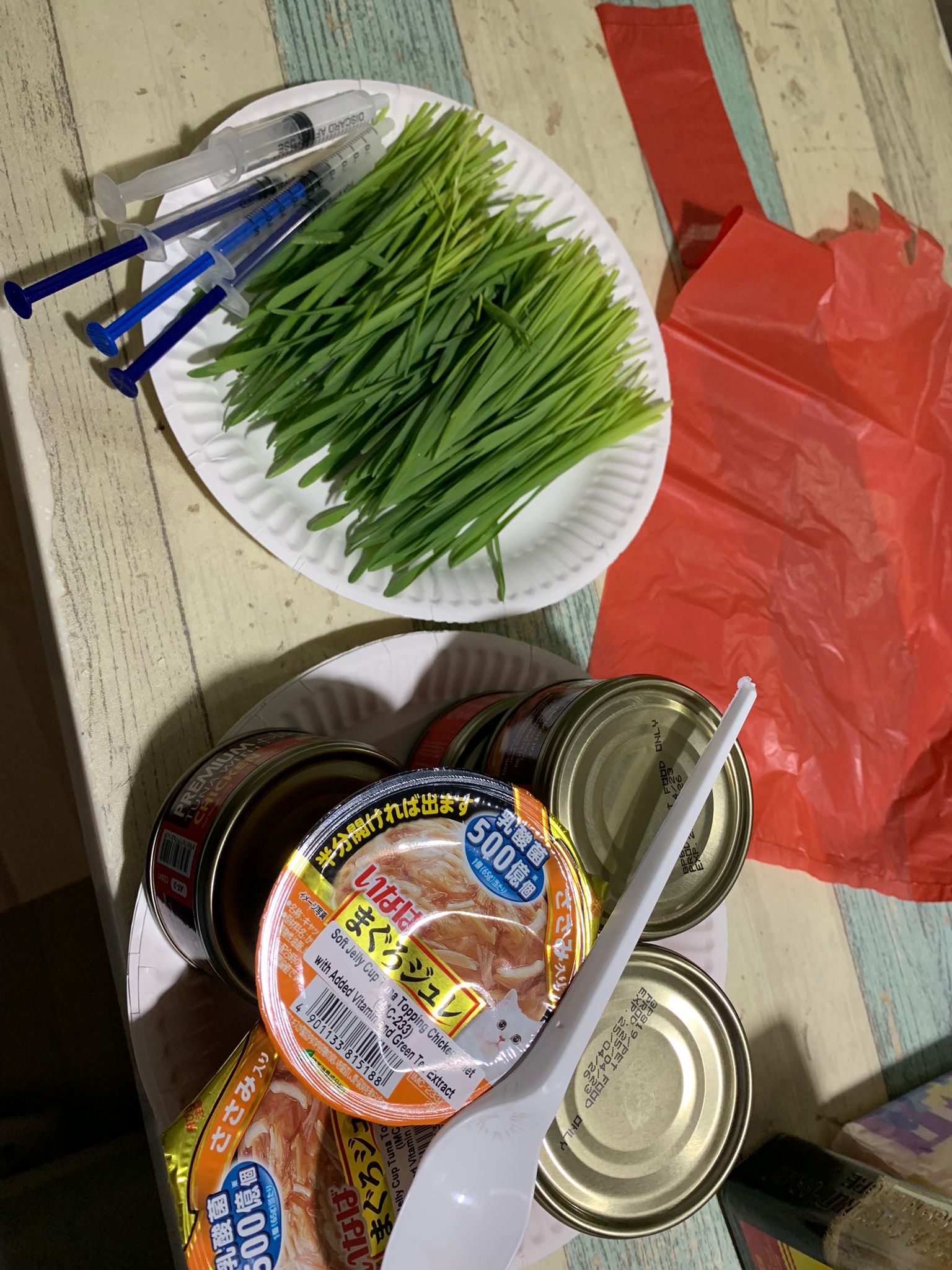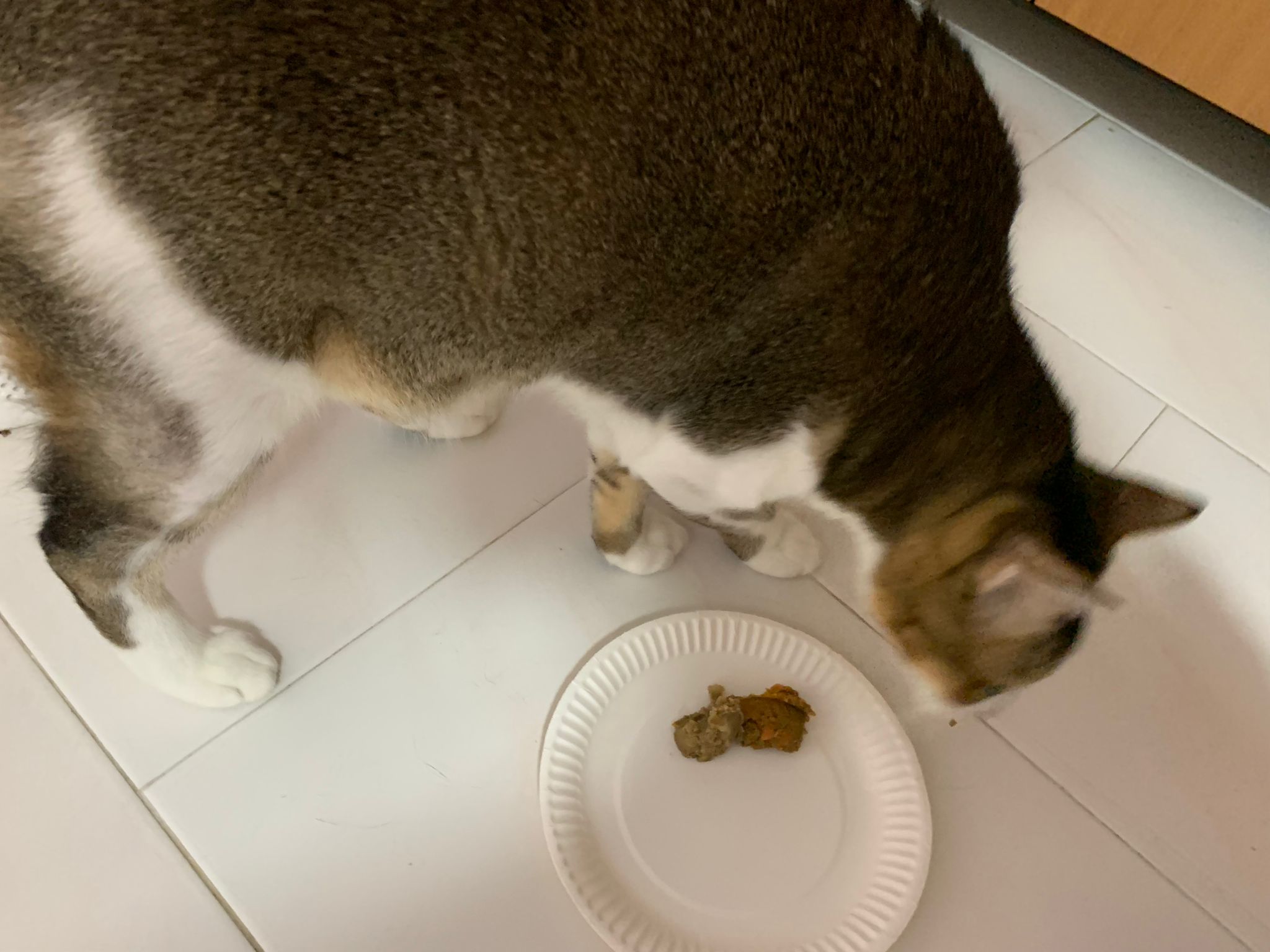 Morning; I sit on the floor outside his room packing the storage box and he meow wait for me. 1pm+: given him Clav jab and 0.15ml bupre. serve ff he finish n went on to Kerry plate. Comb both fur they r happy kid