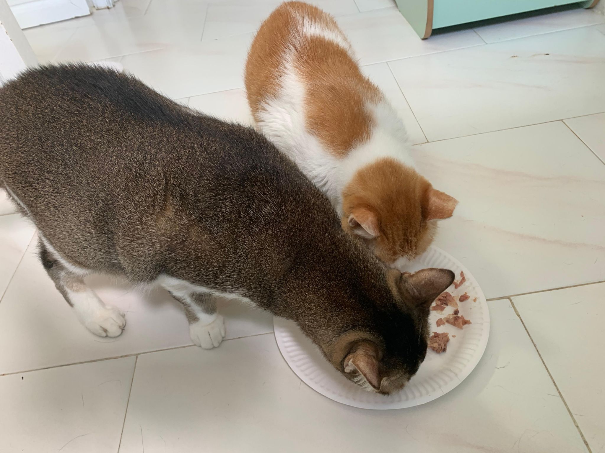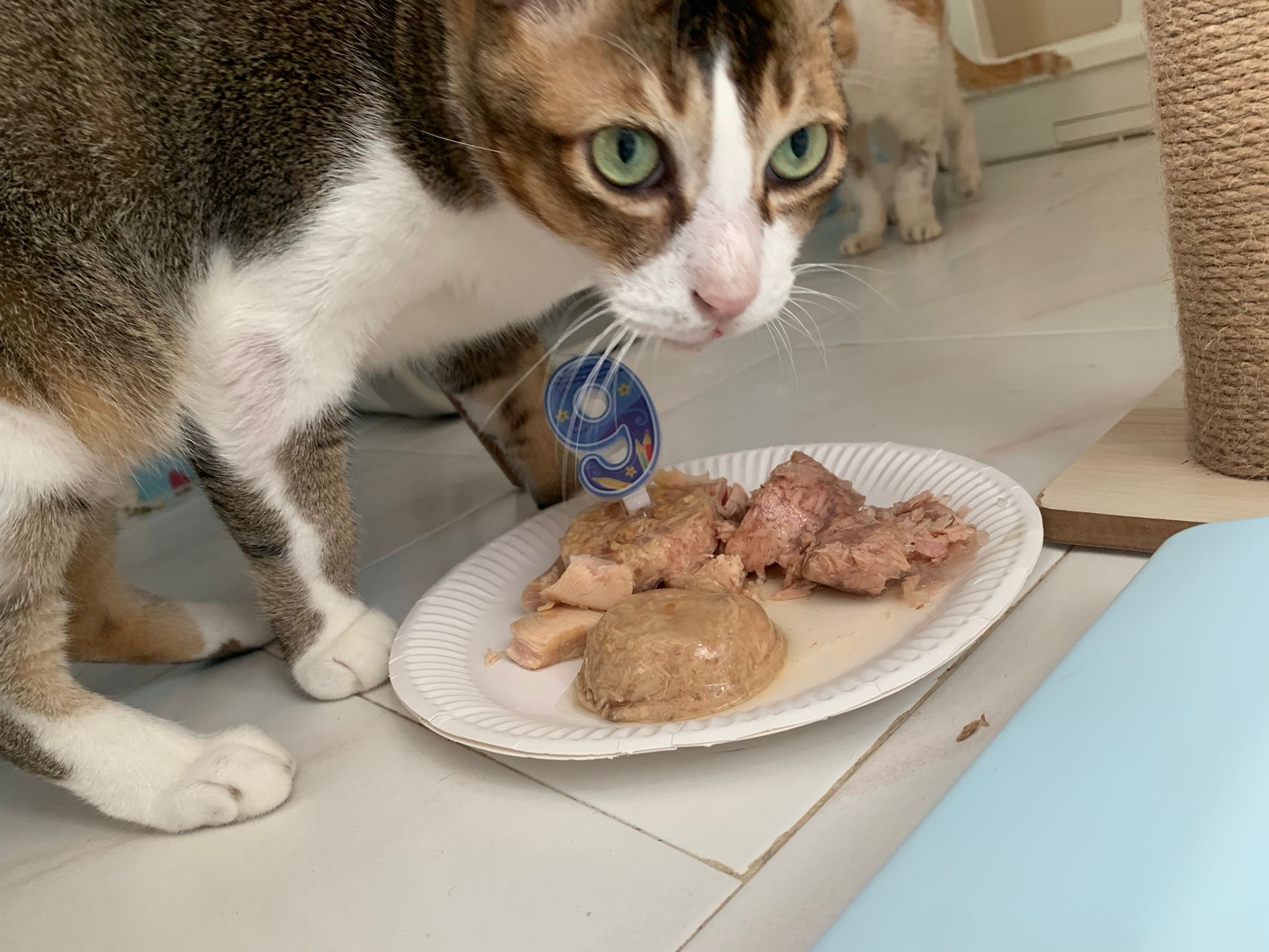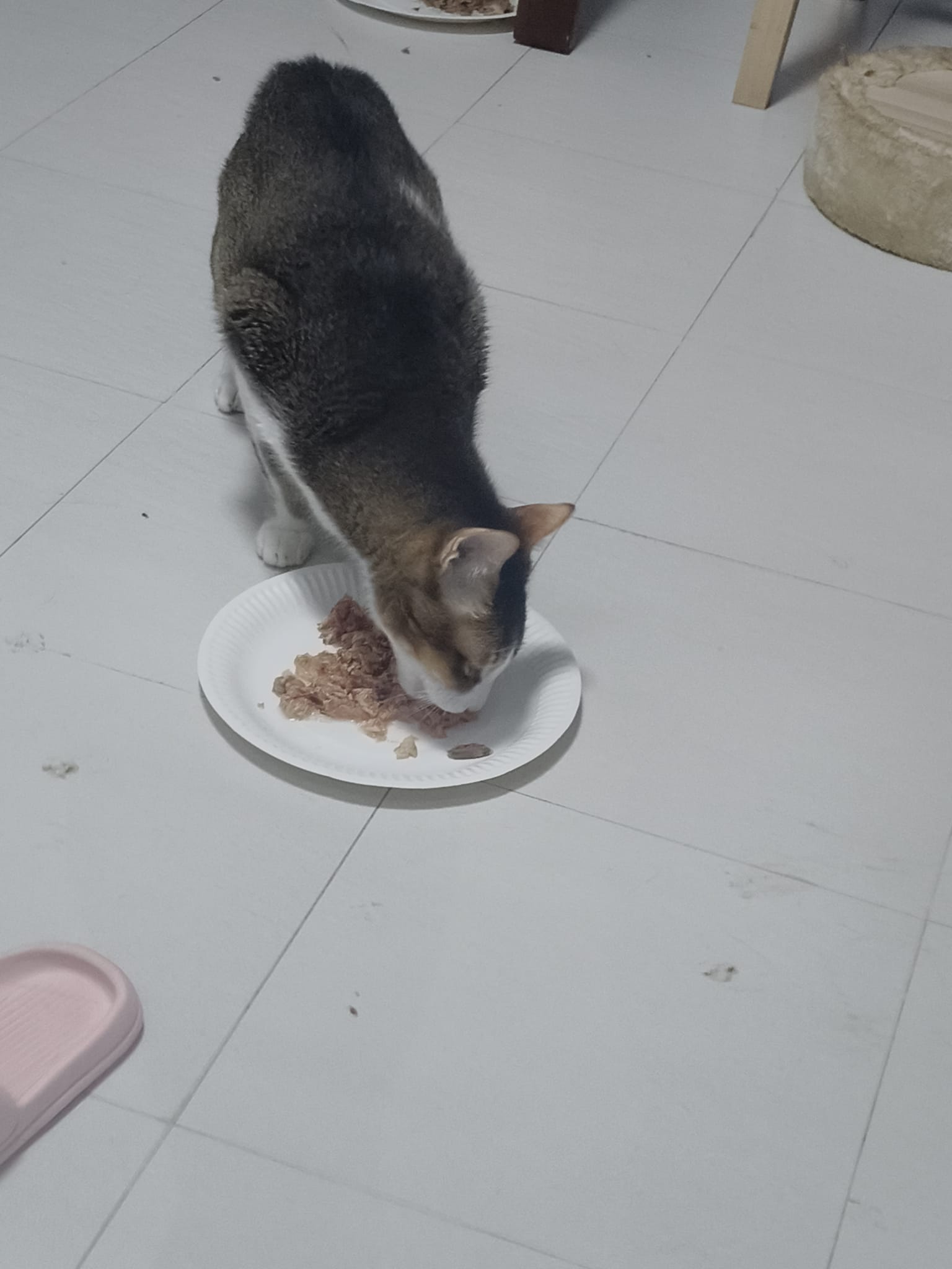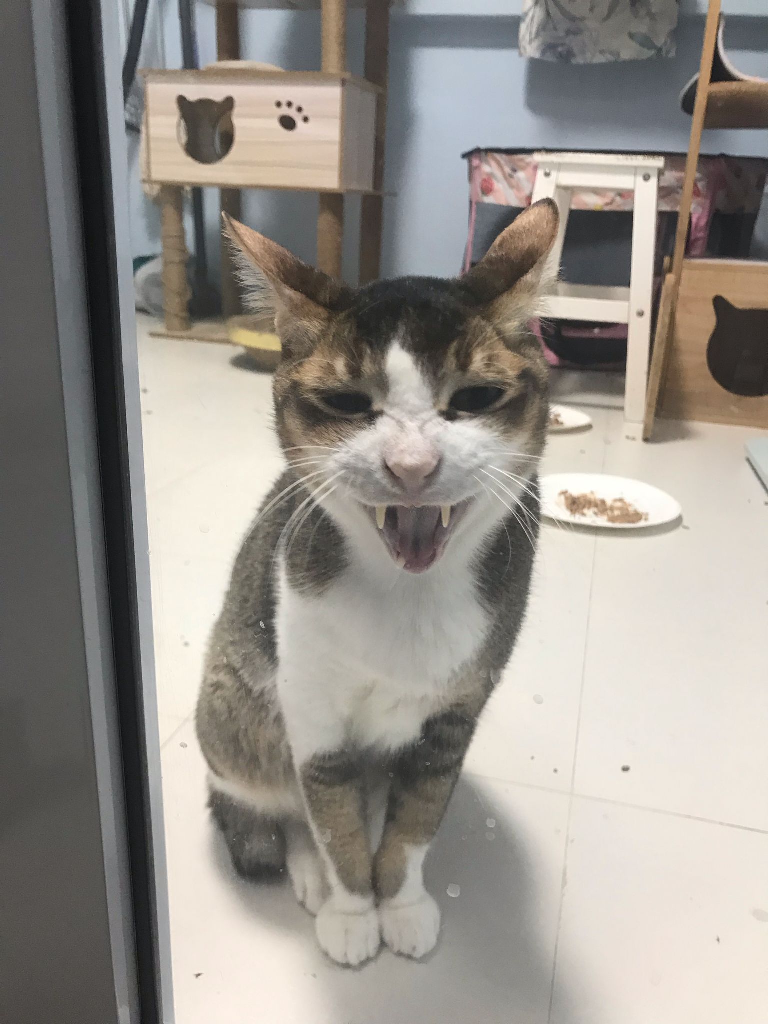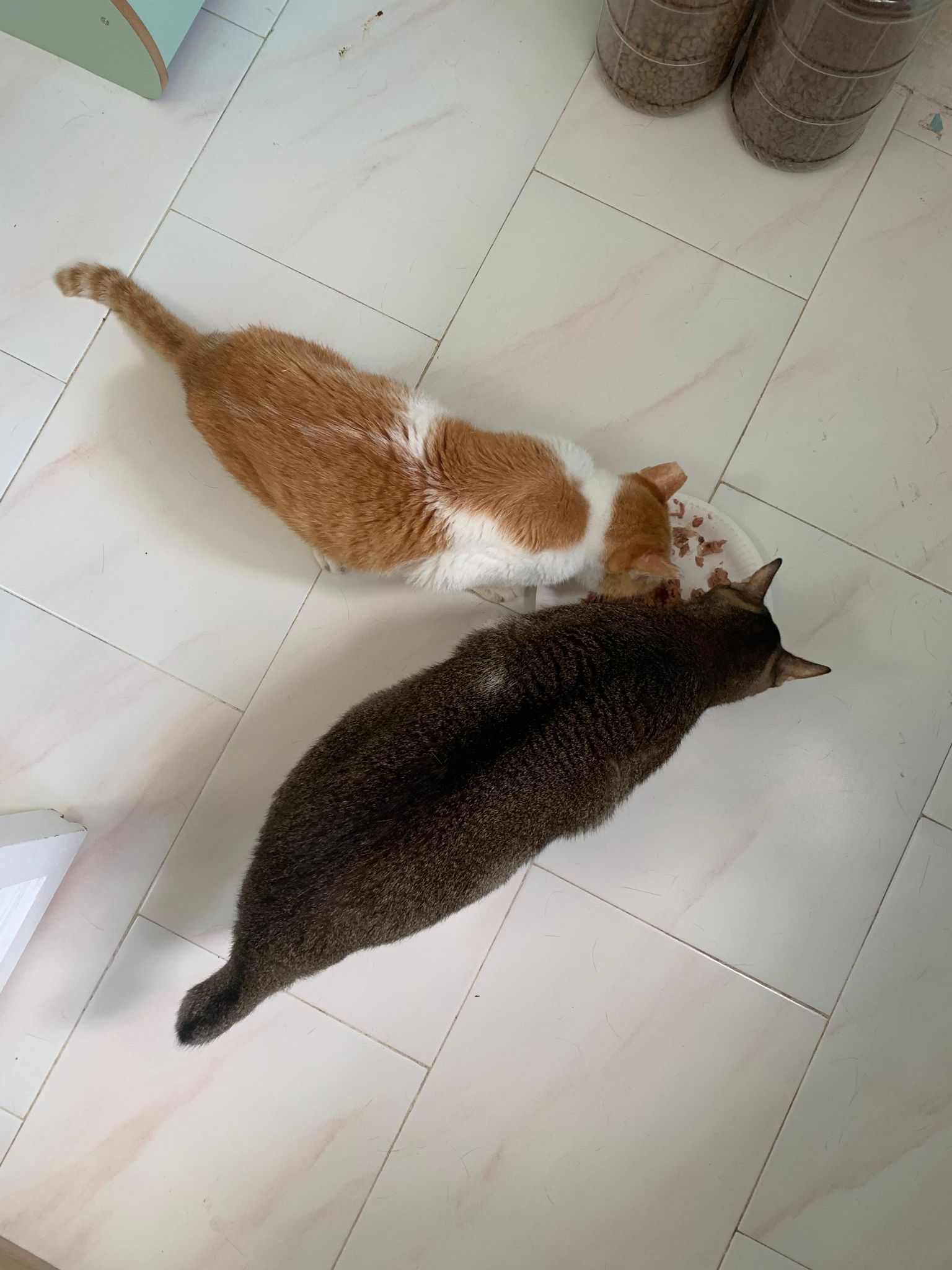 Morning; I sit on the floor outside his room packing the storage box and he meow wait for me. 1pm+: given him Clav jab and 0.15ml bupre. serve ff he finish n went on to Kerry plate. Comb both fur they r happy kid