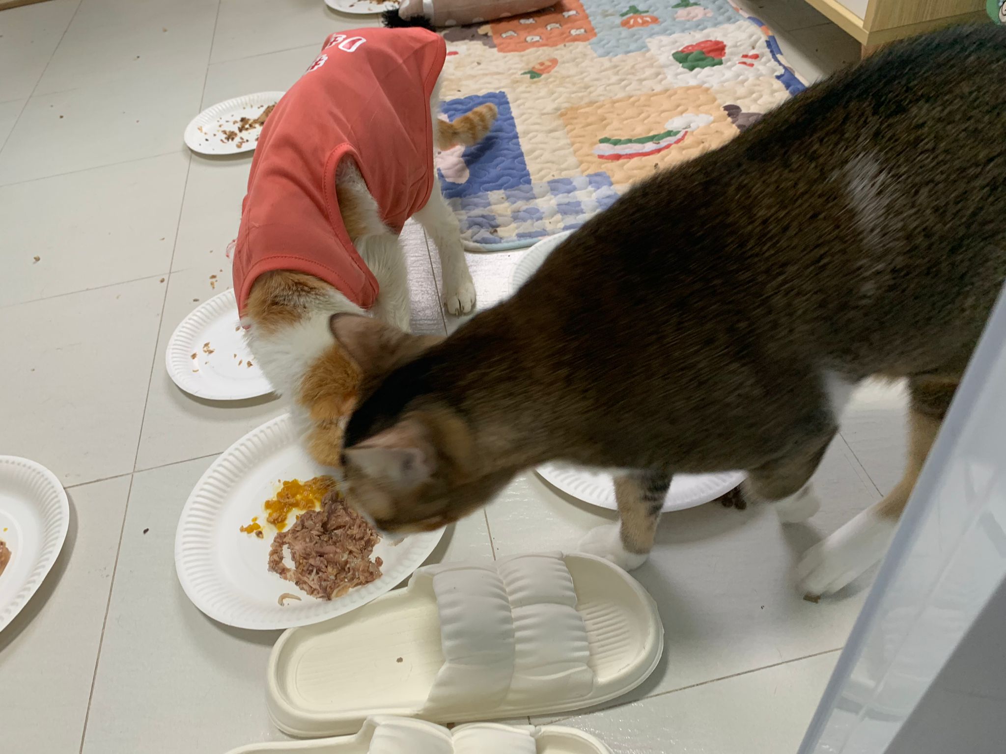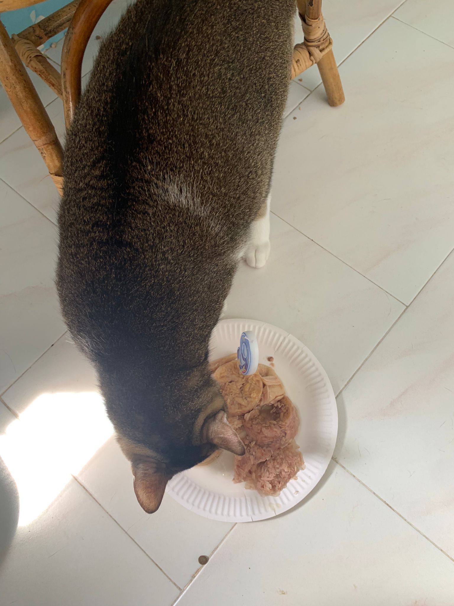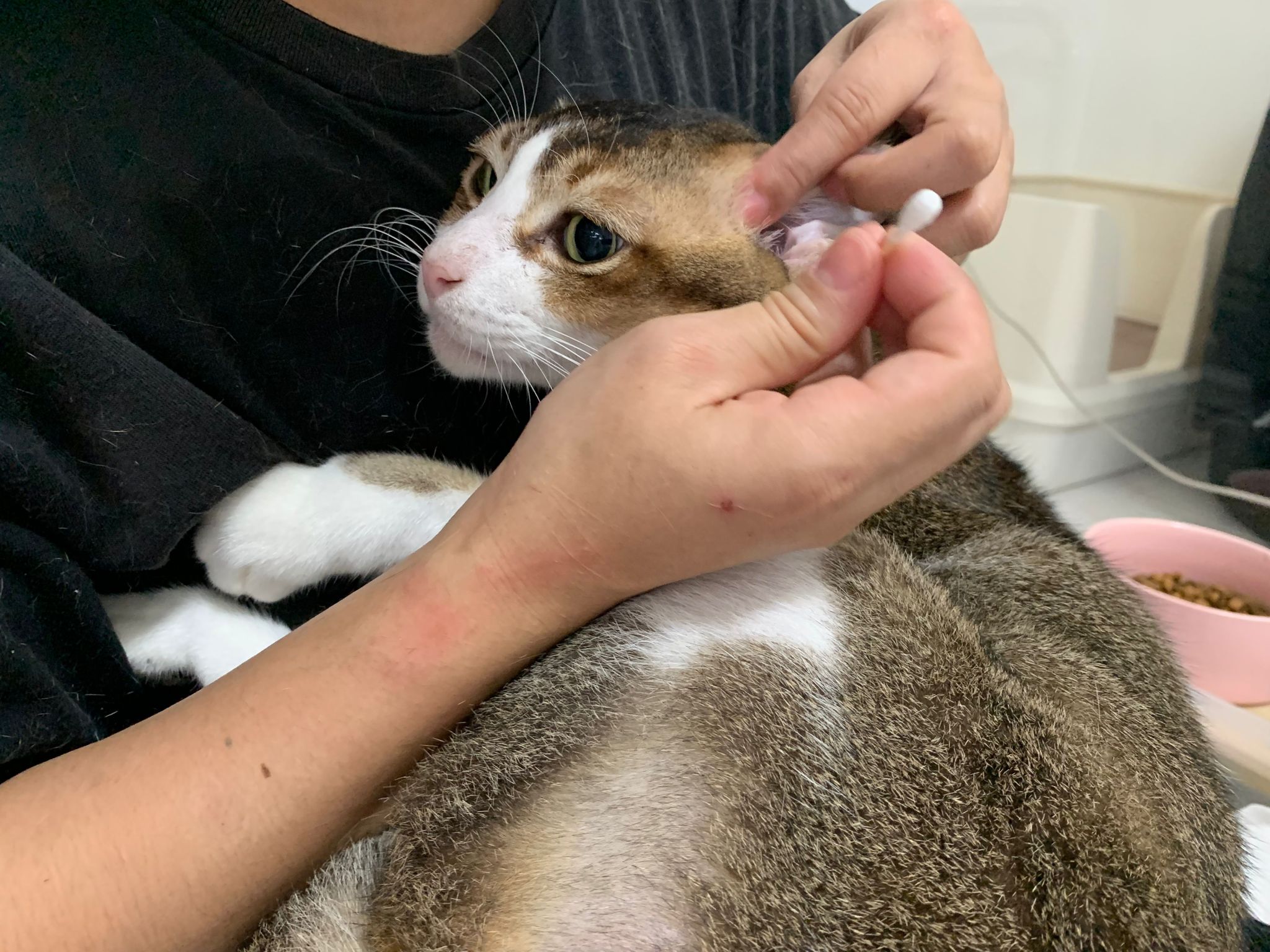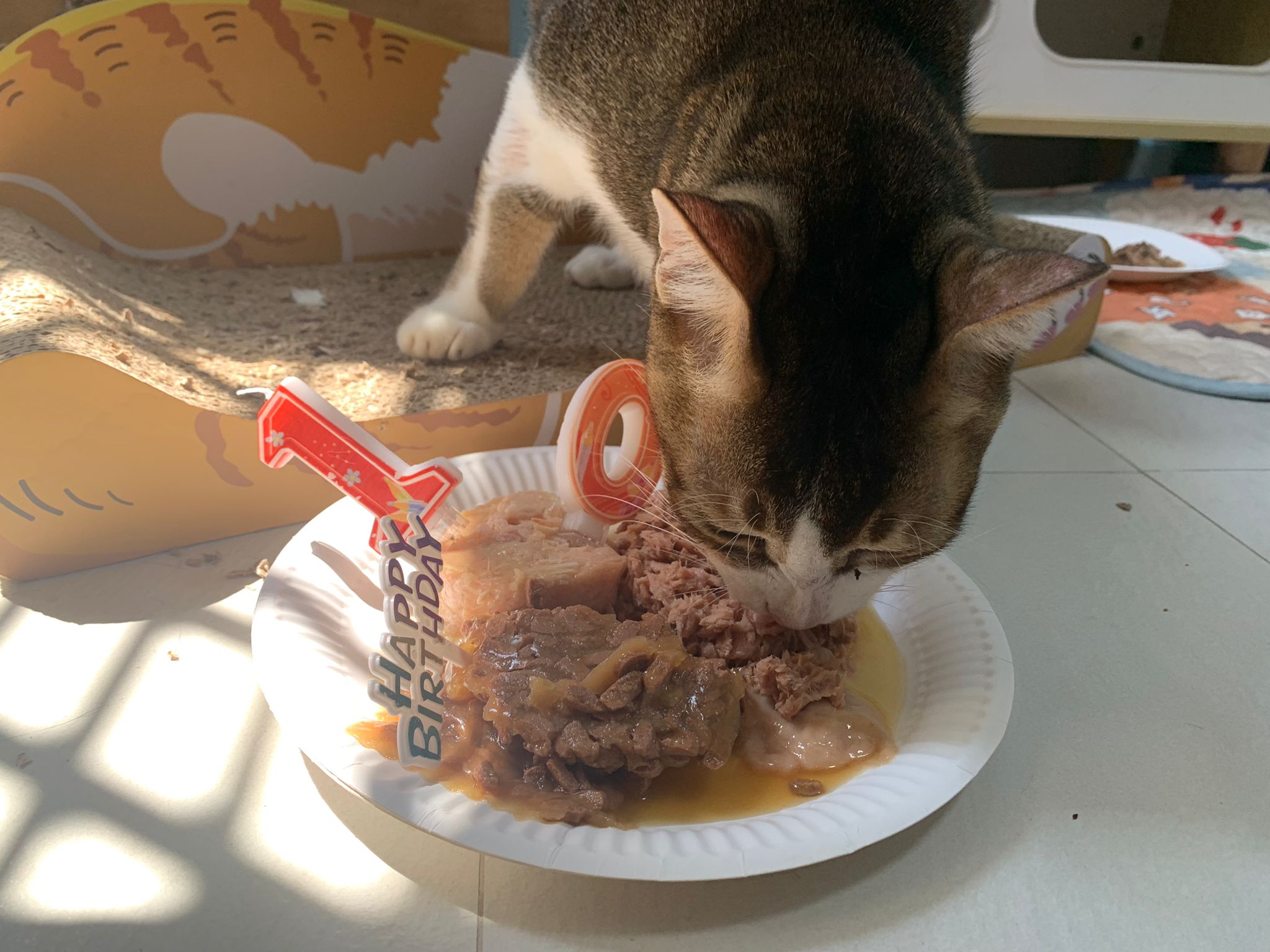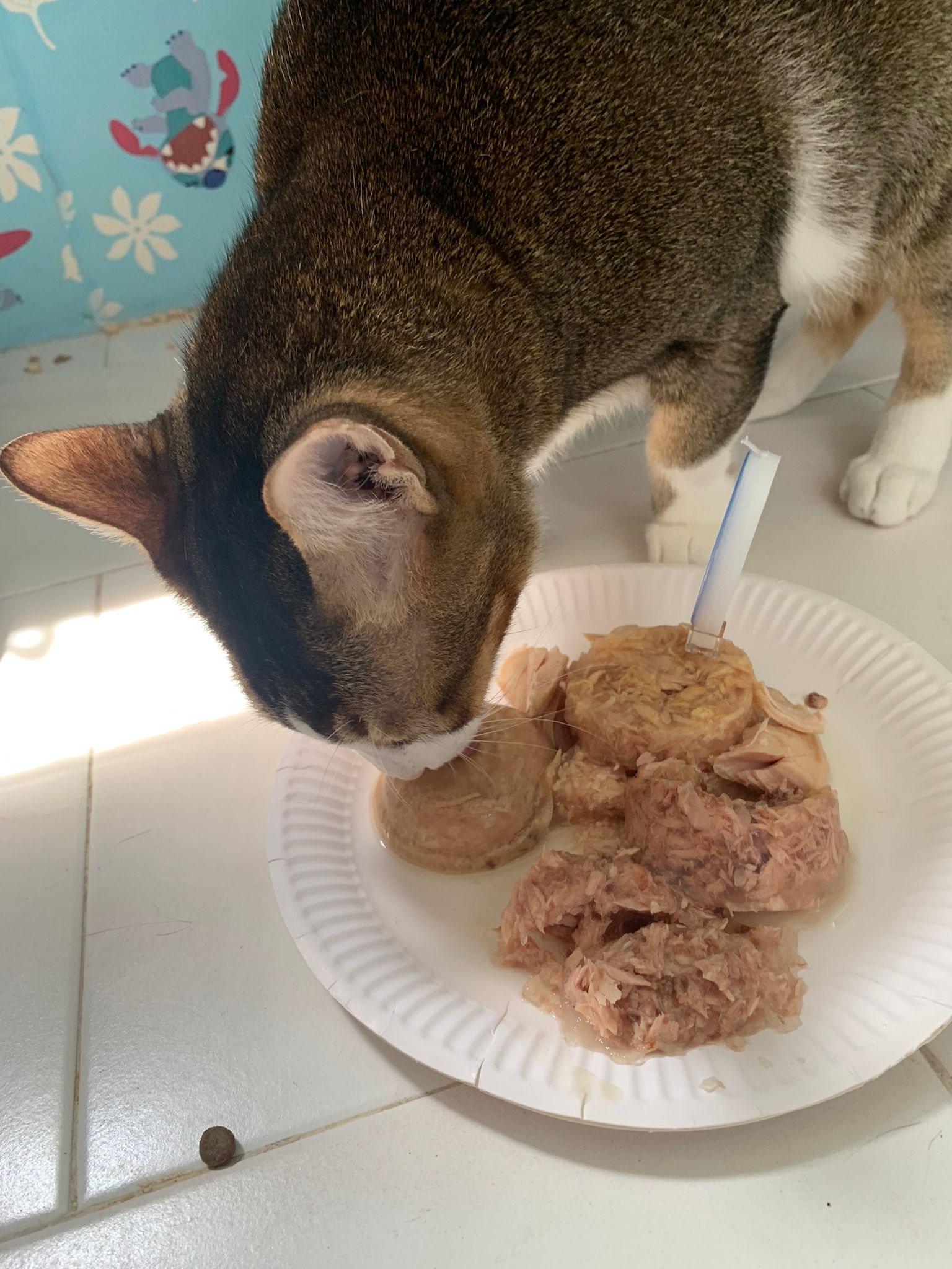 Morning; I sit on the floor outside his room packing the storage box and he meow wait for me. 1pm+: given him Clav jab and 0.15ml bupre. serve ff he finish n went on to Kerry plate. Comb both fur they r happy kid